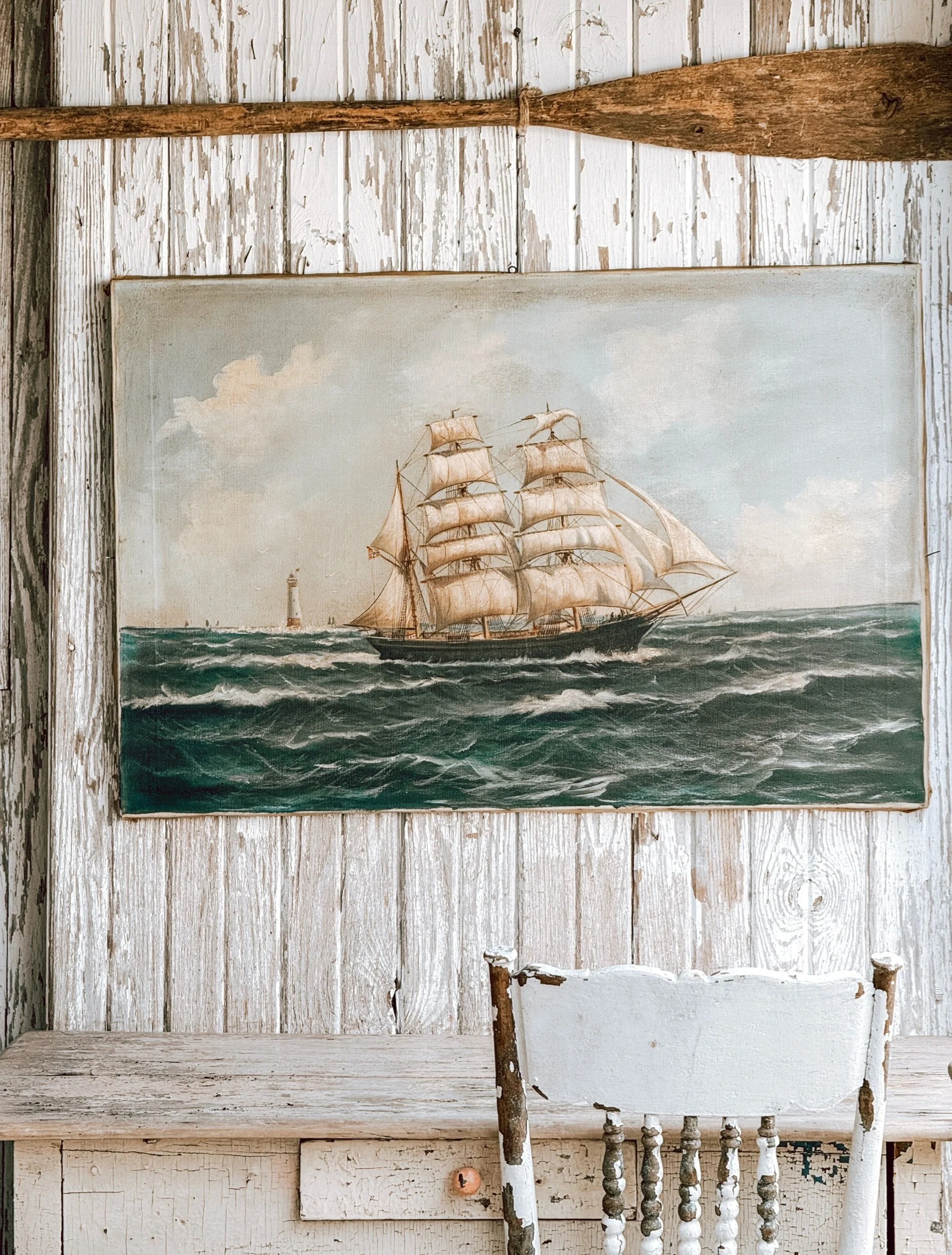 A true statement piece—perfect for anchoring a room, layering into a coastal or collected interior, or pairing with natural elements like wood, ironstone, or the antique oar (listed separately).