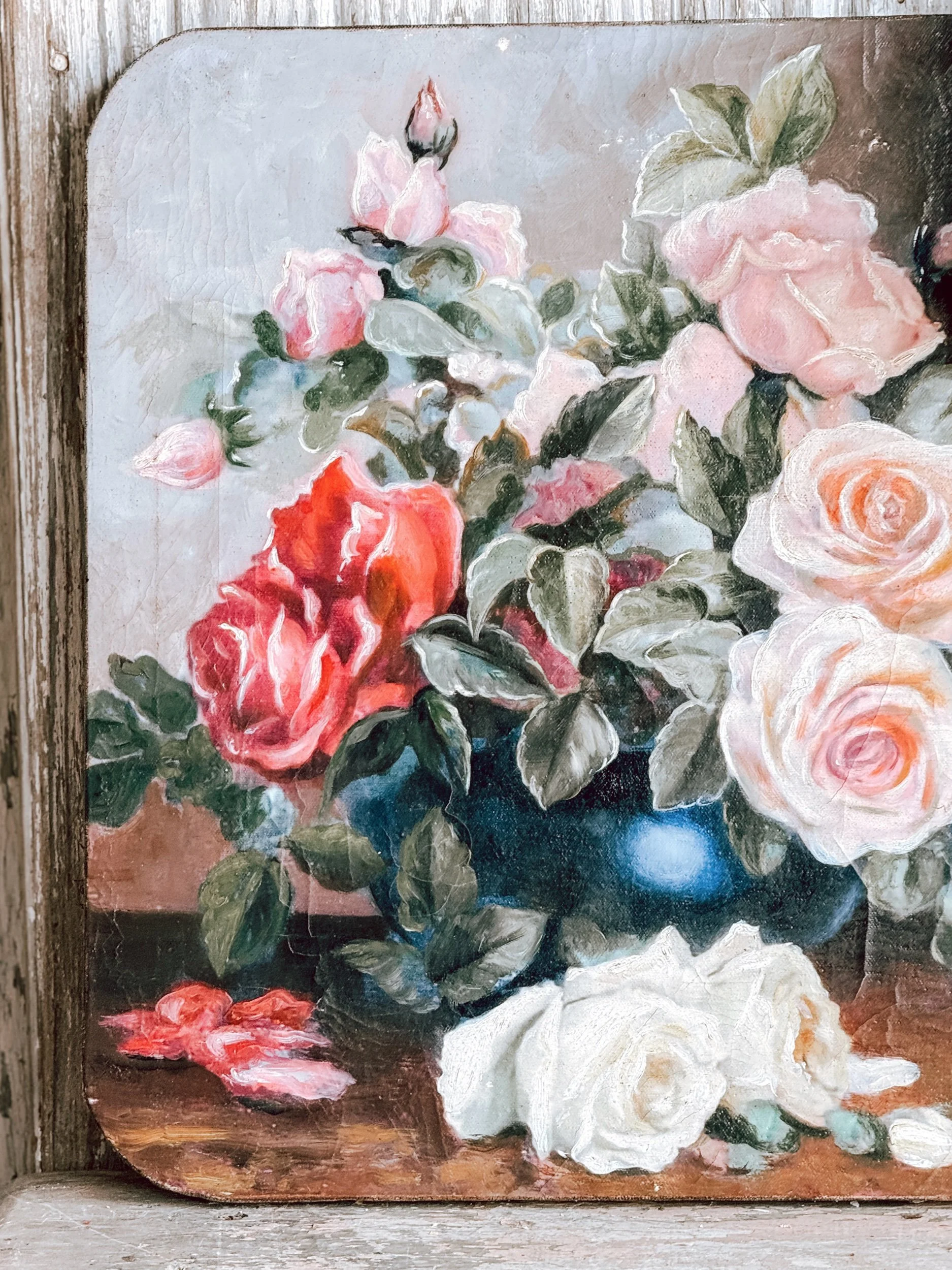 Rare Antique Floral Oil Painting – Sourced in Rome *