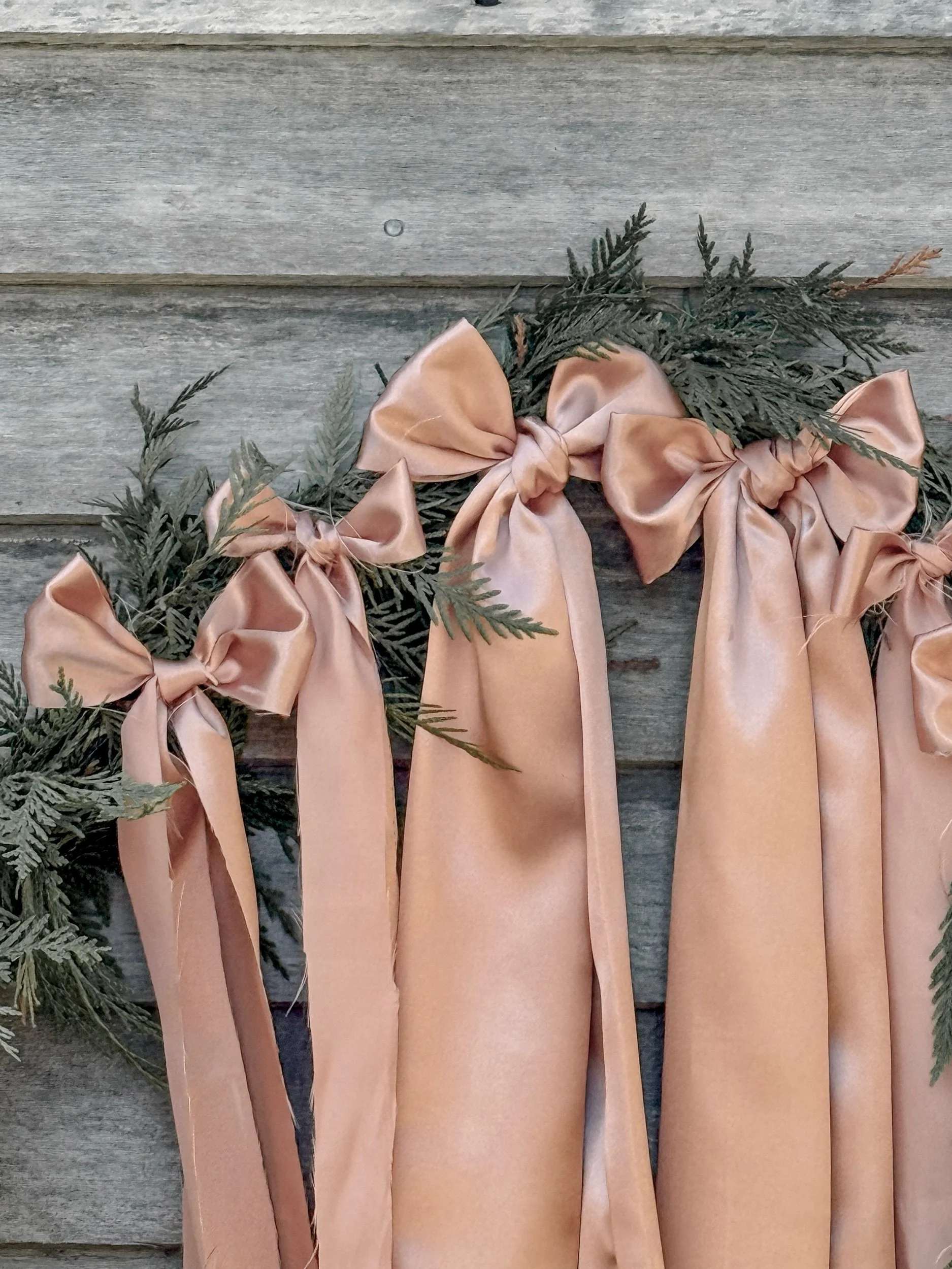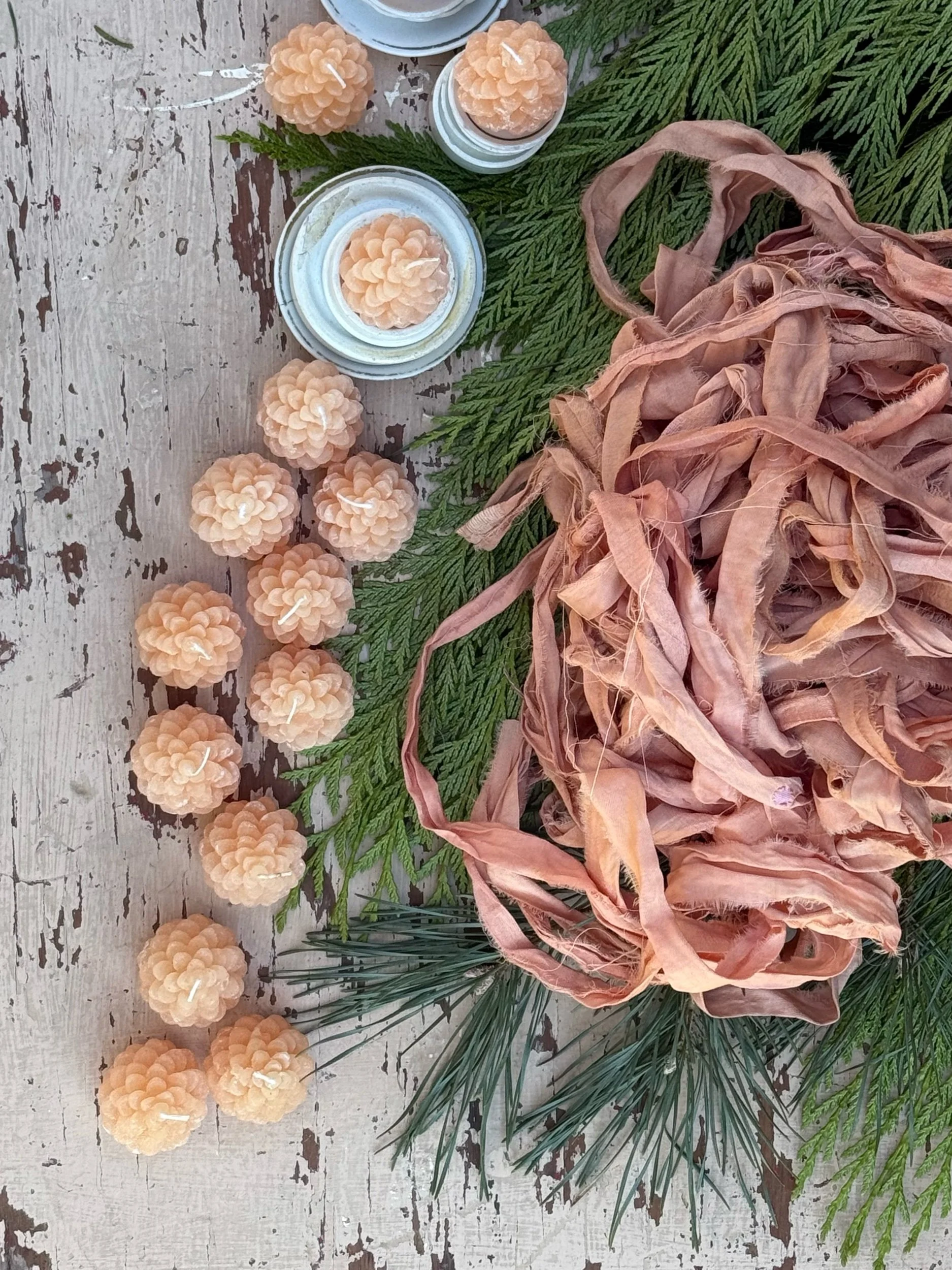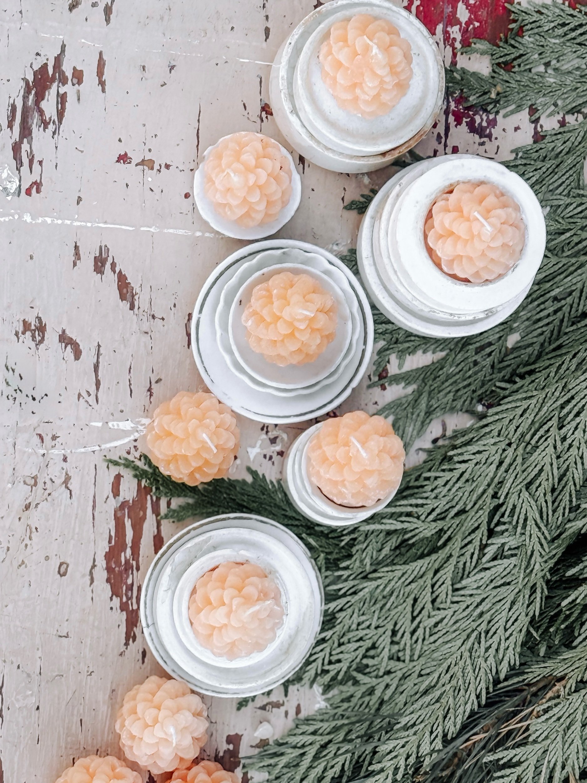 Rose Pink Pinecone Tea Light Candle Collection w/ Matte Silk Ribbon