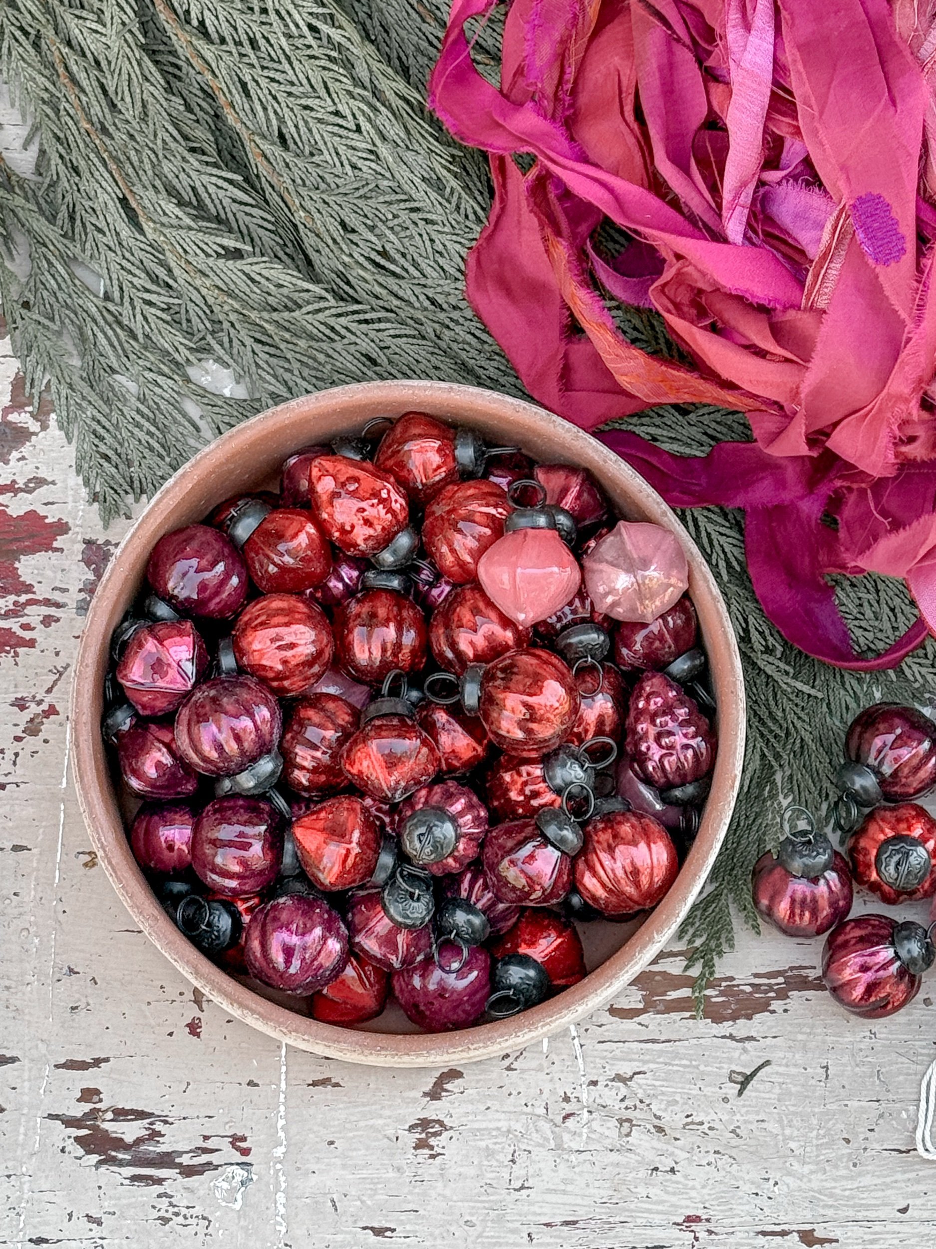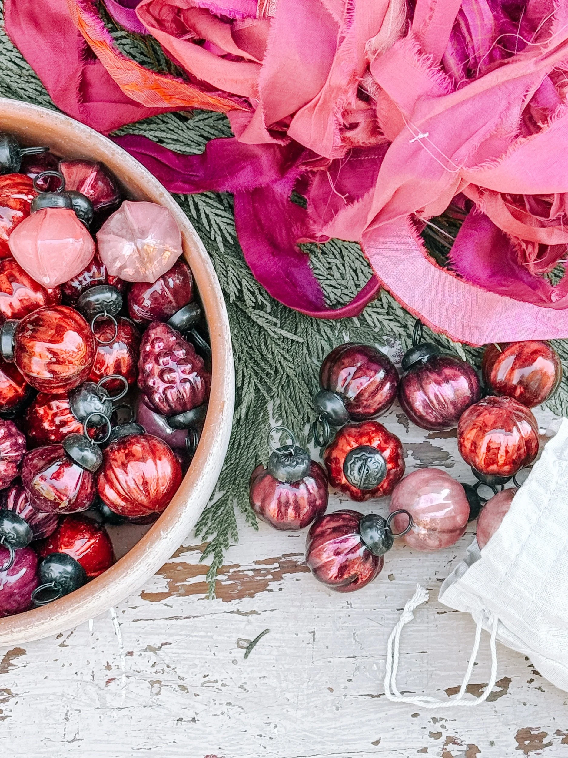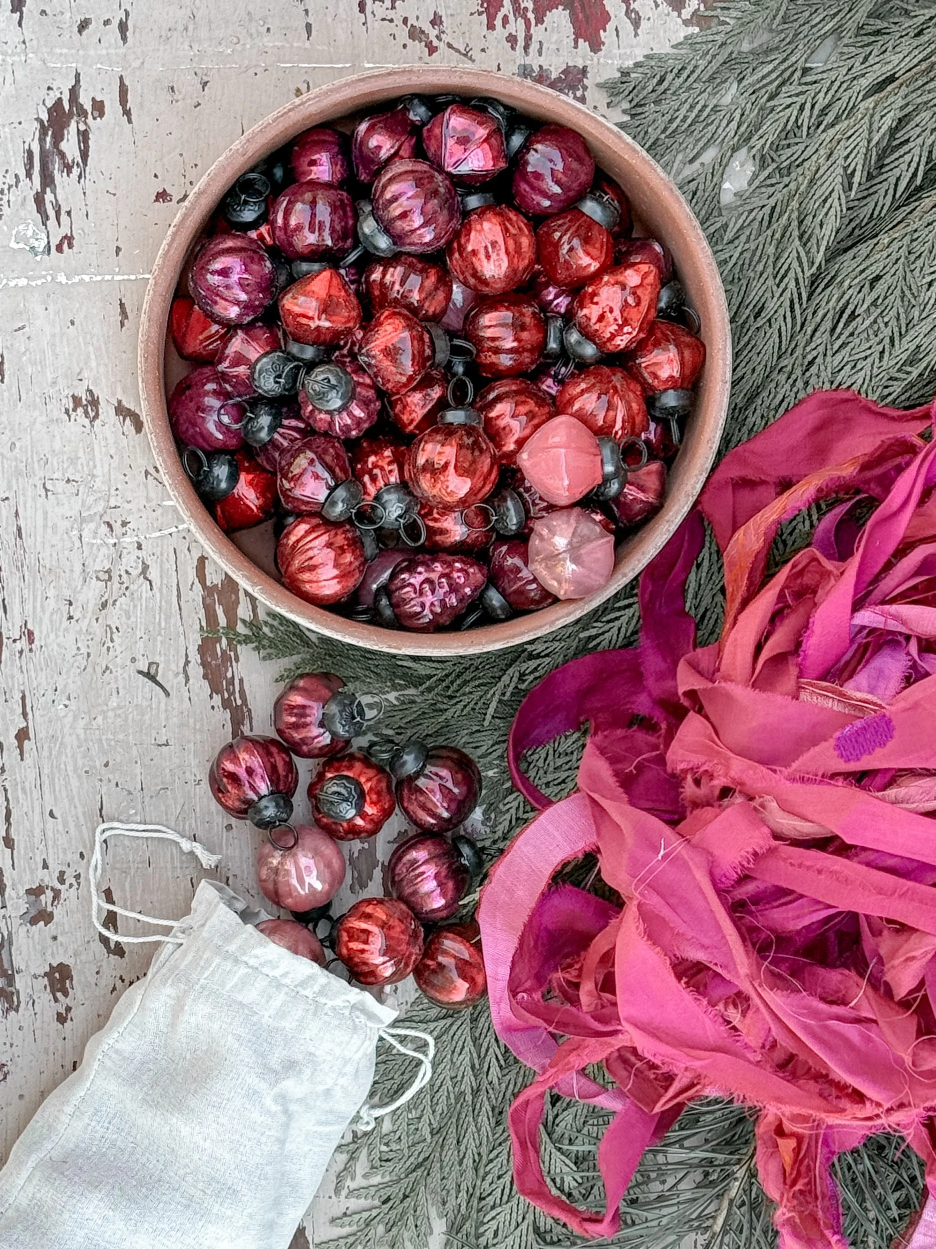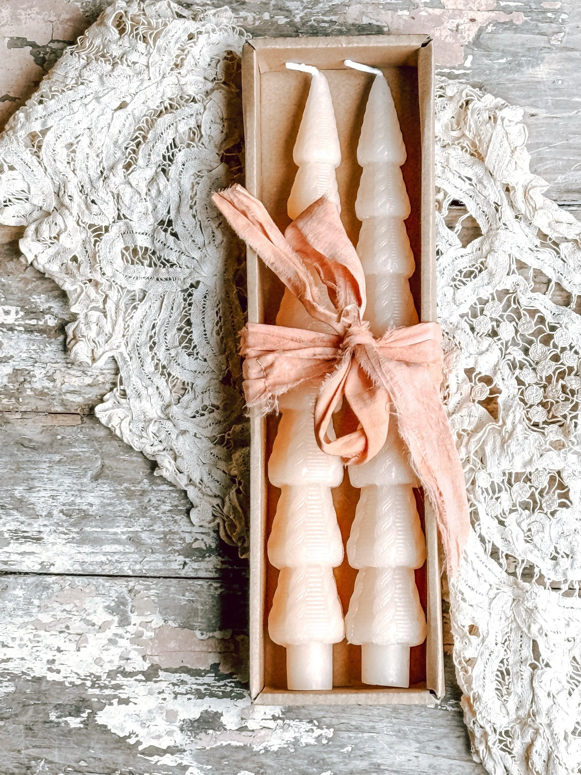 Rose Pink Pinecone Tea Light Candle Collection w/ Matte Silk Ribbon