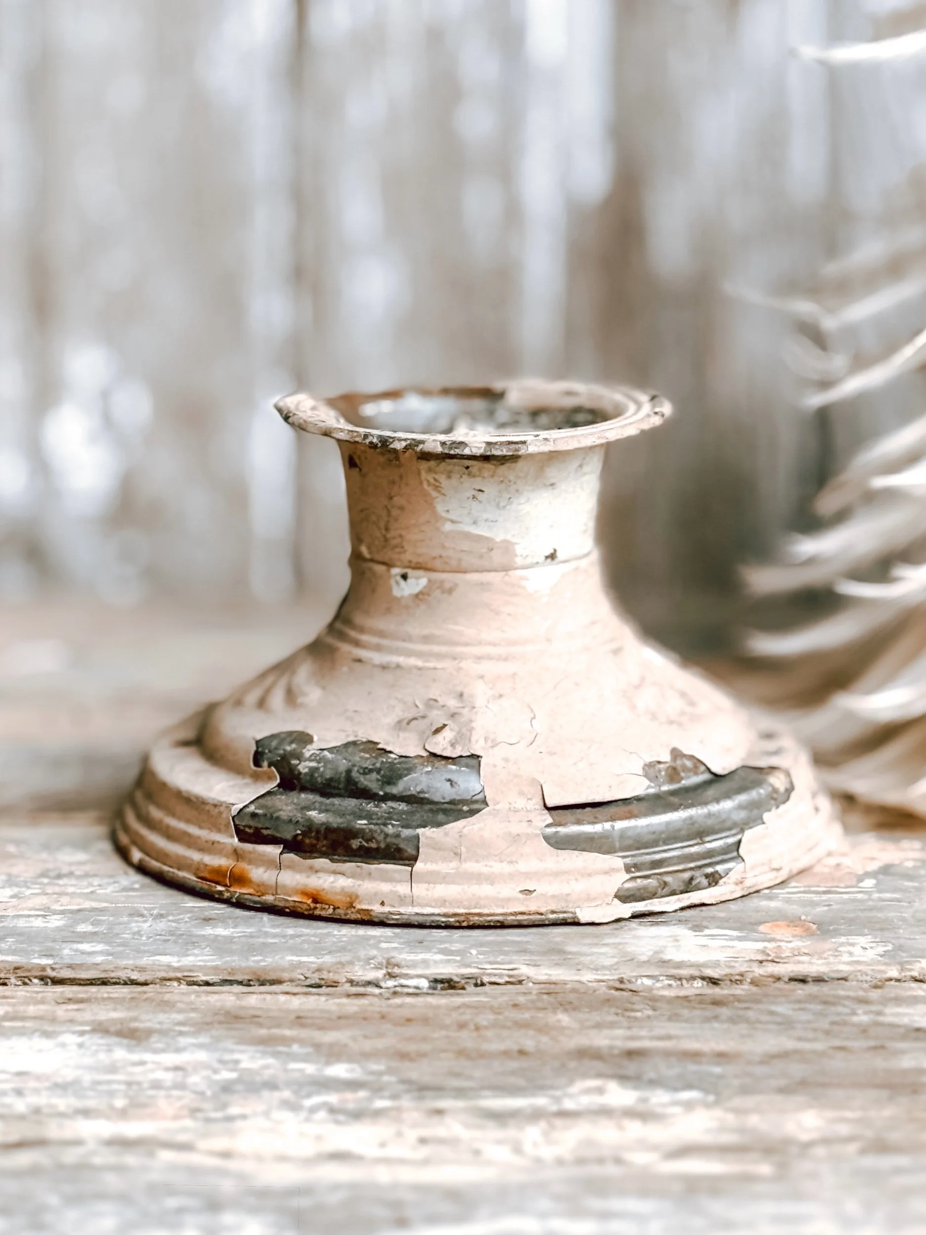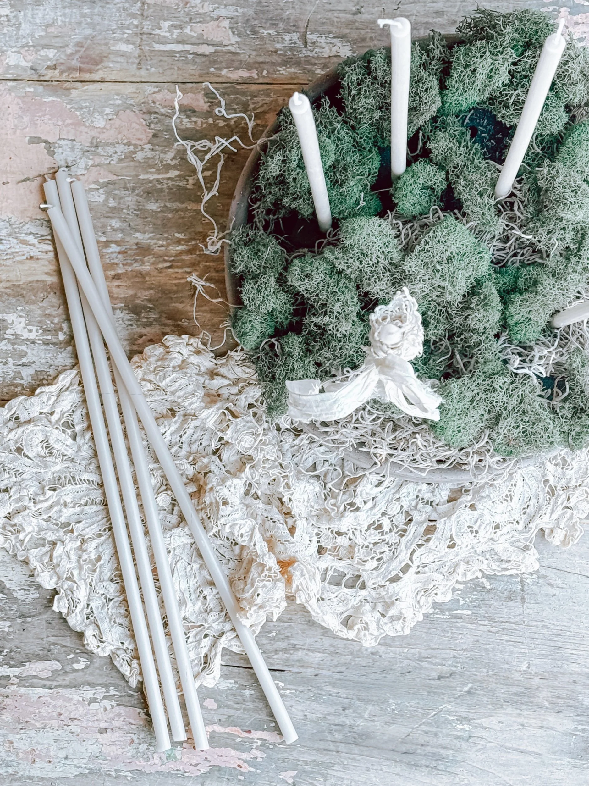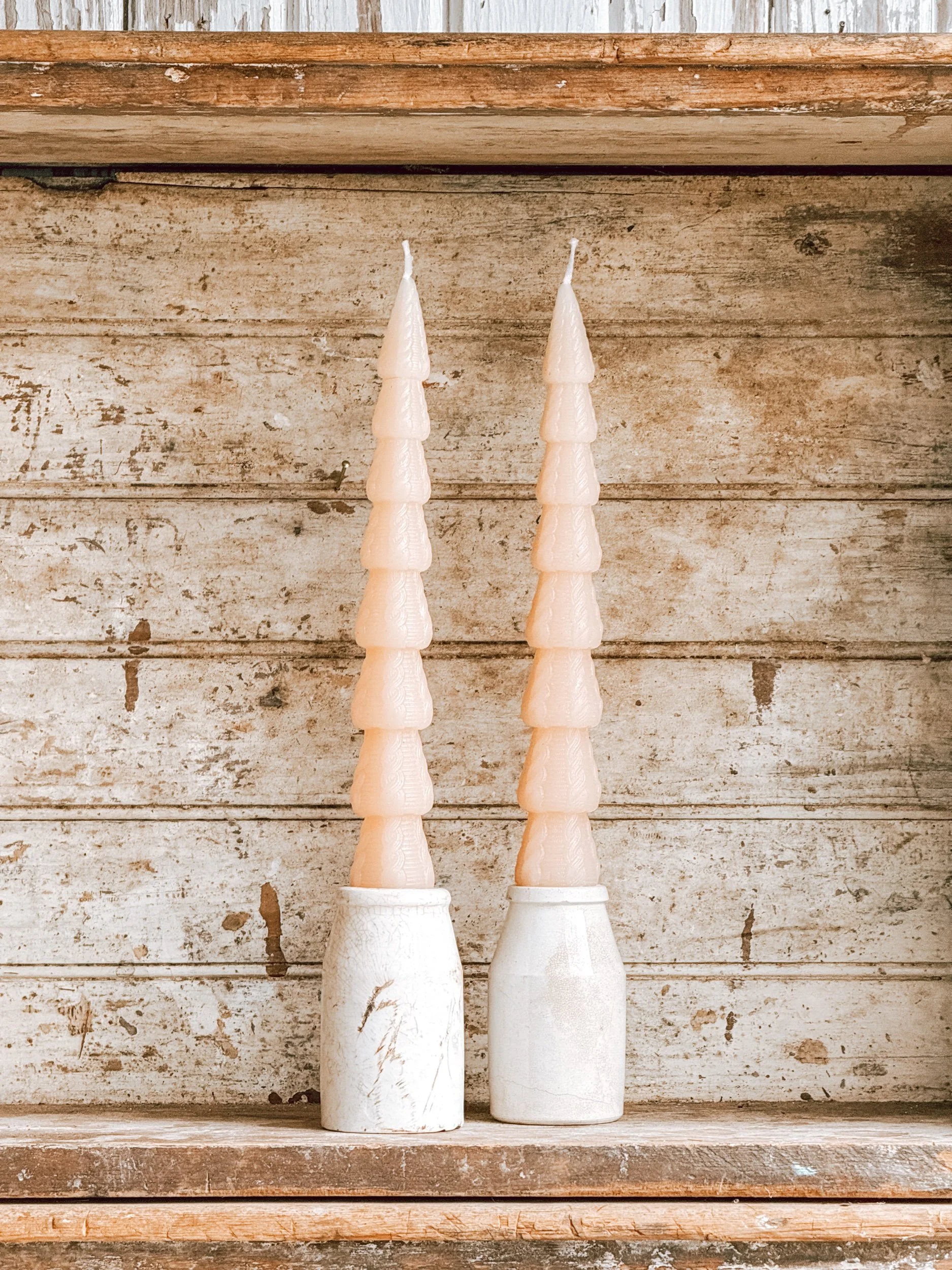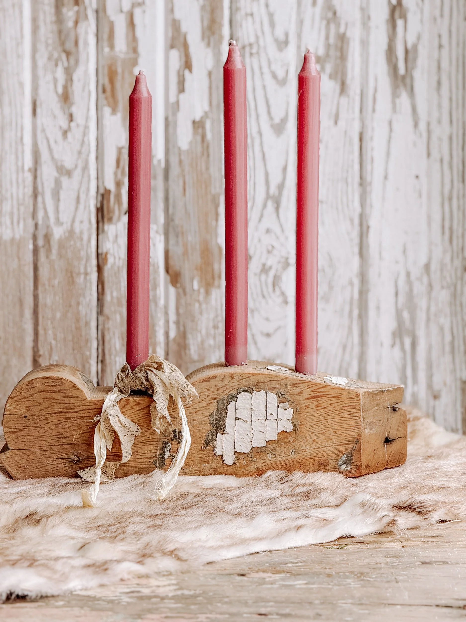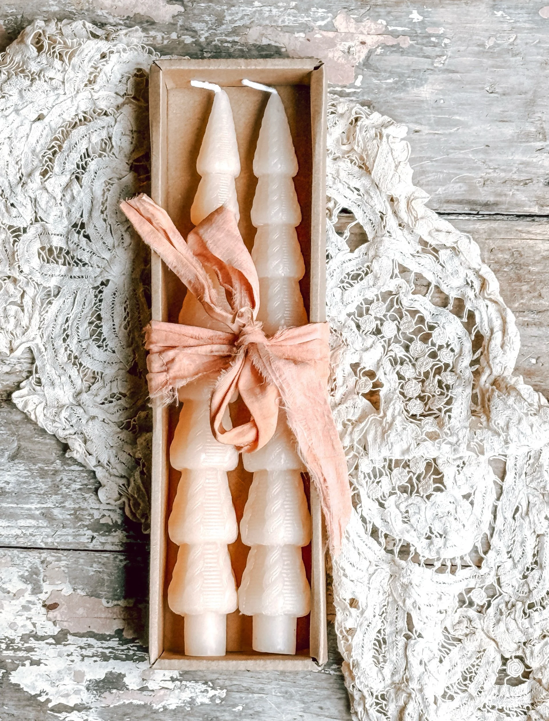 Vintage Ironstone Candle Holder w/ Artisan Handmade Beeswax Pillar Taper w/ Bow