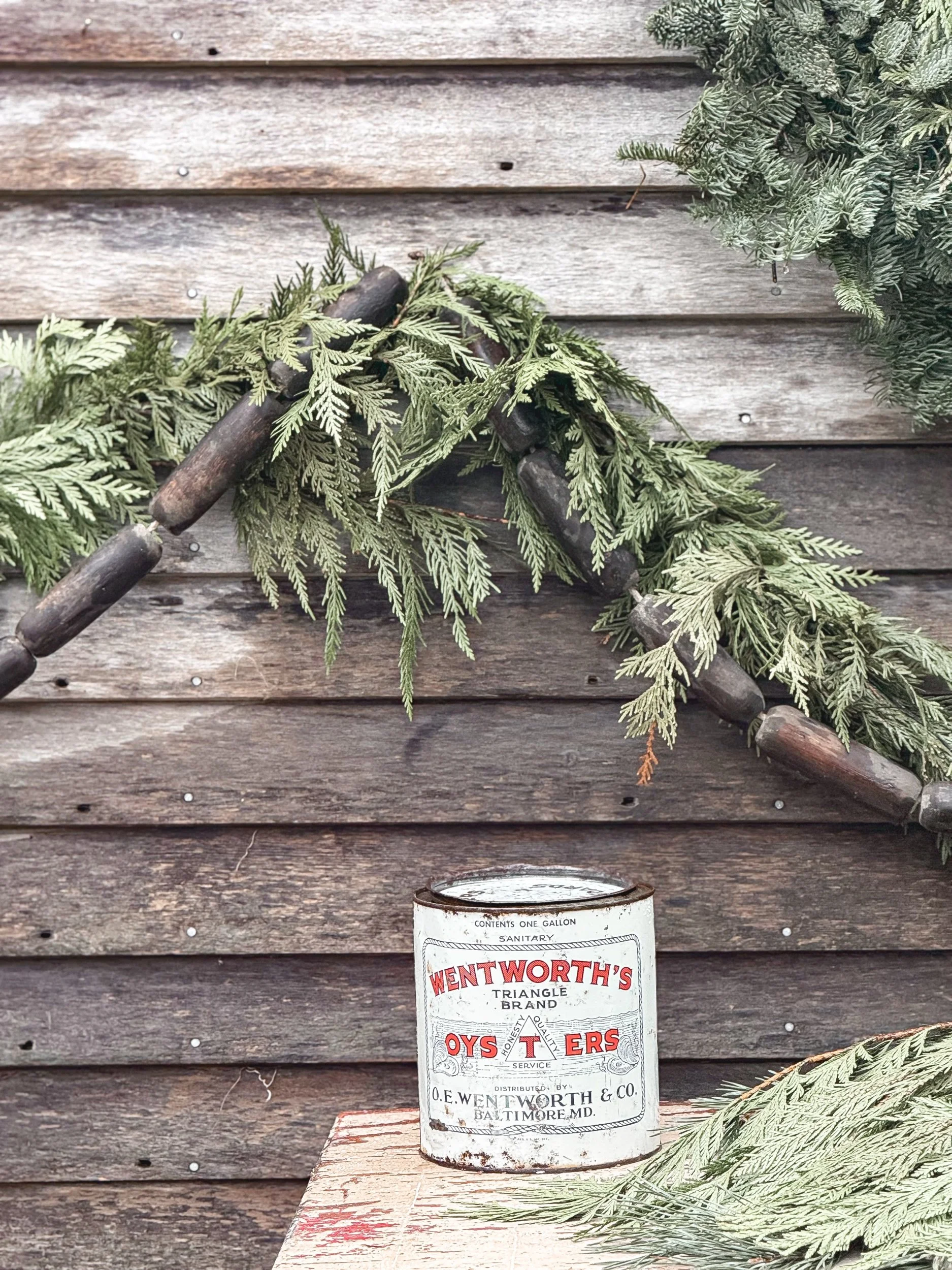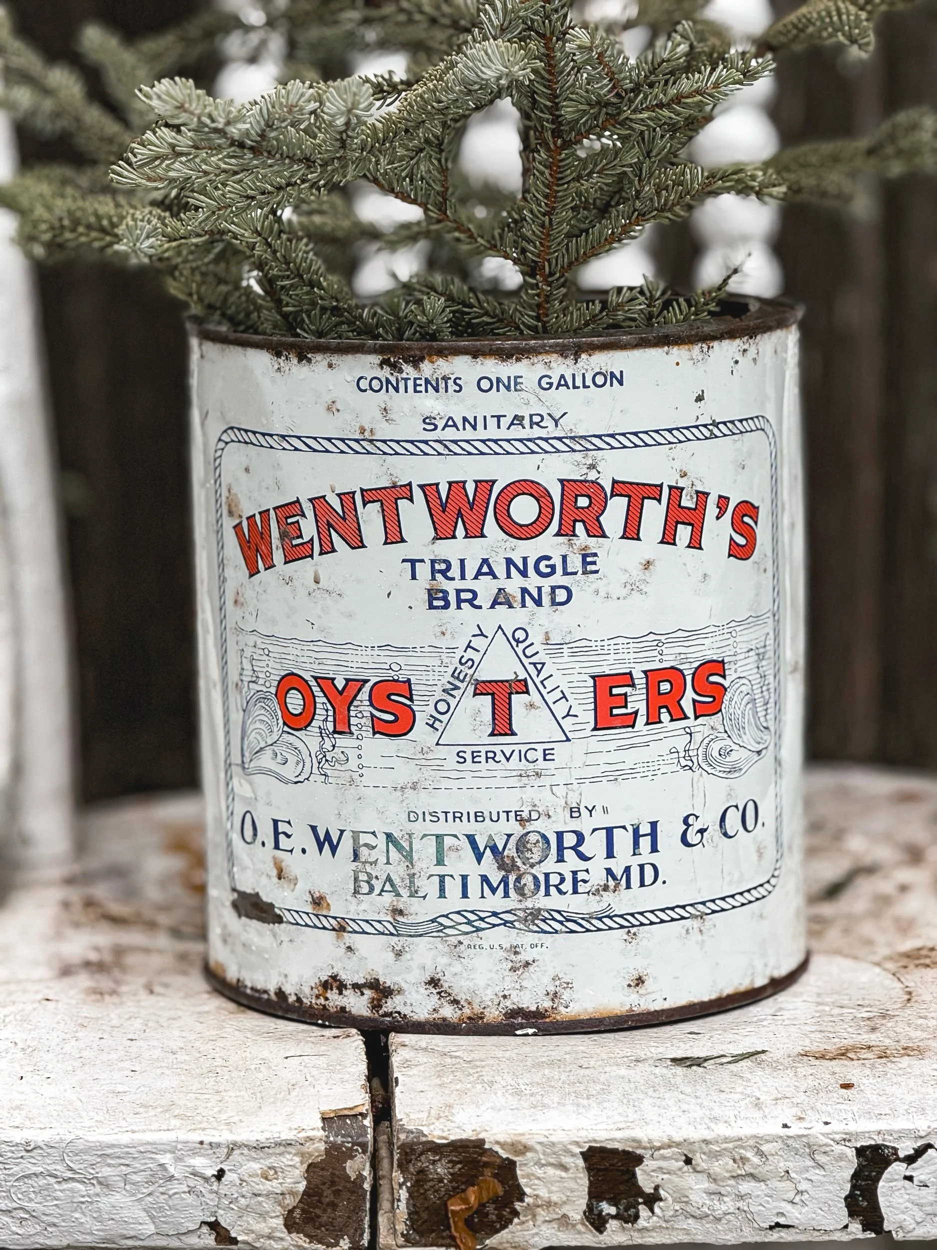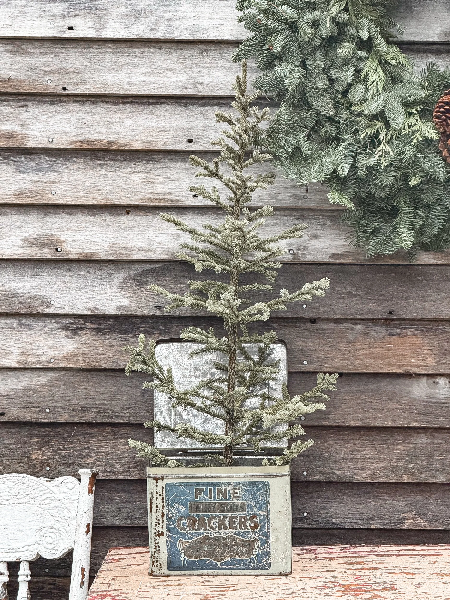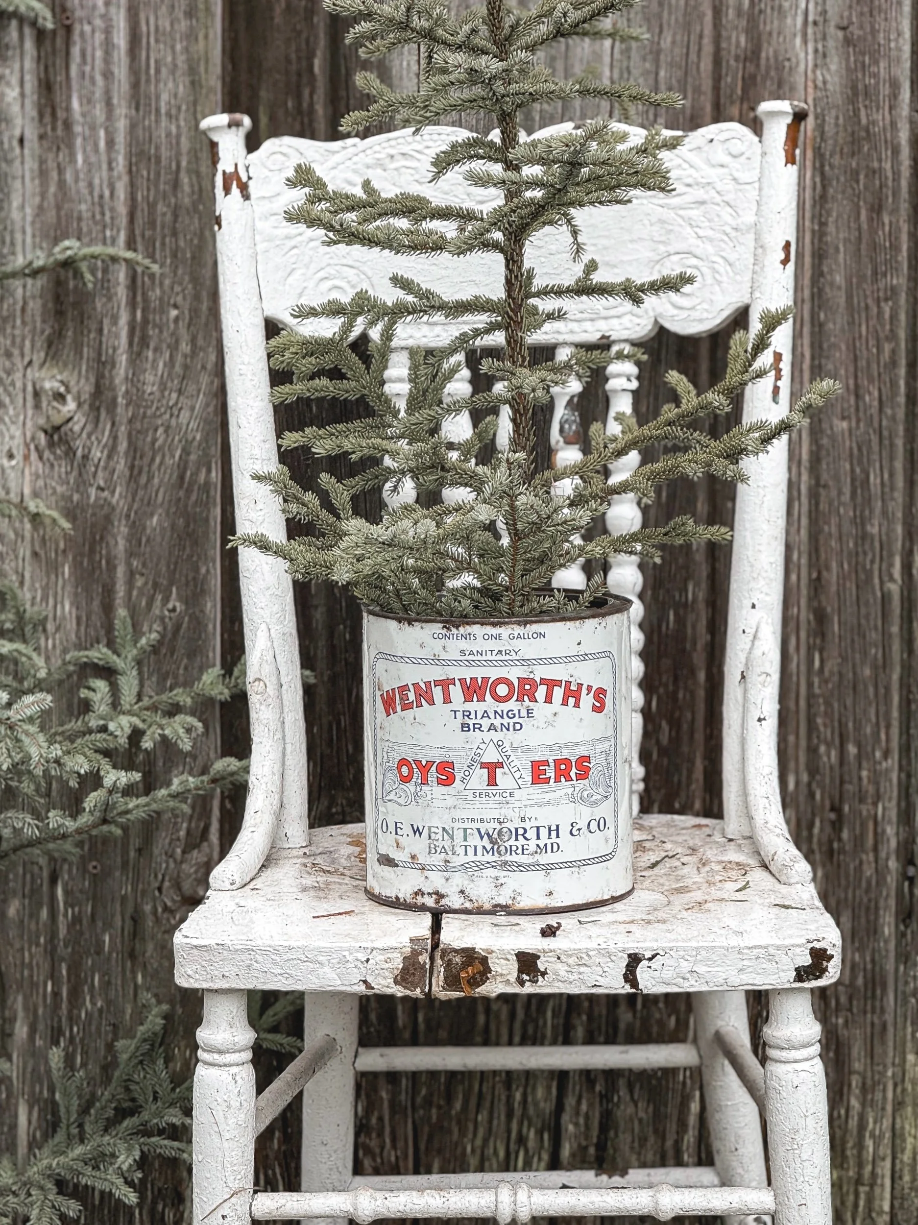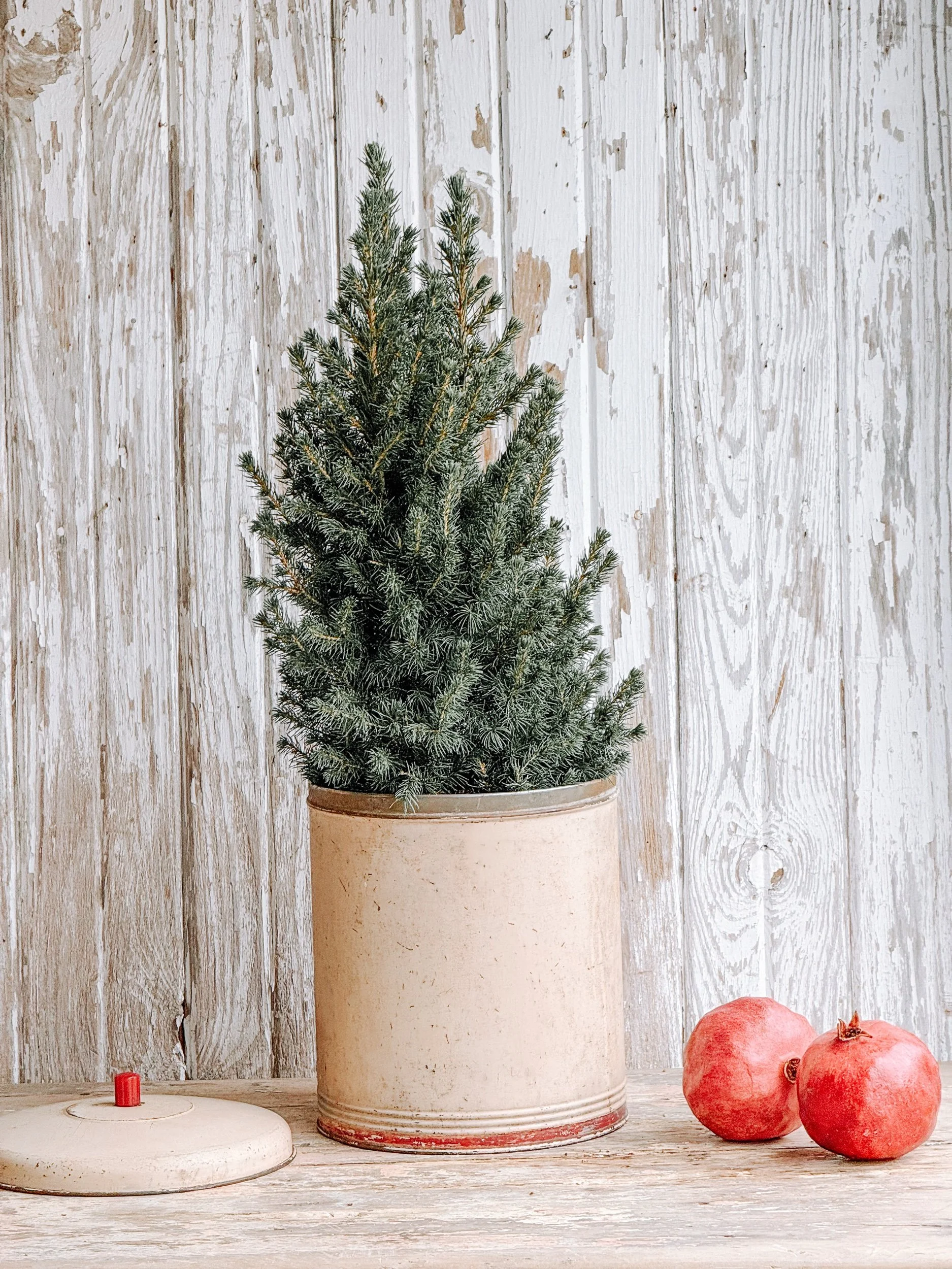 Antique Lard Tin w/ Vintage Tinsel Tree