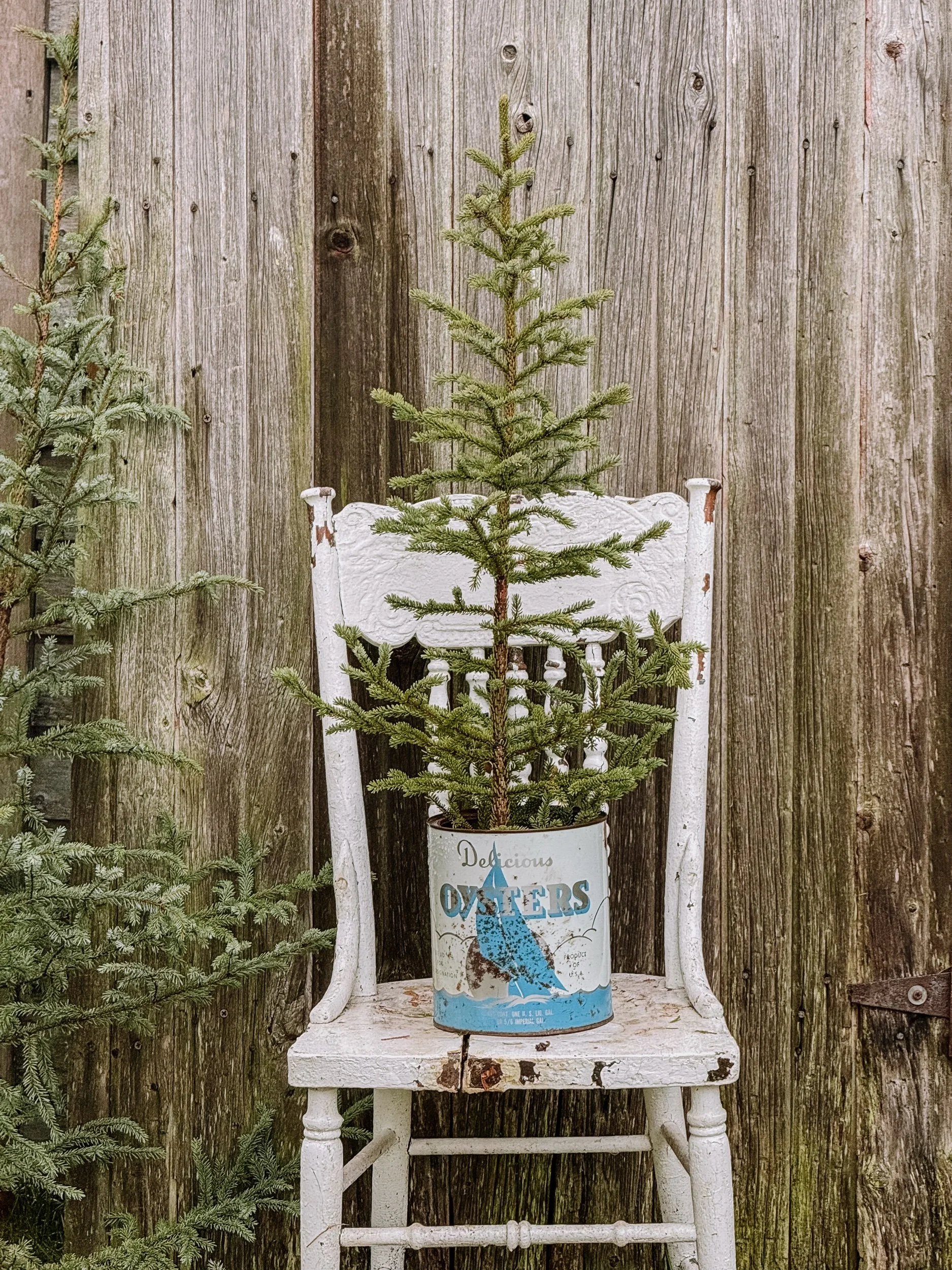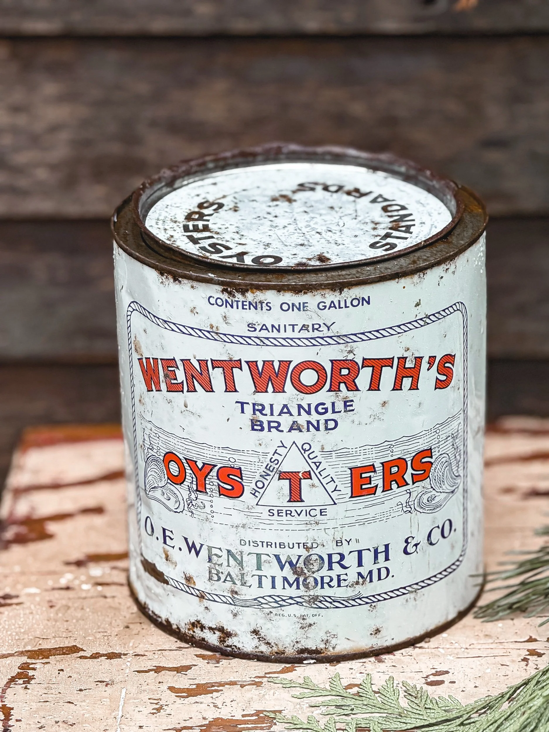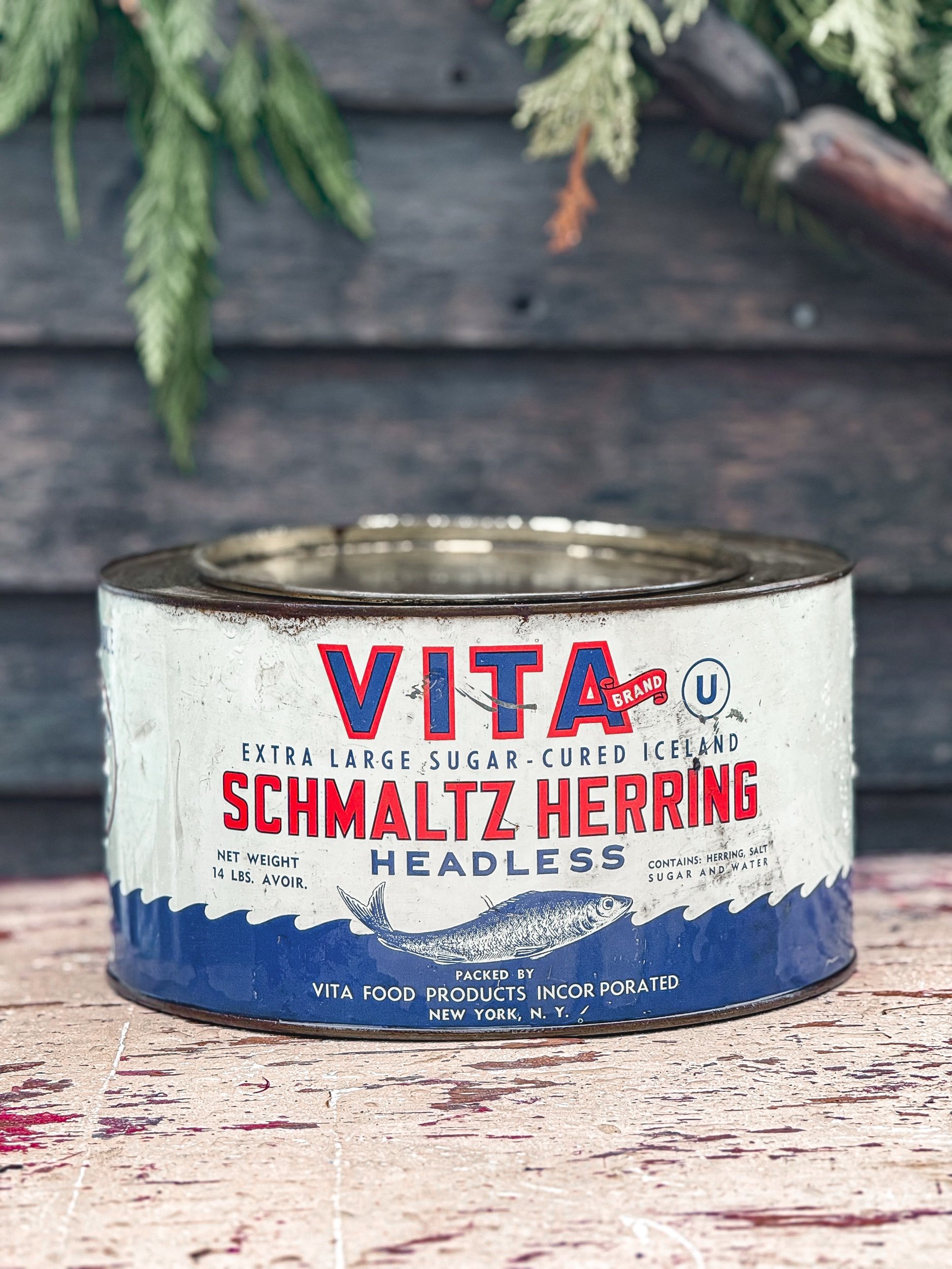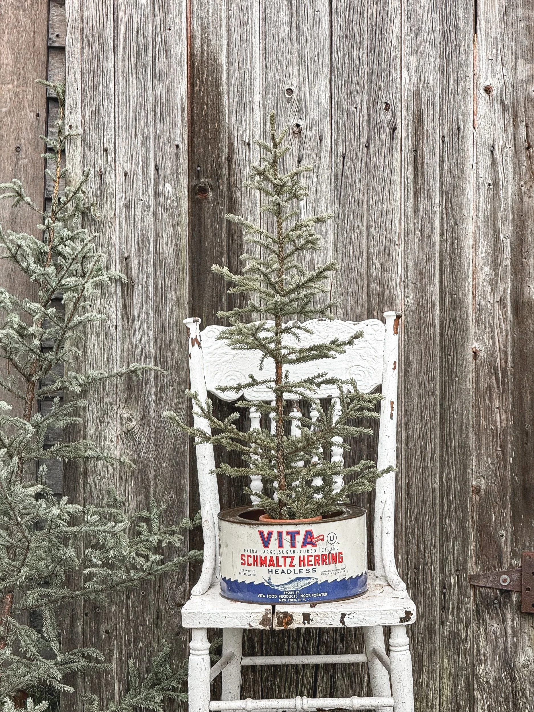 Antique Lard Tin w/ Vintage Tinsel Tree