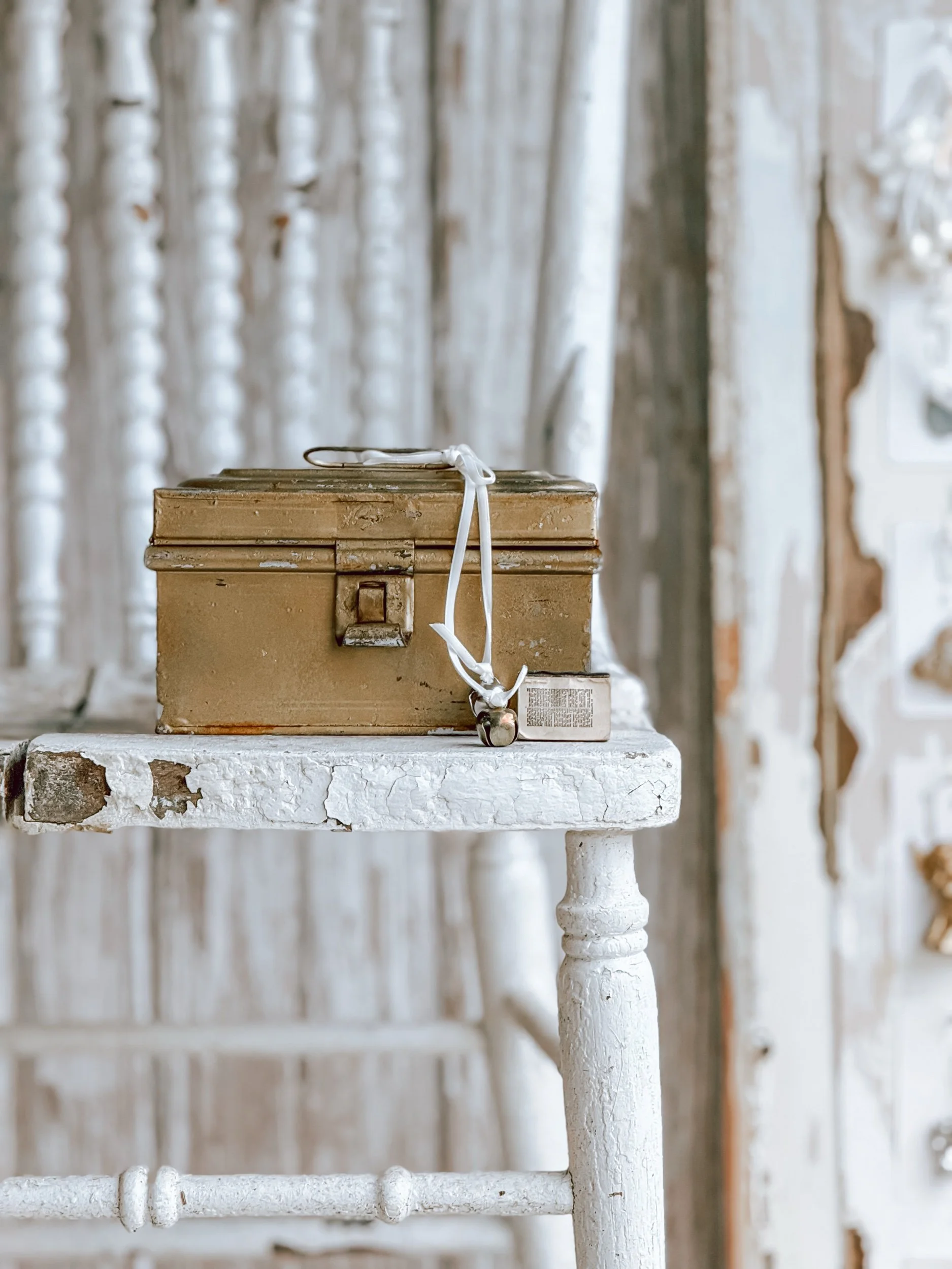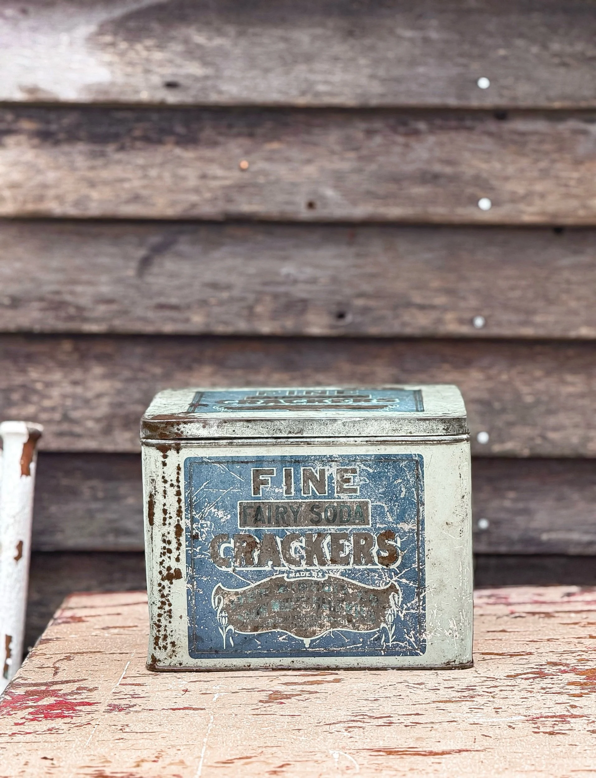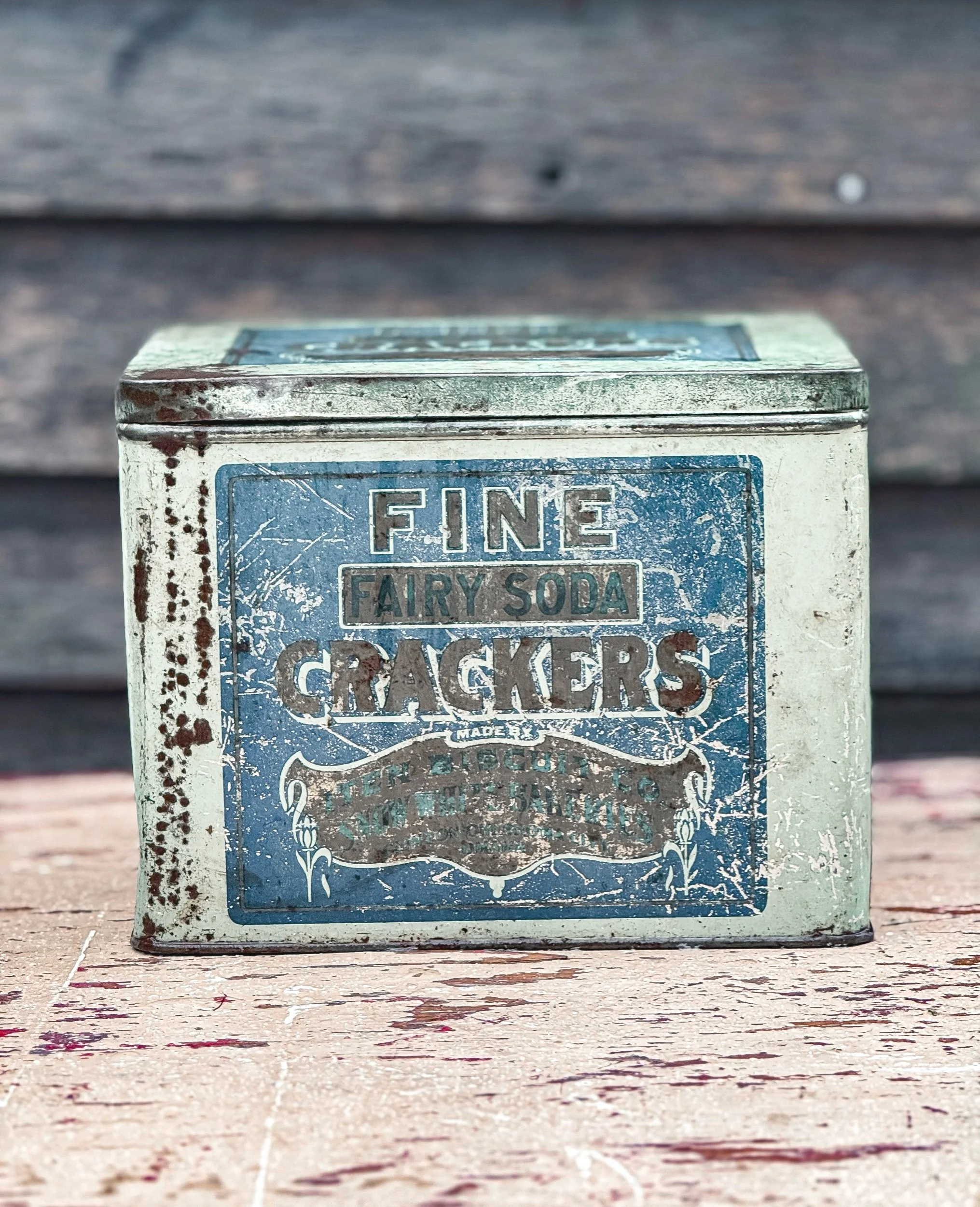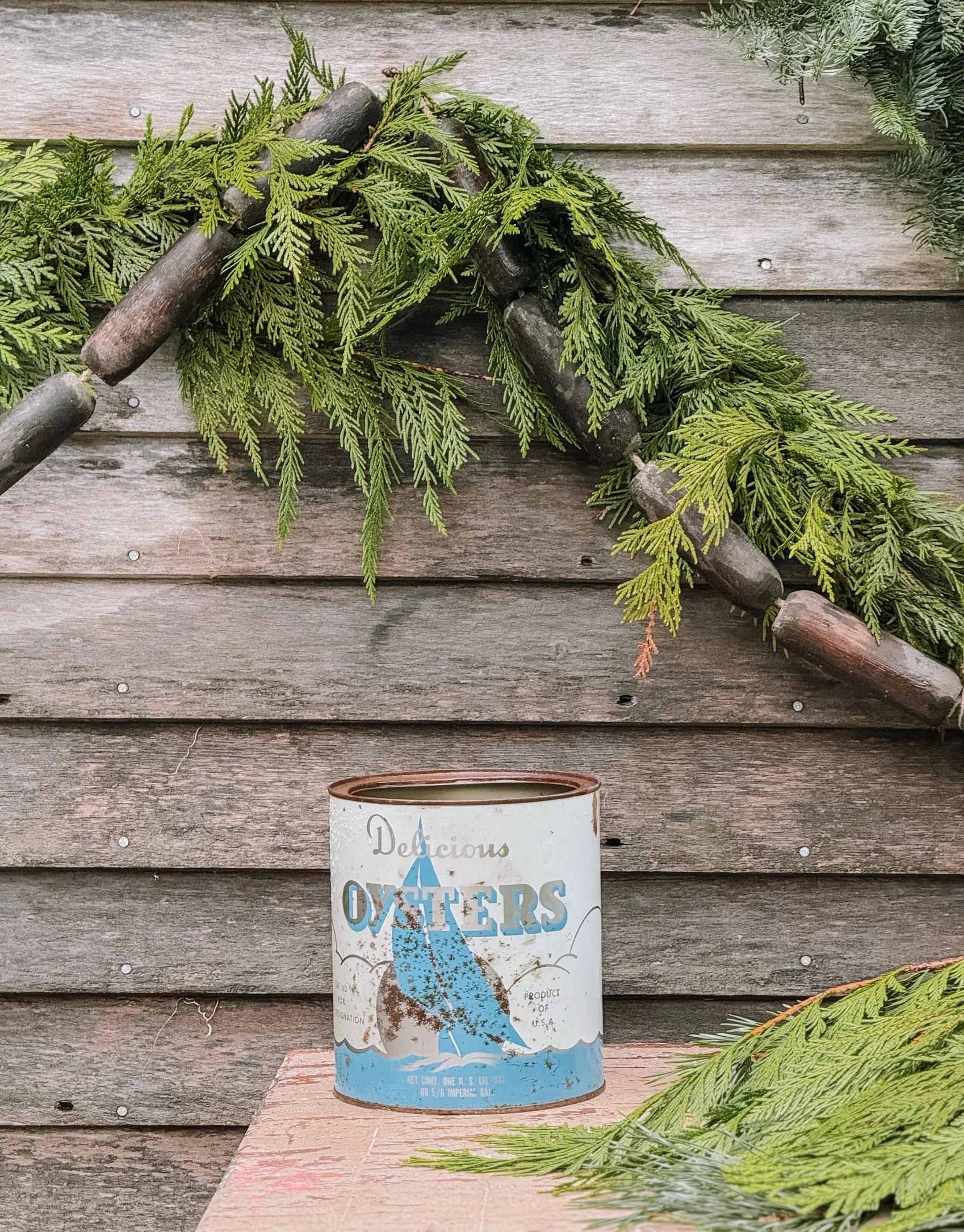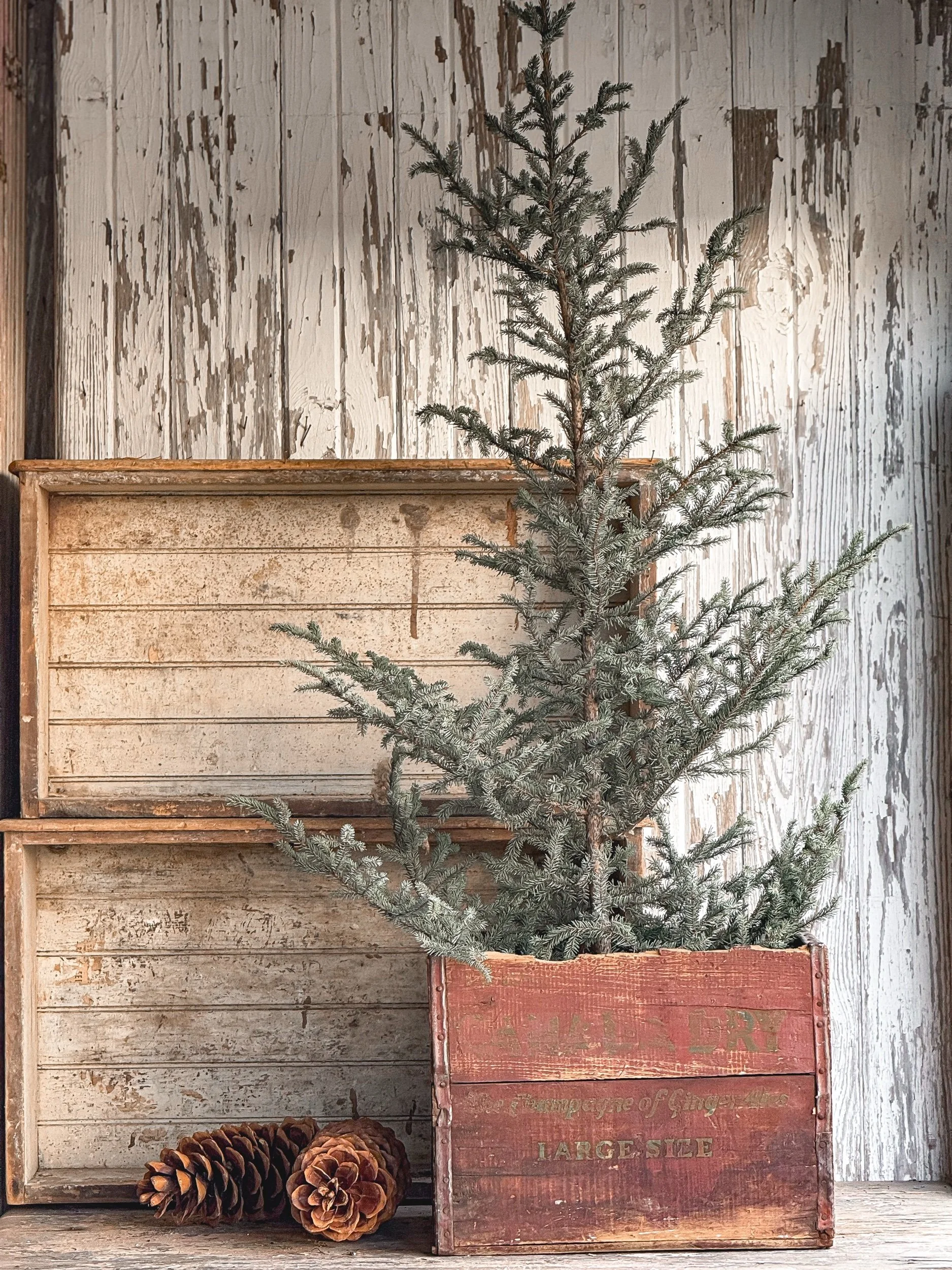 Antique Lard Tin w/ Vintage Tinsel Tree