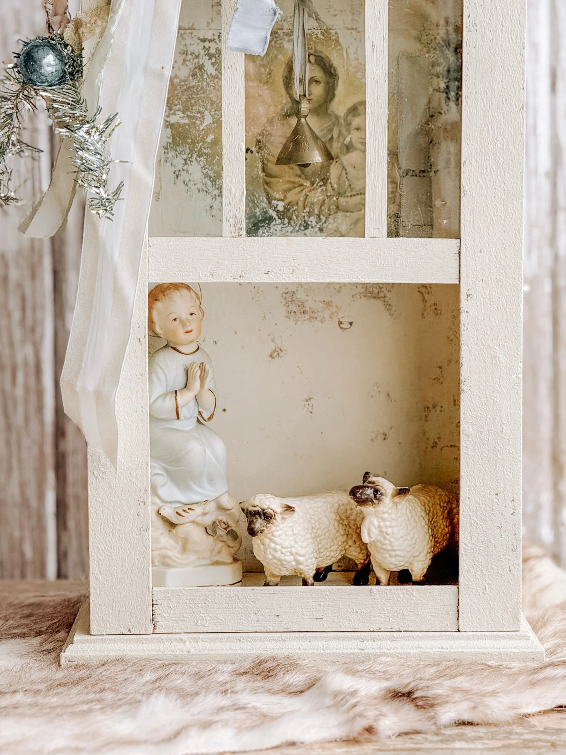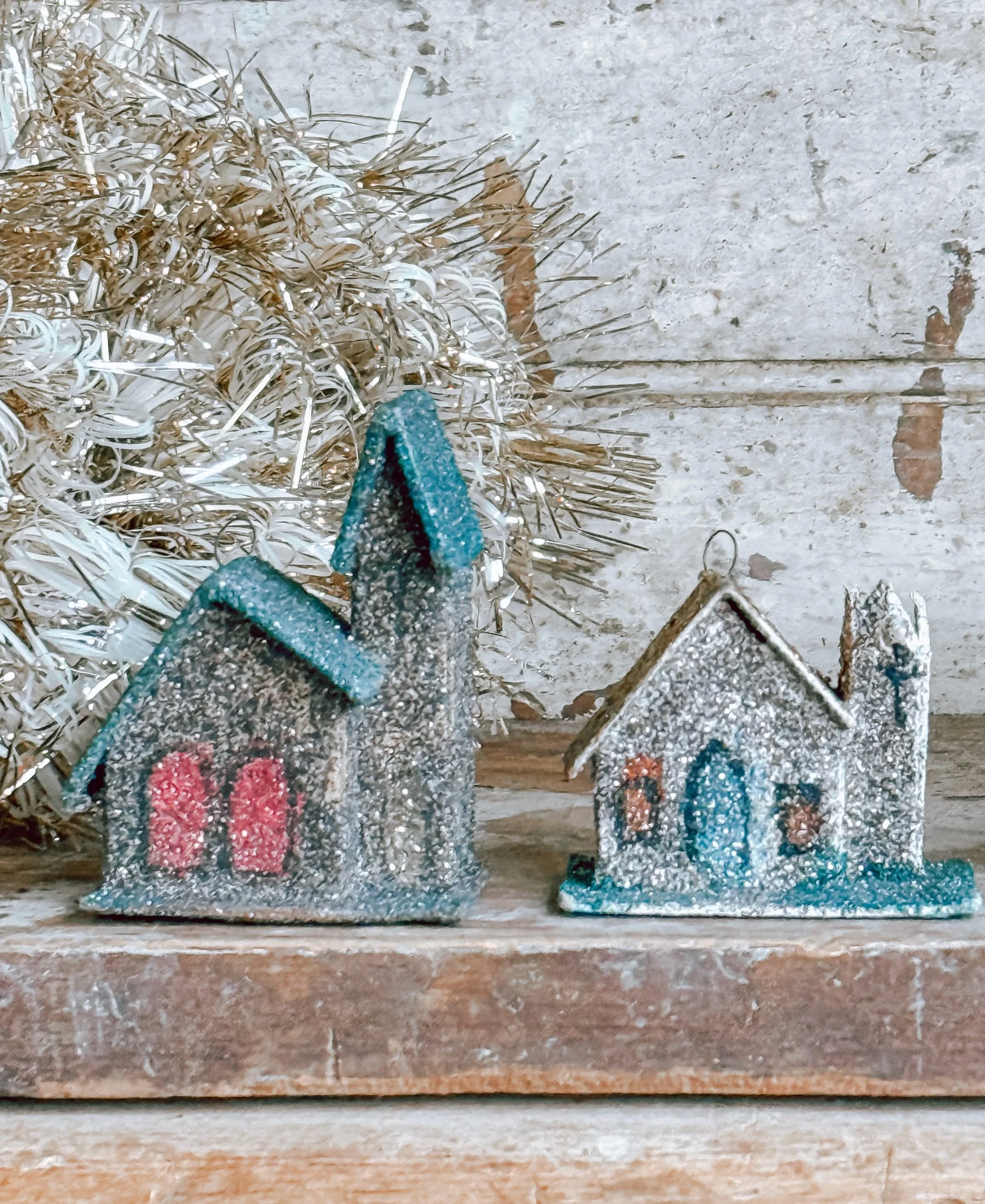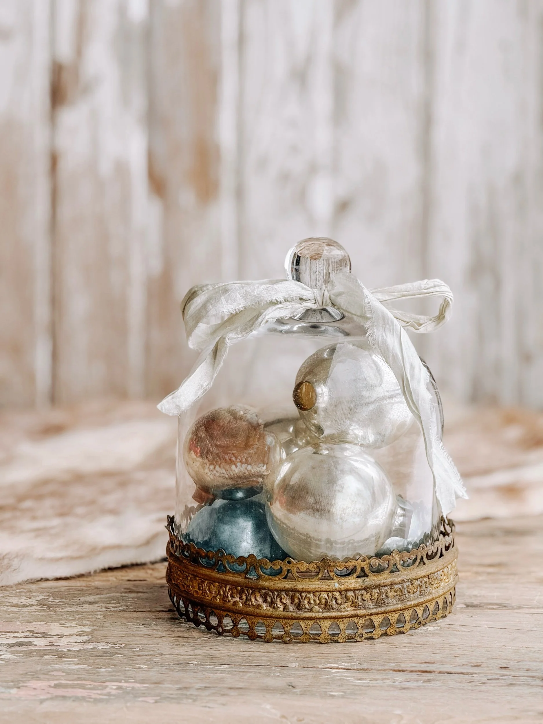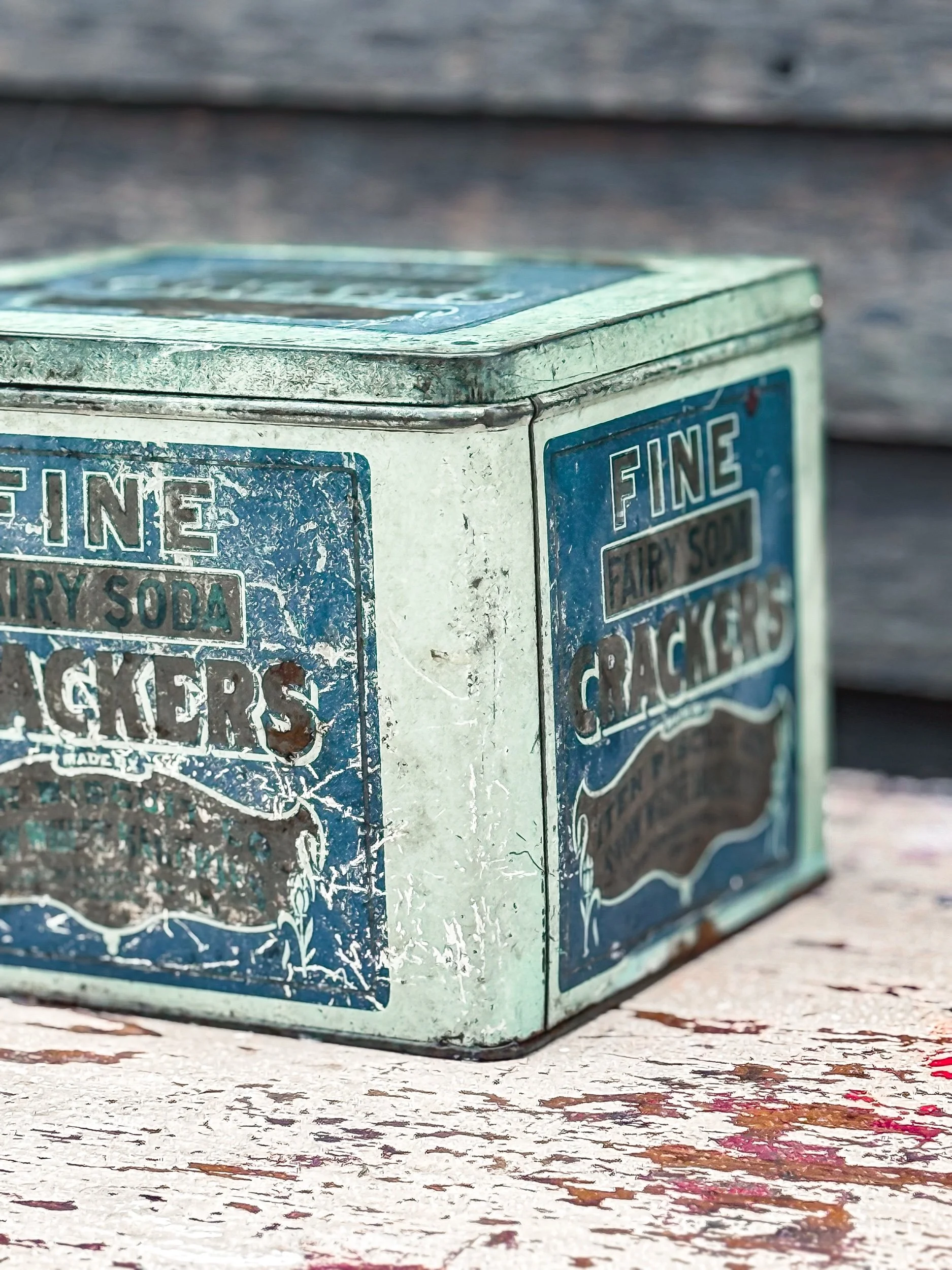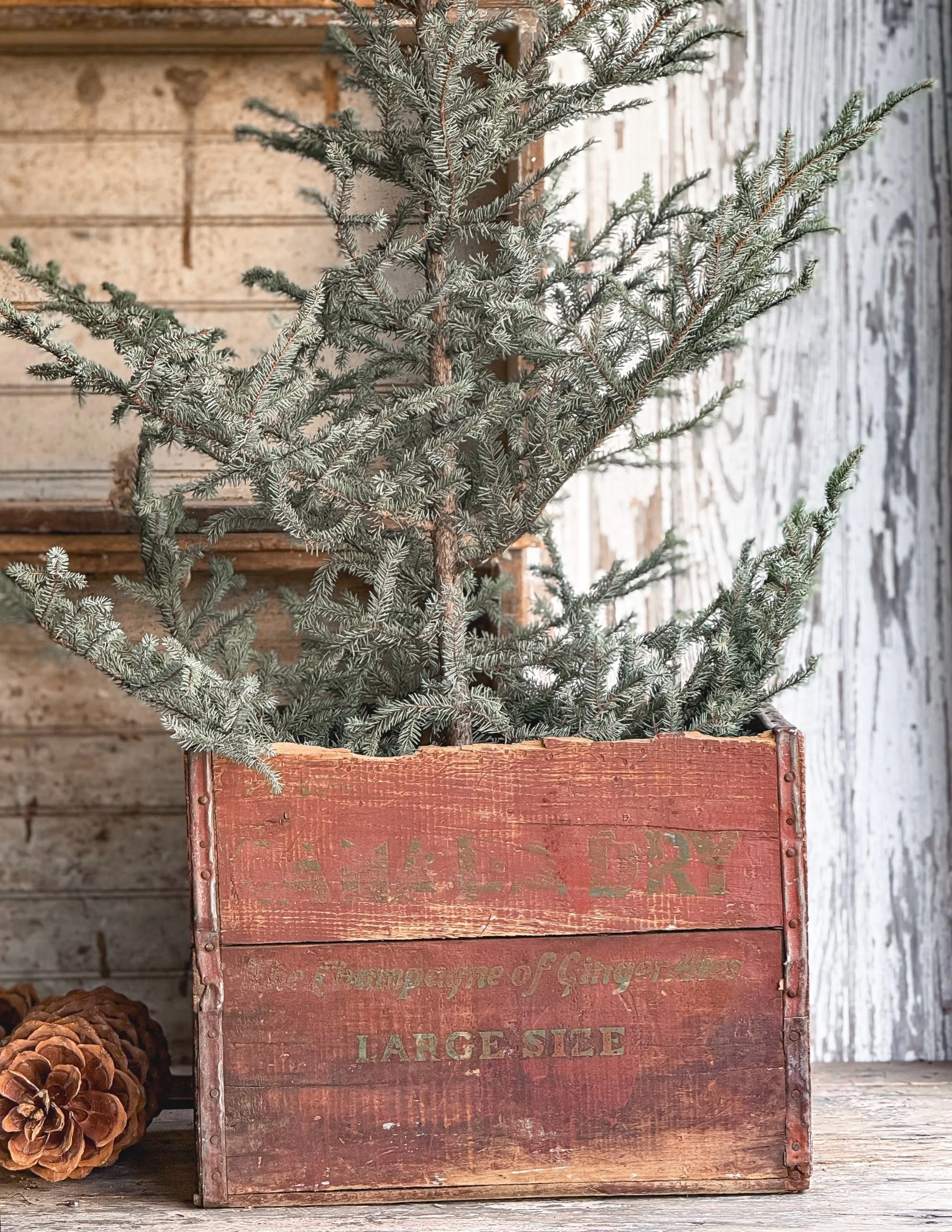 Antique Lard Tin w/ Vintage Tinsel Tree