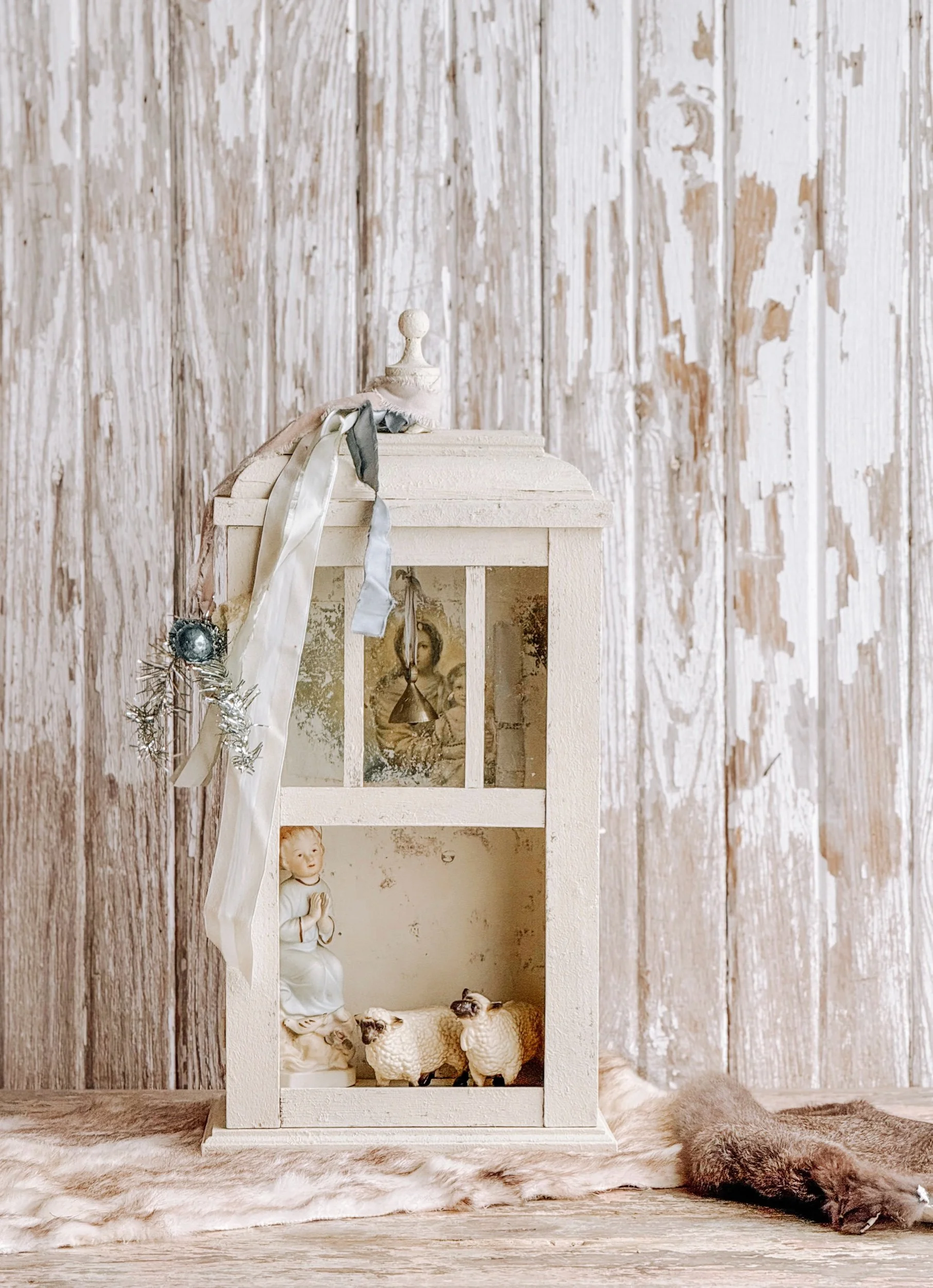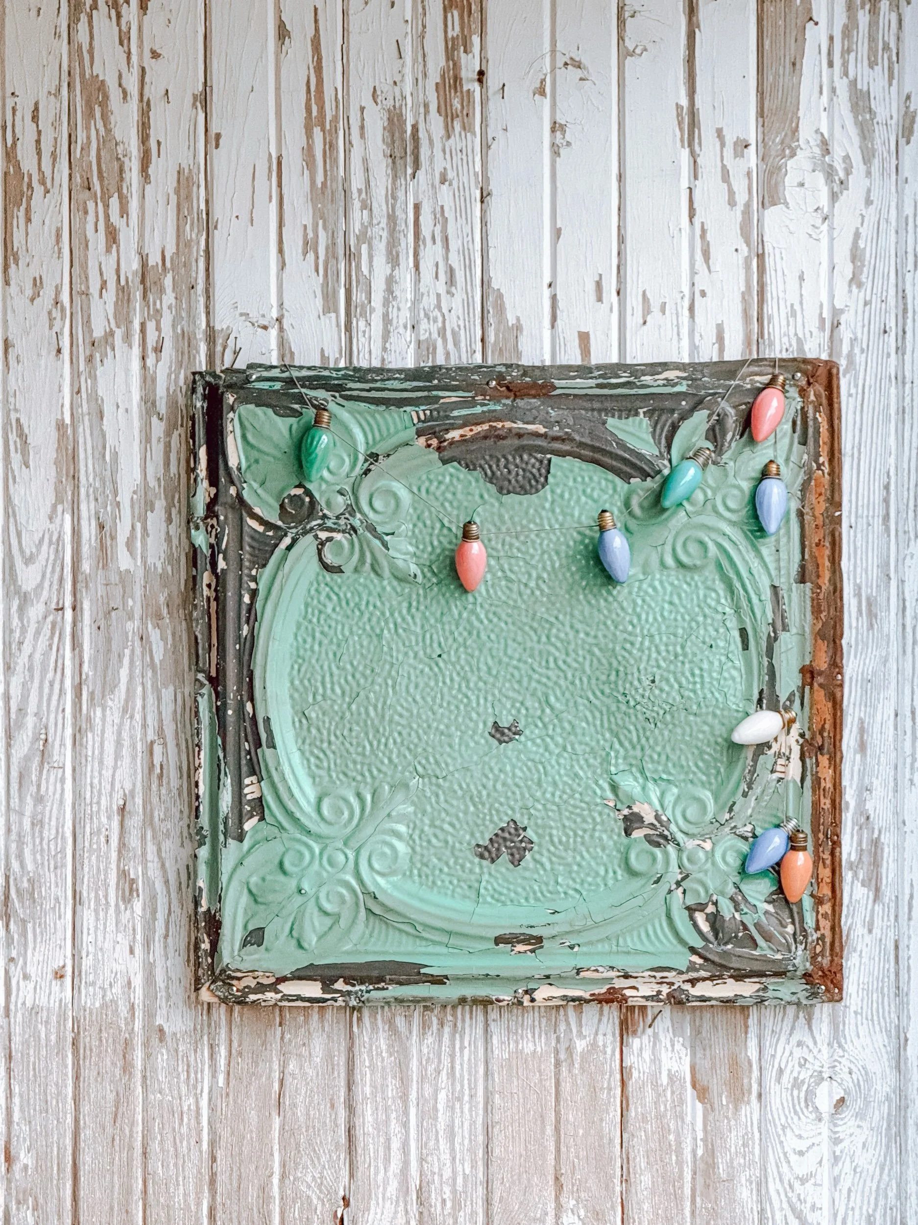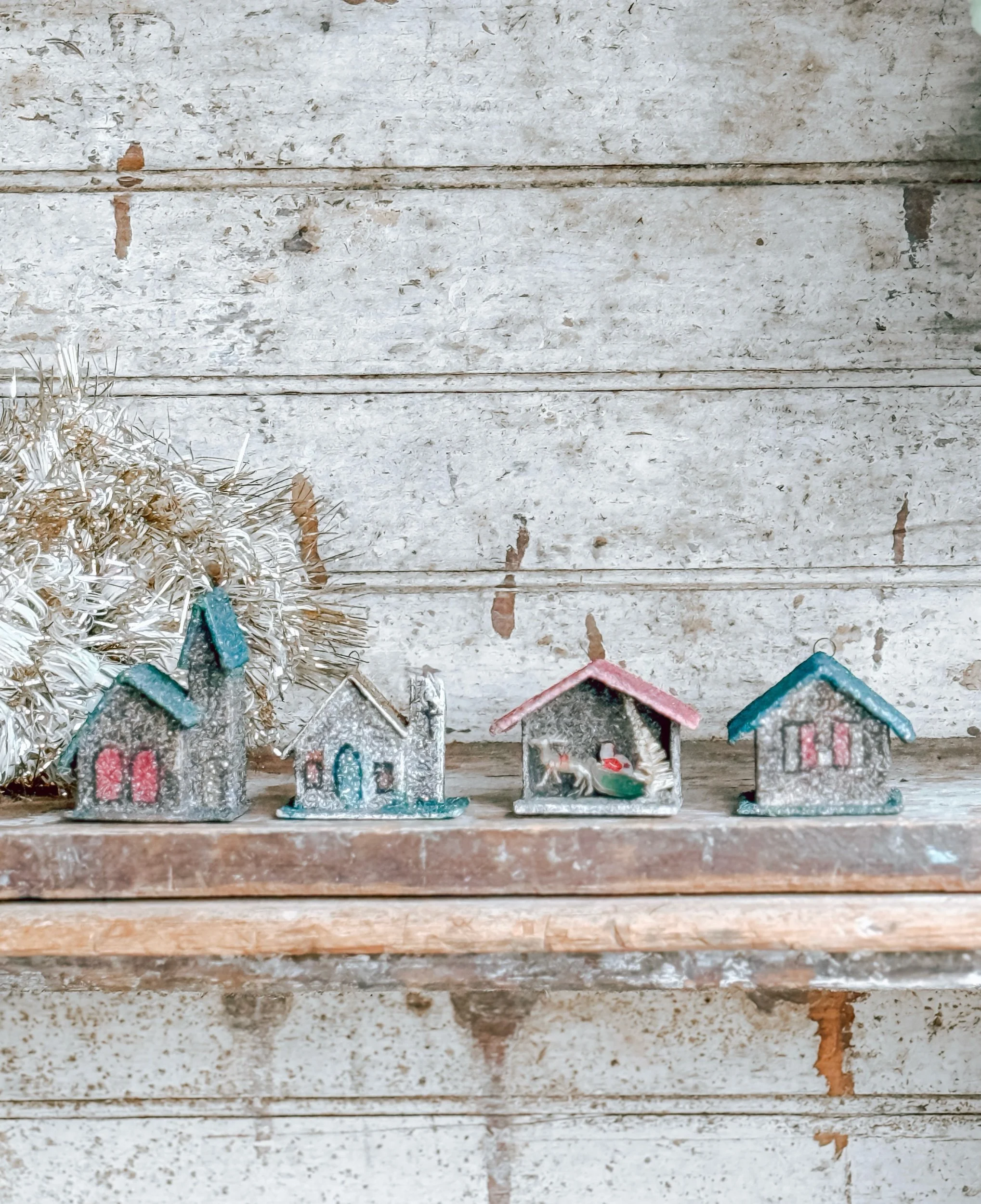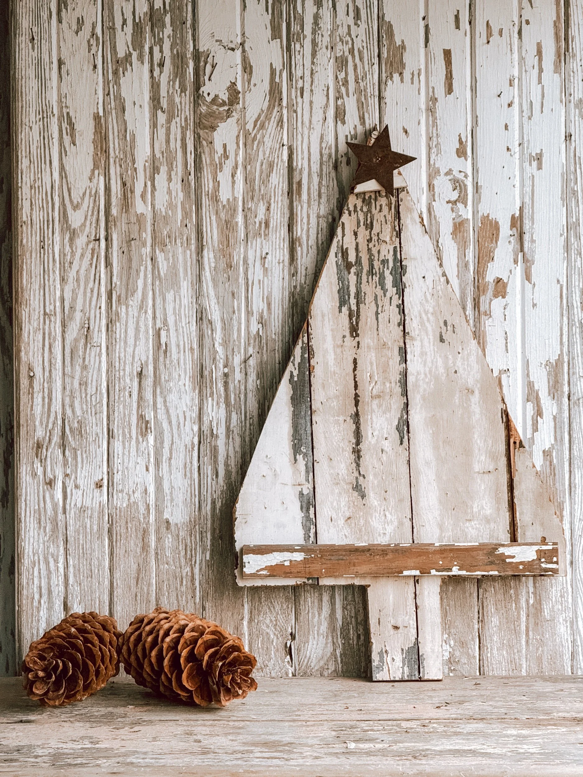Antique Lard Tin w/ Vintage Tinsel Tree
