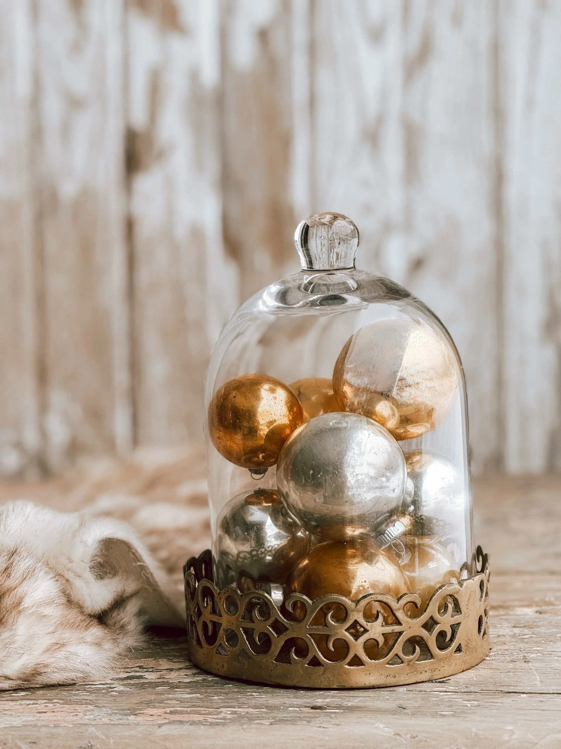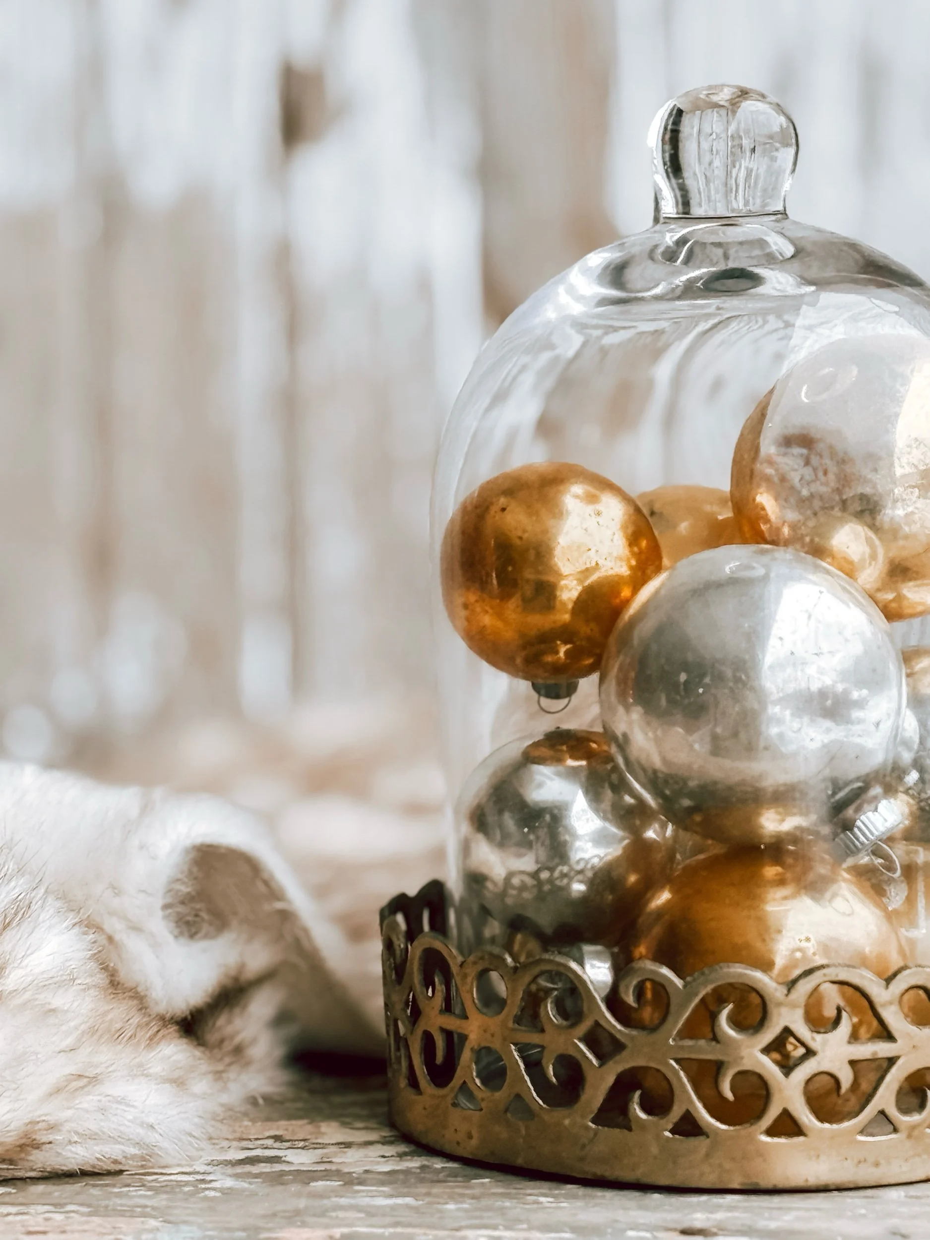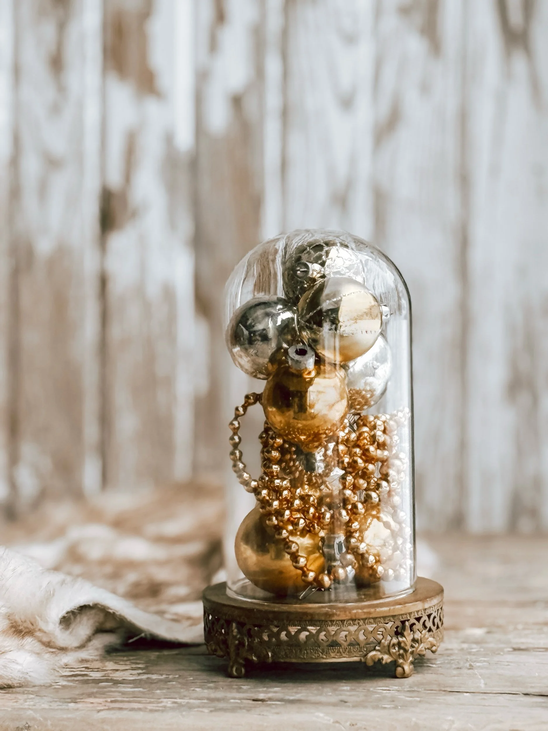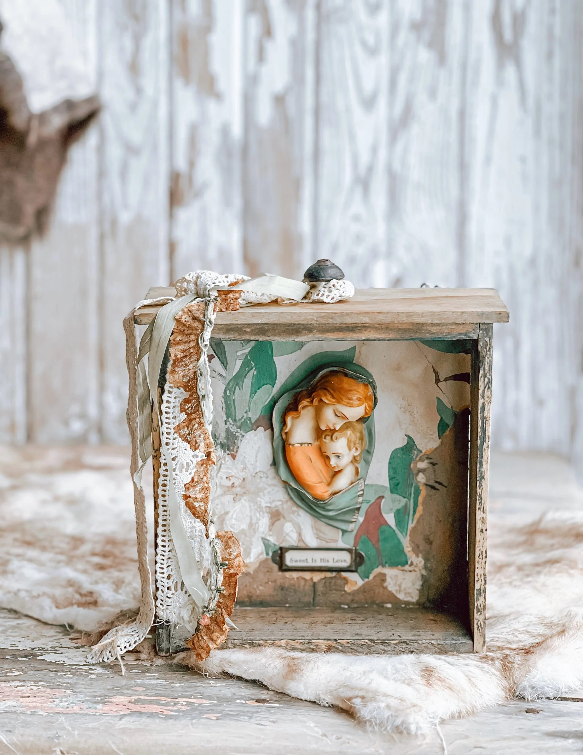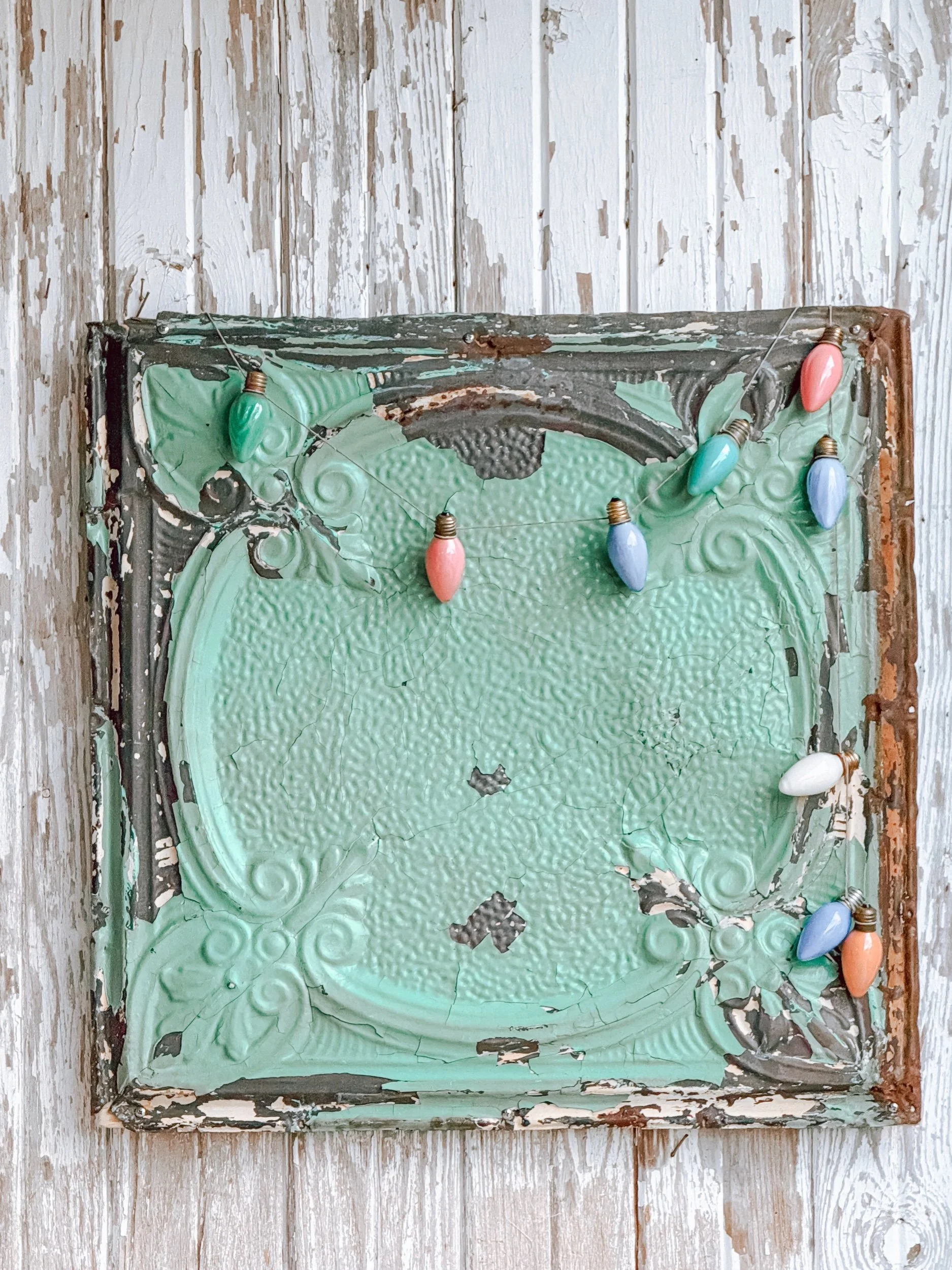 Antique Lard Tin w/ Vintage Tinsel Tree