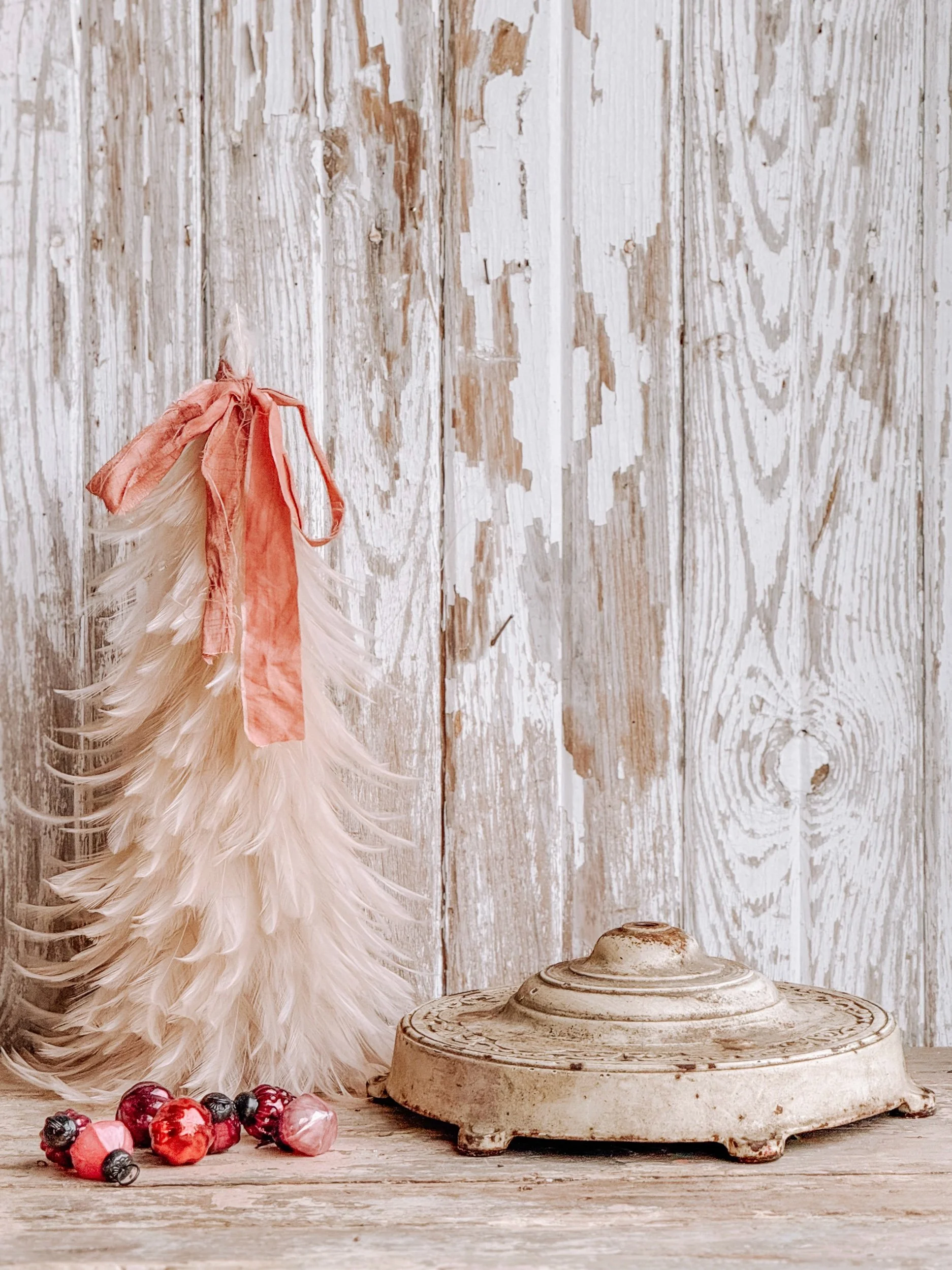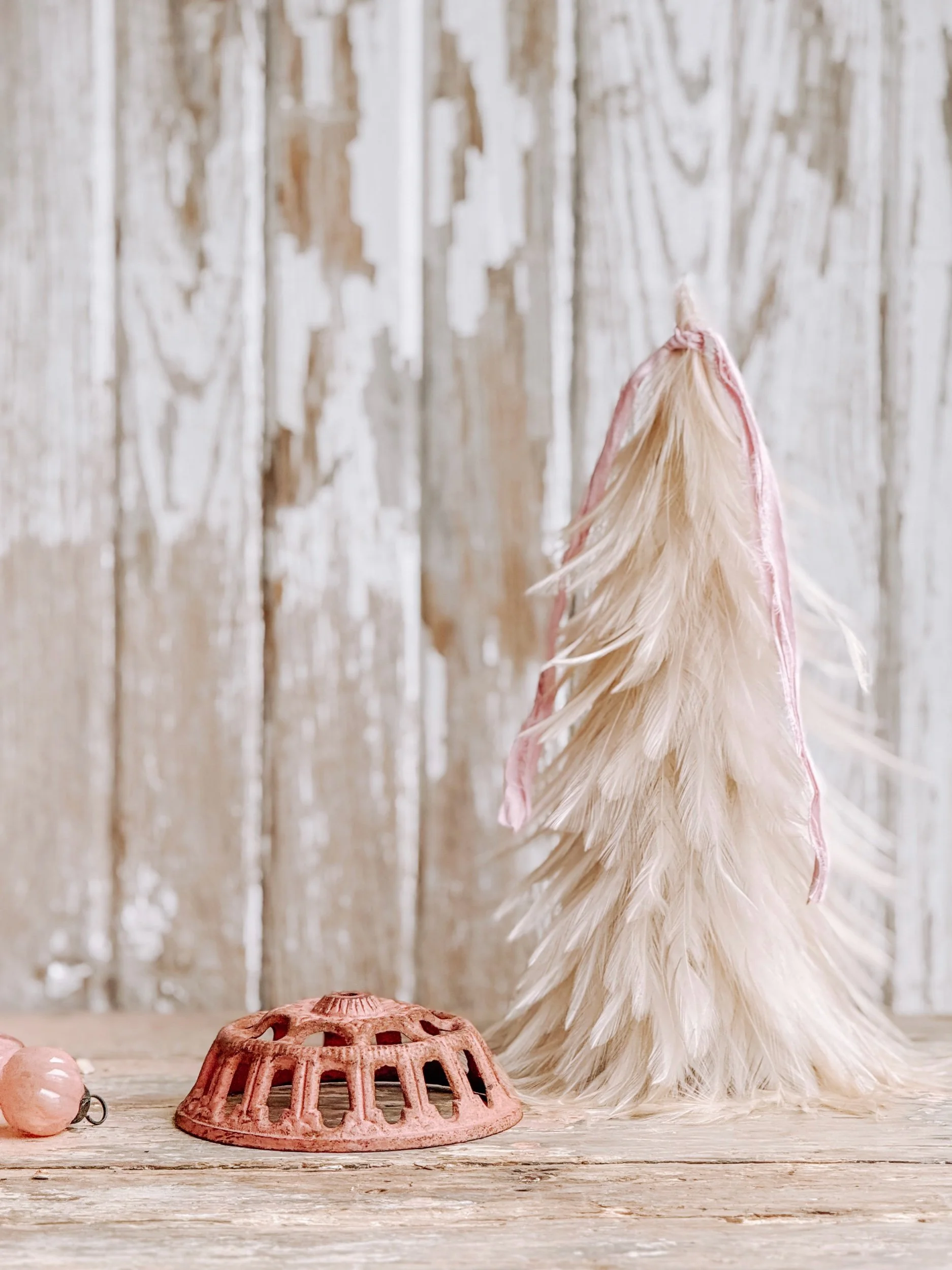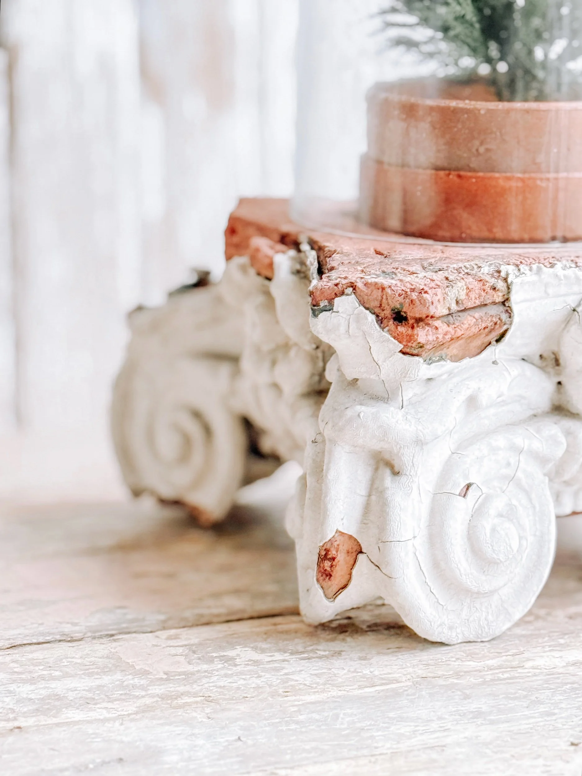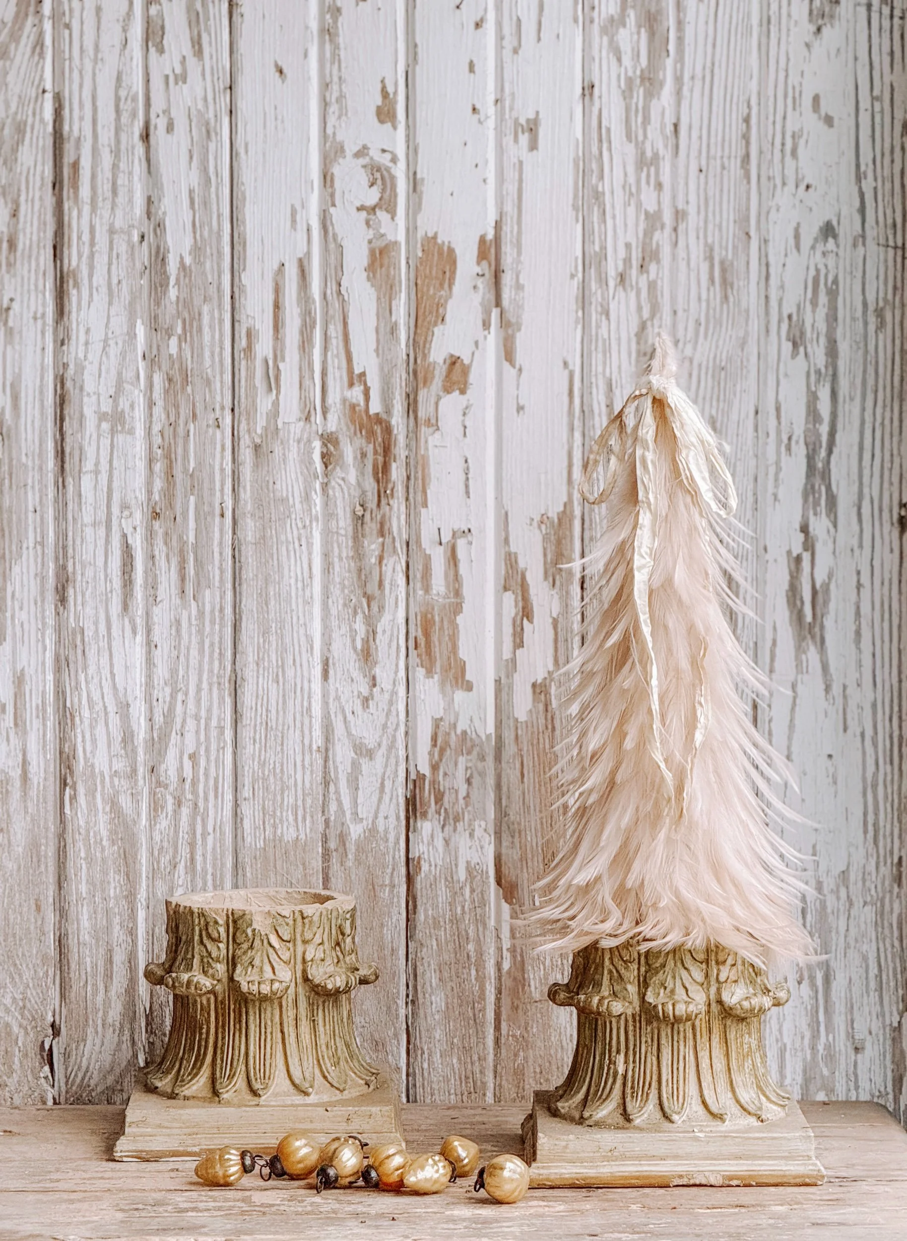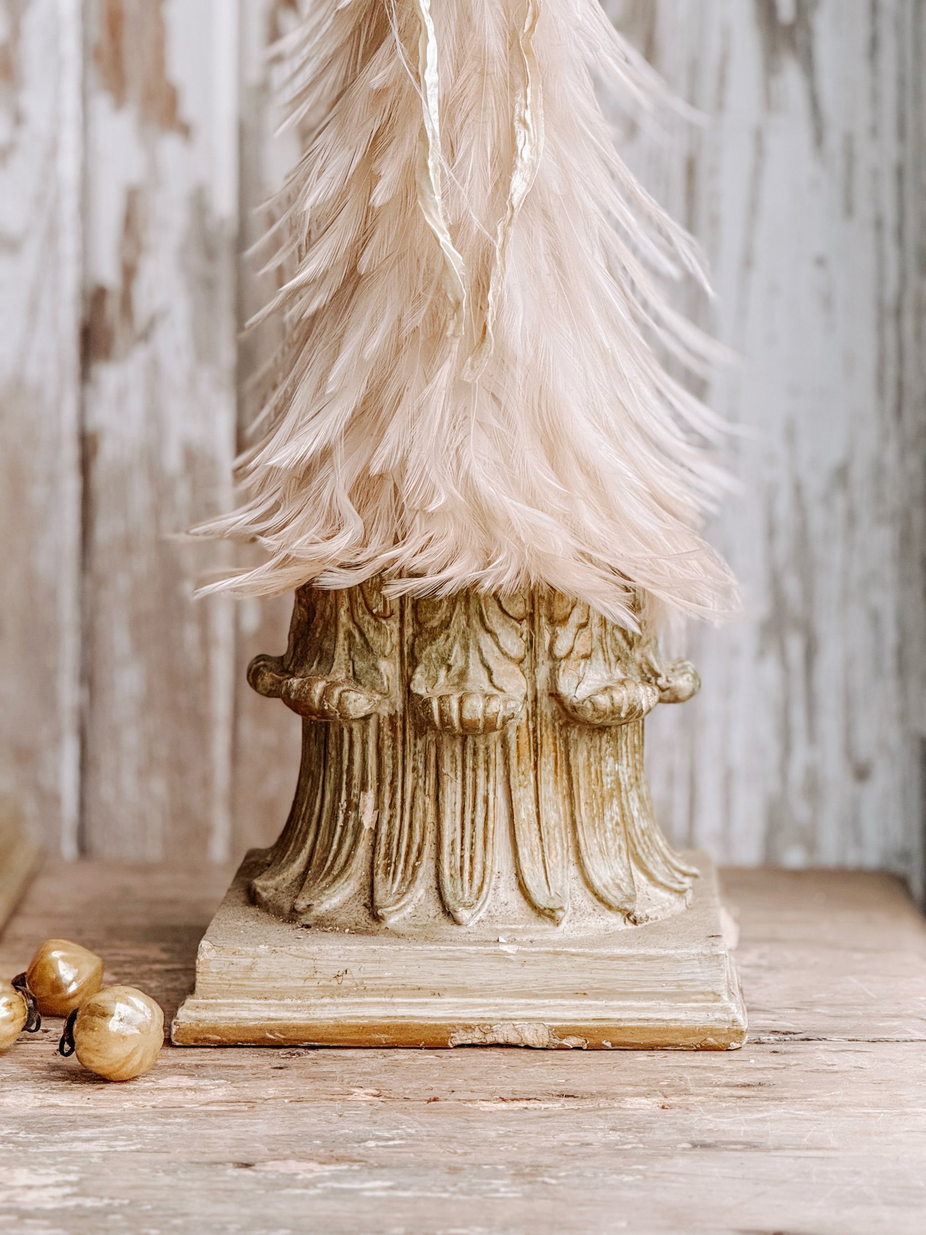 Antique Salvaged Capital w/ Pale Pink Feather Tree