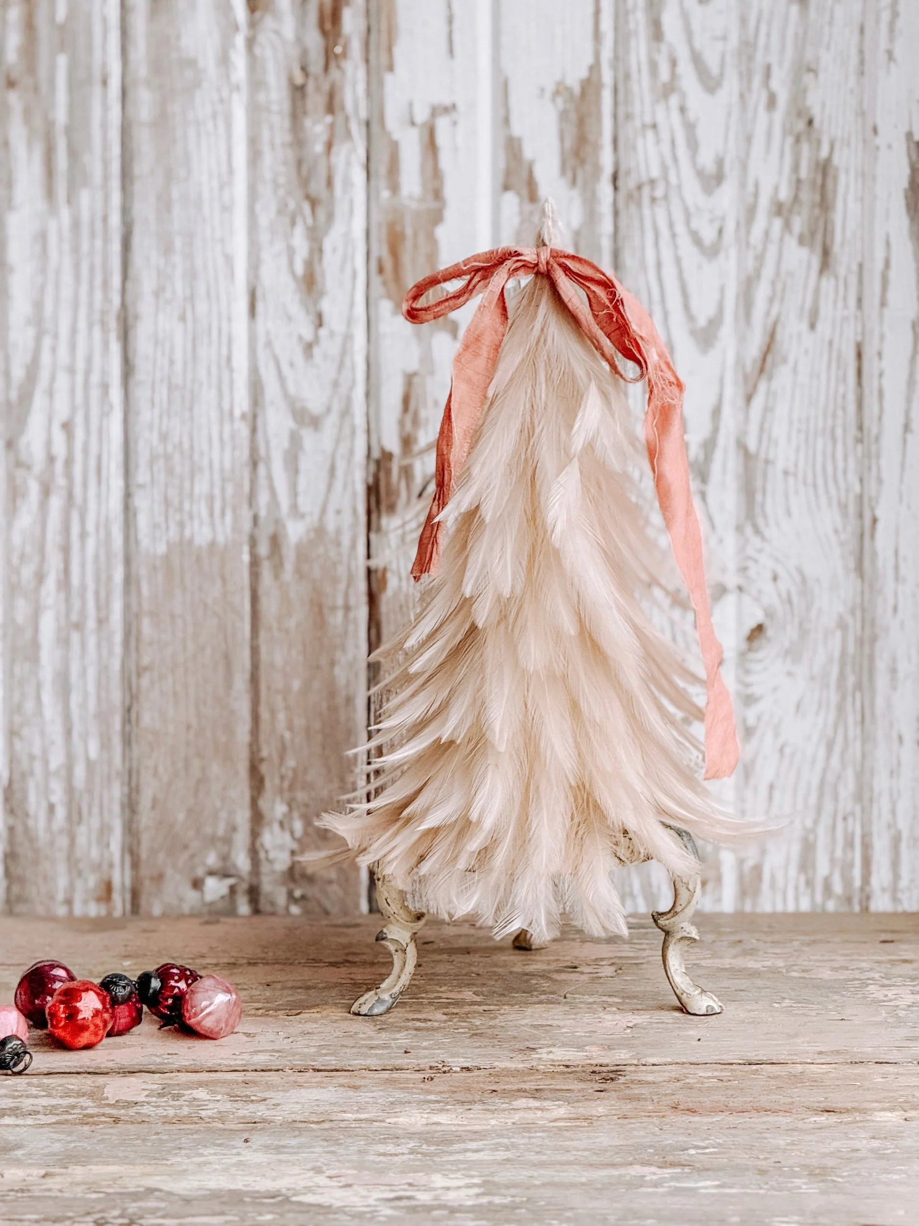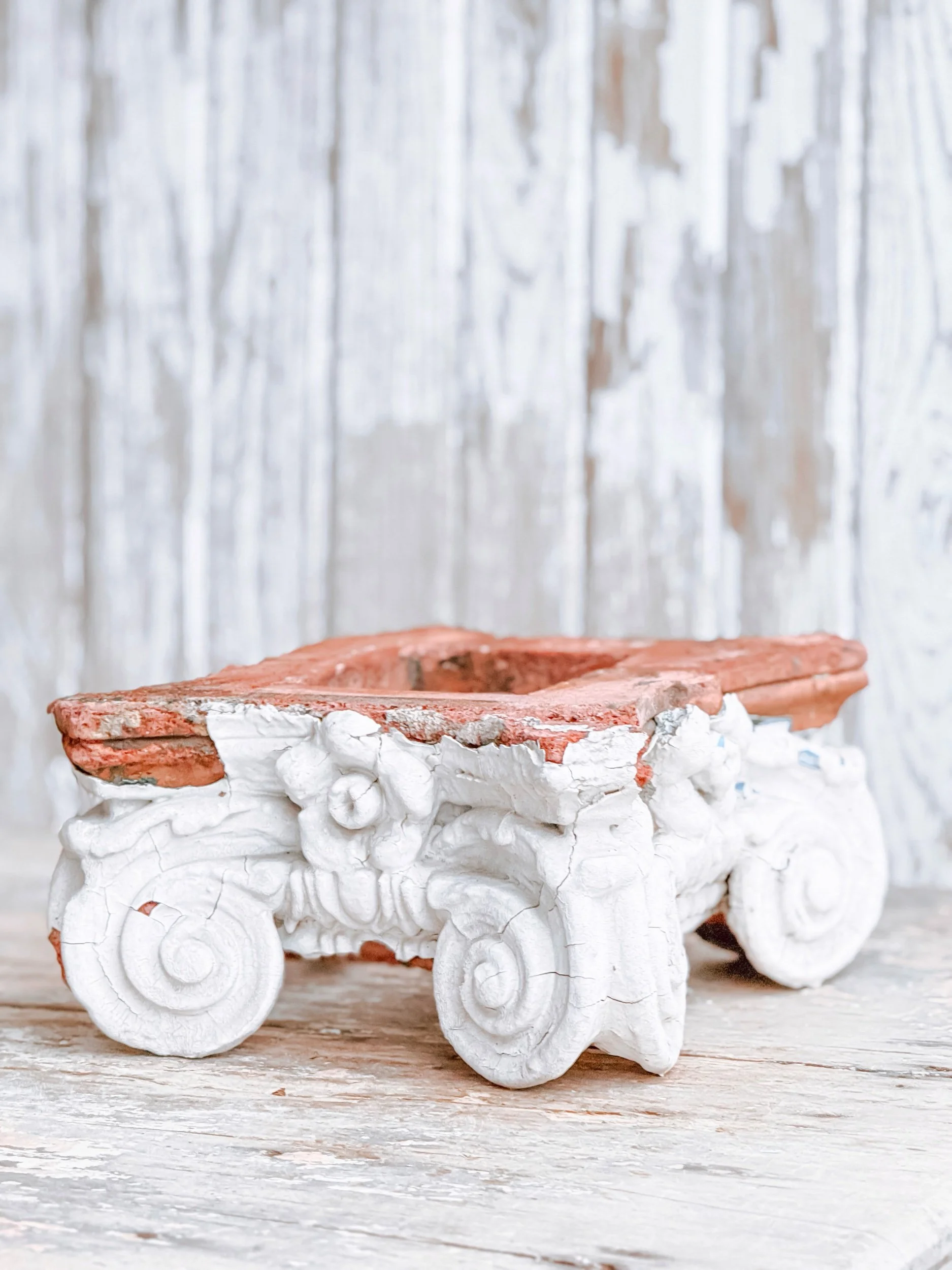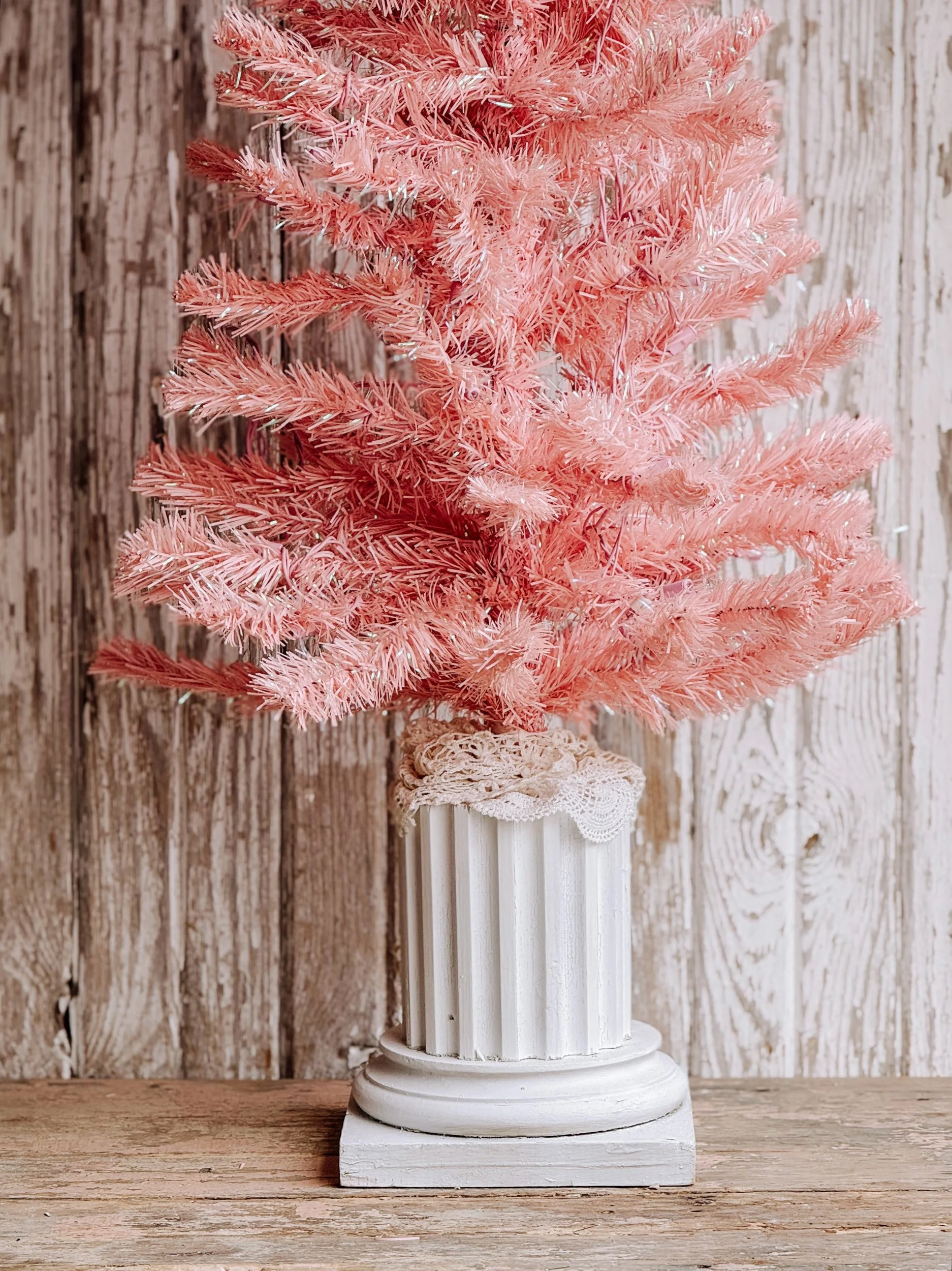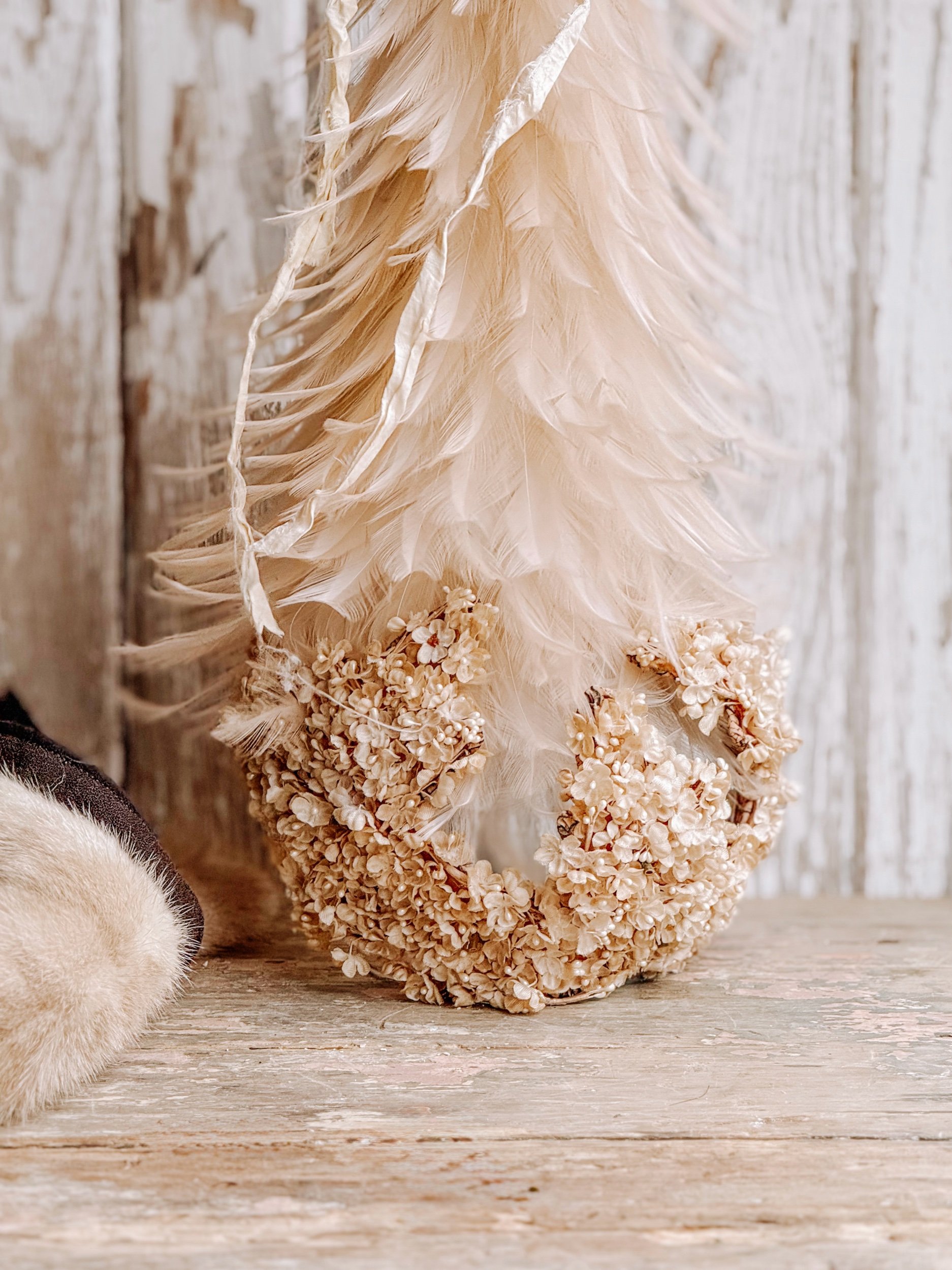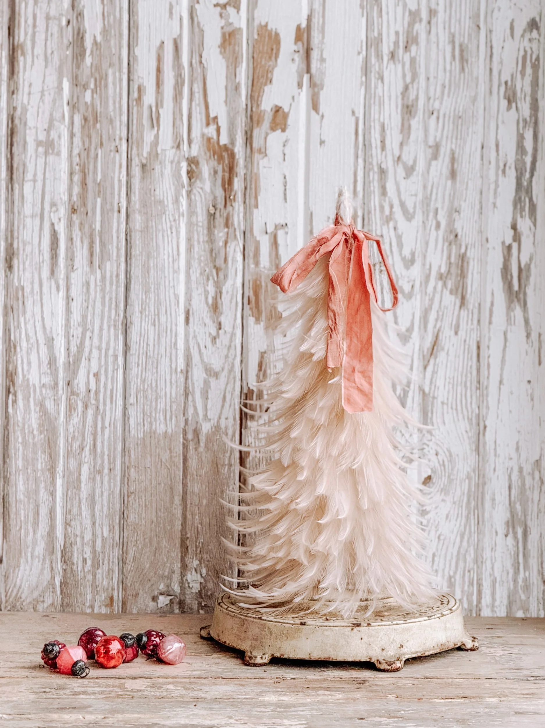 Antique Salvaged Capital w/ Pale Pink Feather Tree