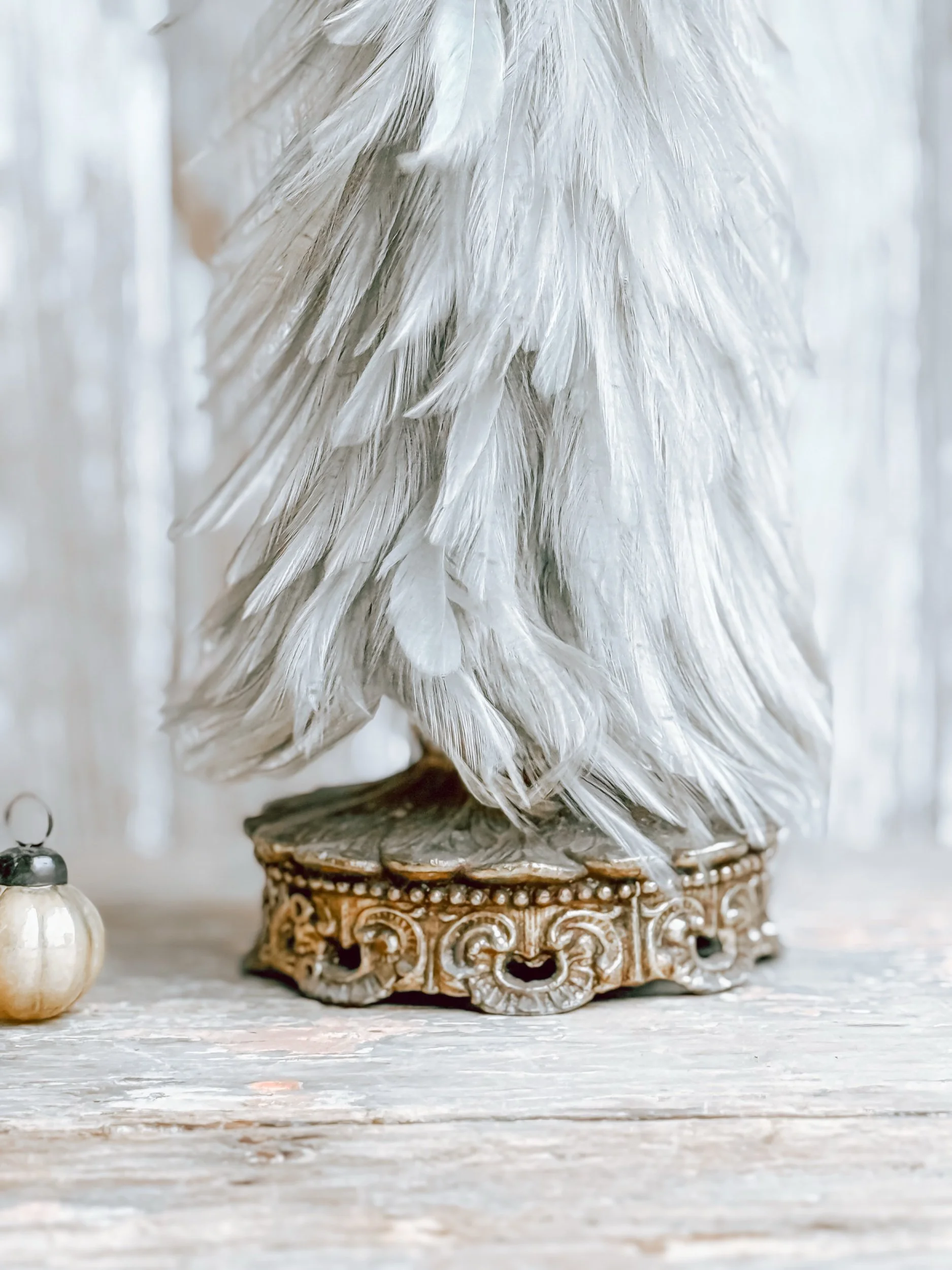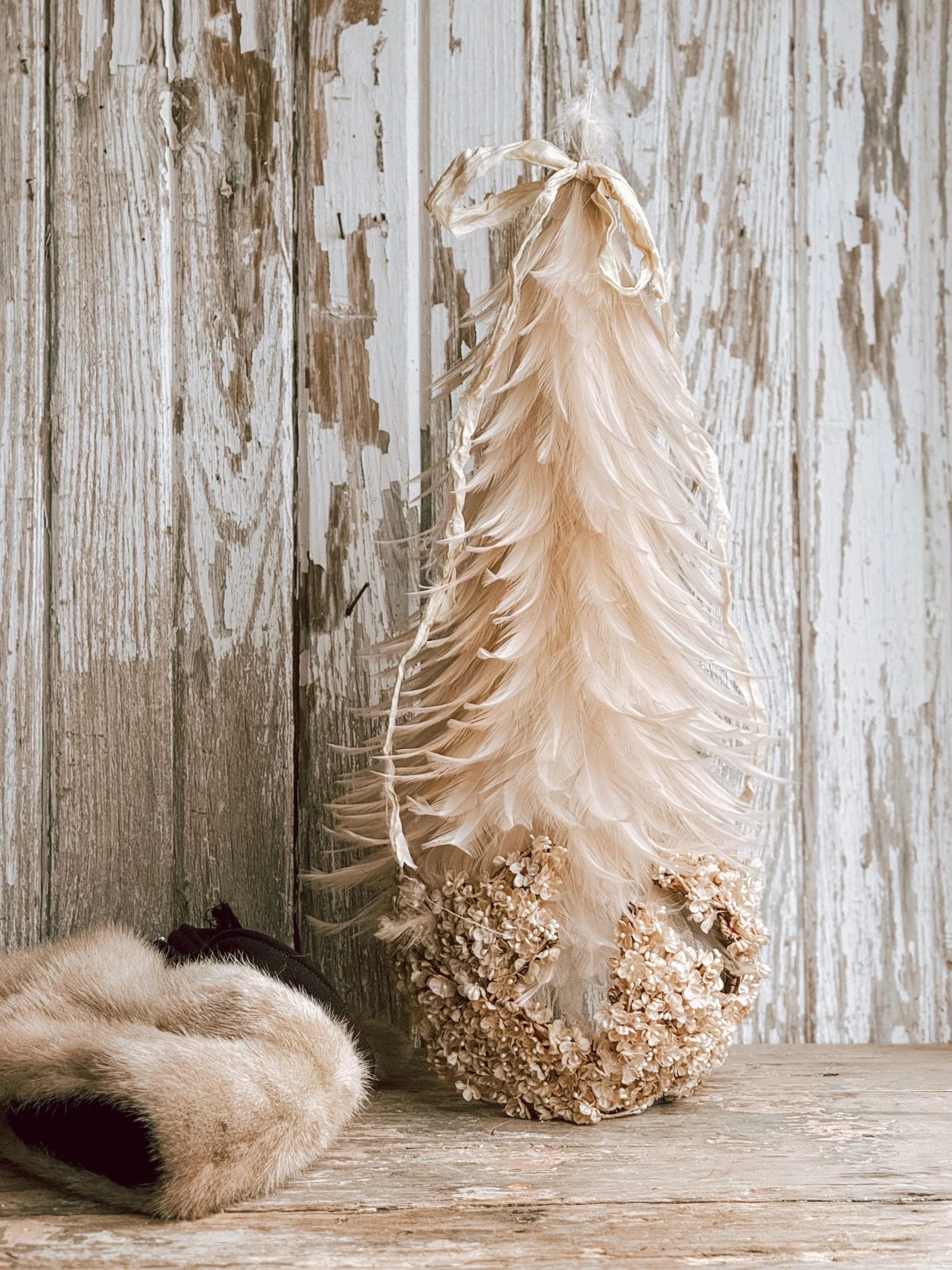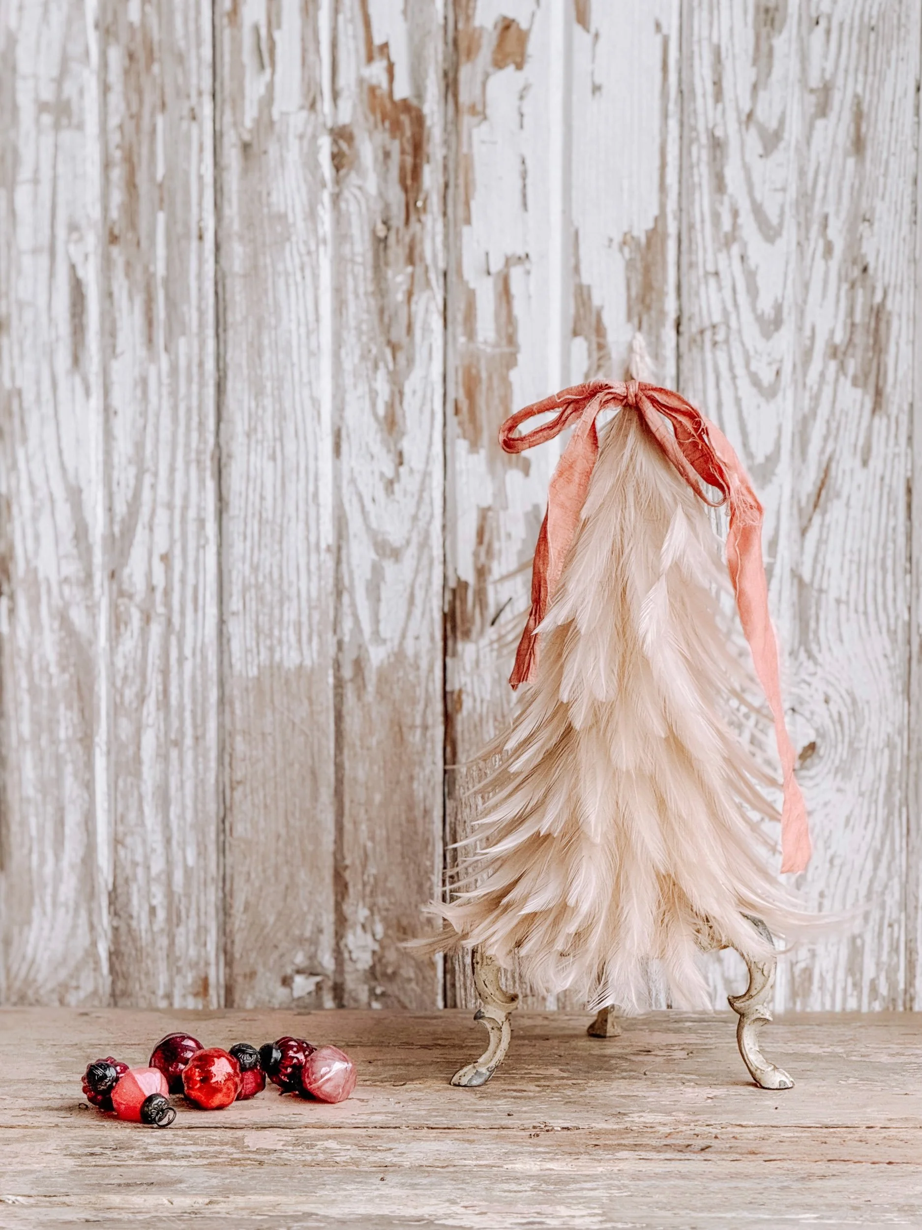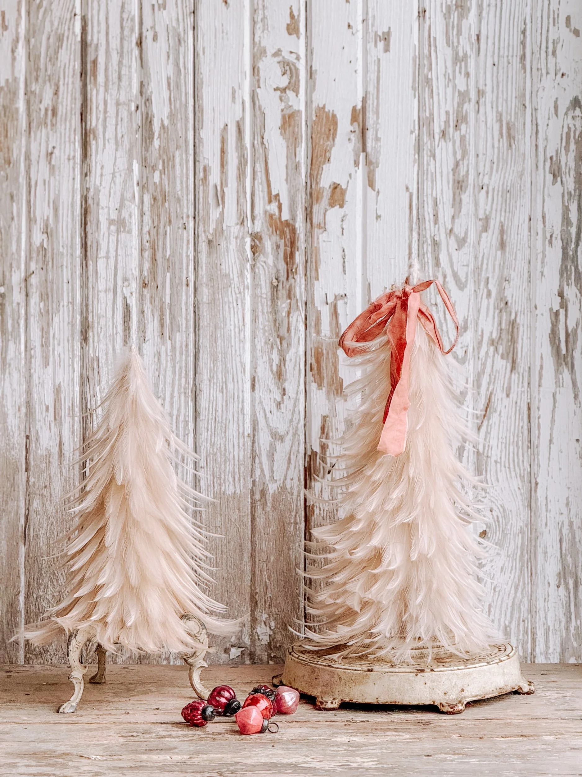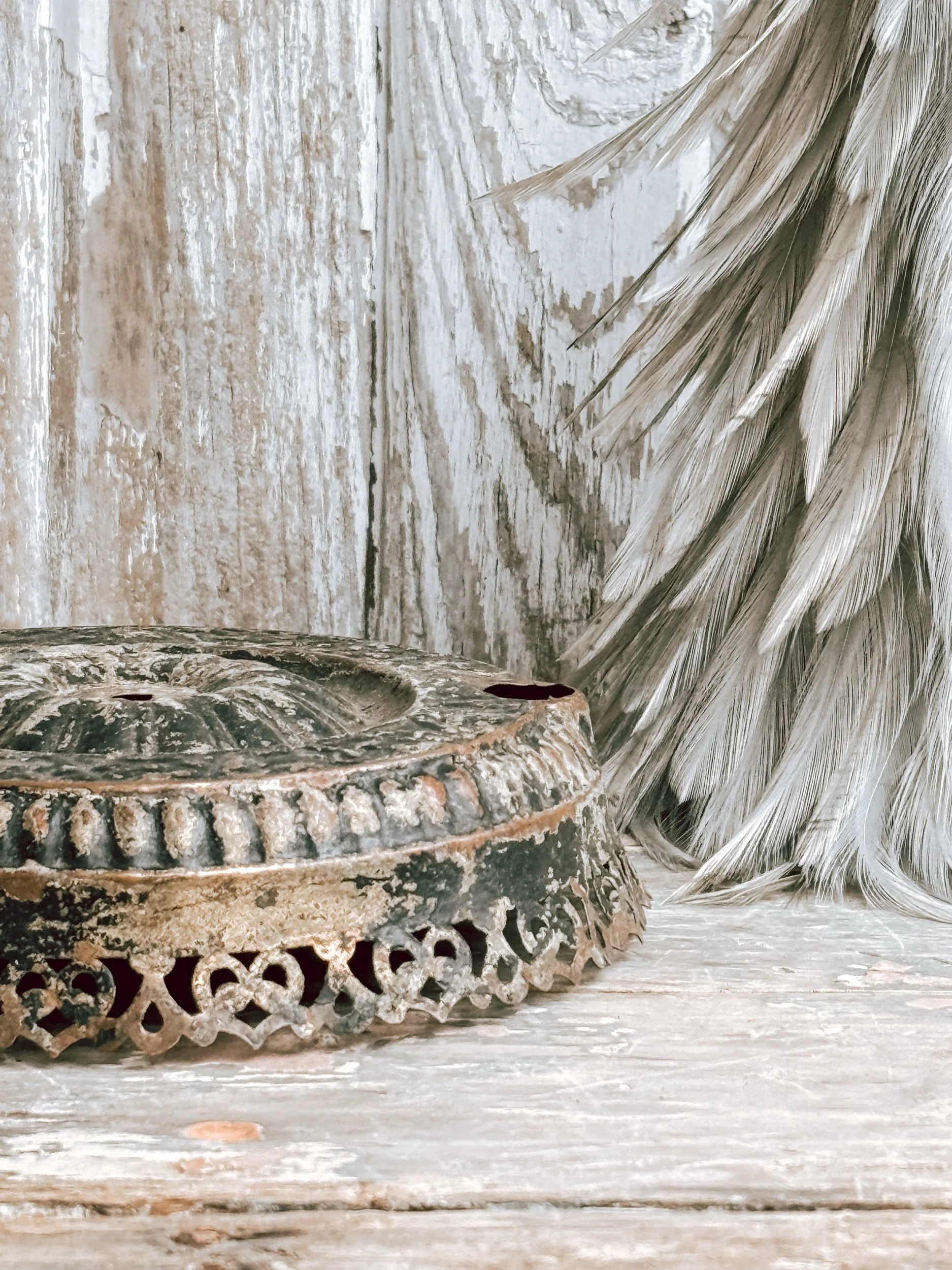 Antique Salvaged Capital w/ Pale Pink Feather Tree