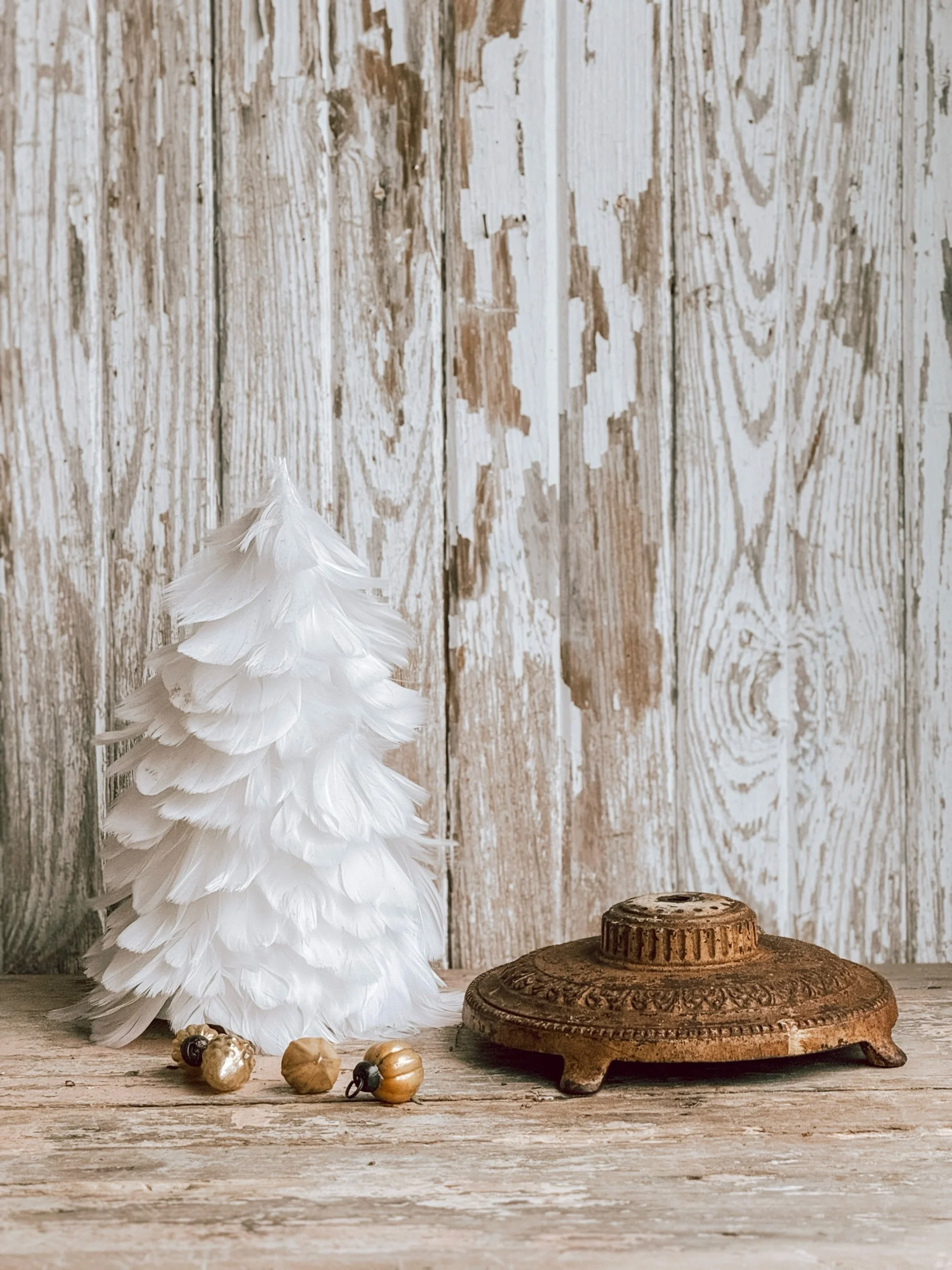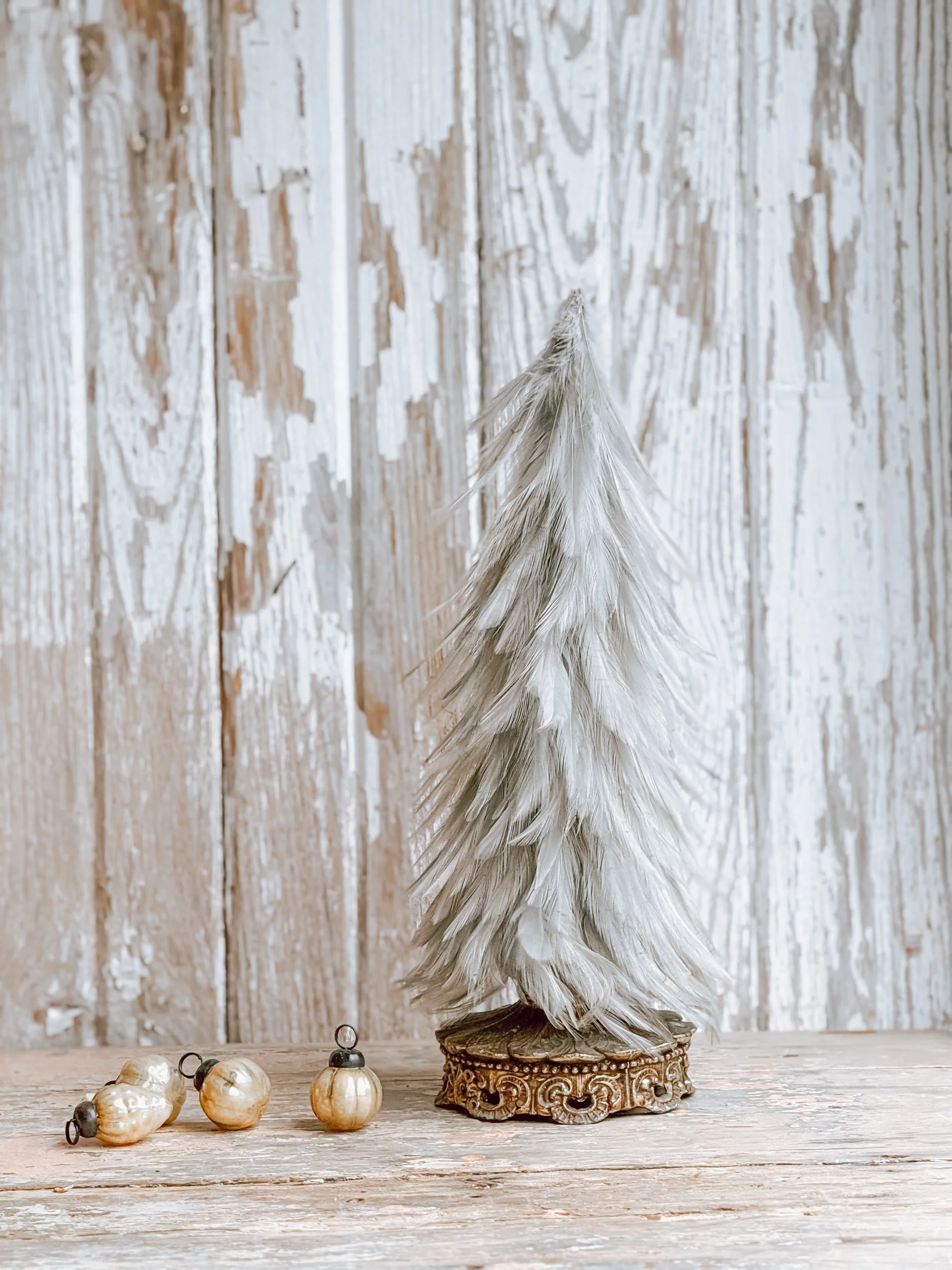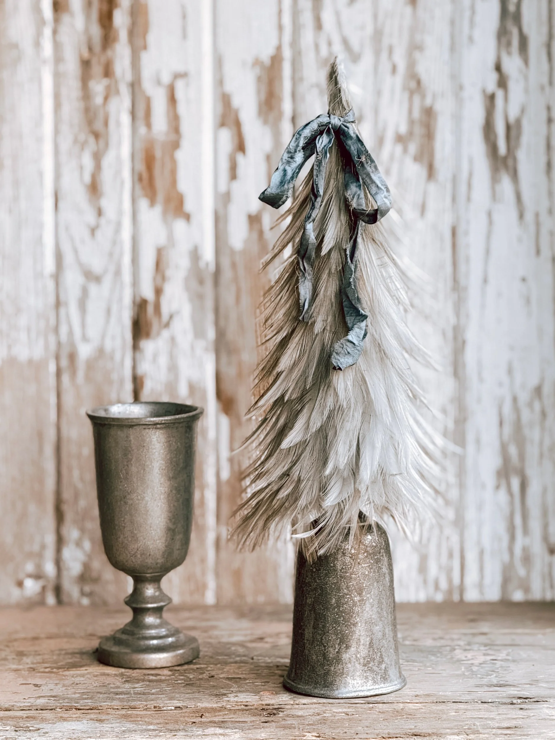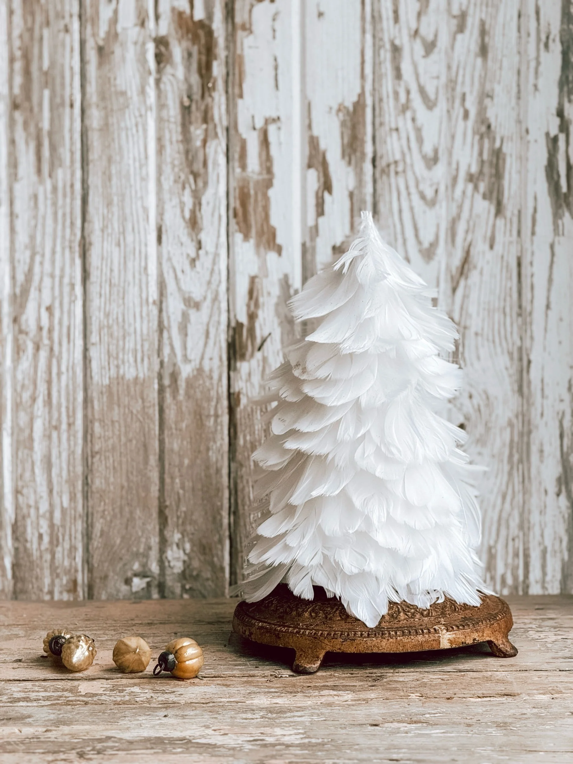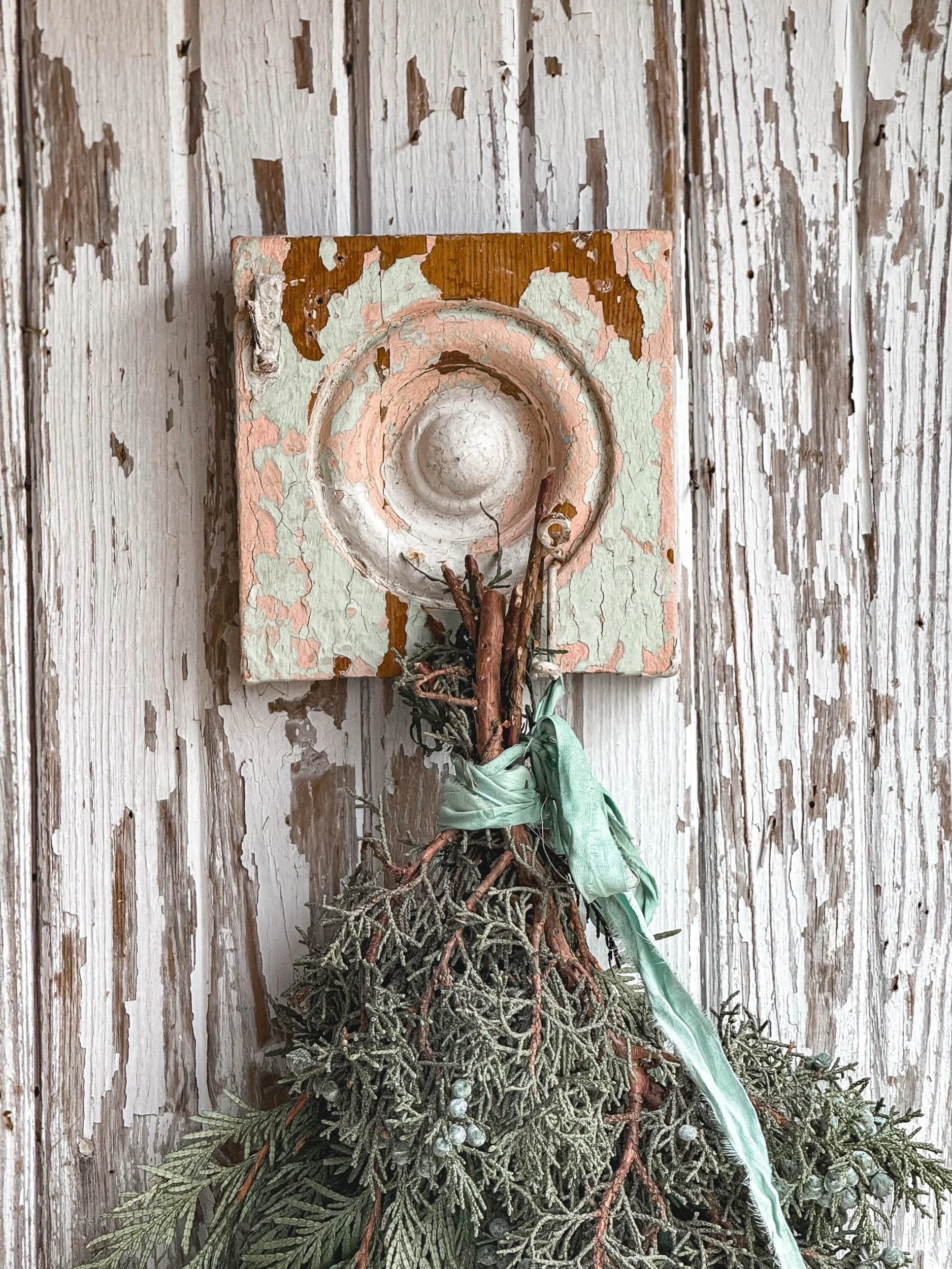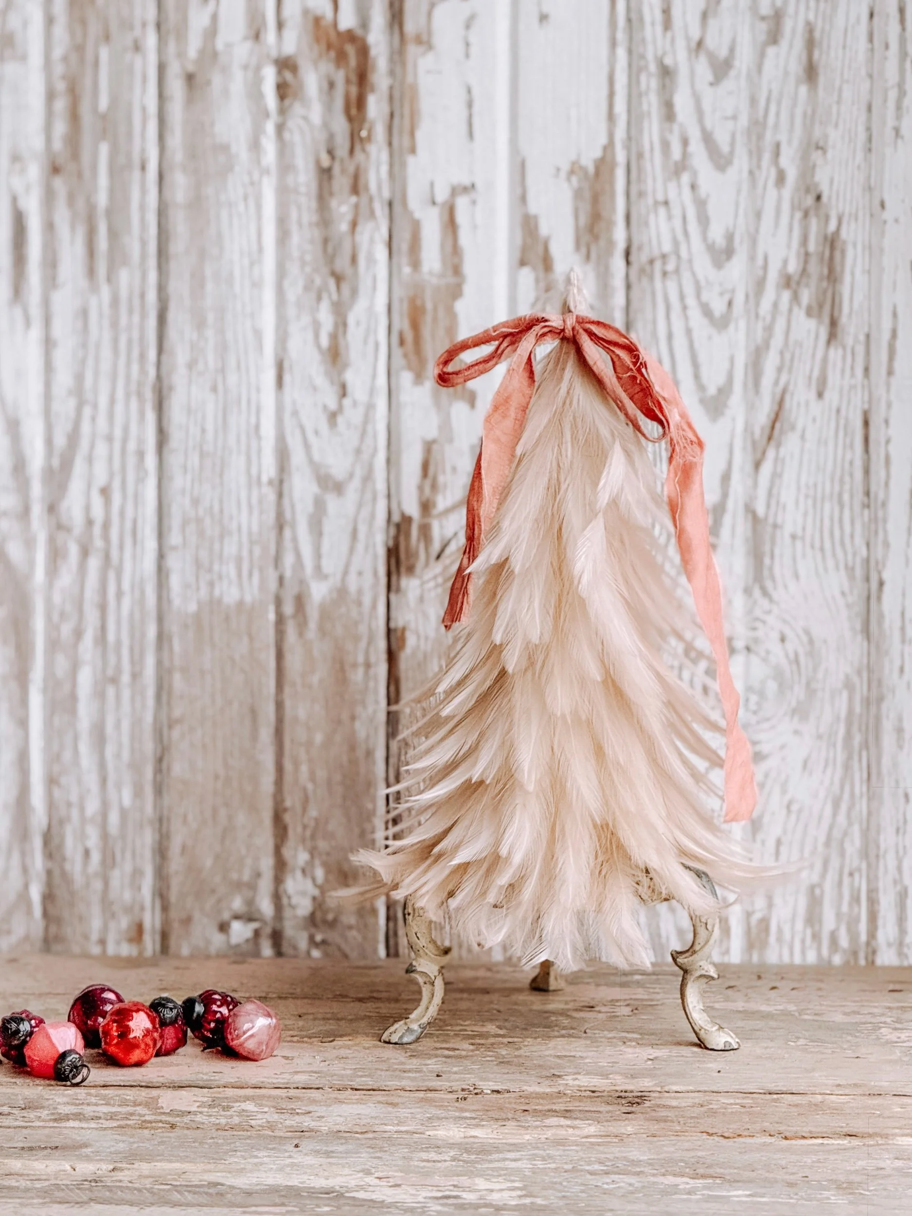 Antique Salvaged Capital w/ Pale Pink Feather Tree