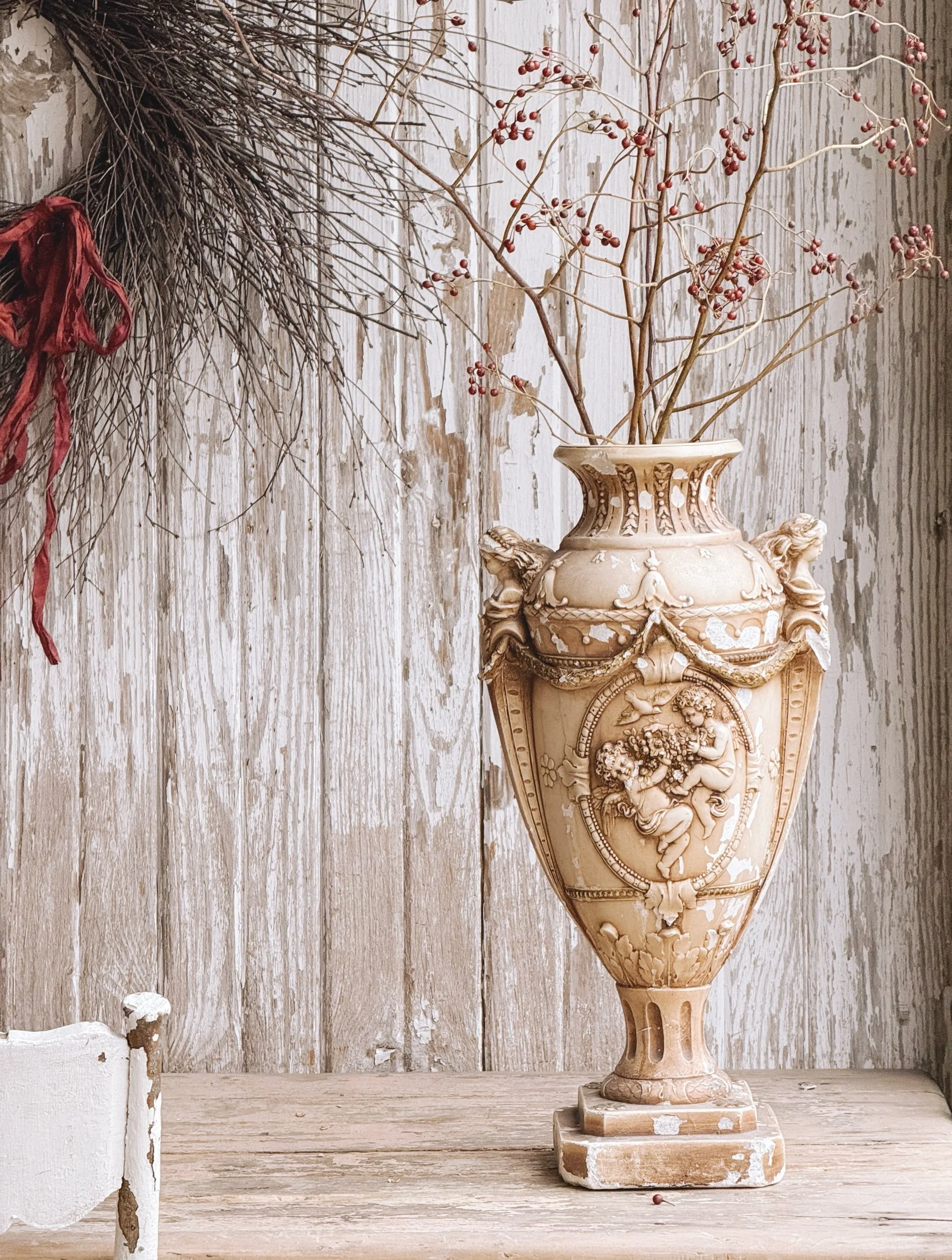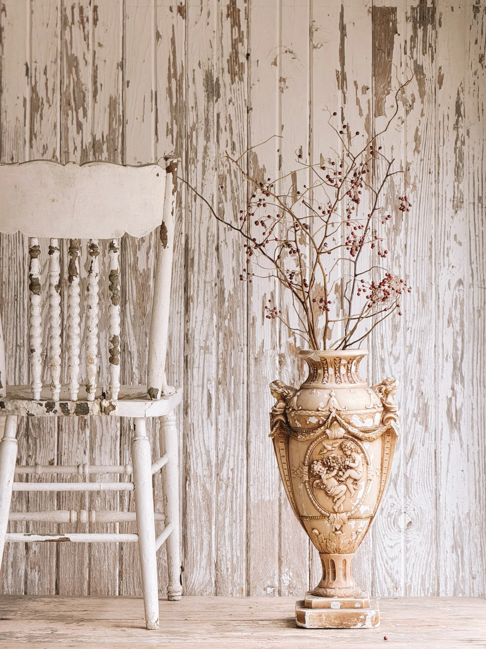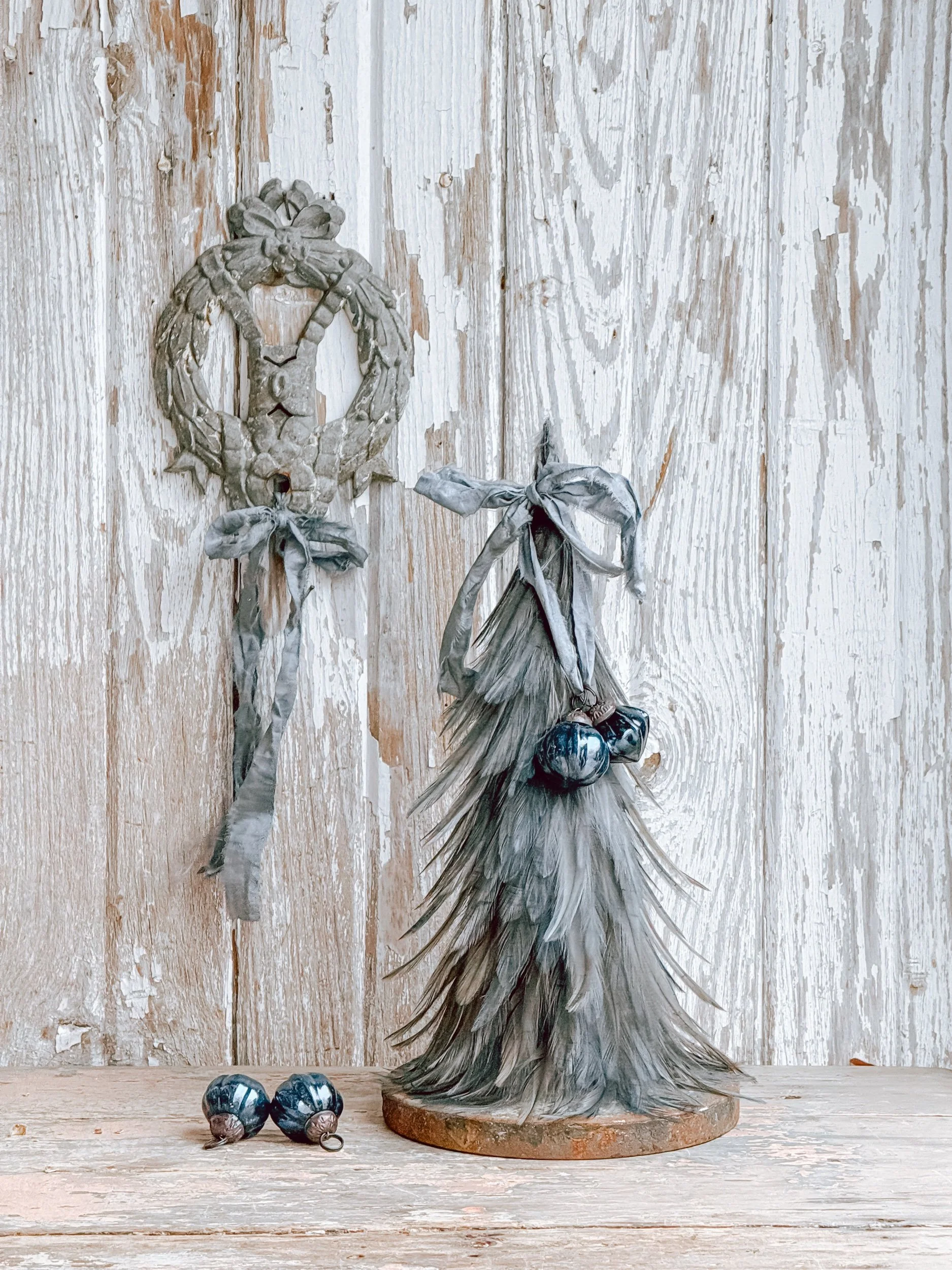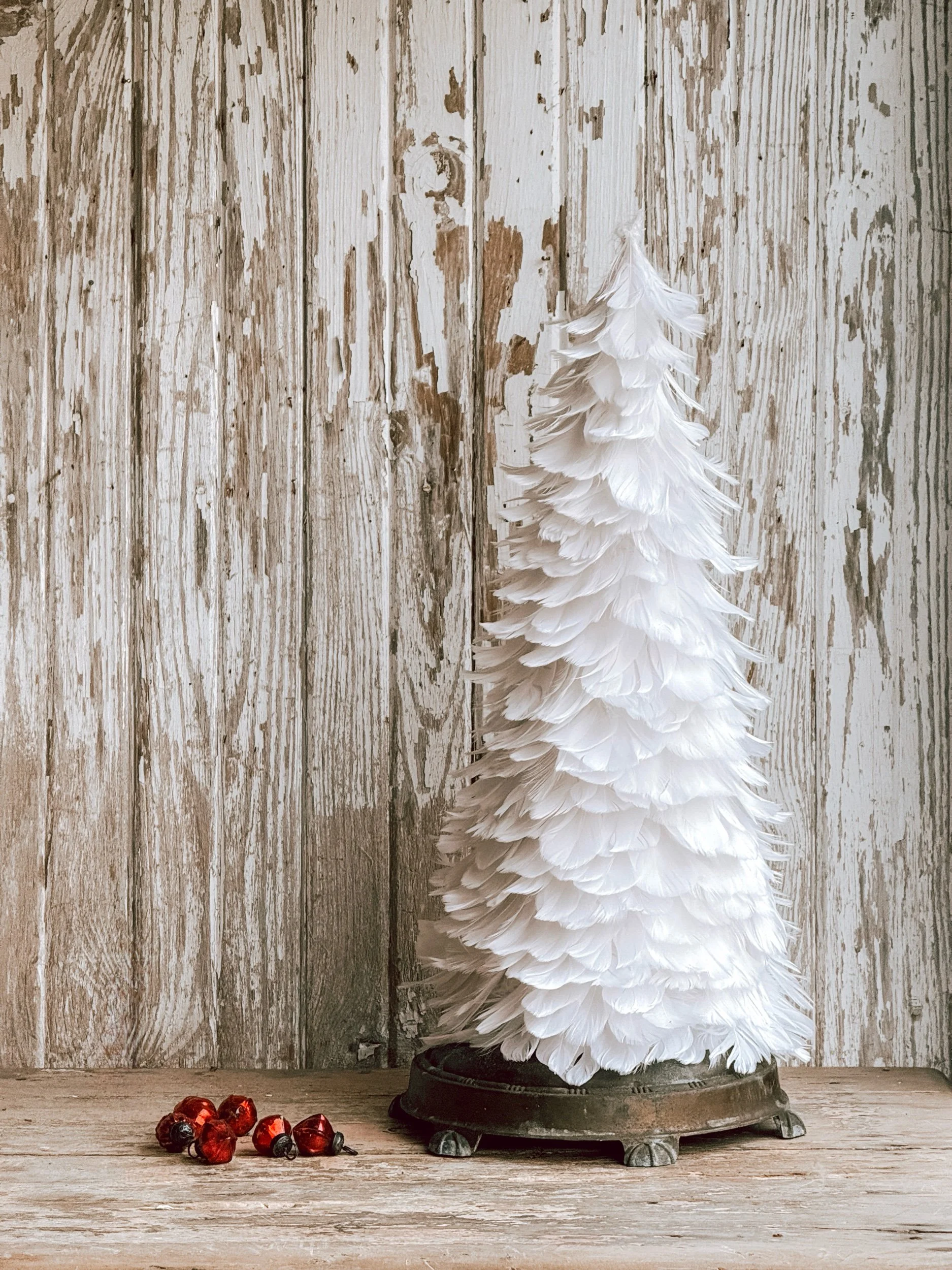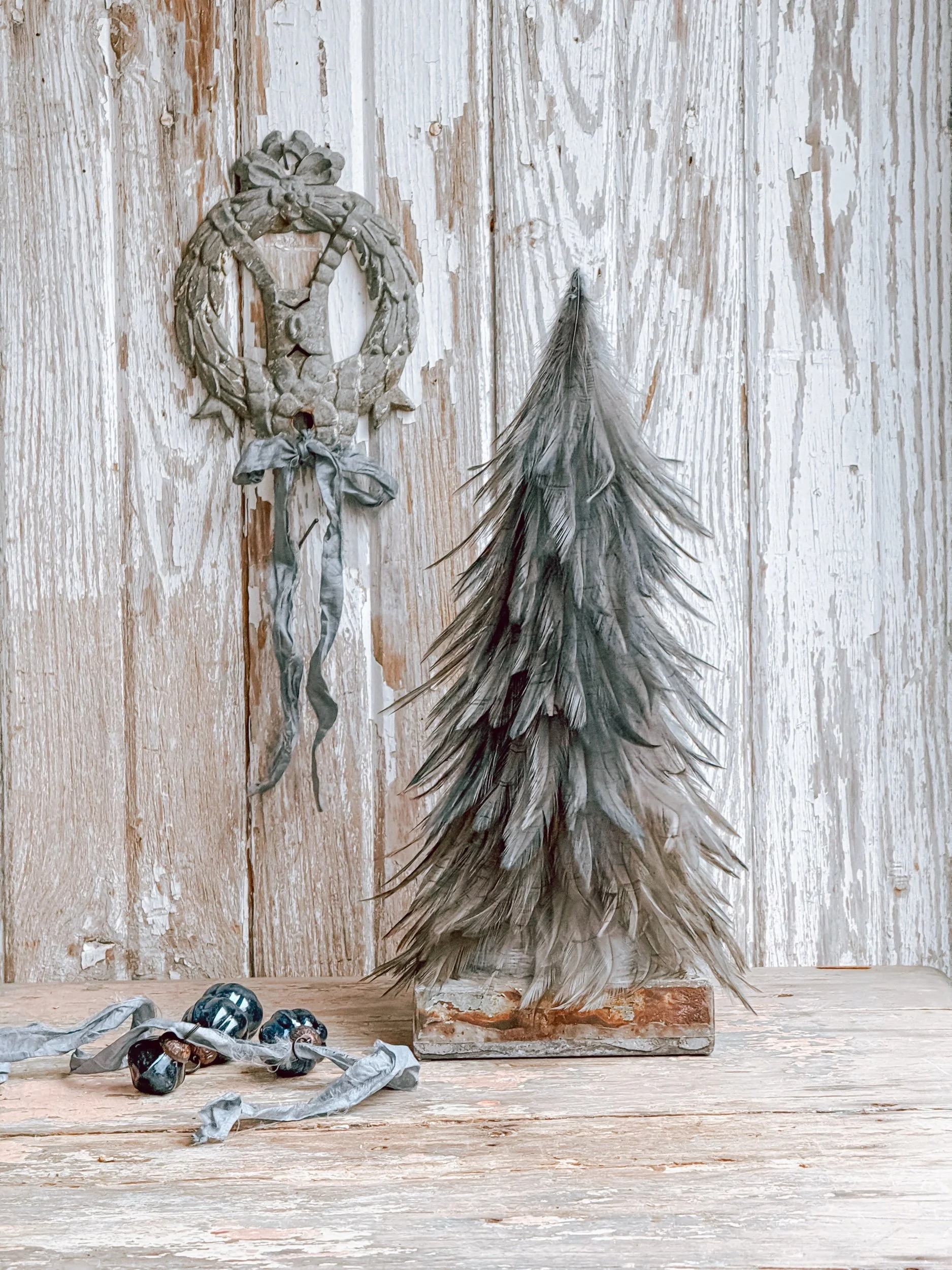 Antique Salvaged Capital w/ Pale Pink Feather Tree