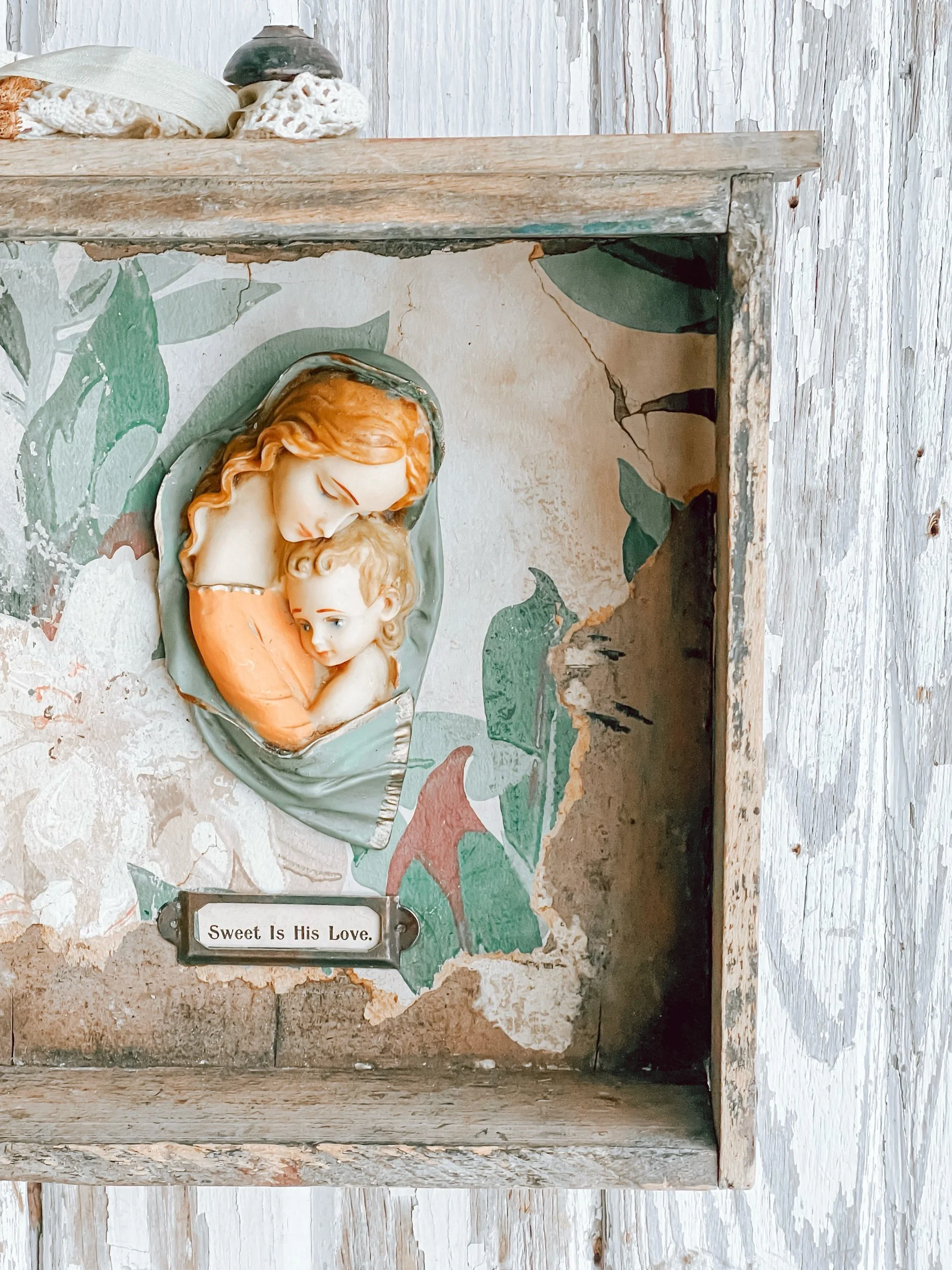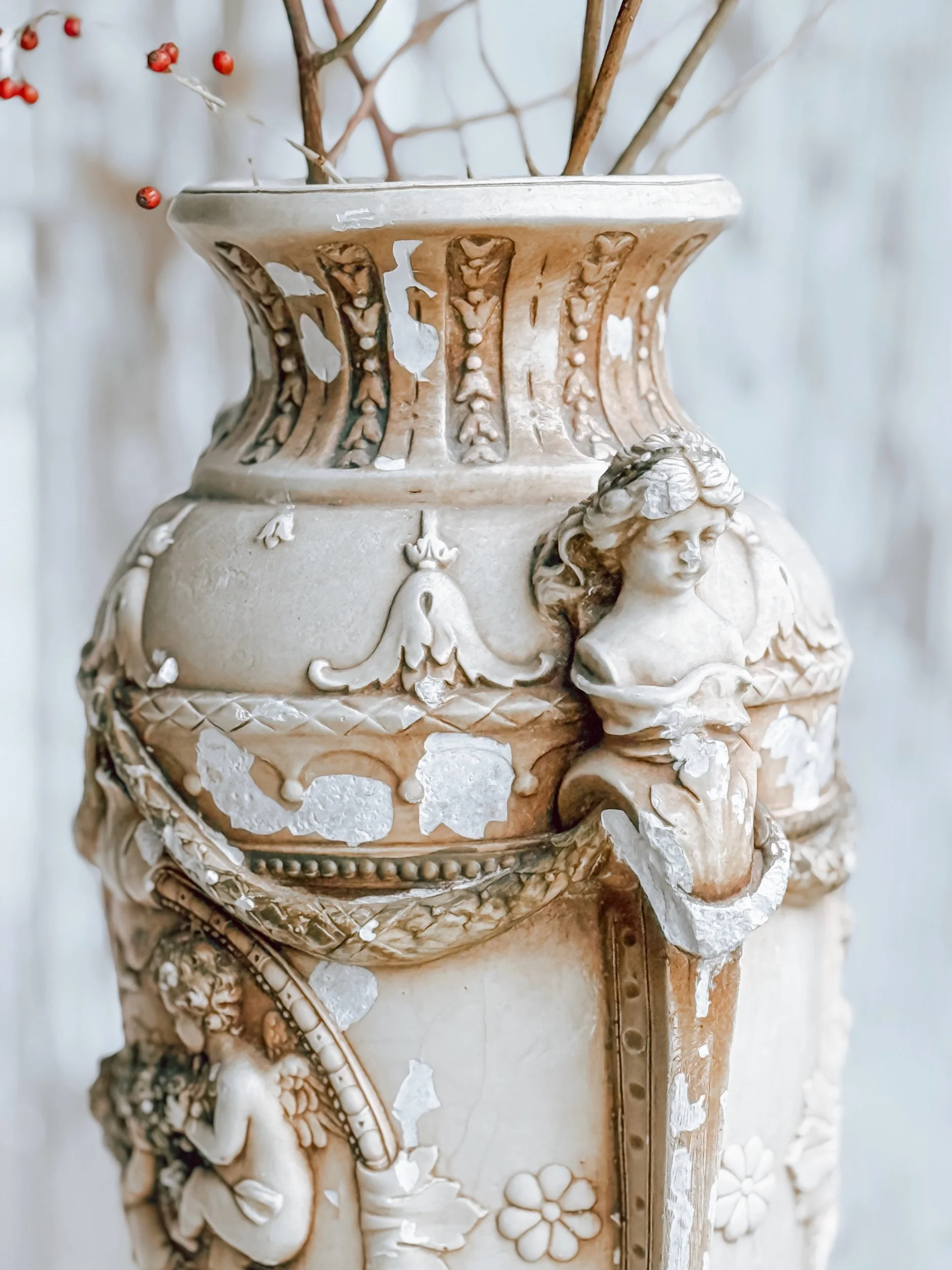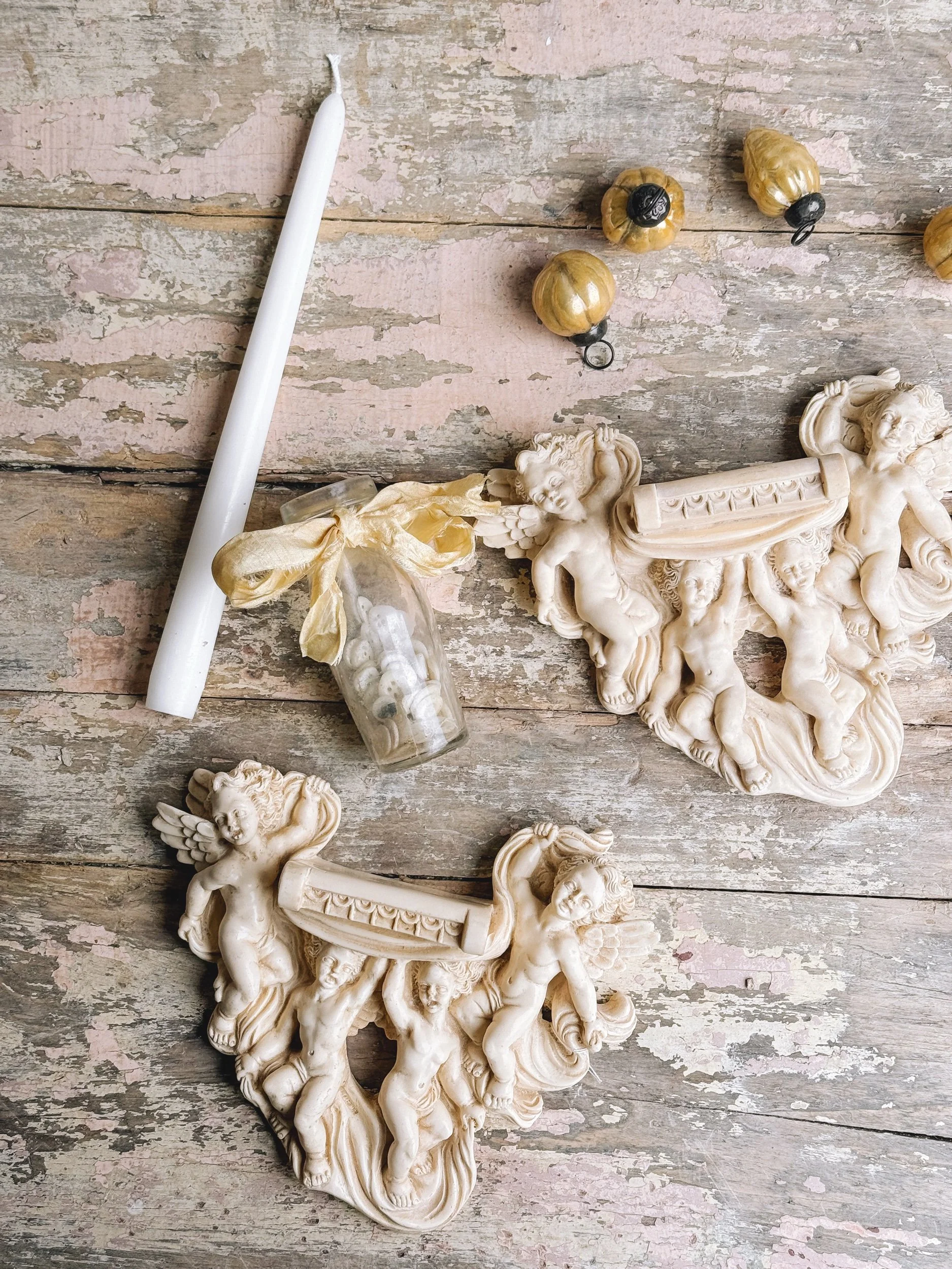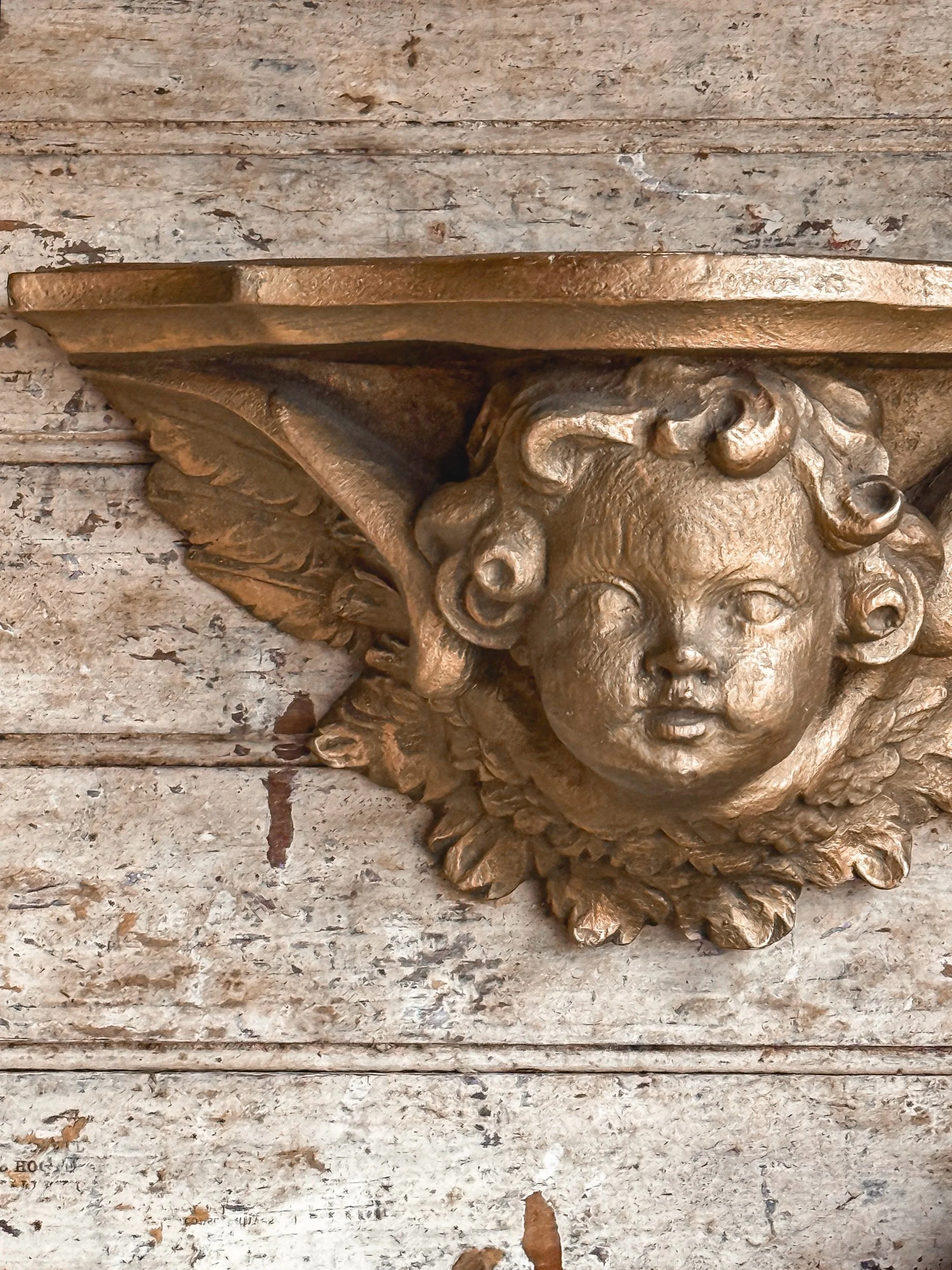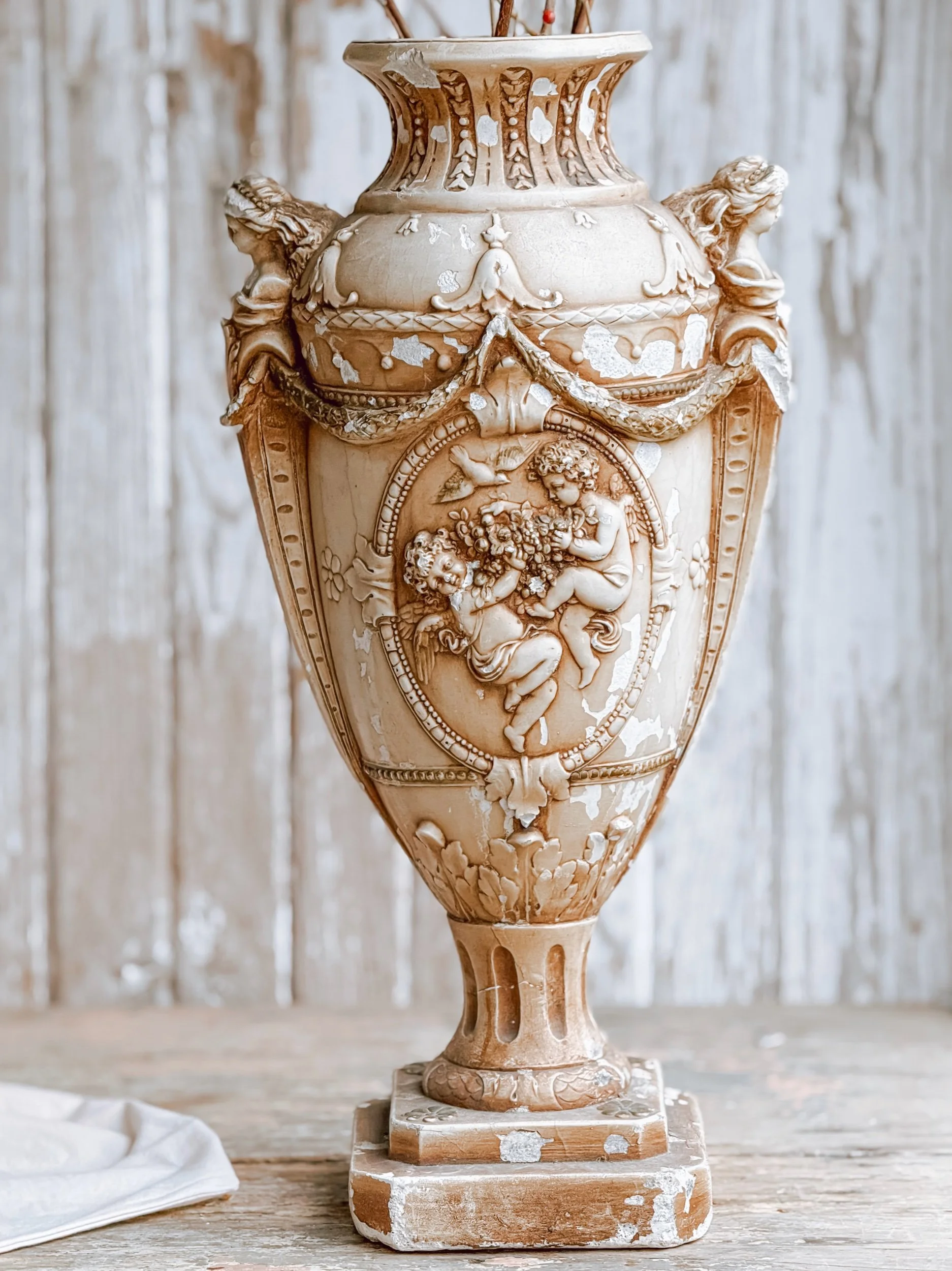 Antique Salvaged Capital w/ Pale Pink Feather Tree