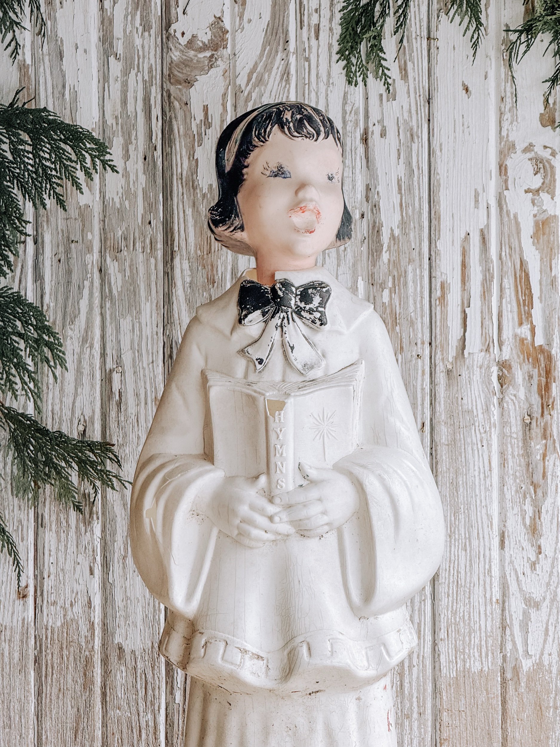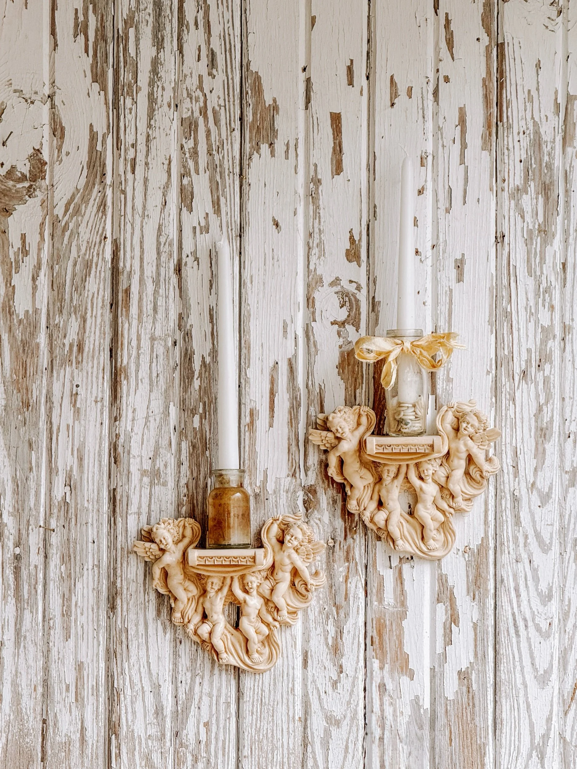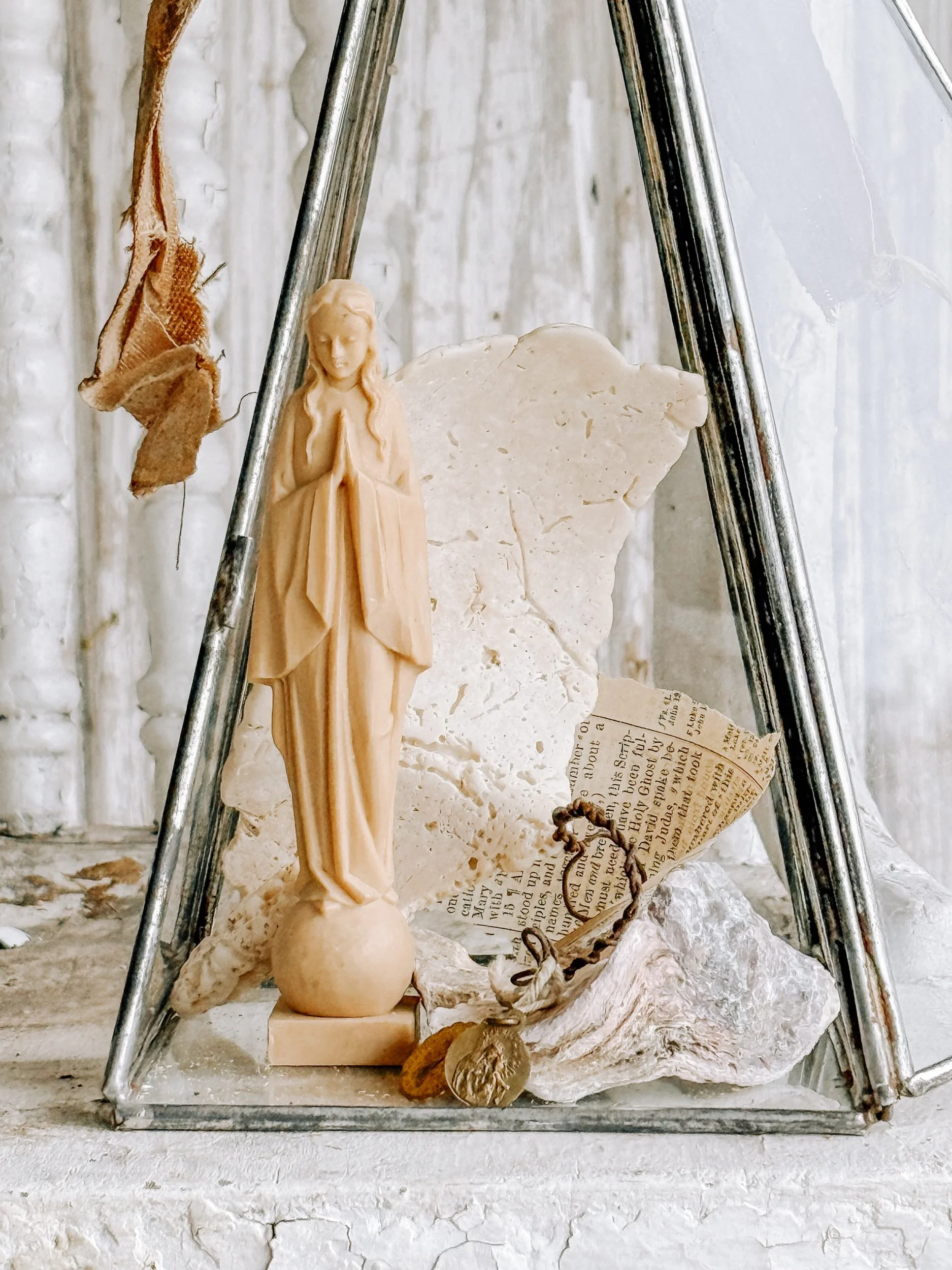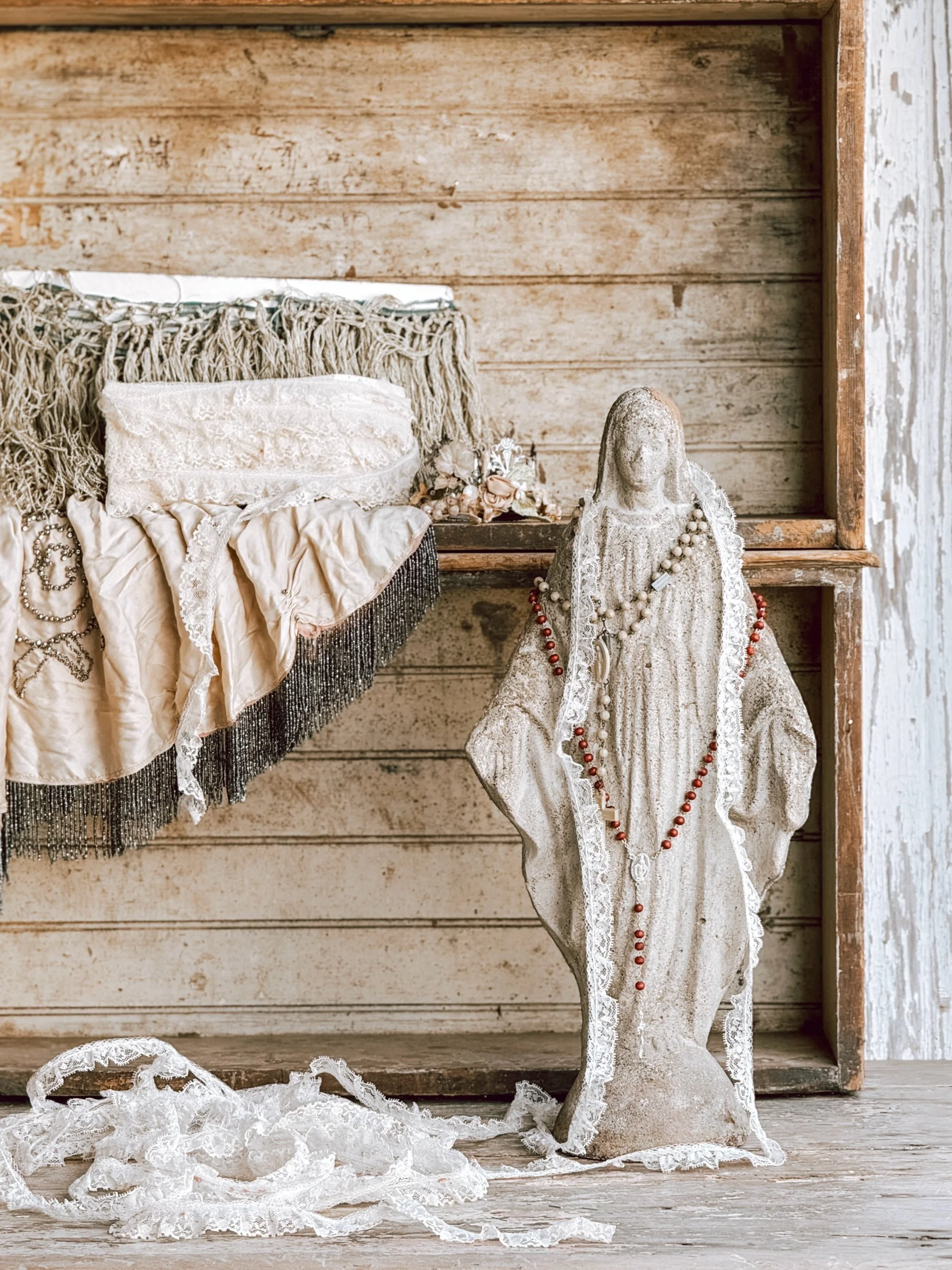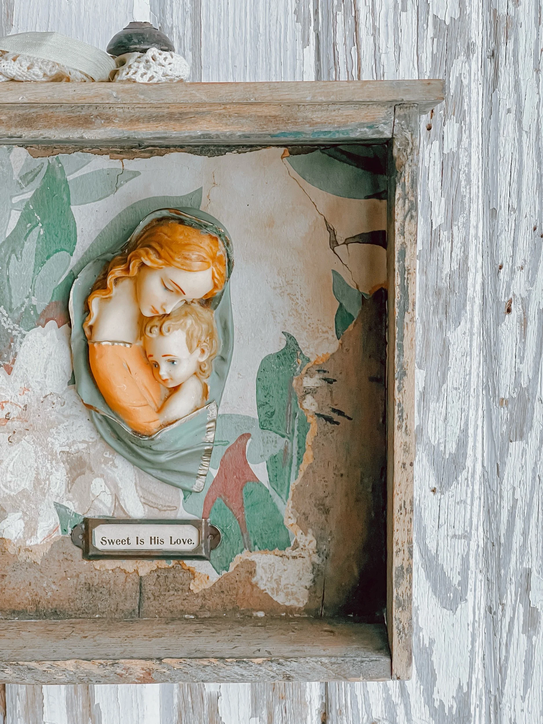 Antique Salvaged Capital w/ Pale Pink Feather Tree