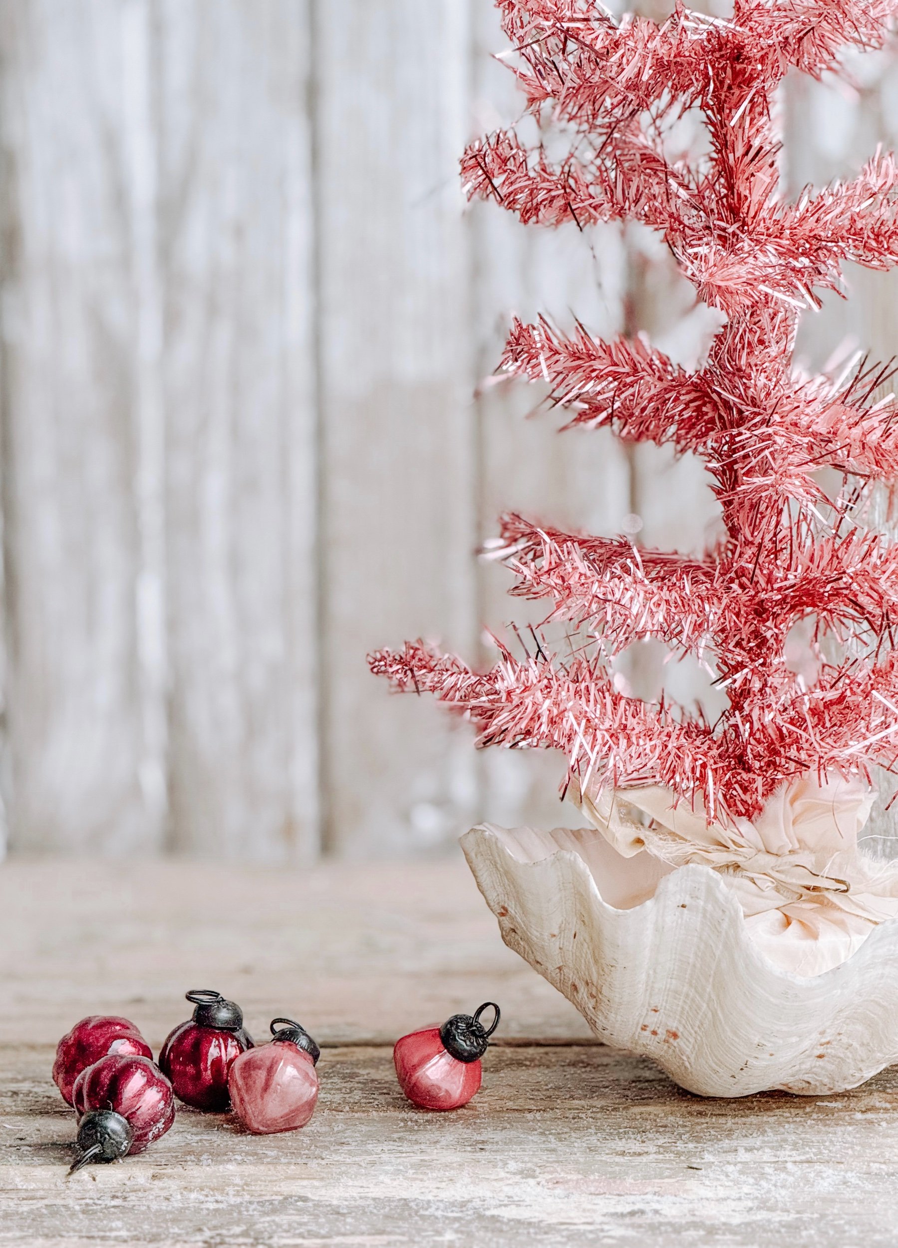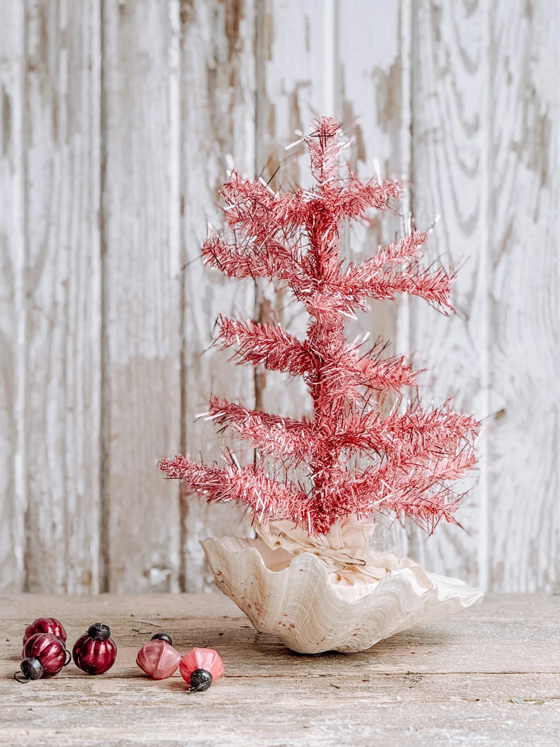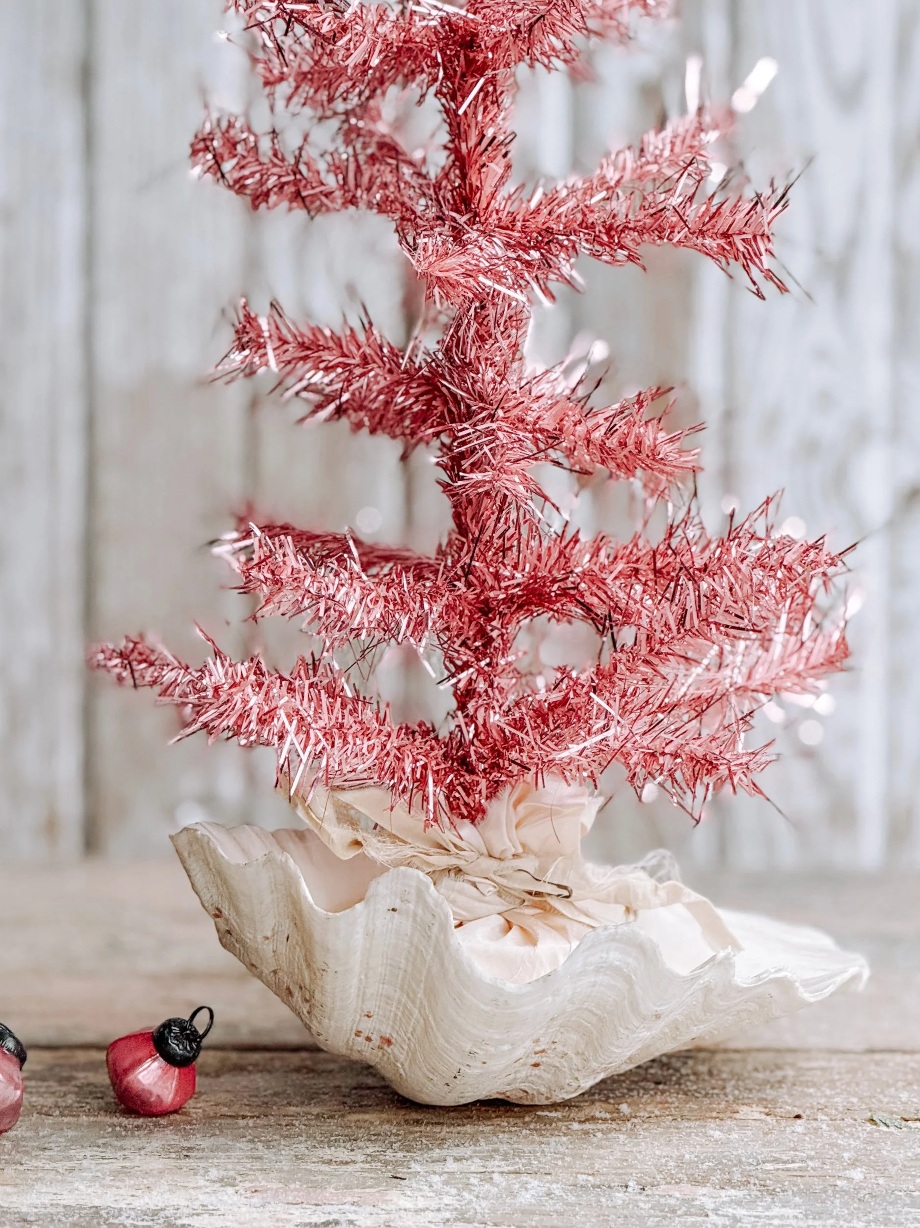 Vintage Pink Tinsel Tree w/ Large Clam Shell Base