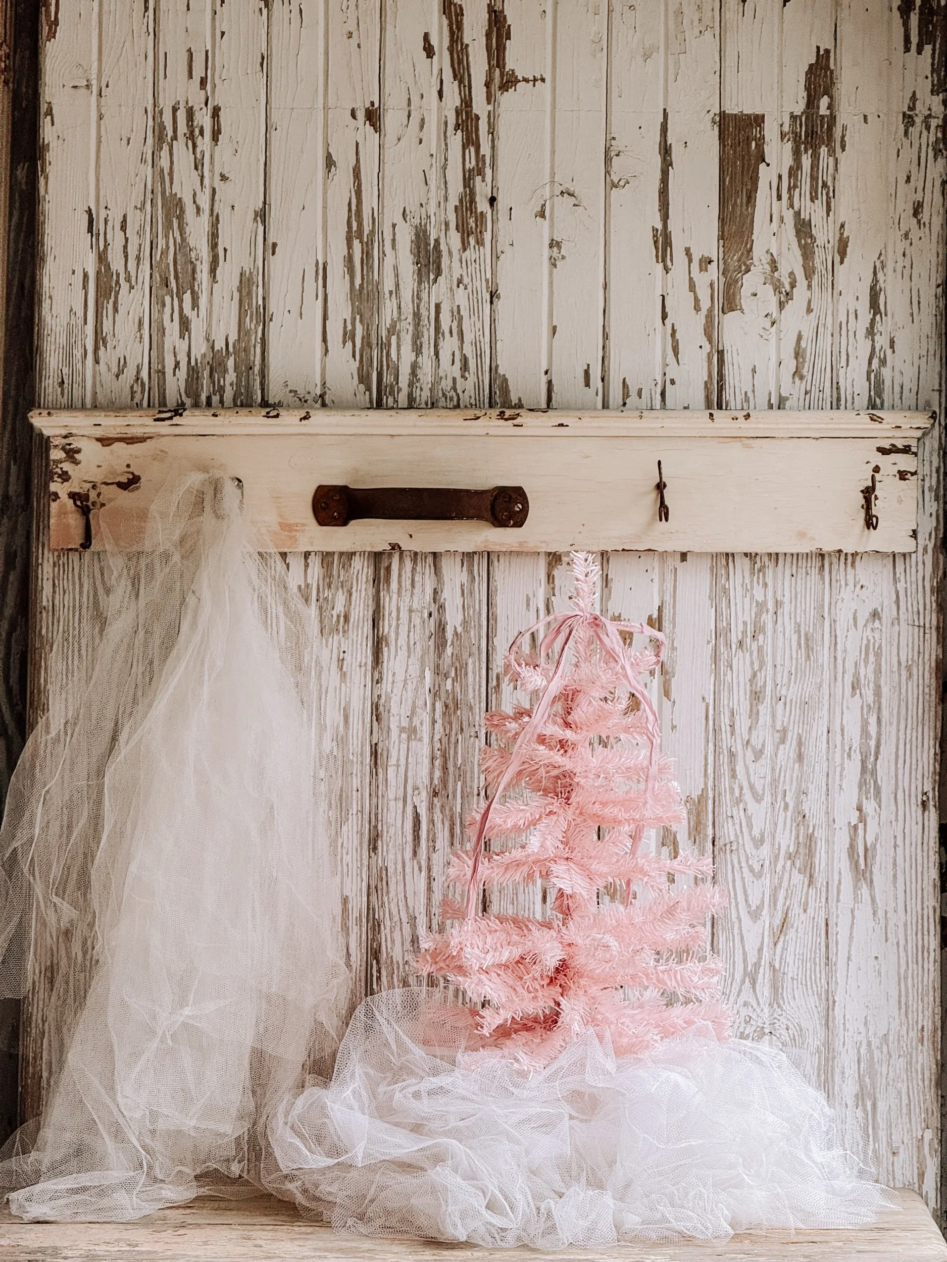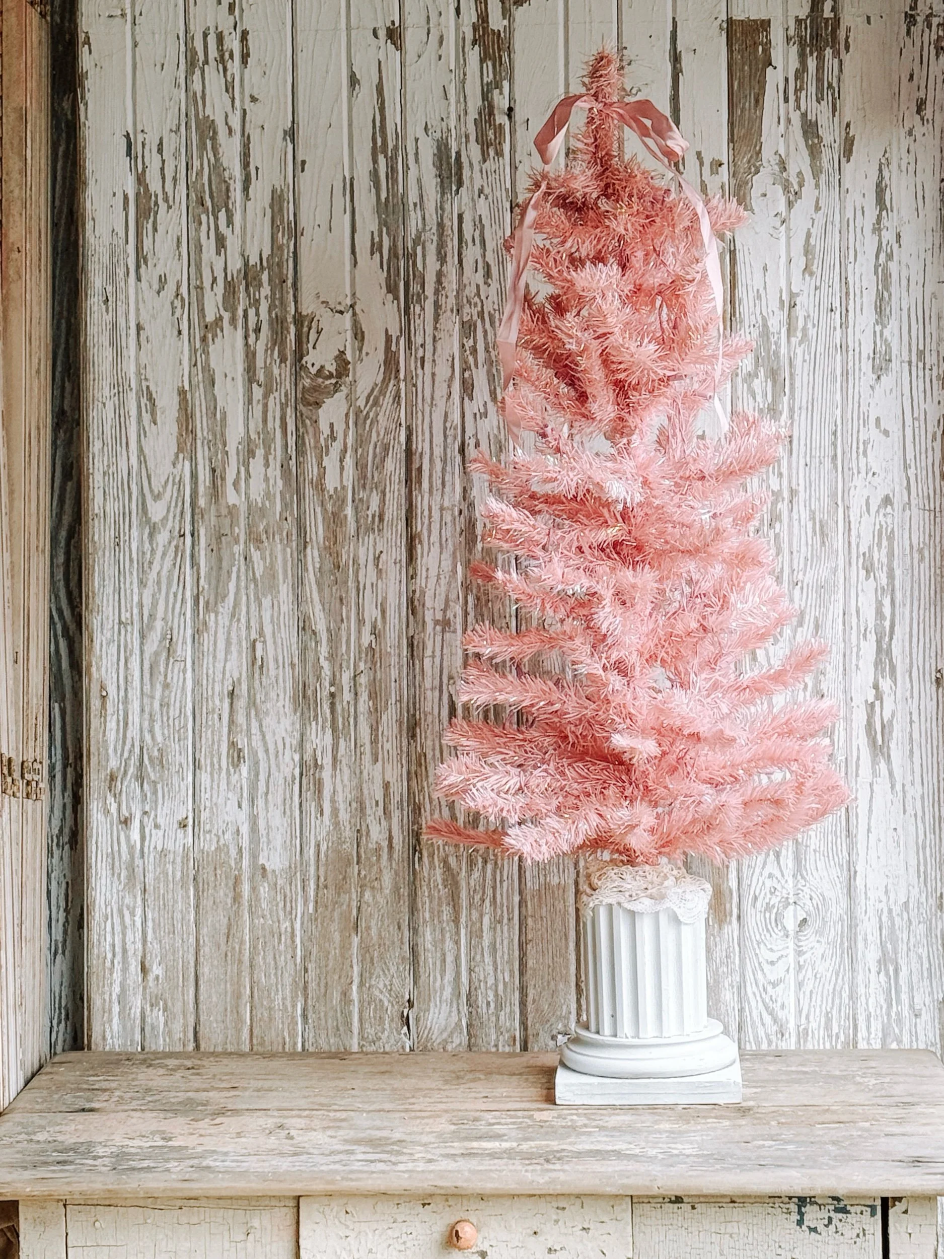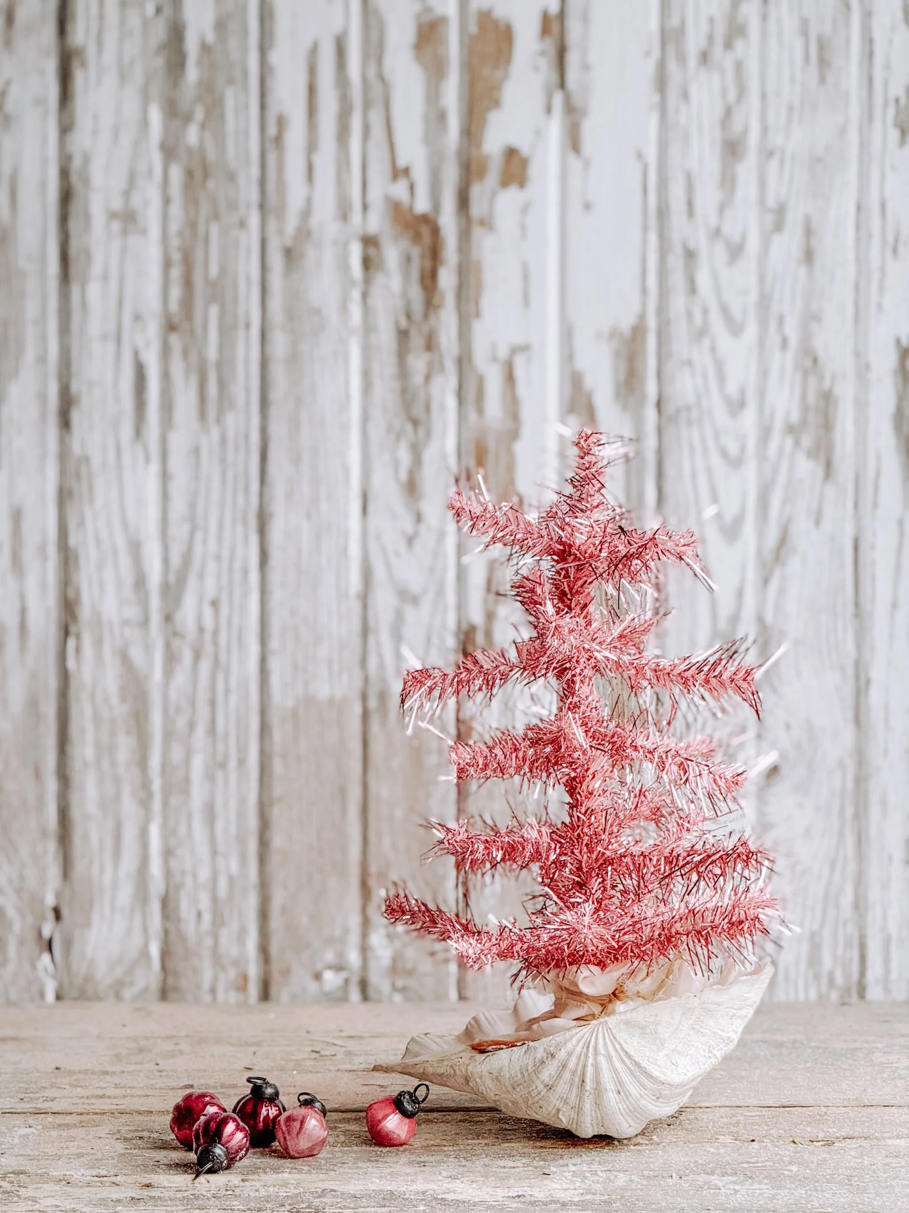 Vintage Pink Tinsel Tree w/ Large Clam Shell Base
