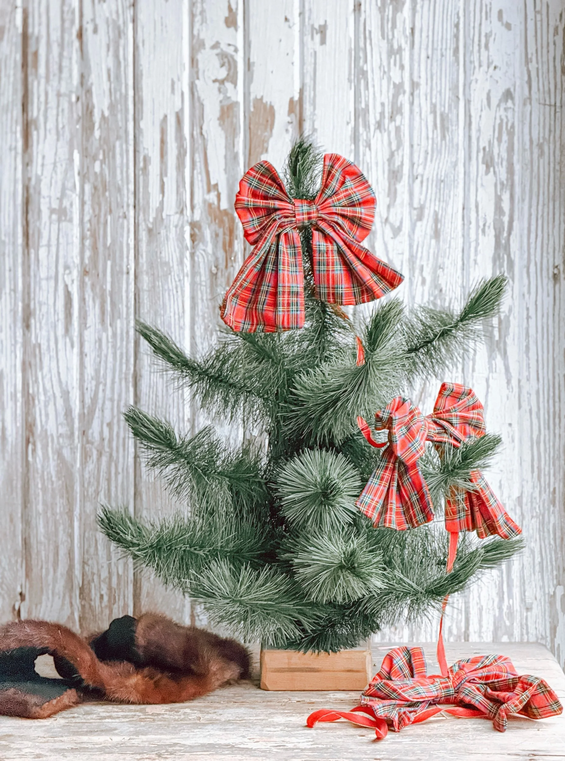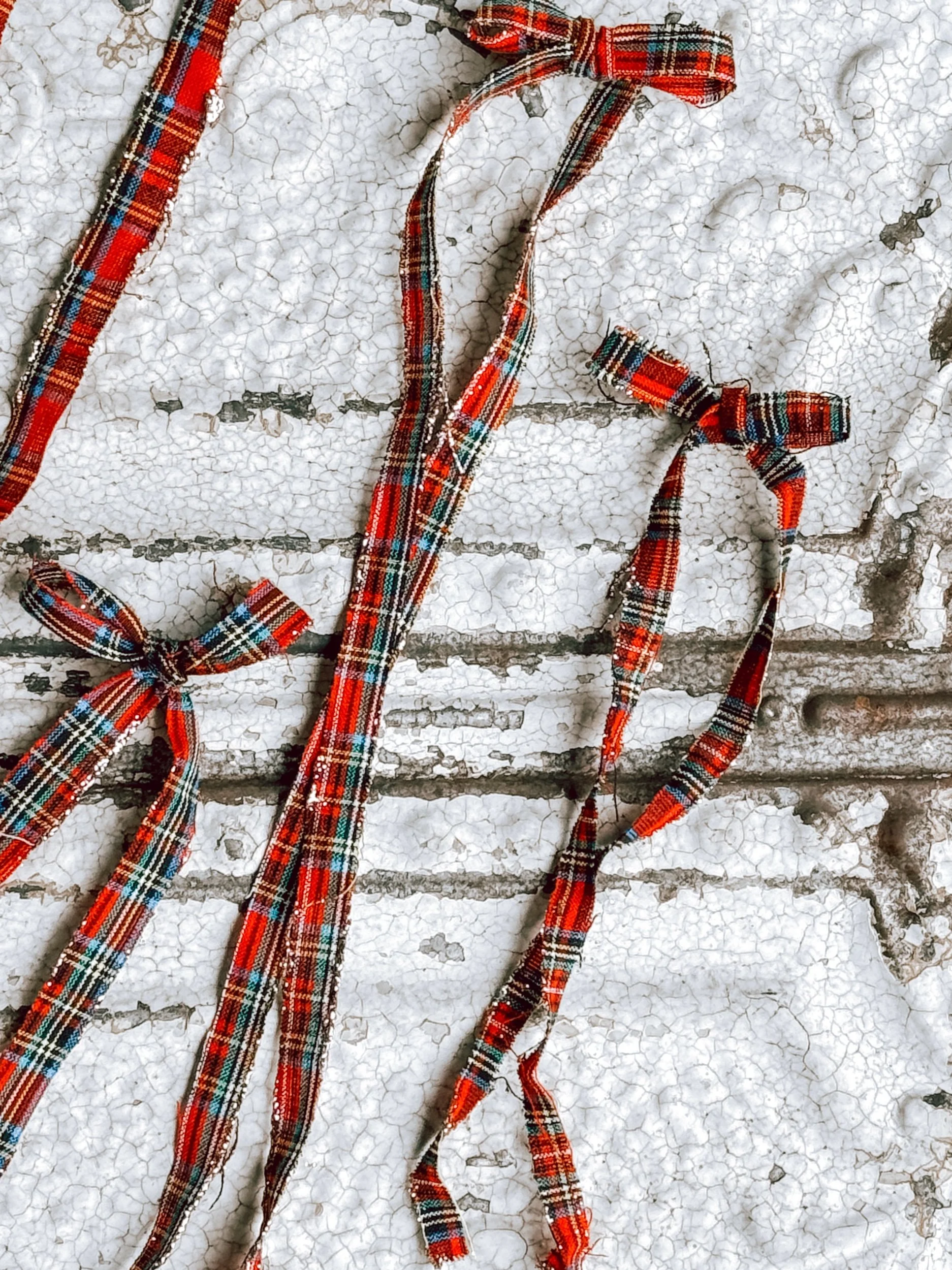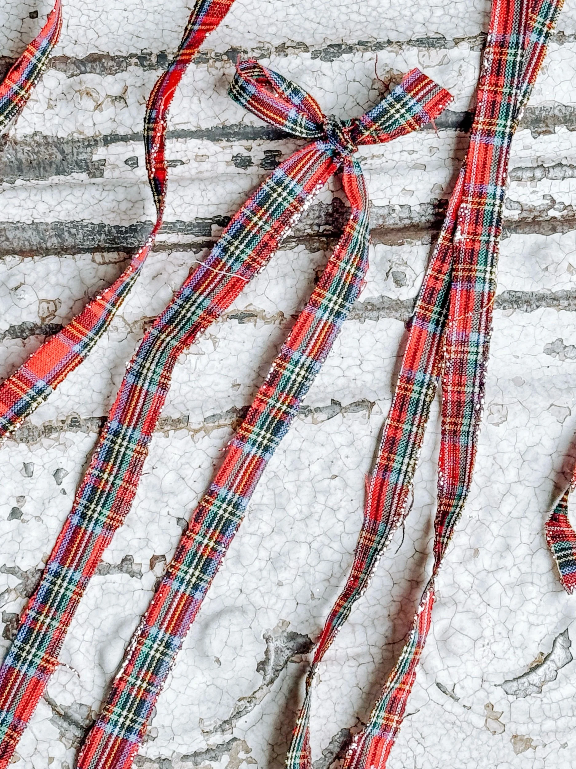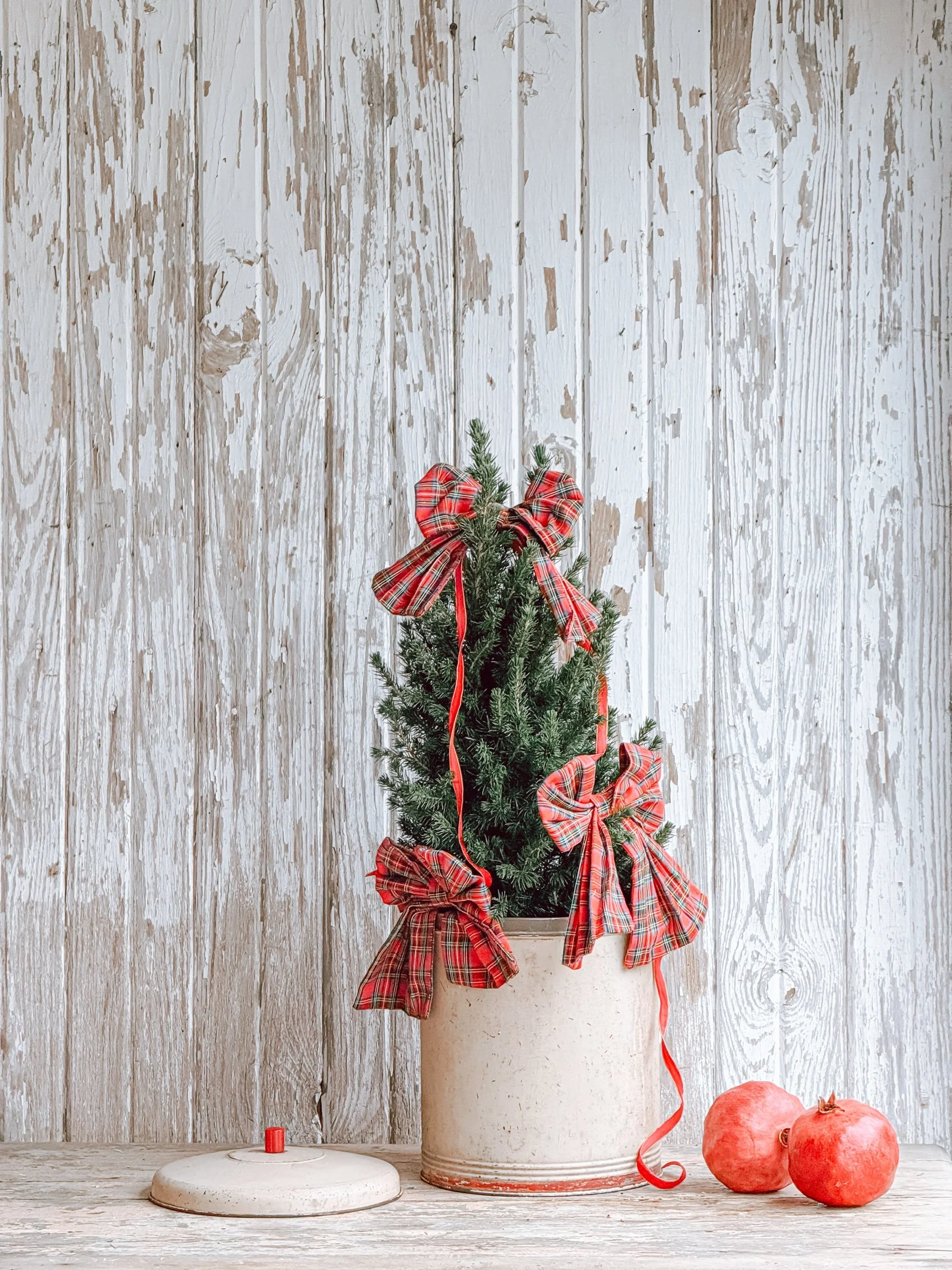 Antique Painters Bucket w/ Handmade Tartan Bow