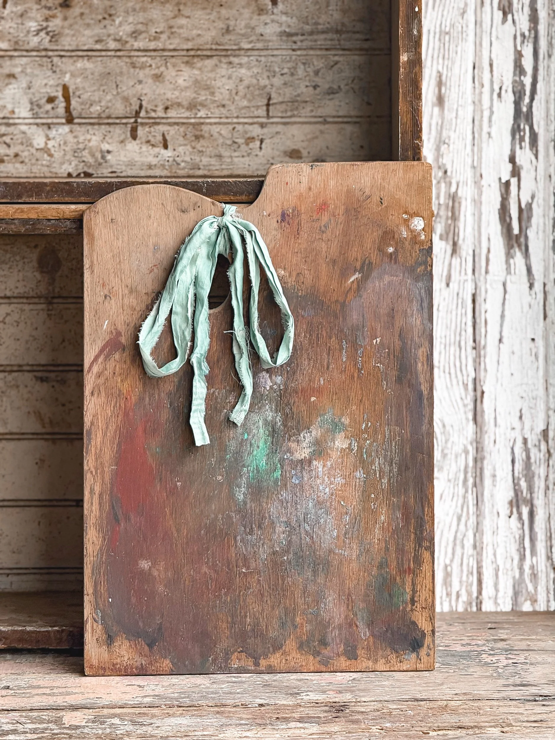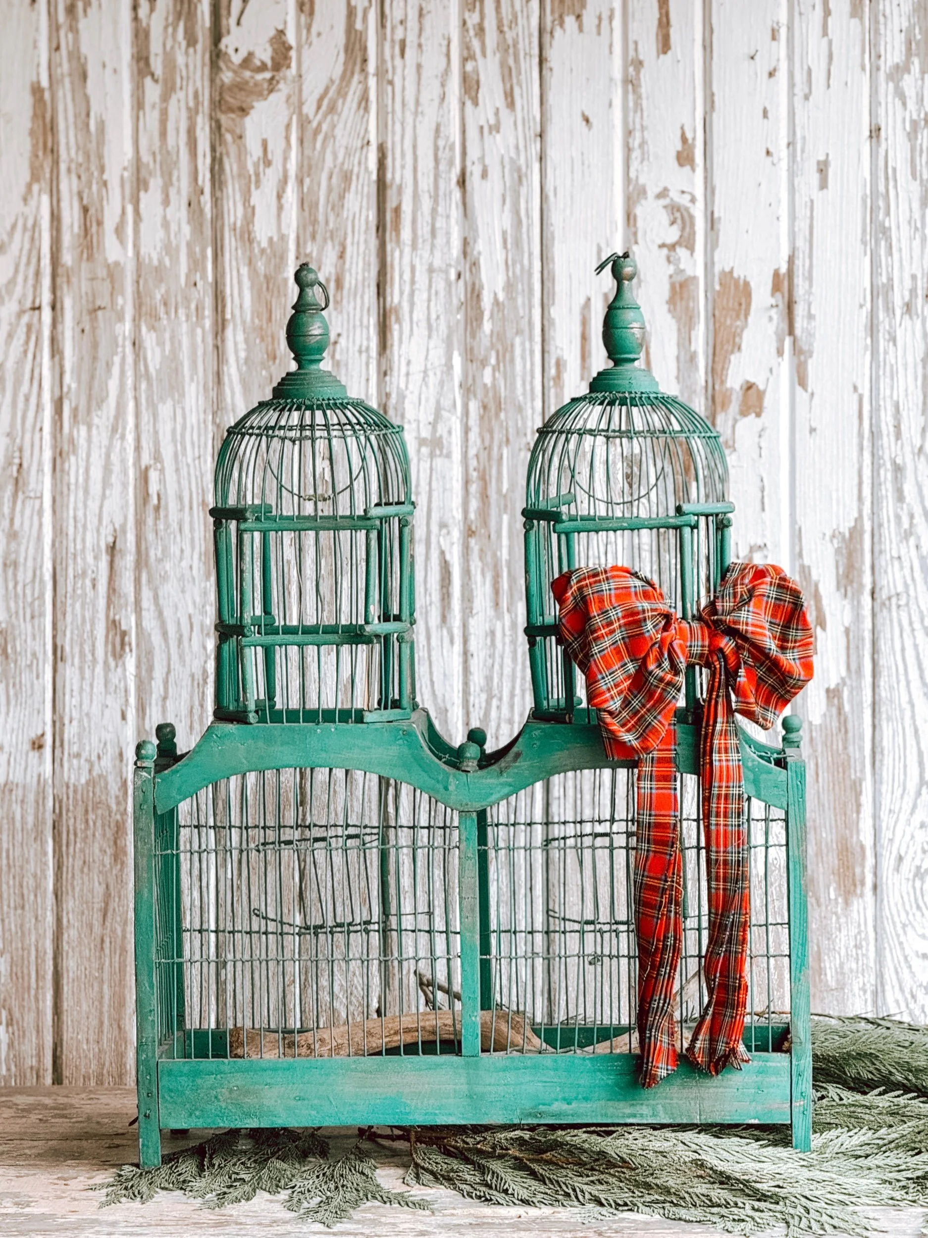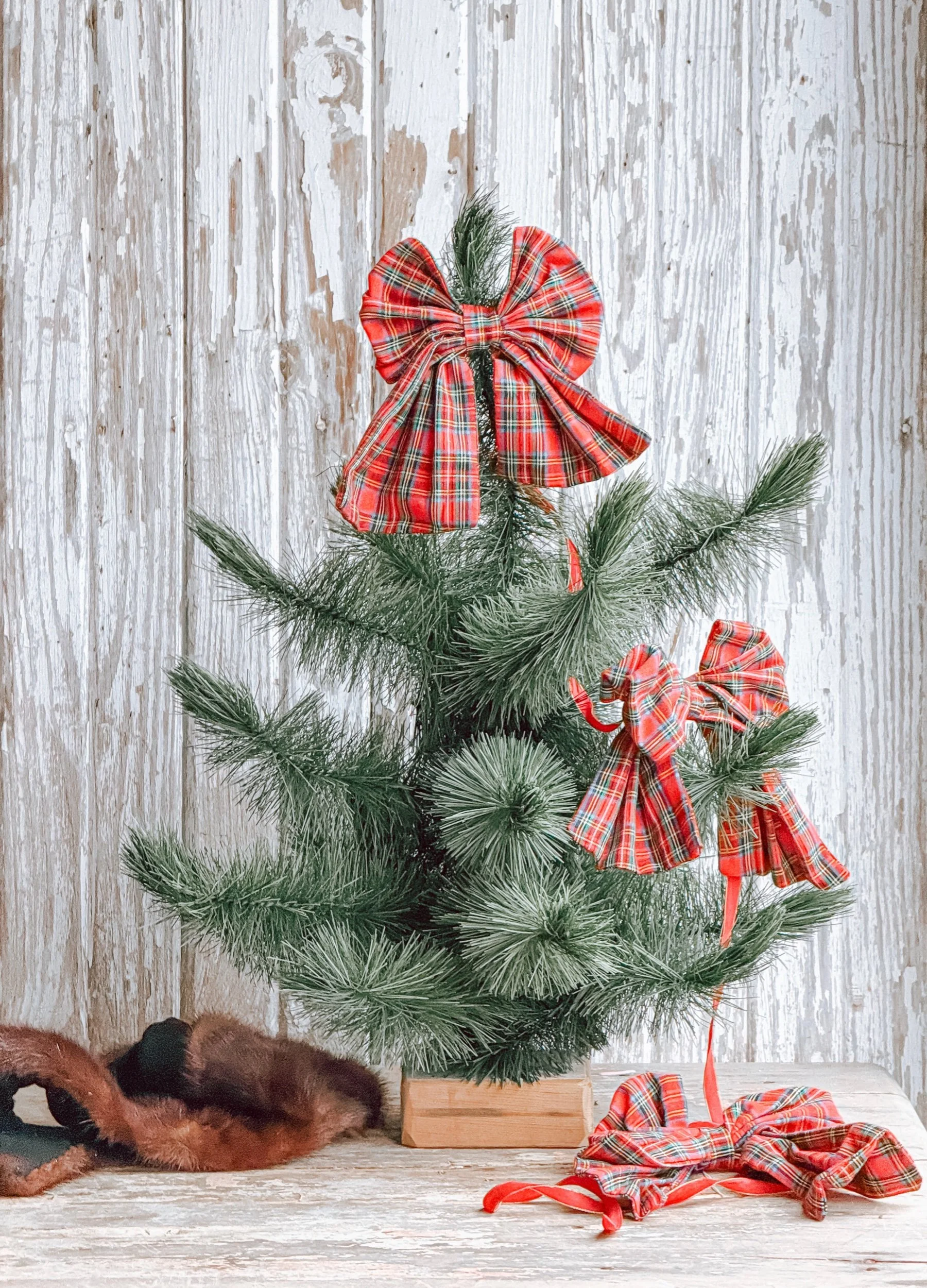 Antique Painters Bucket w/ Handmade Tartan Bow