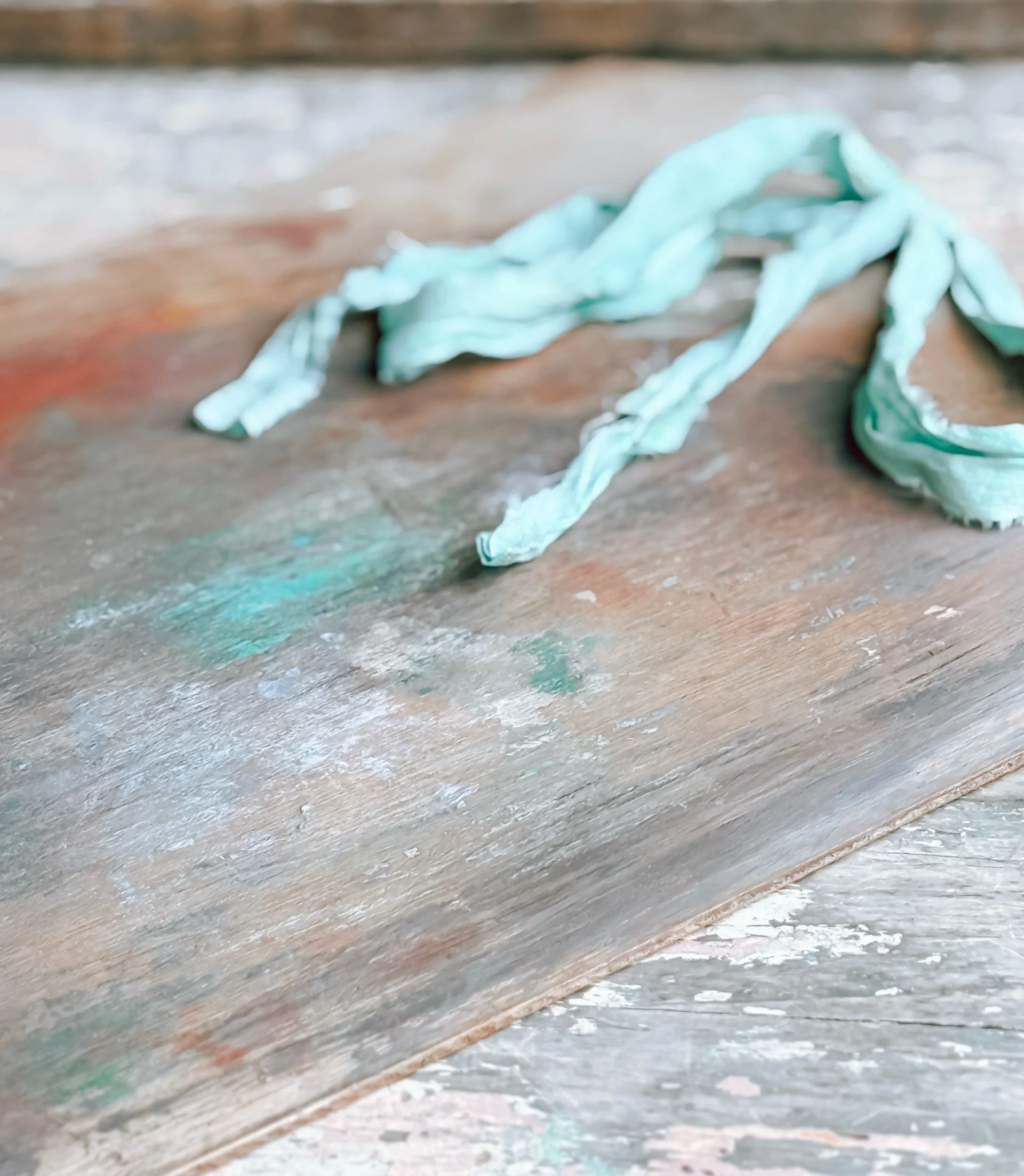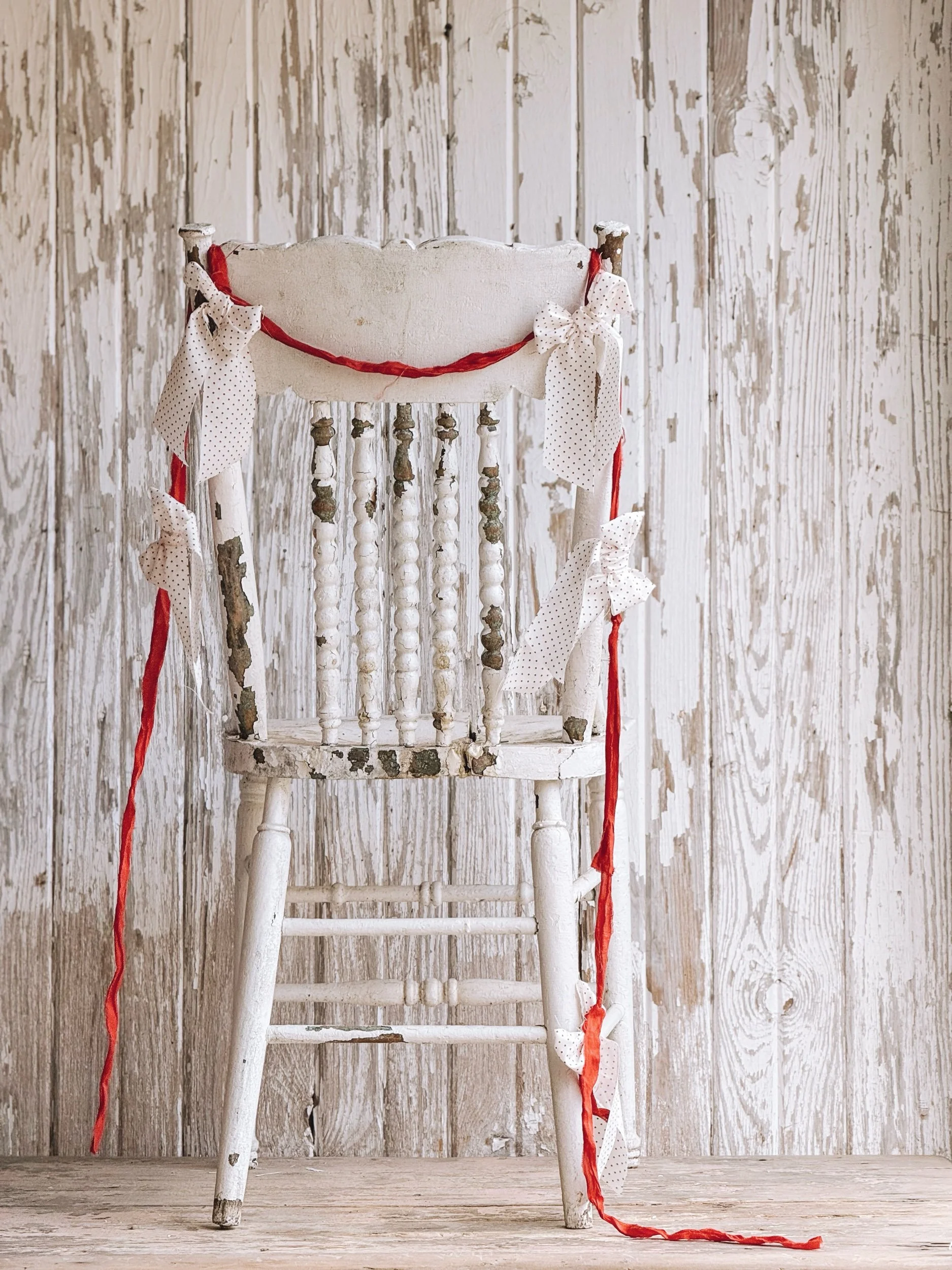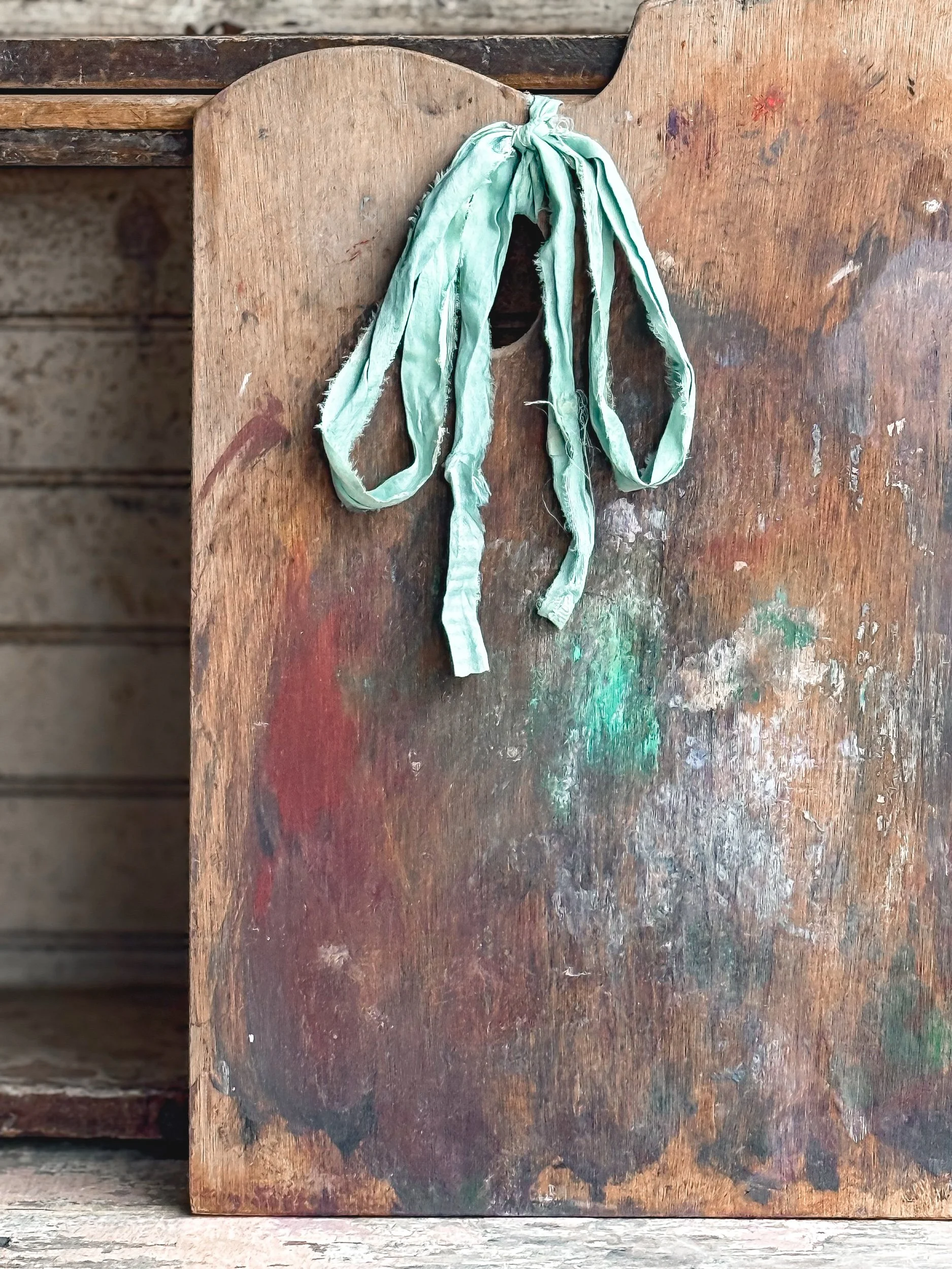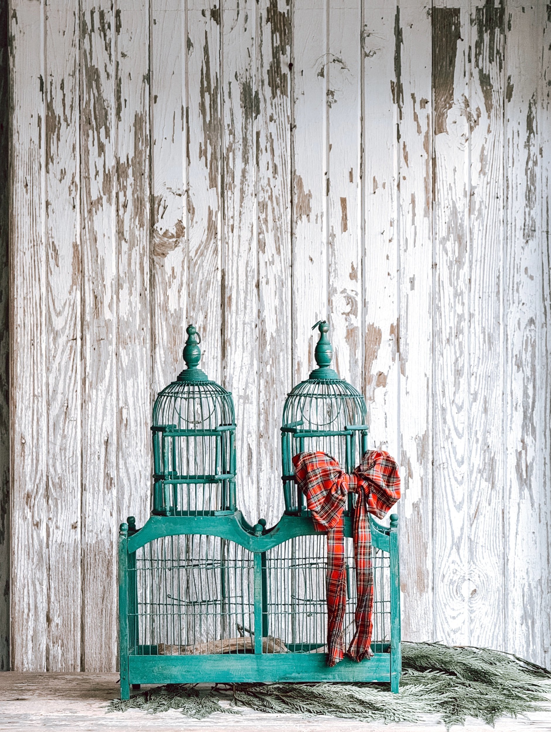 Antique Painters Bucket w/ Handmade Tartan Bow