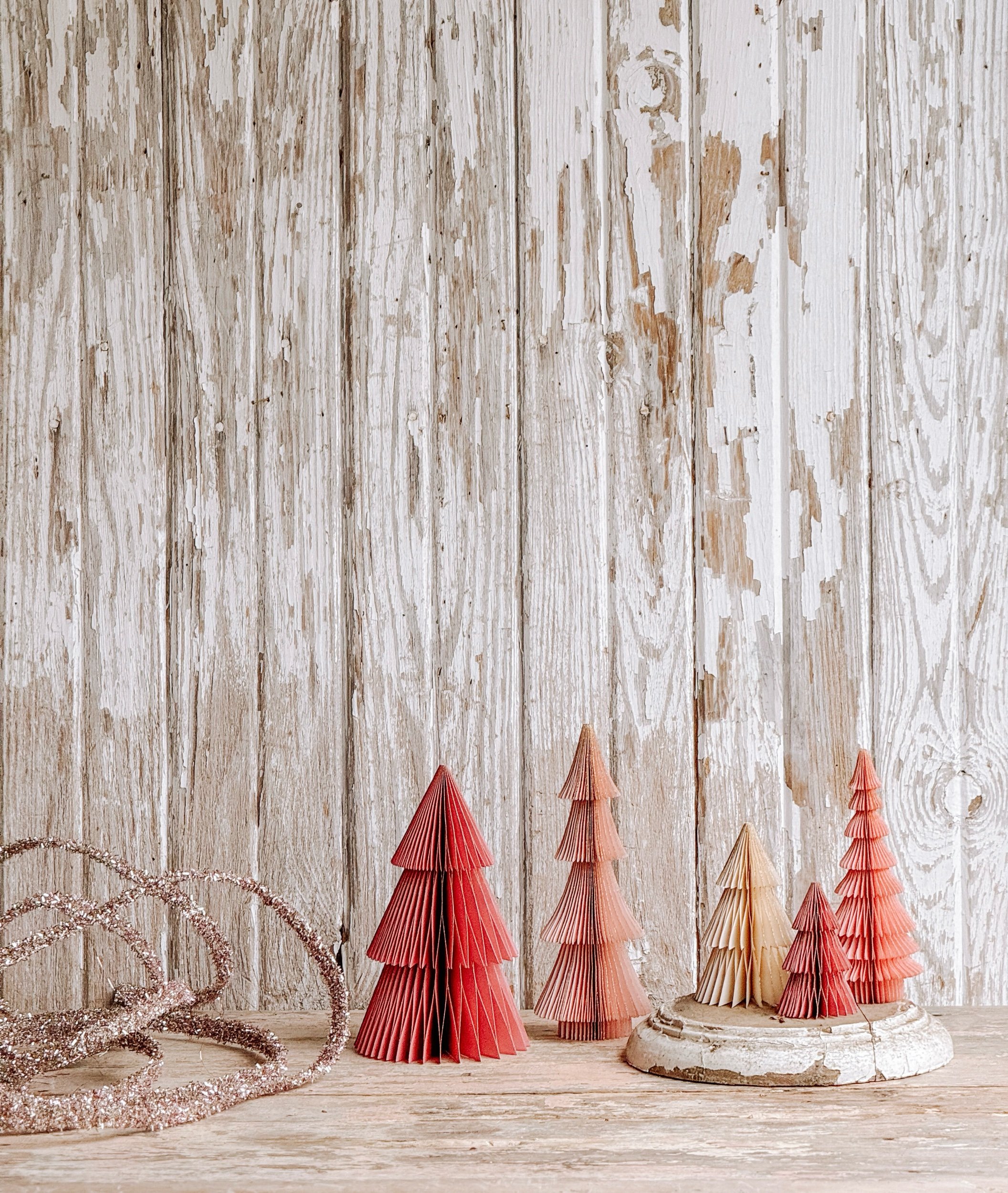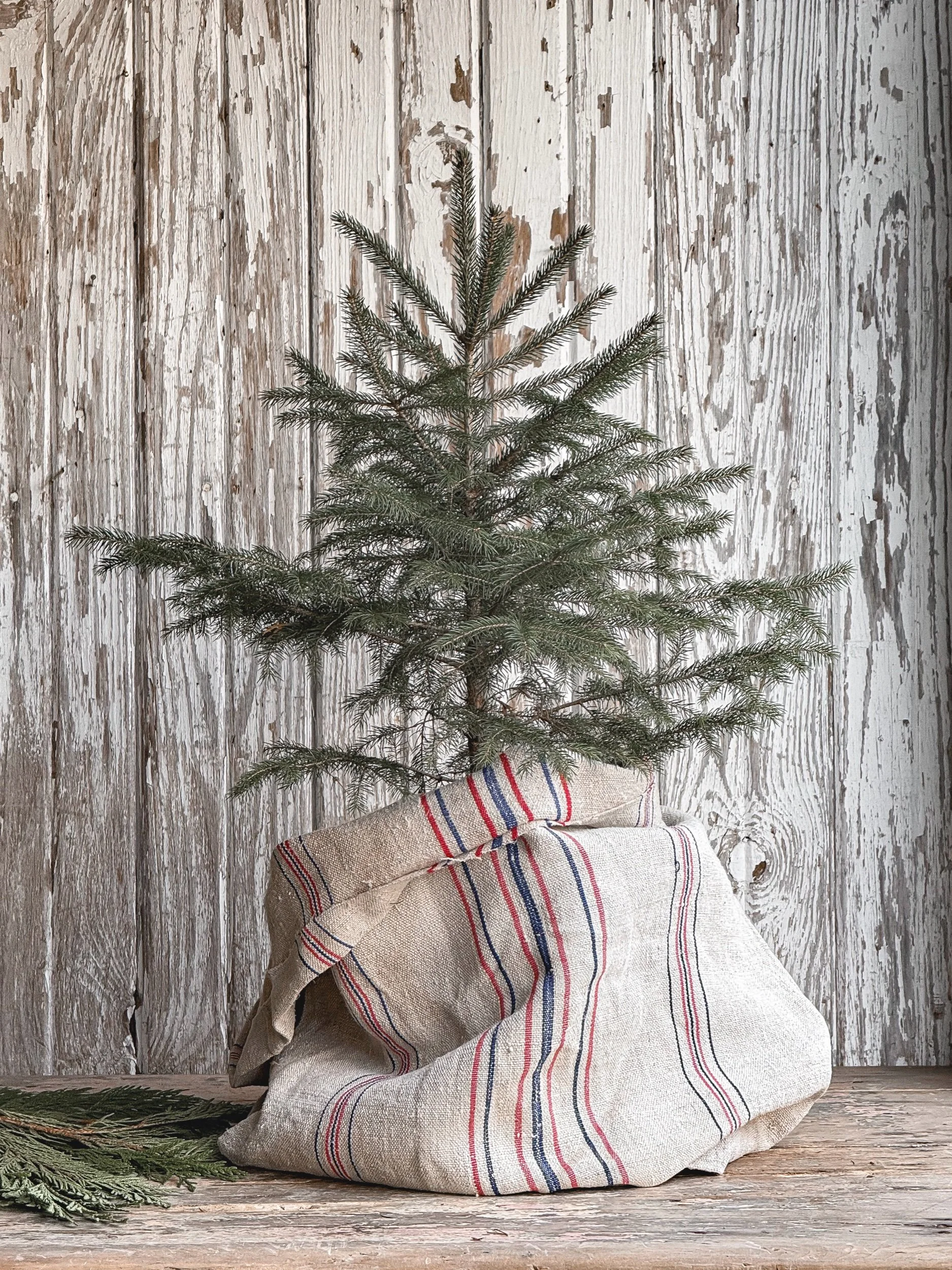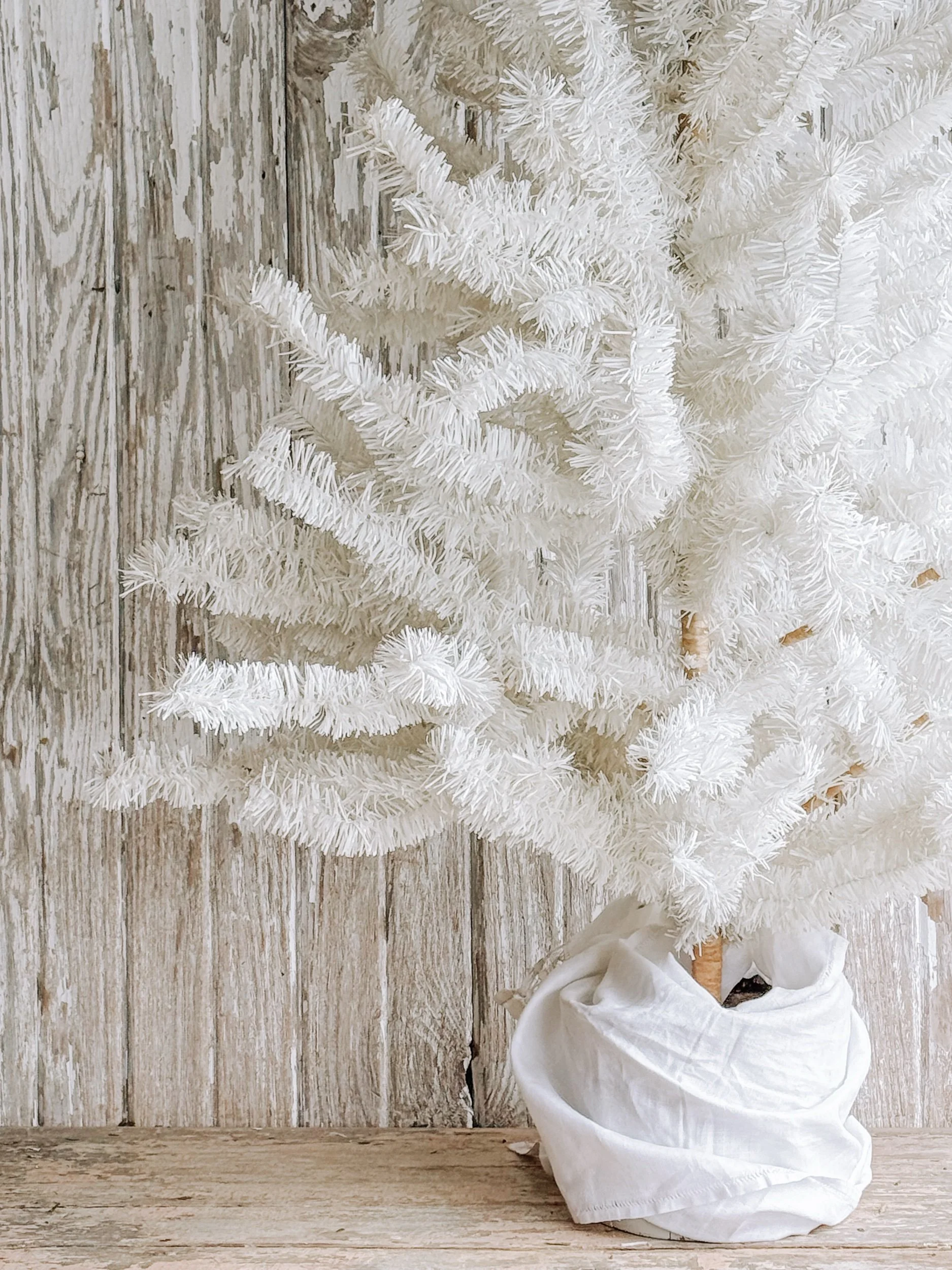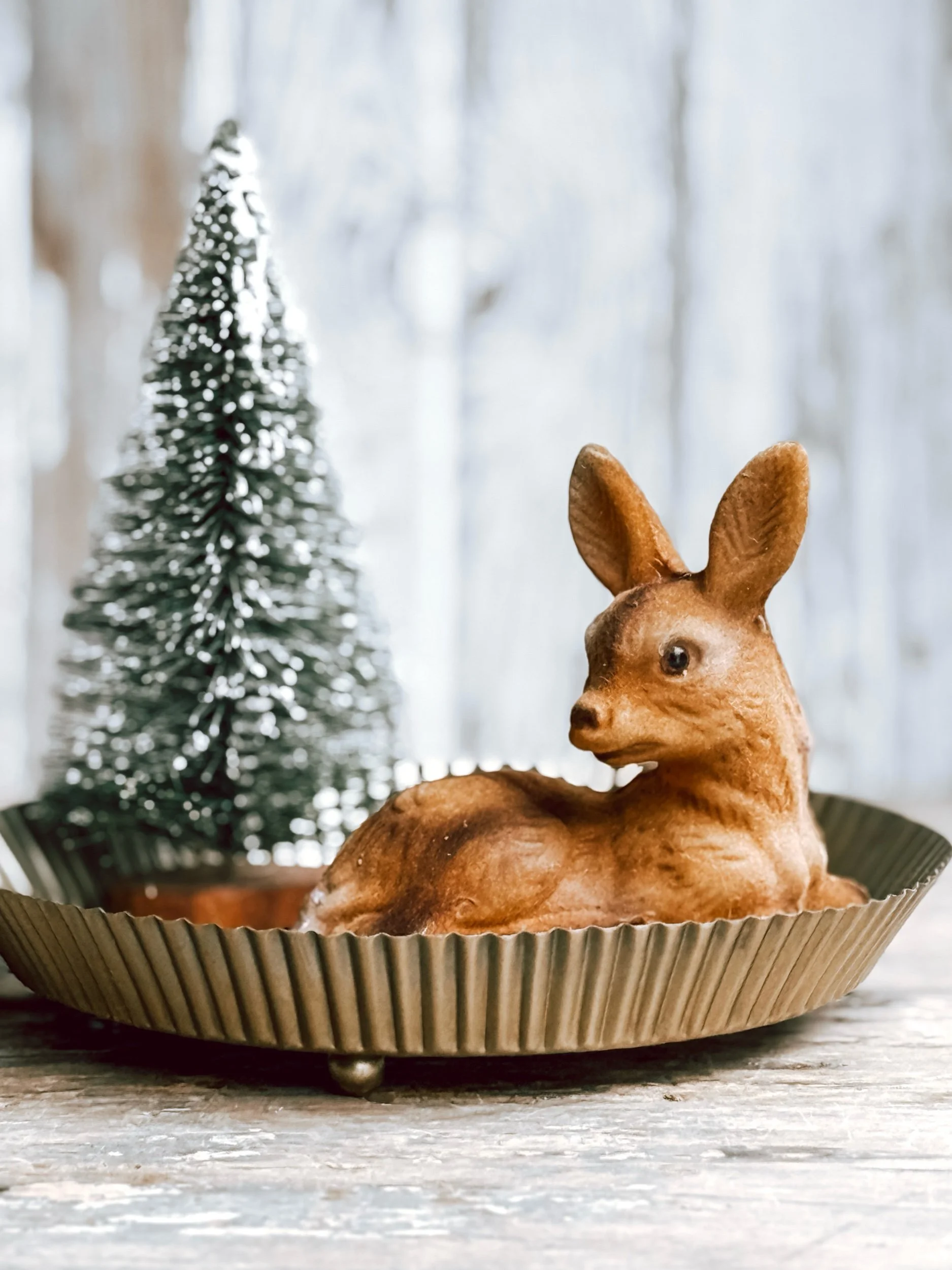 Vintage French Mocha Tinsel Tree w/ Vintage Fur Tree Skirt