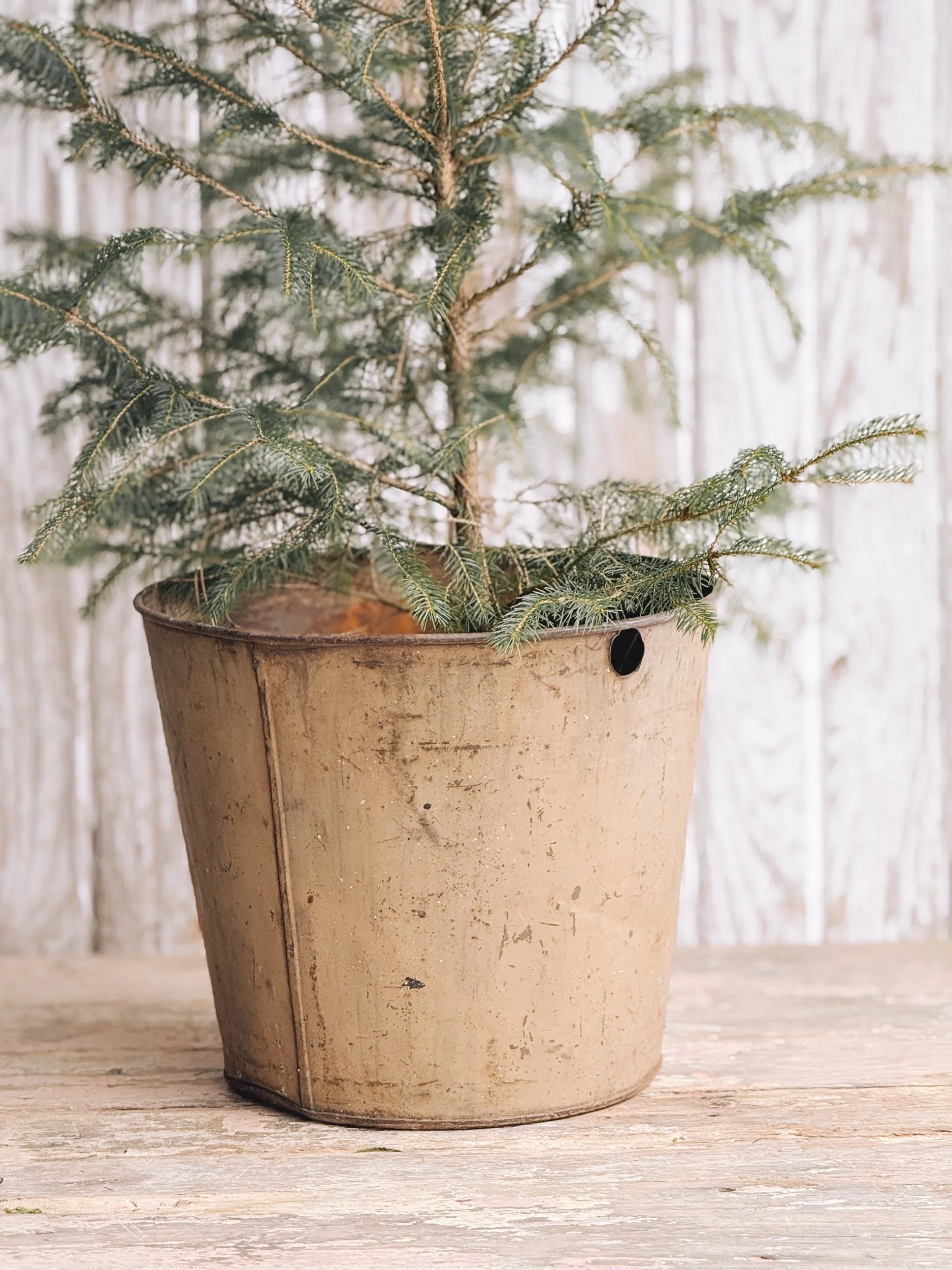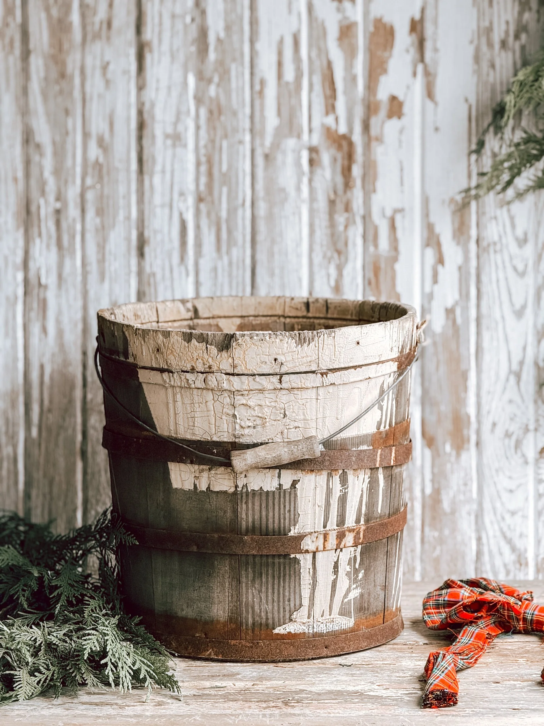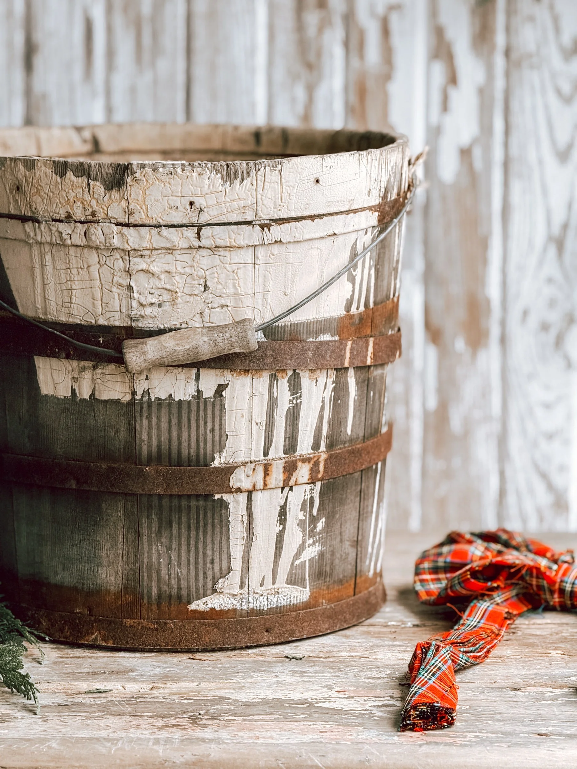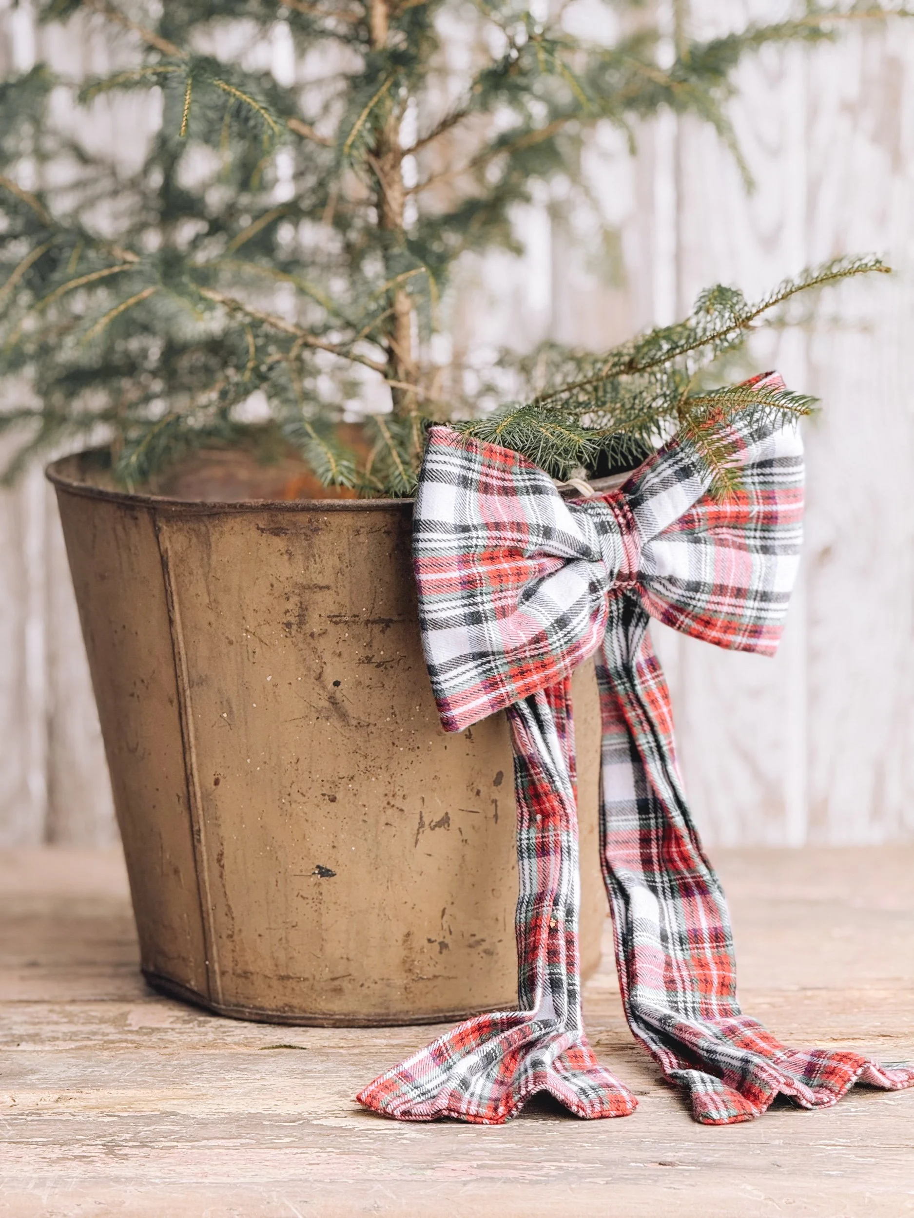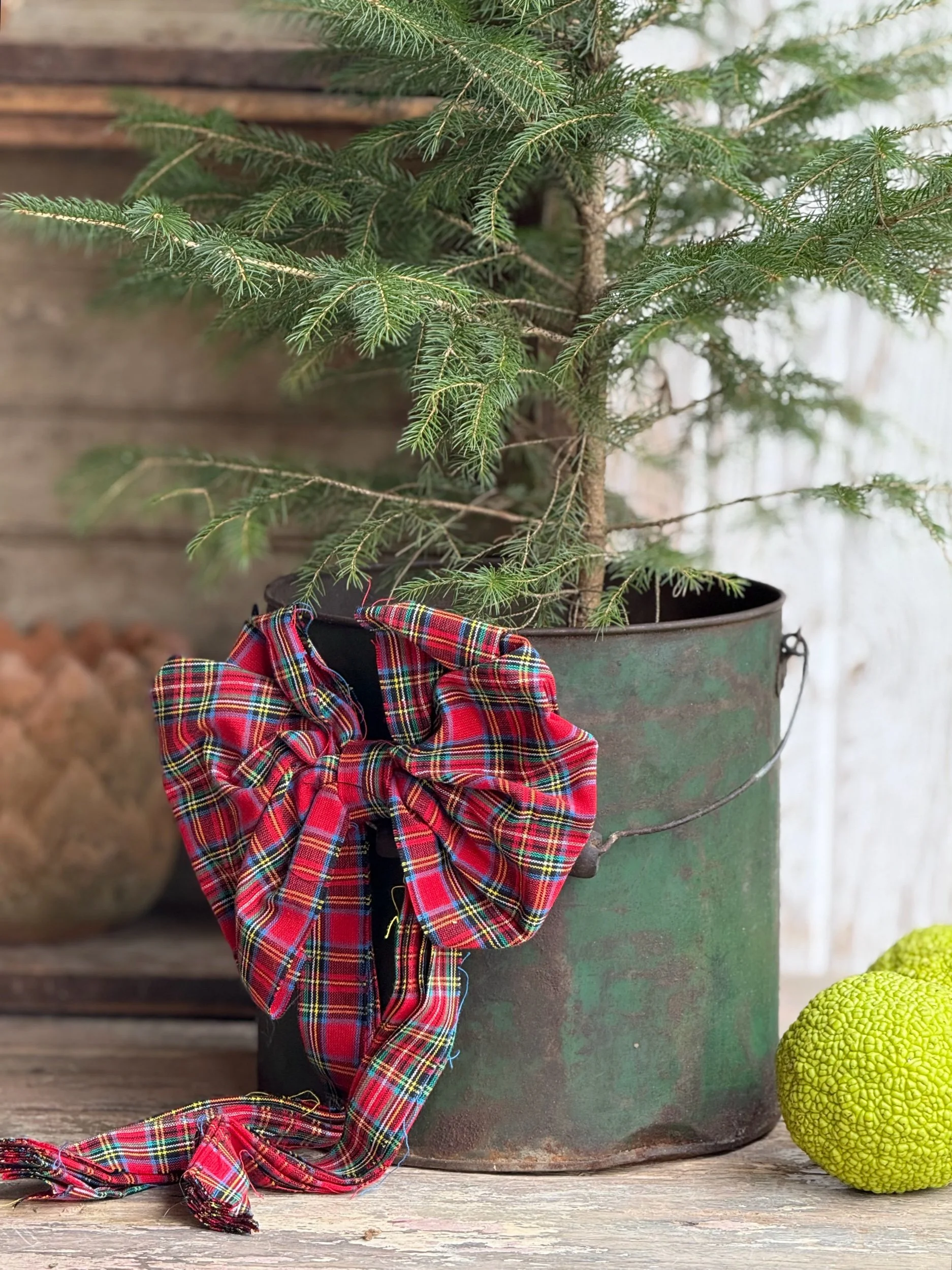 Antique Sap Bucket w/ Handmade Tartan Bow