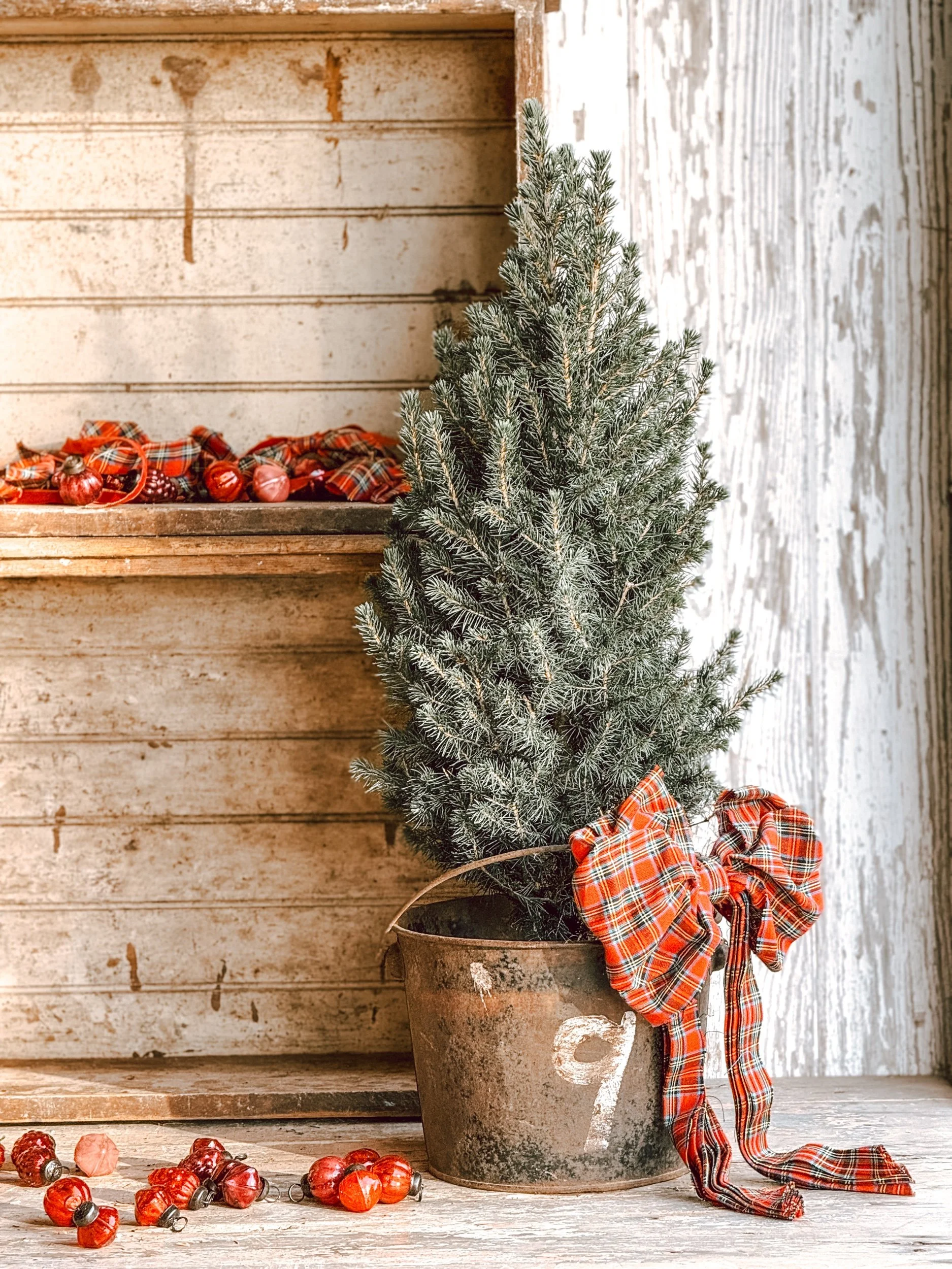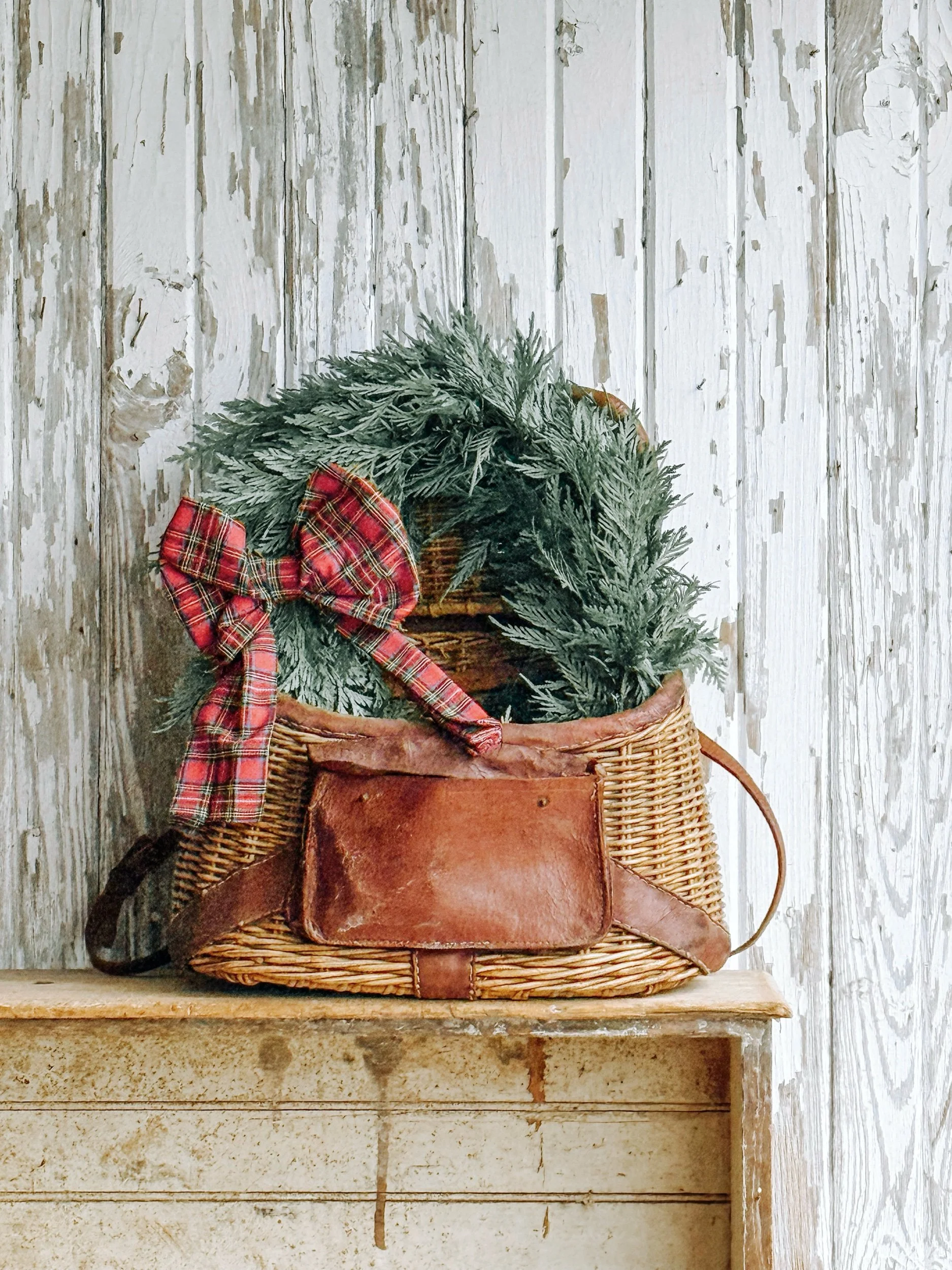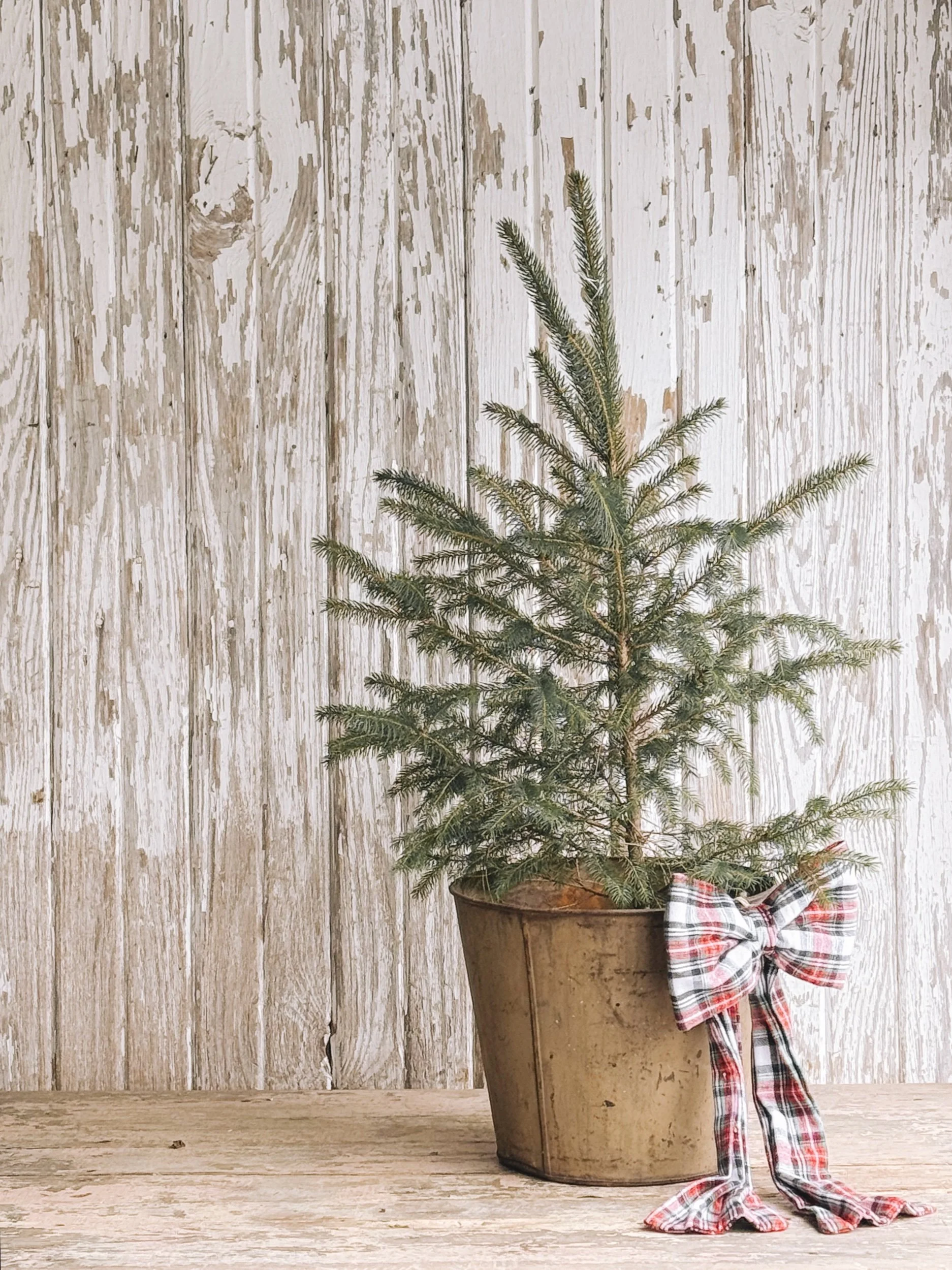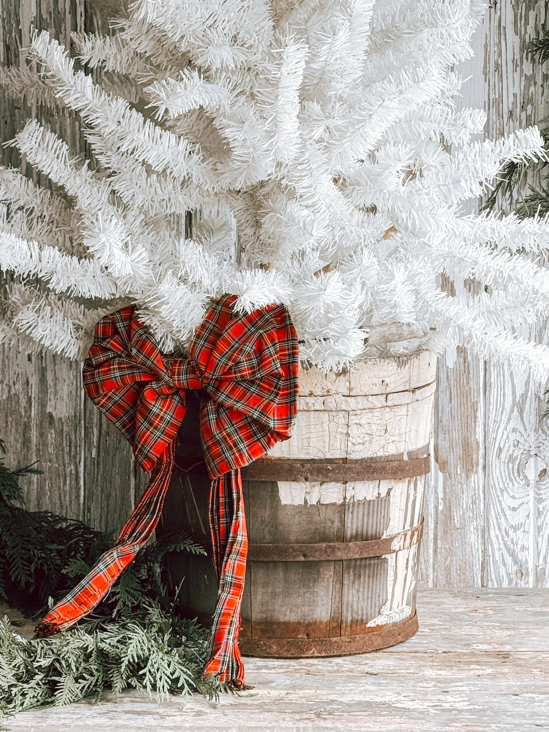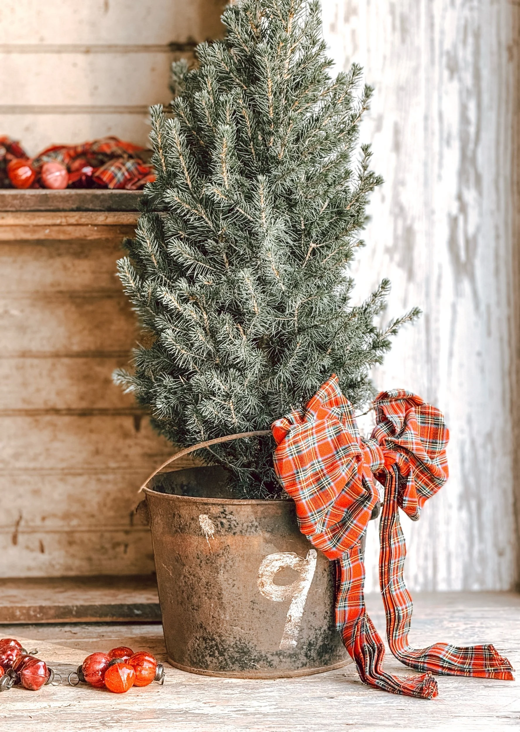Antique Sap Bucket w/ Handmade Tartan Bow
