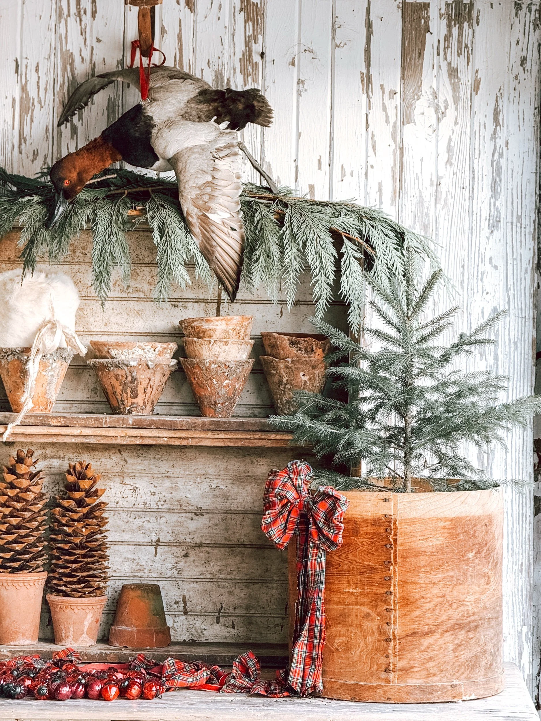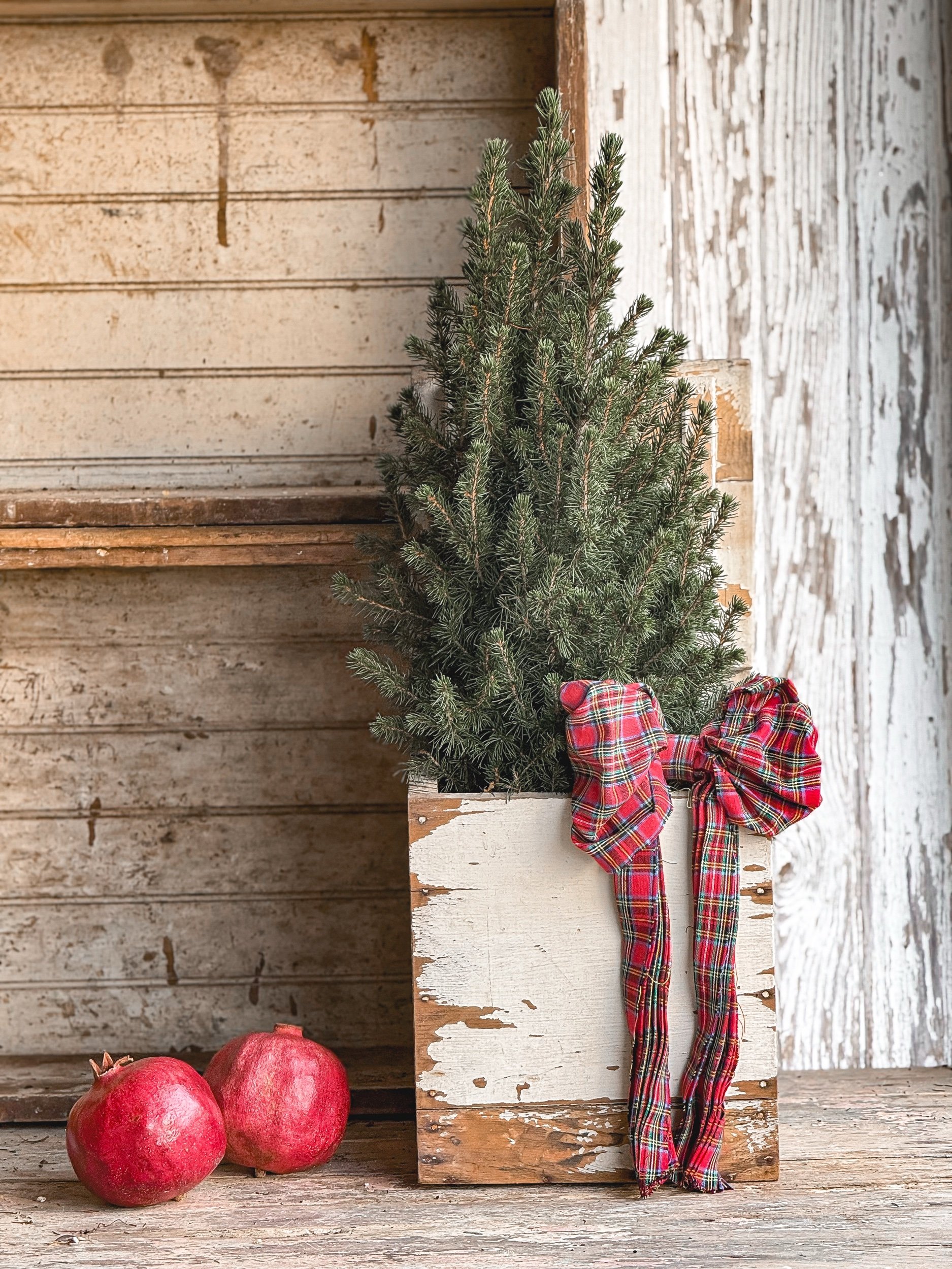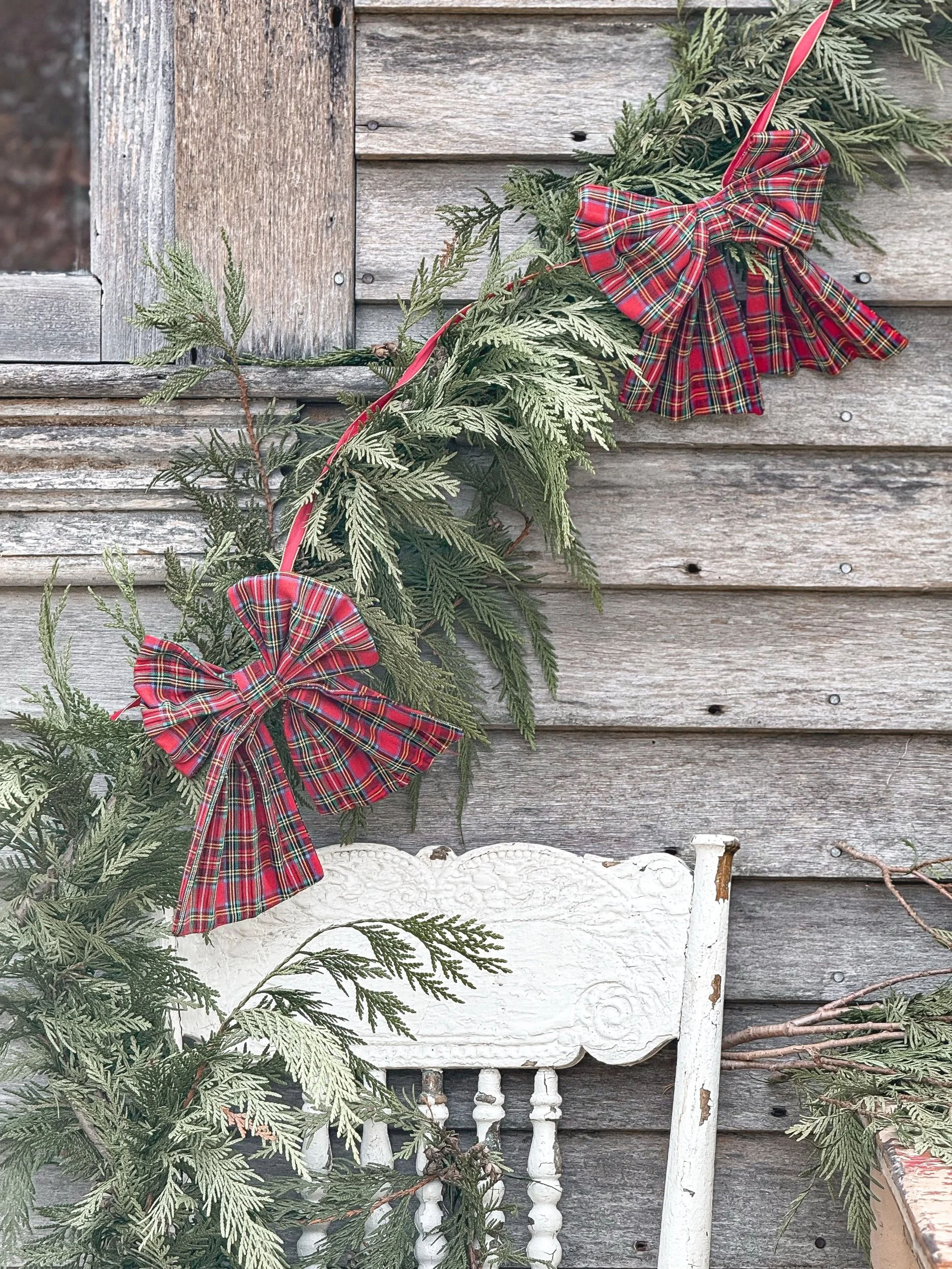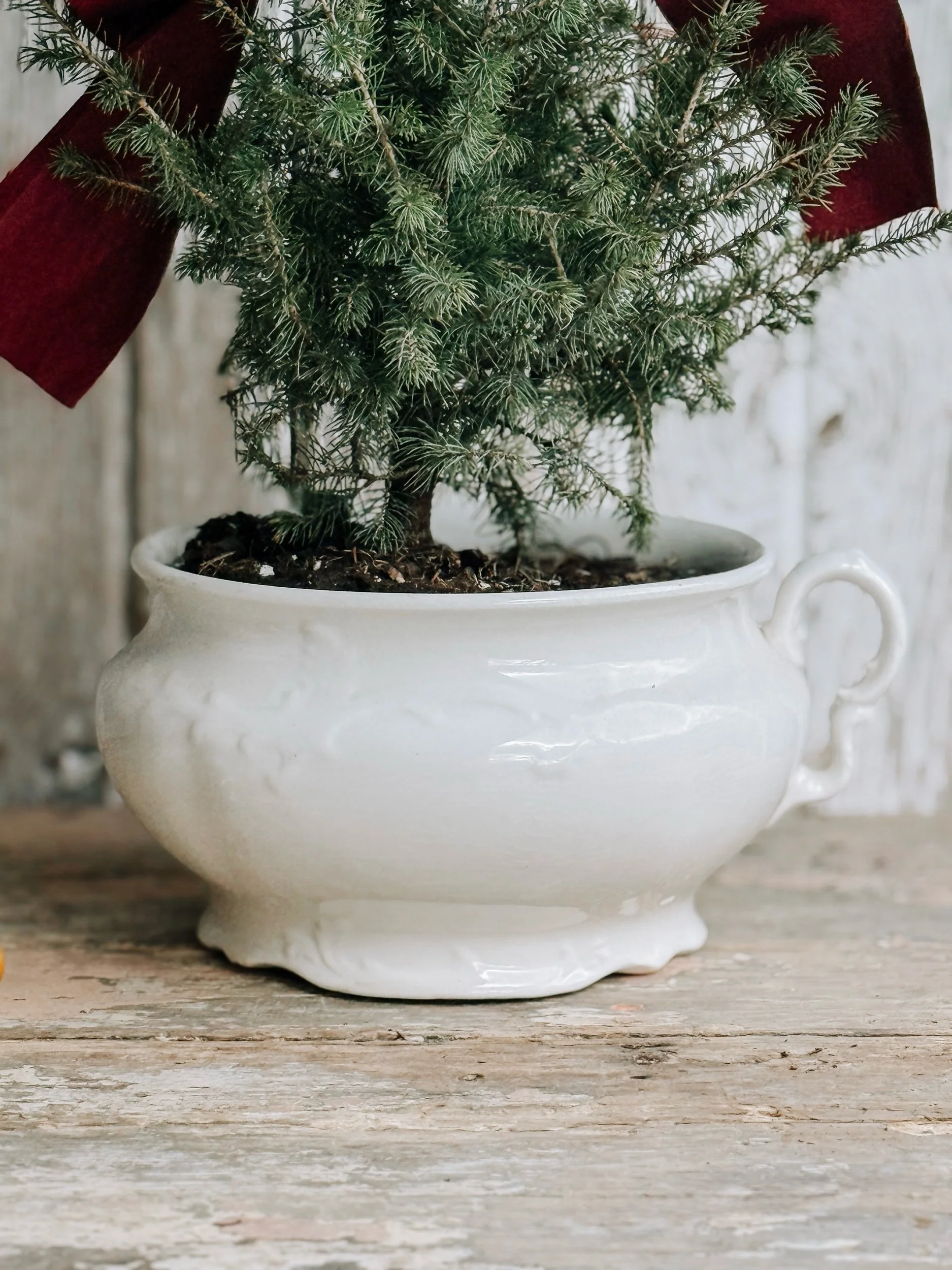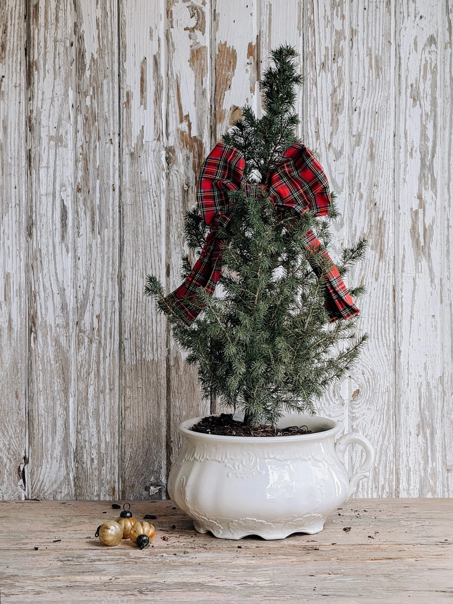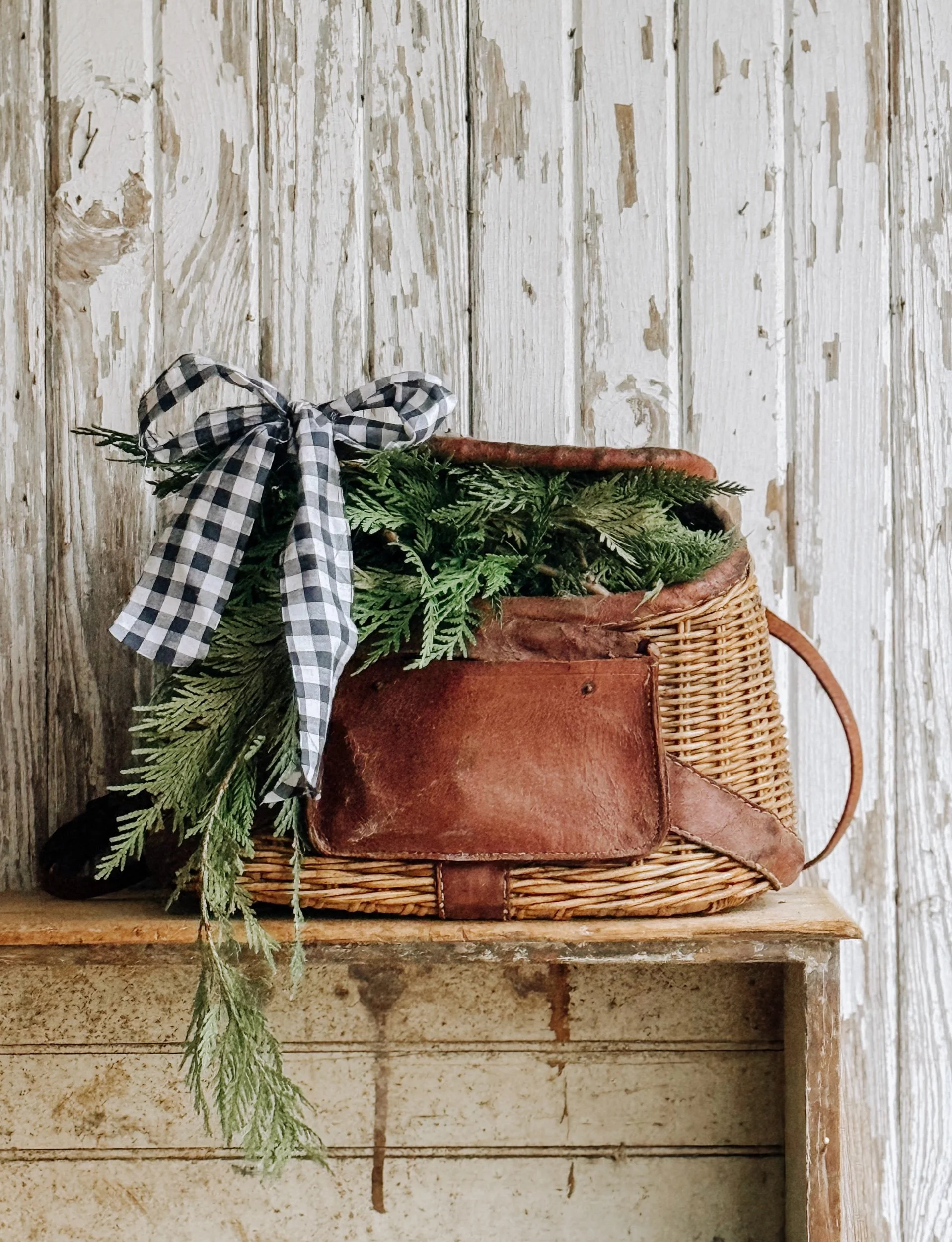 Antique Sap Bucket w/ Handmade Tartan Bow