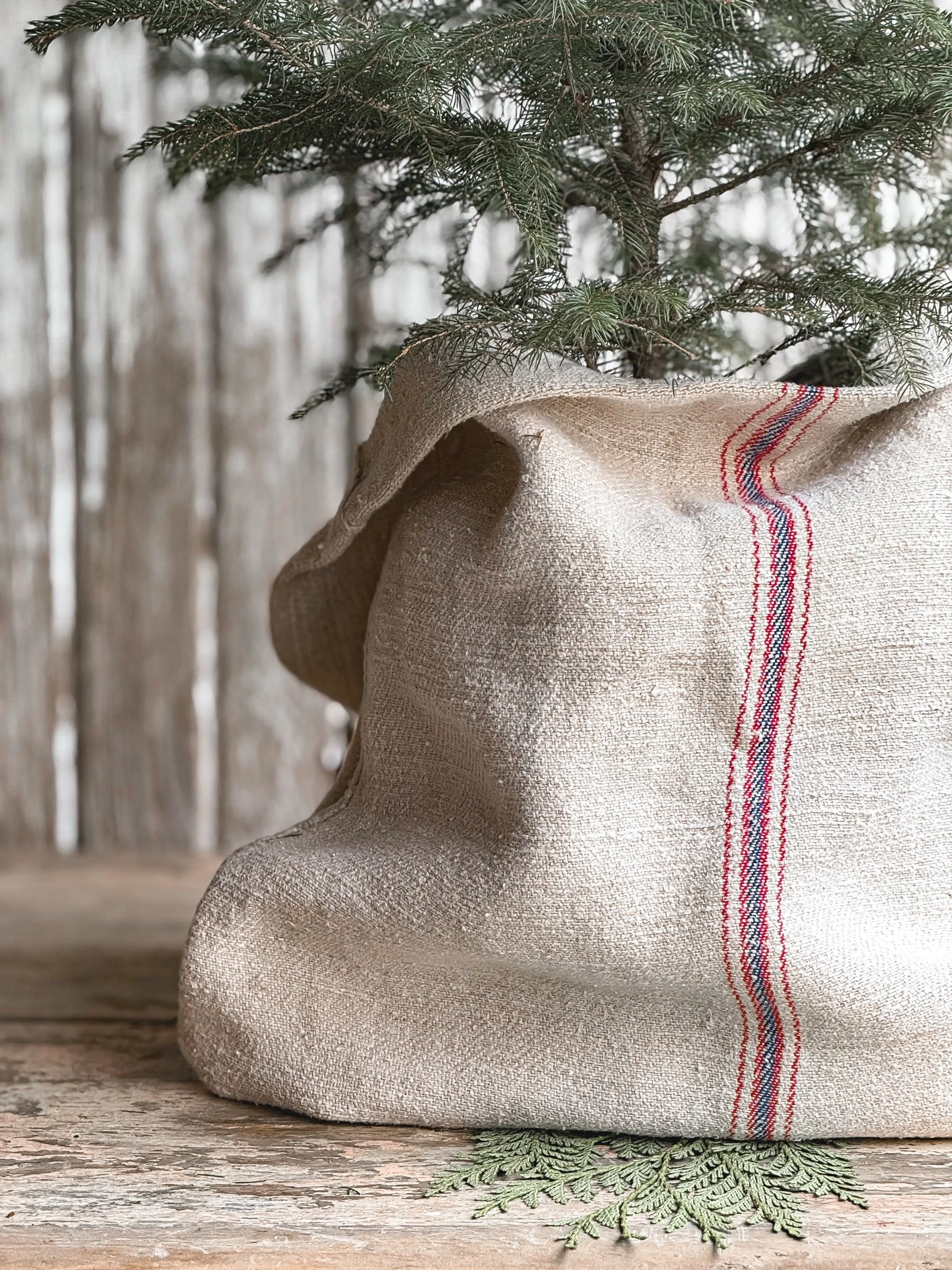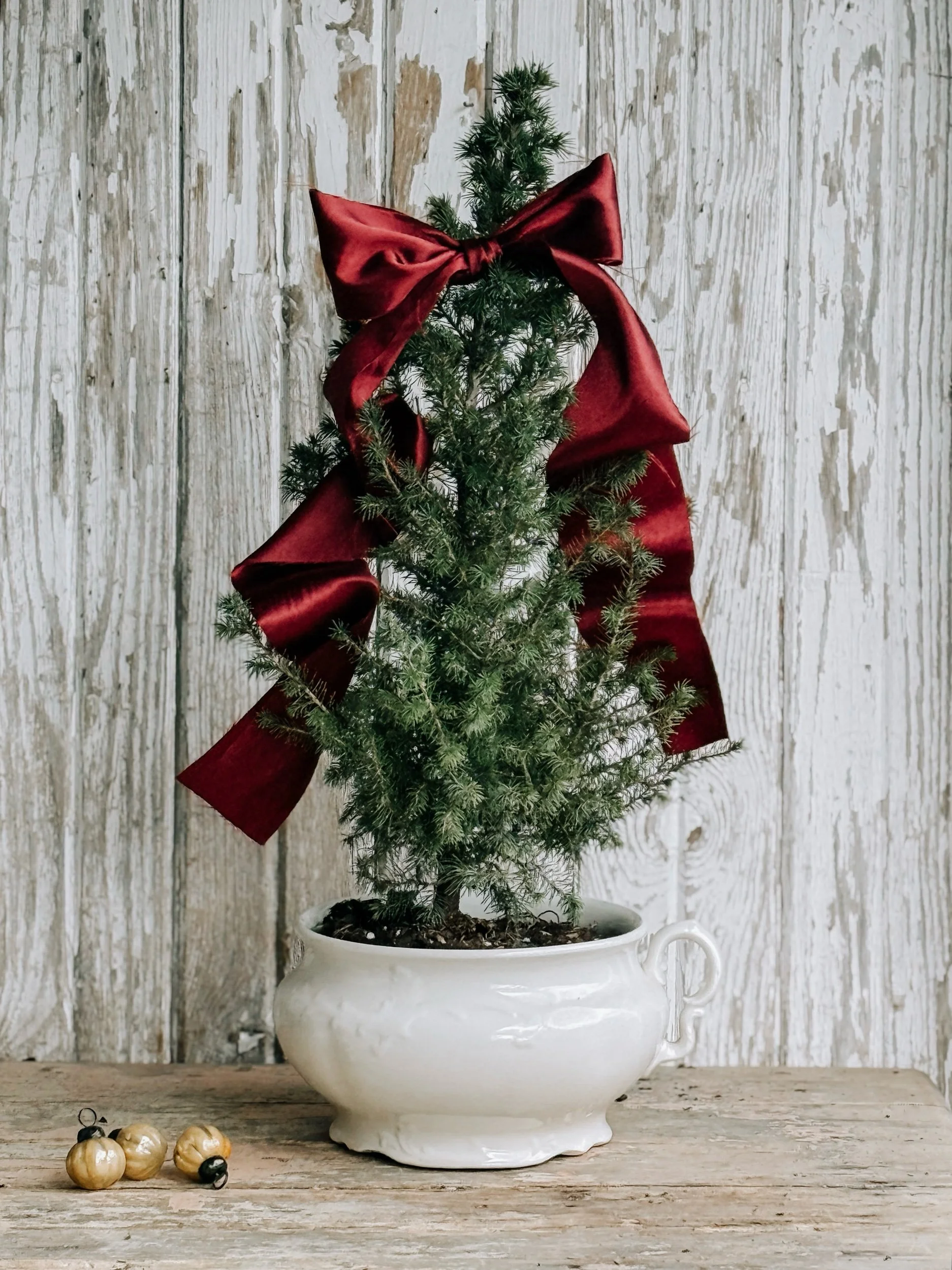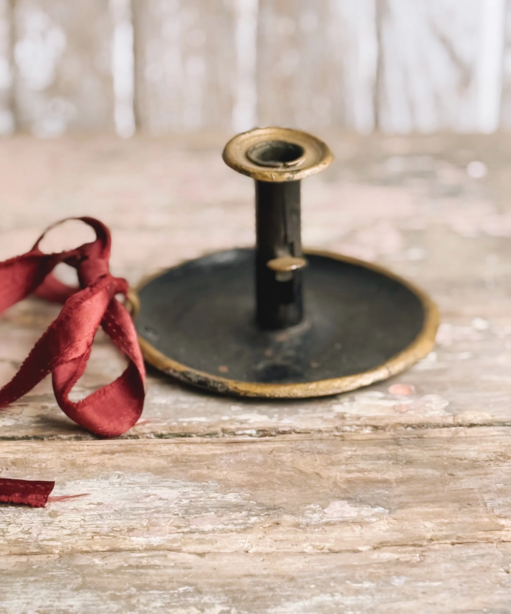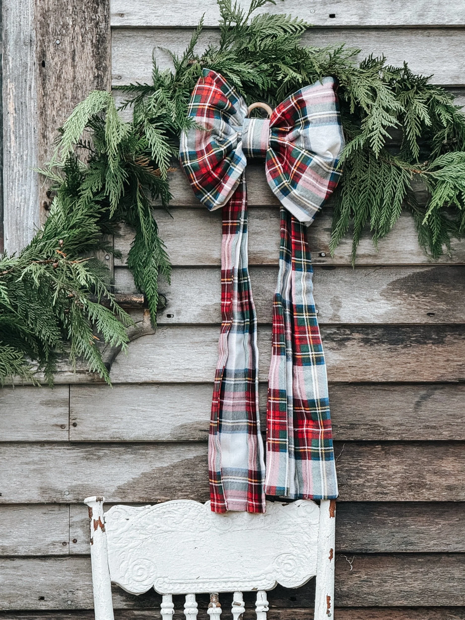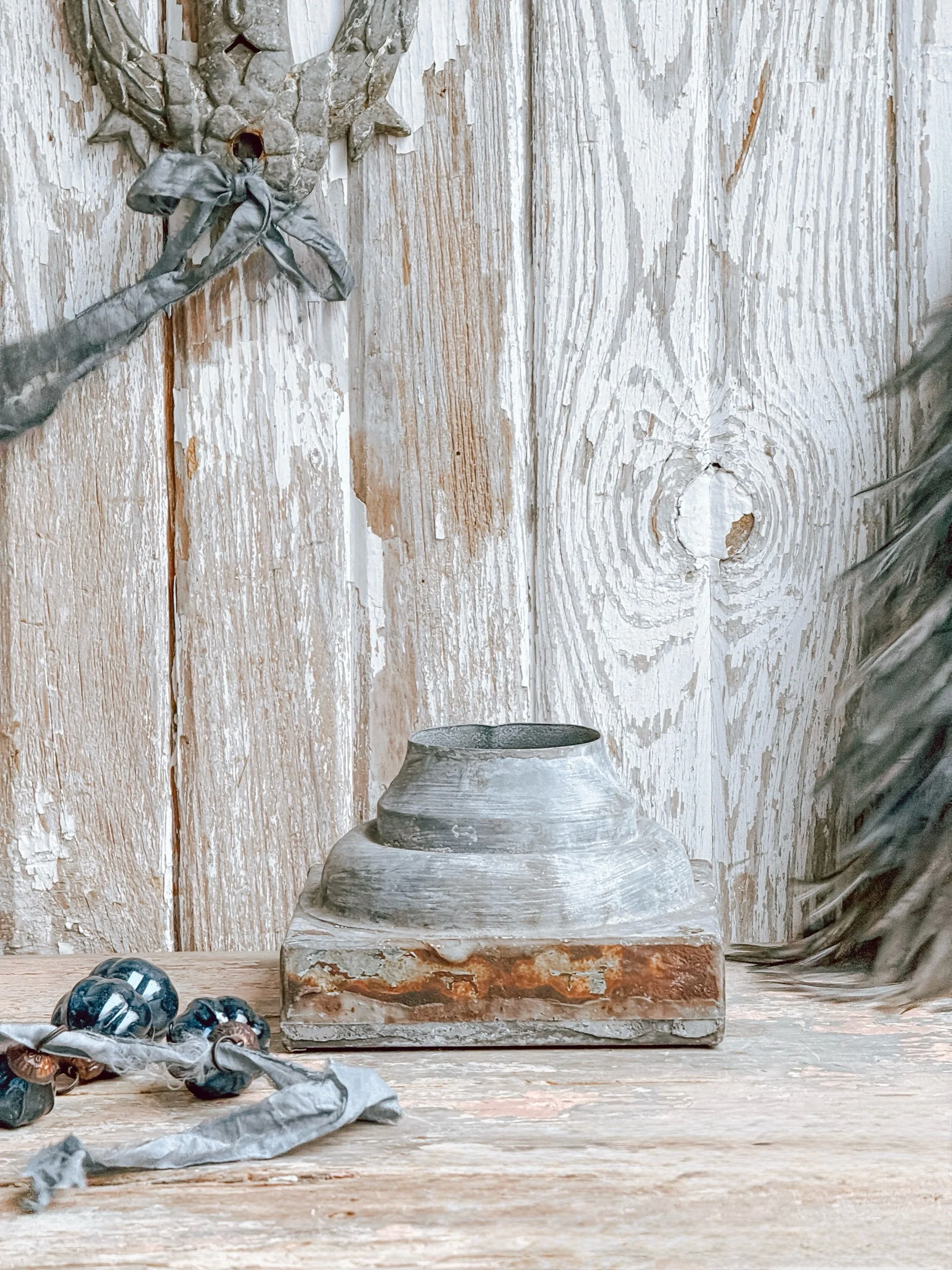 Antique Sap Bucket w/ Handmade Tartan Bow