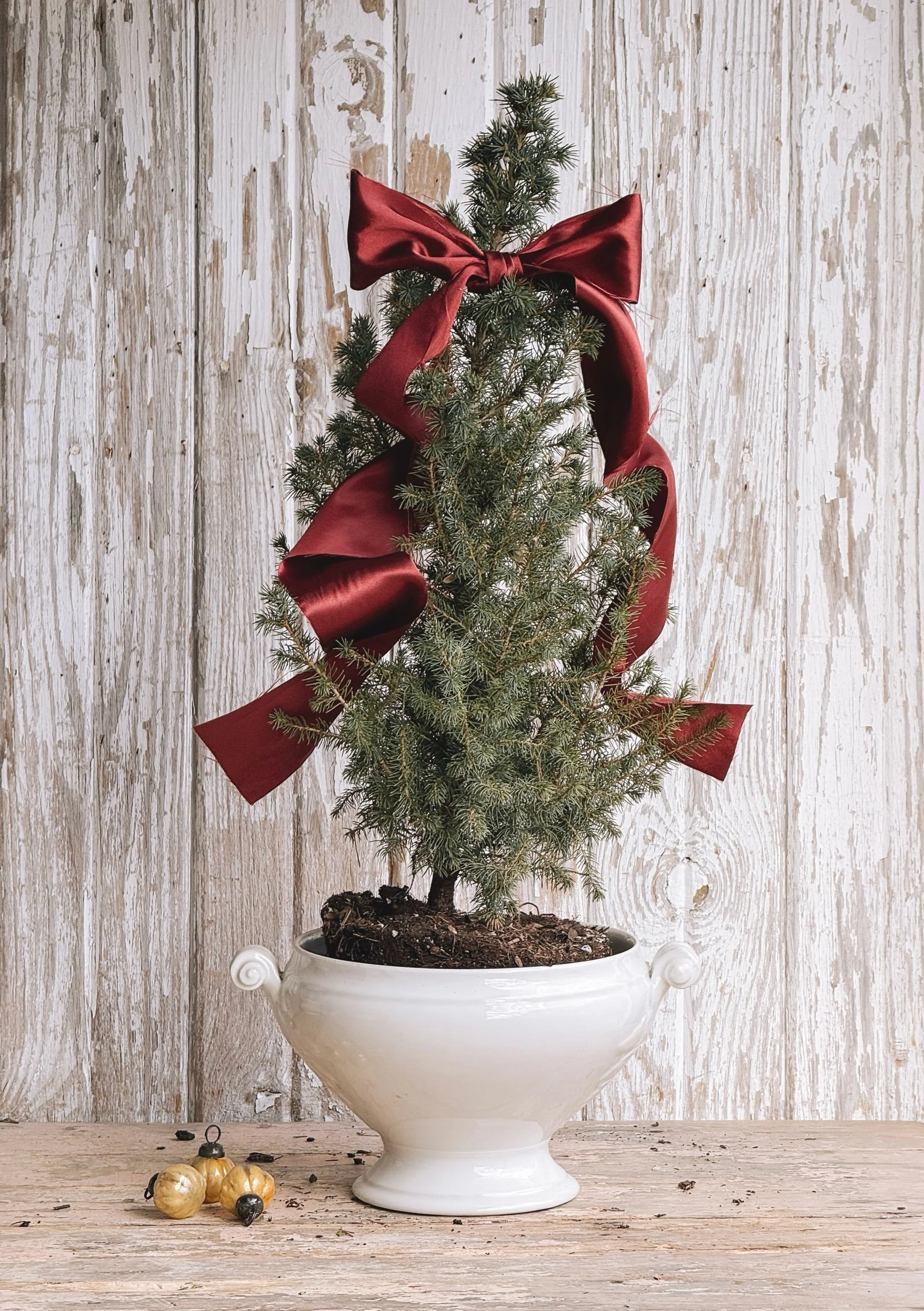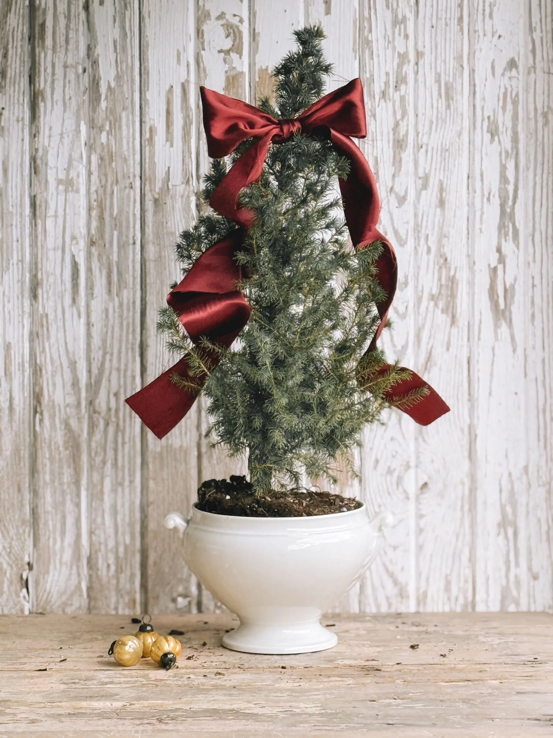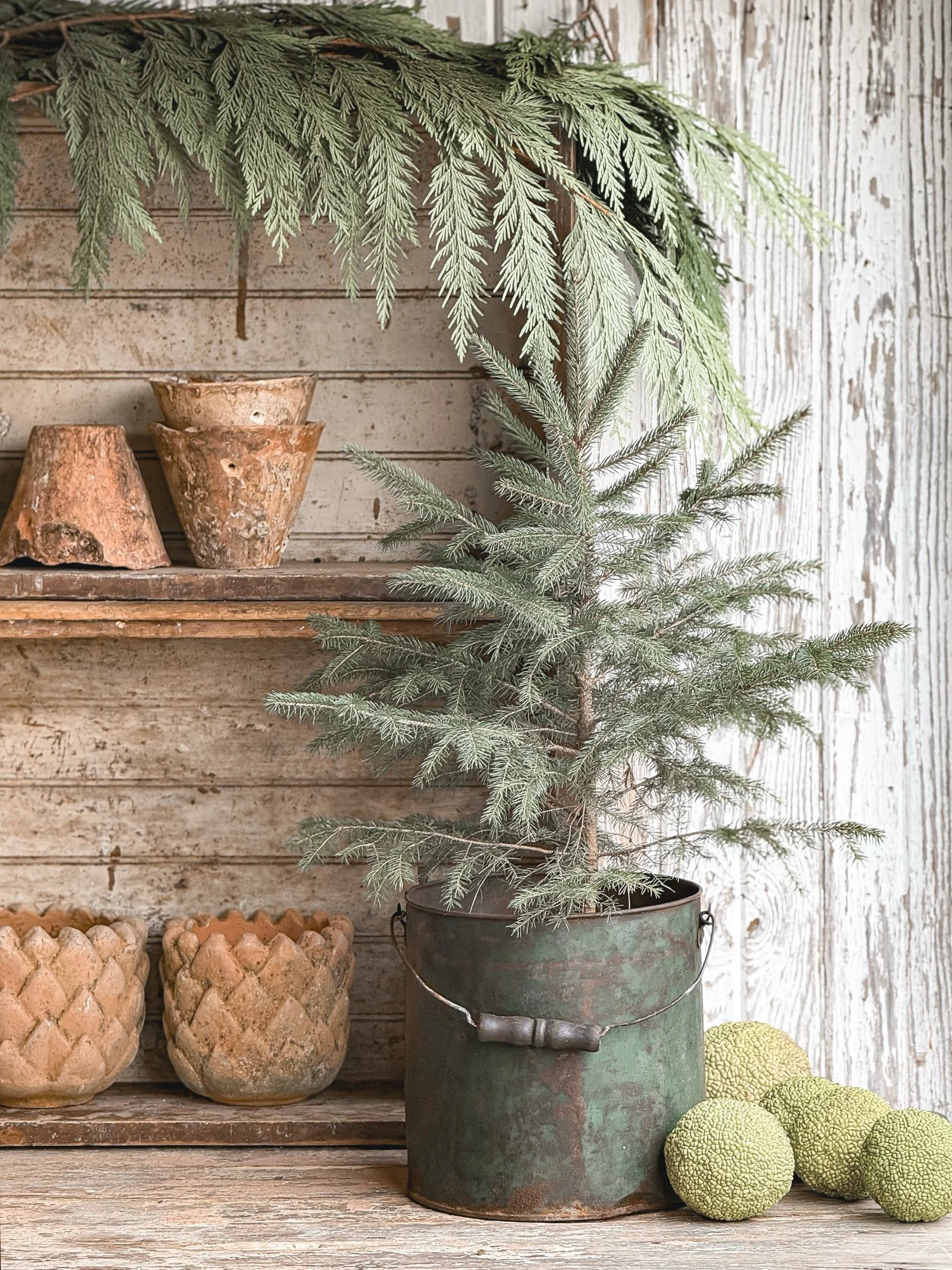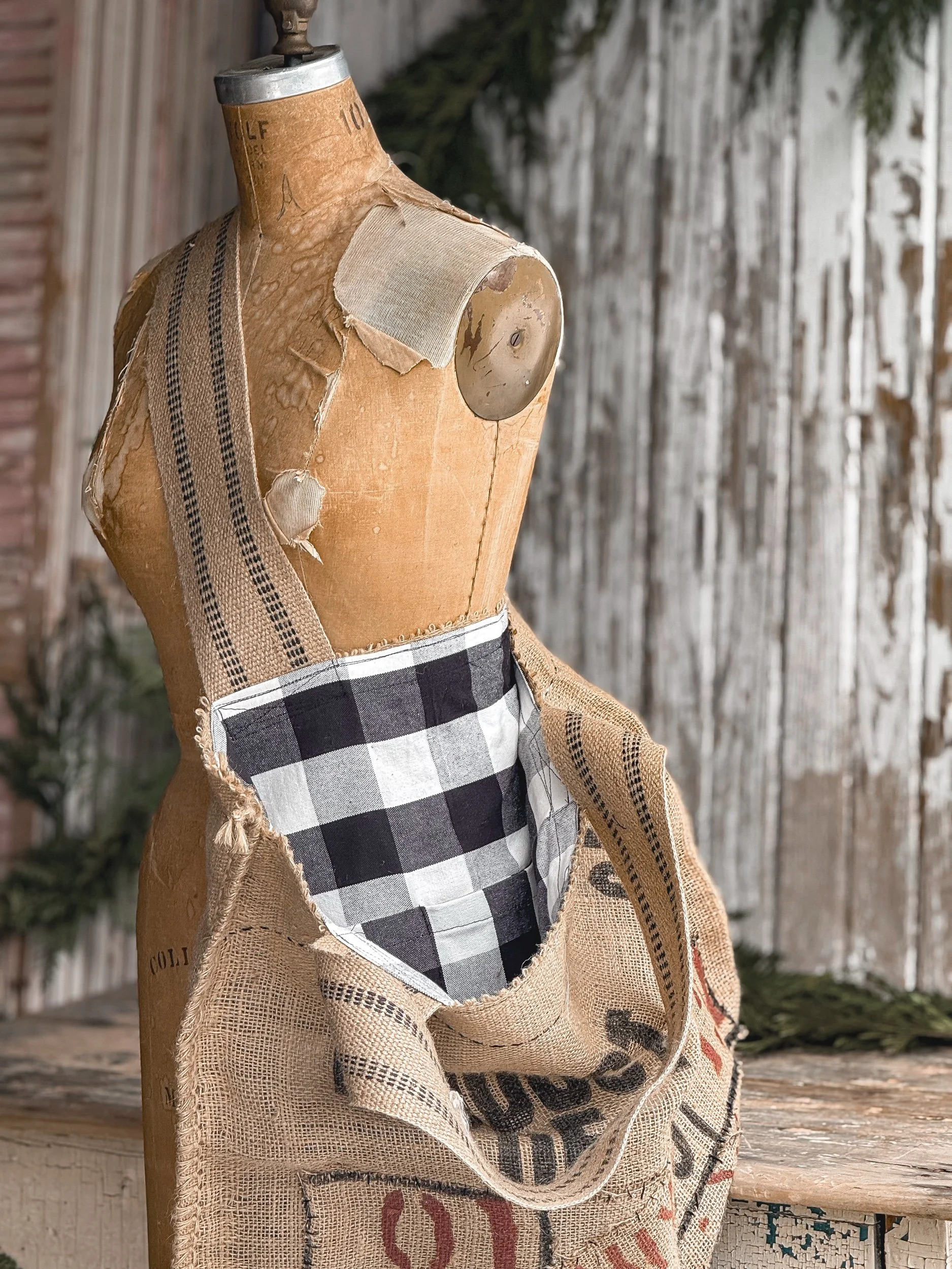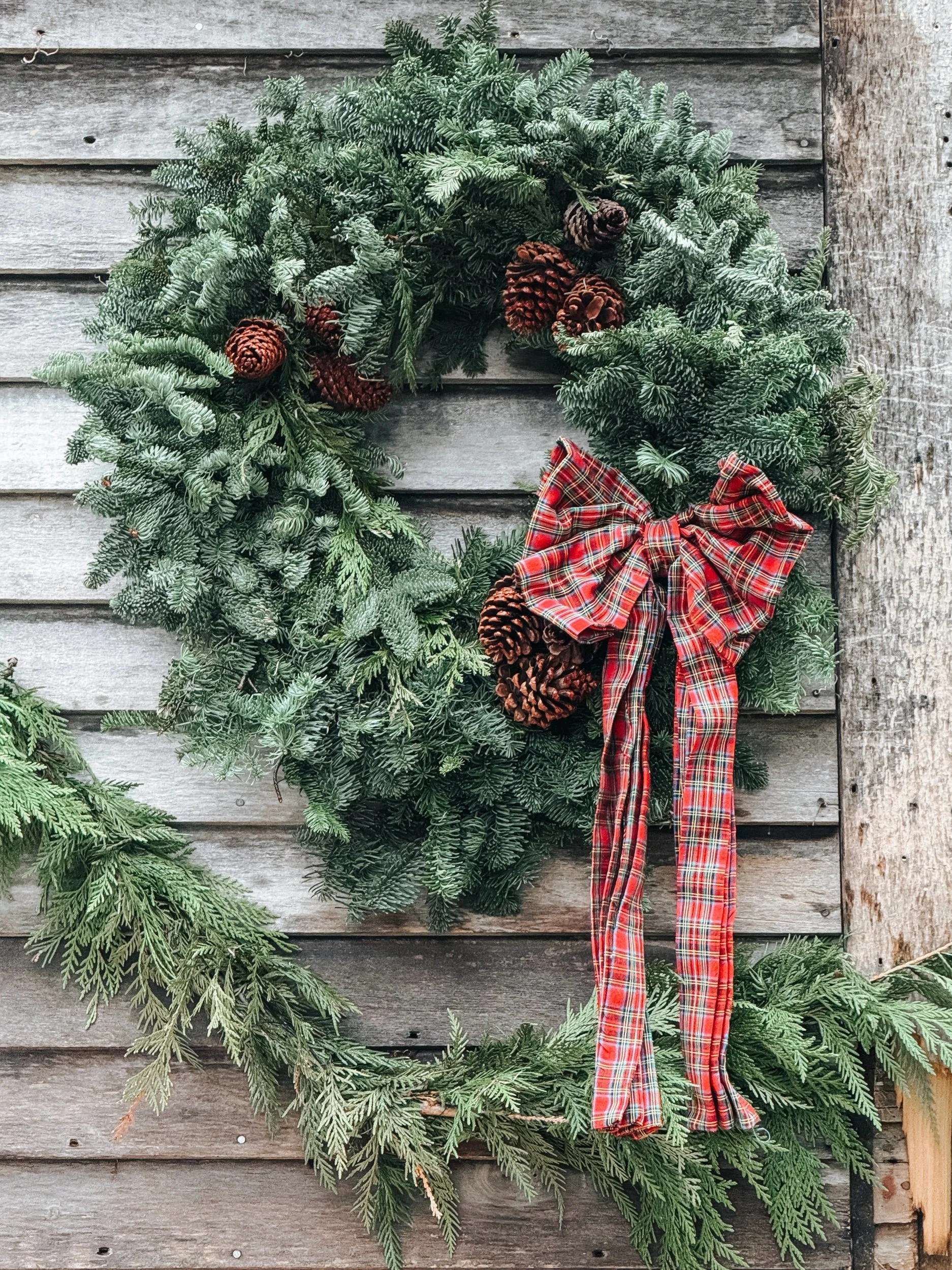 Antique Sap Bucket w/ Handmade Tartan Bow