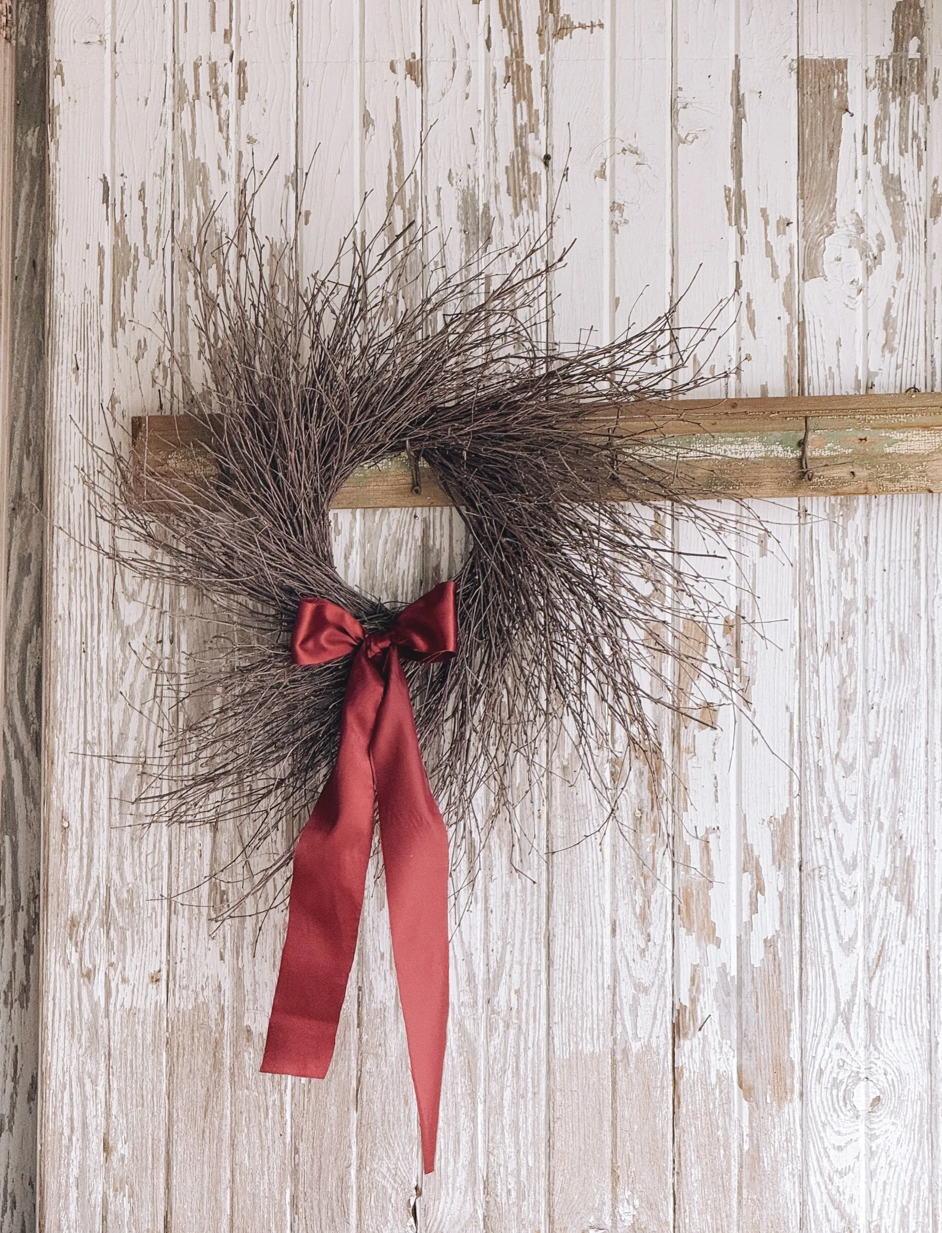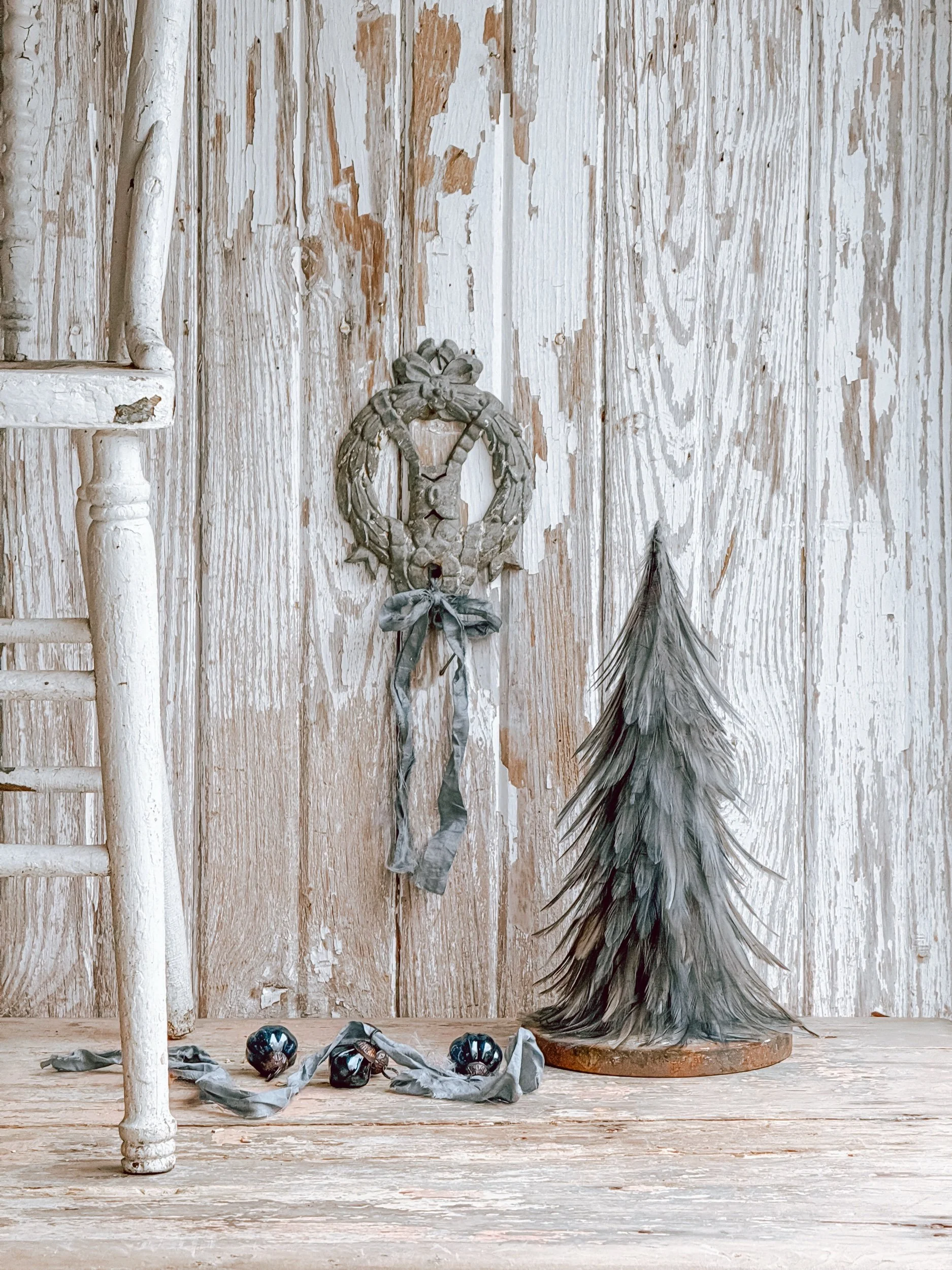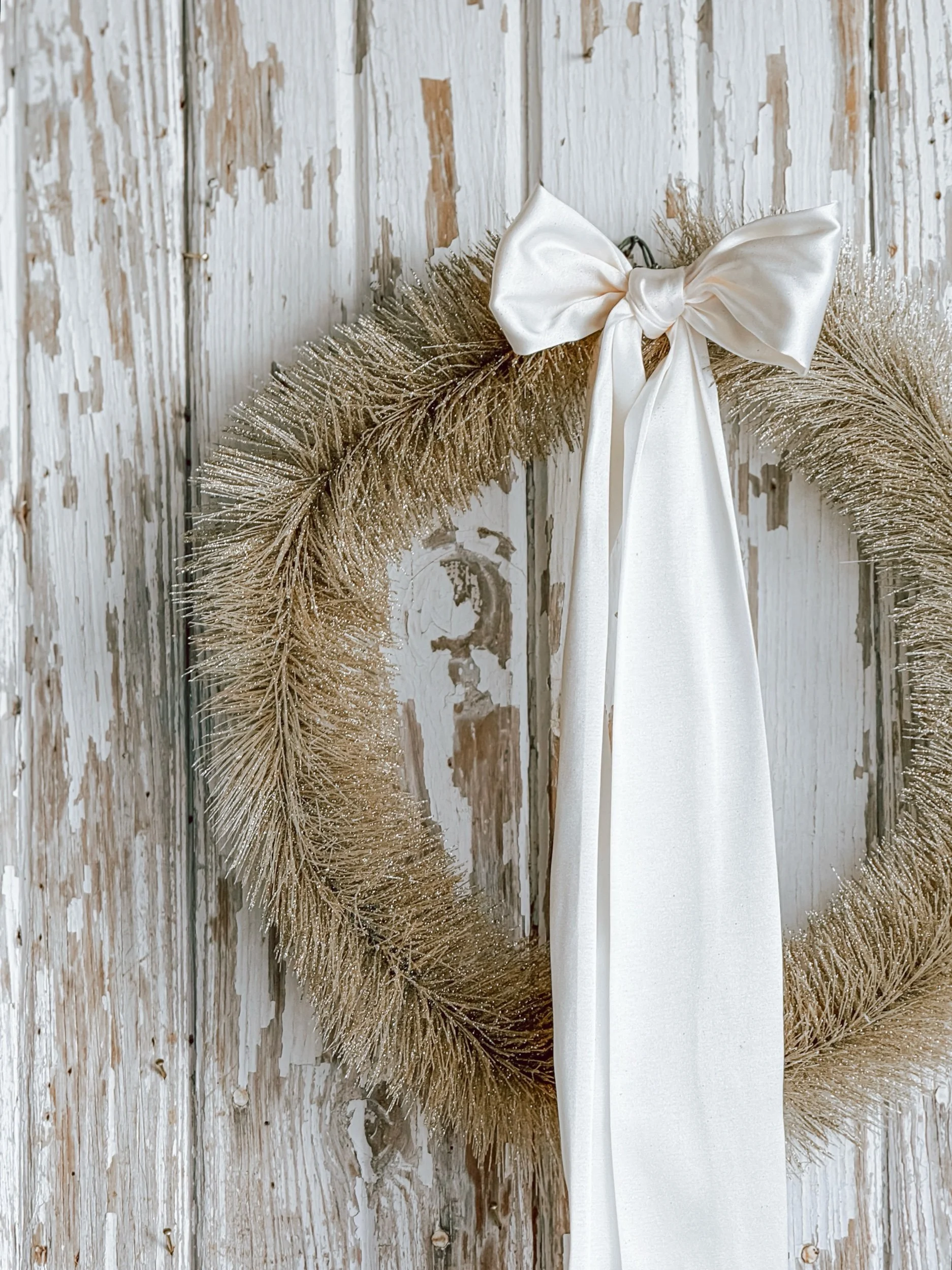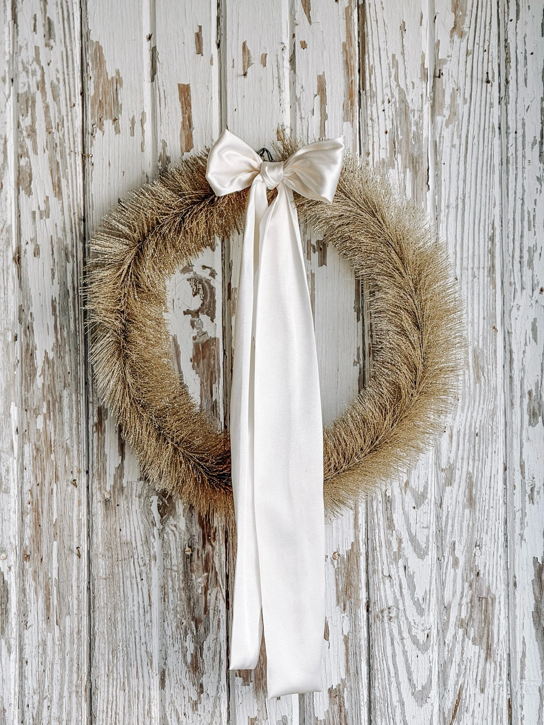 Vintage Bottle Brush Wreath w/ Handmade Satin Bow