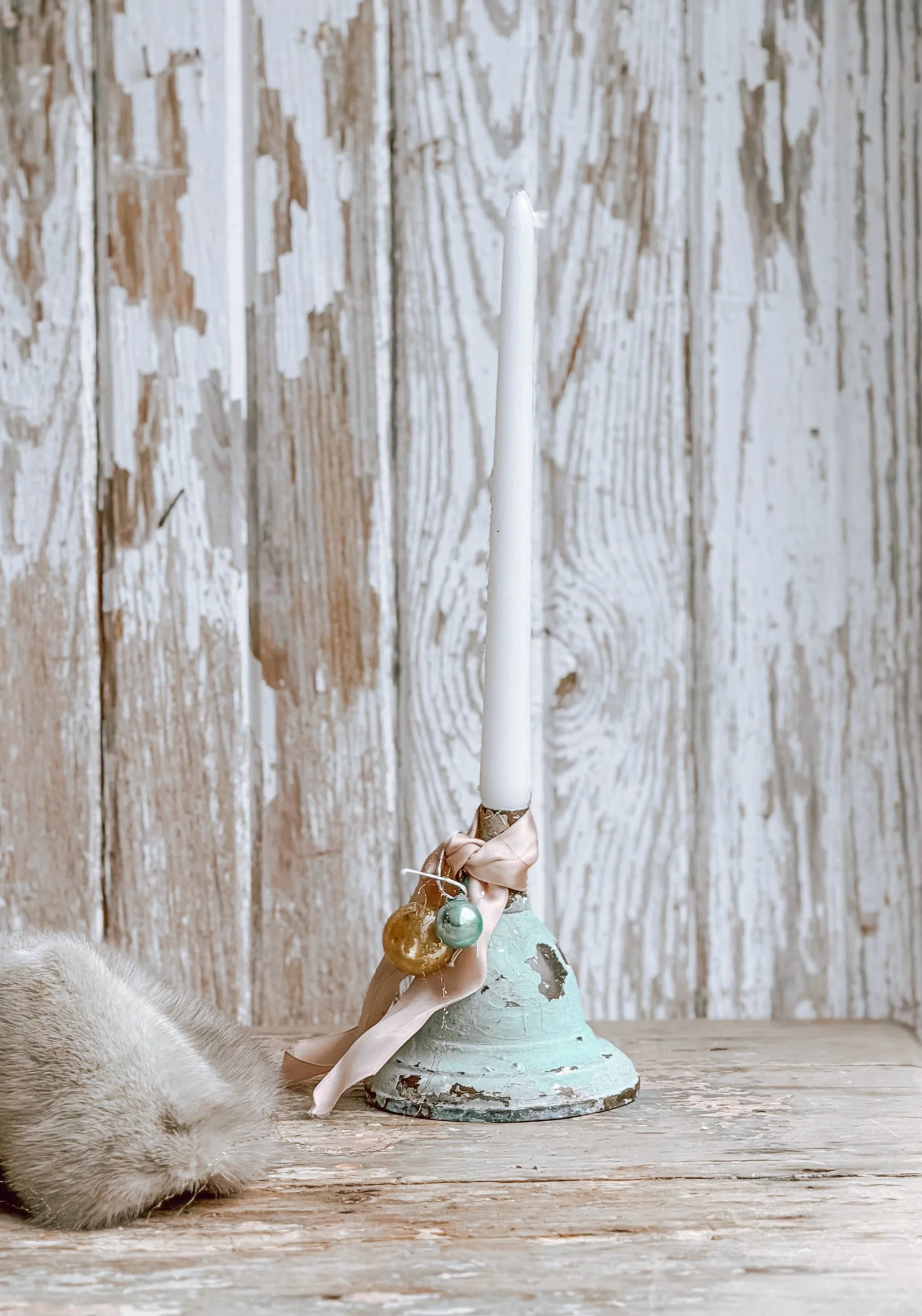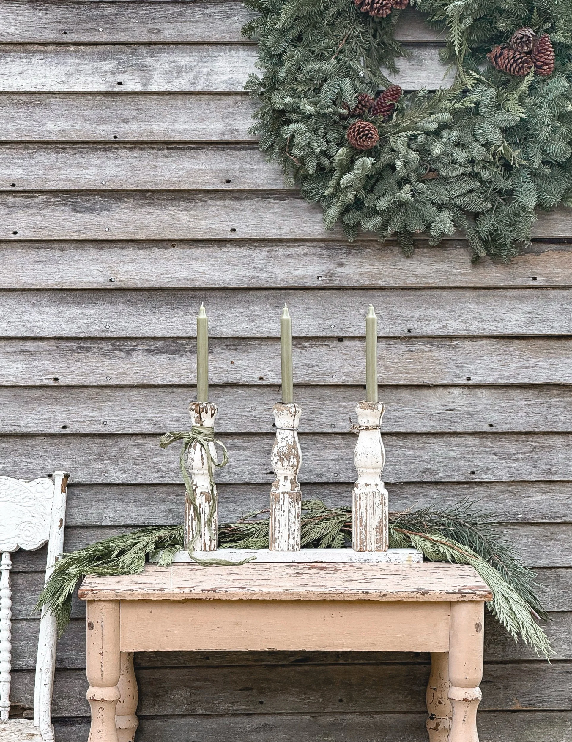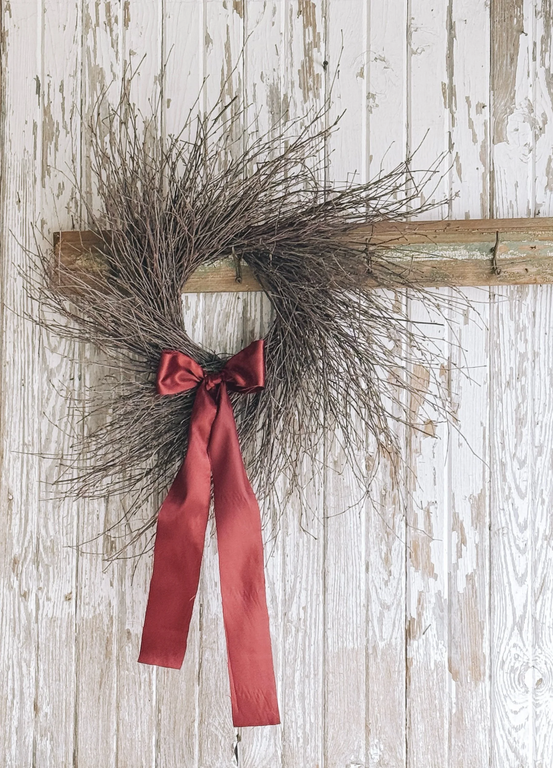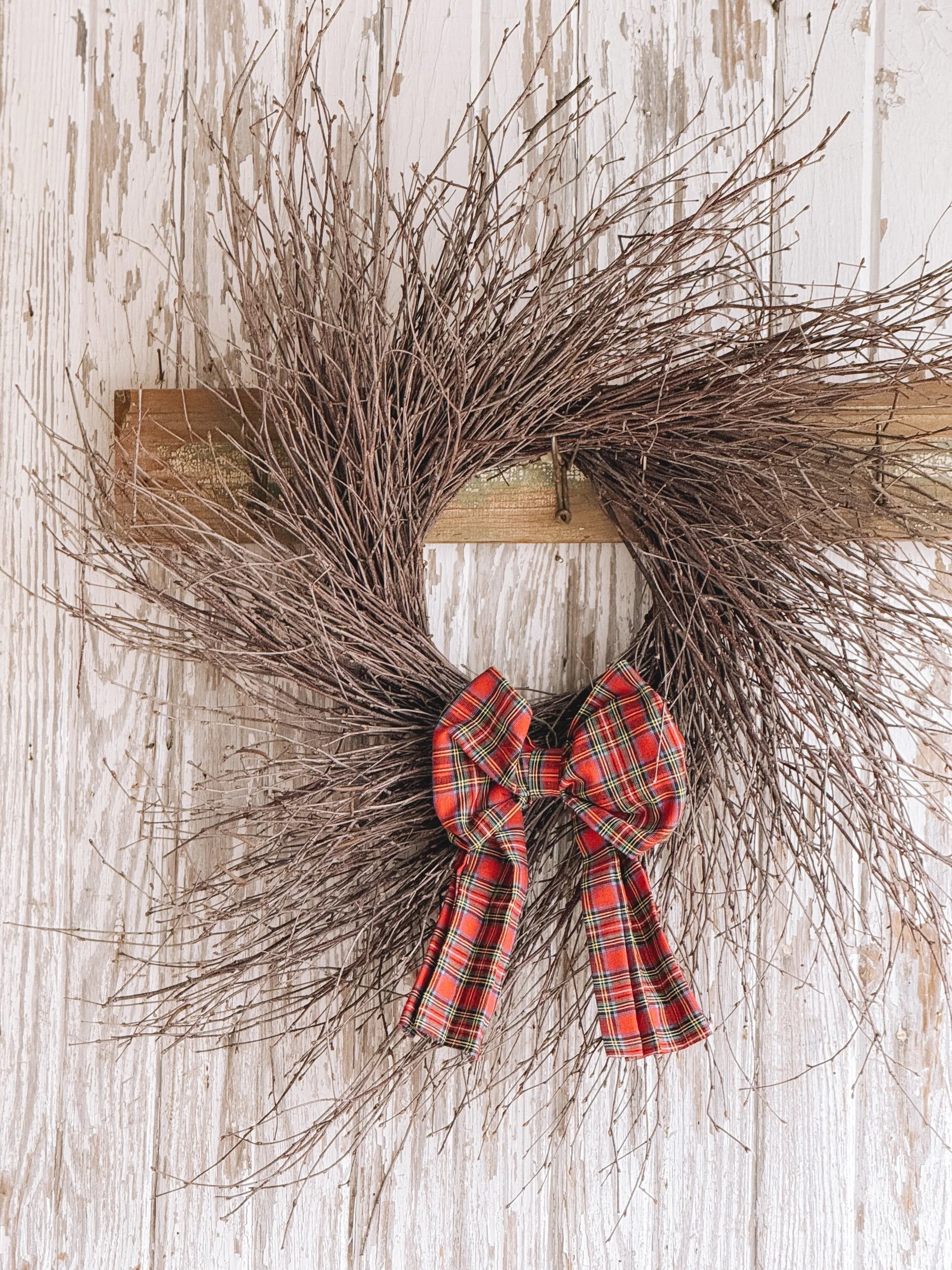 Vintage Bottle Brush Wreath w/ Handmade Satin Bow