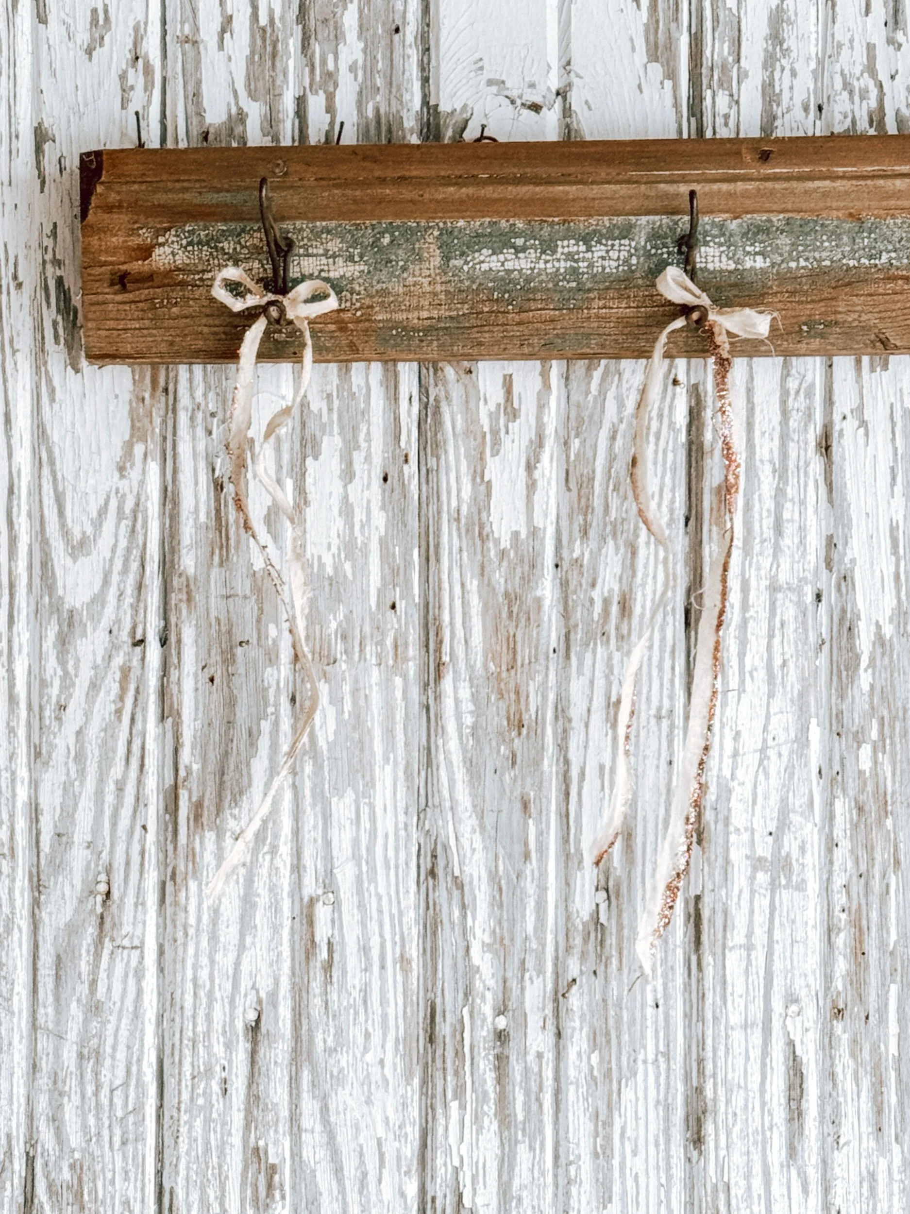 Antique Salvaged Rosette Hook w/ Two Artisan Handmade Satin Bows