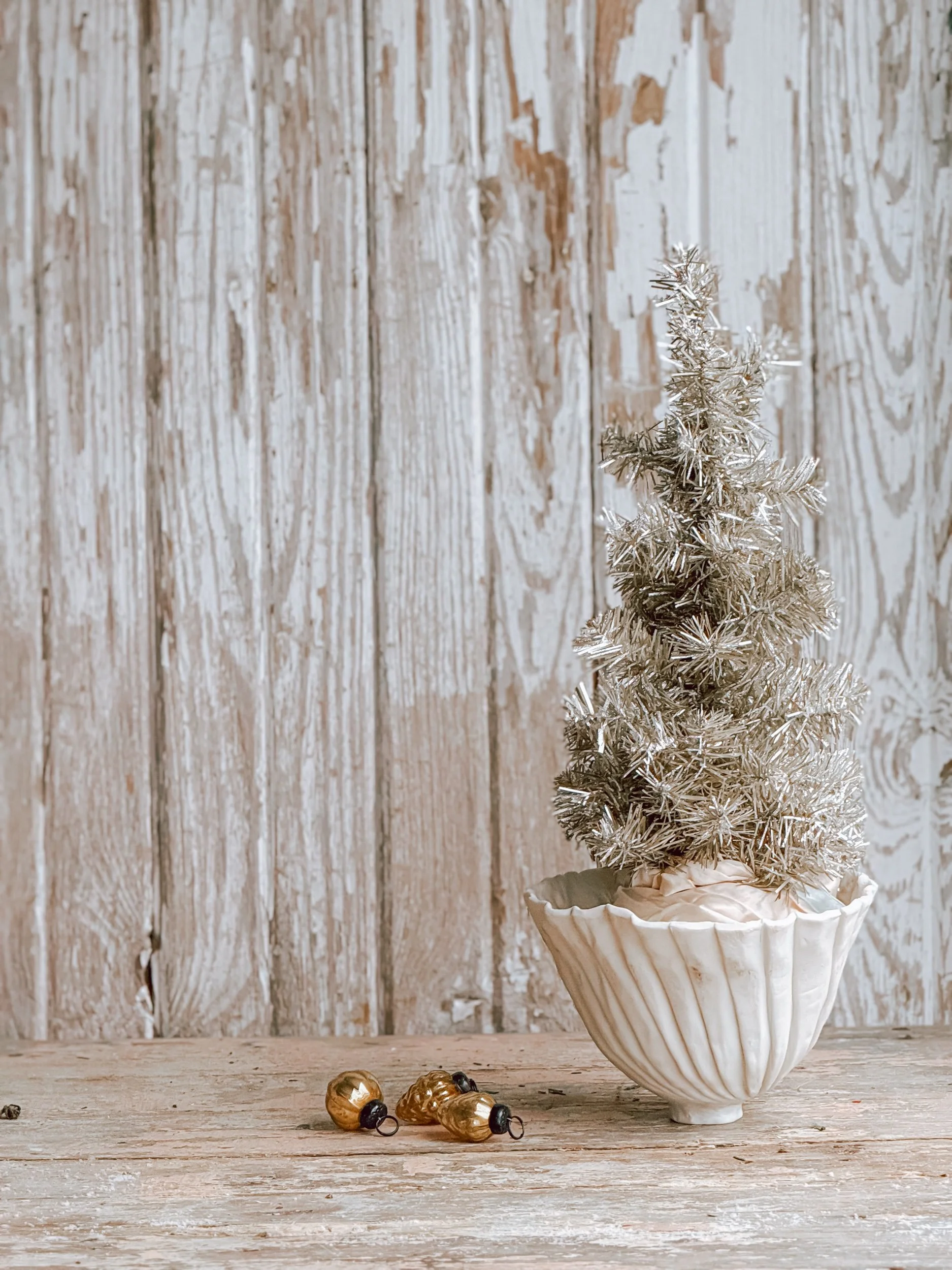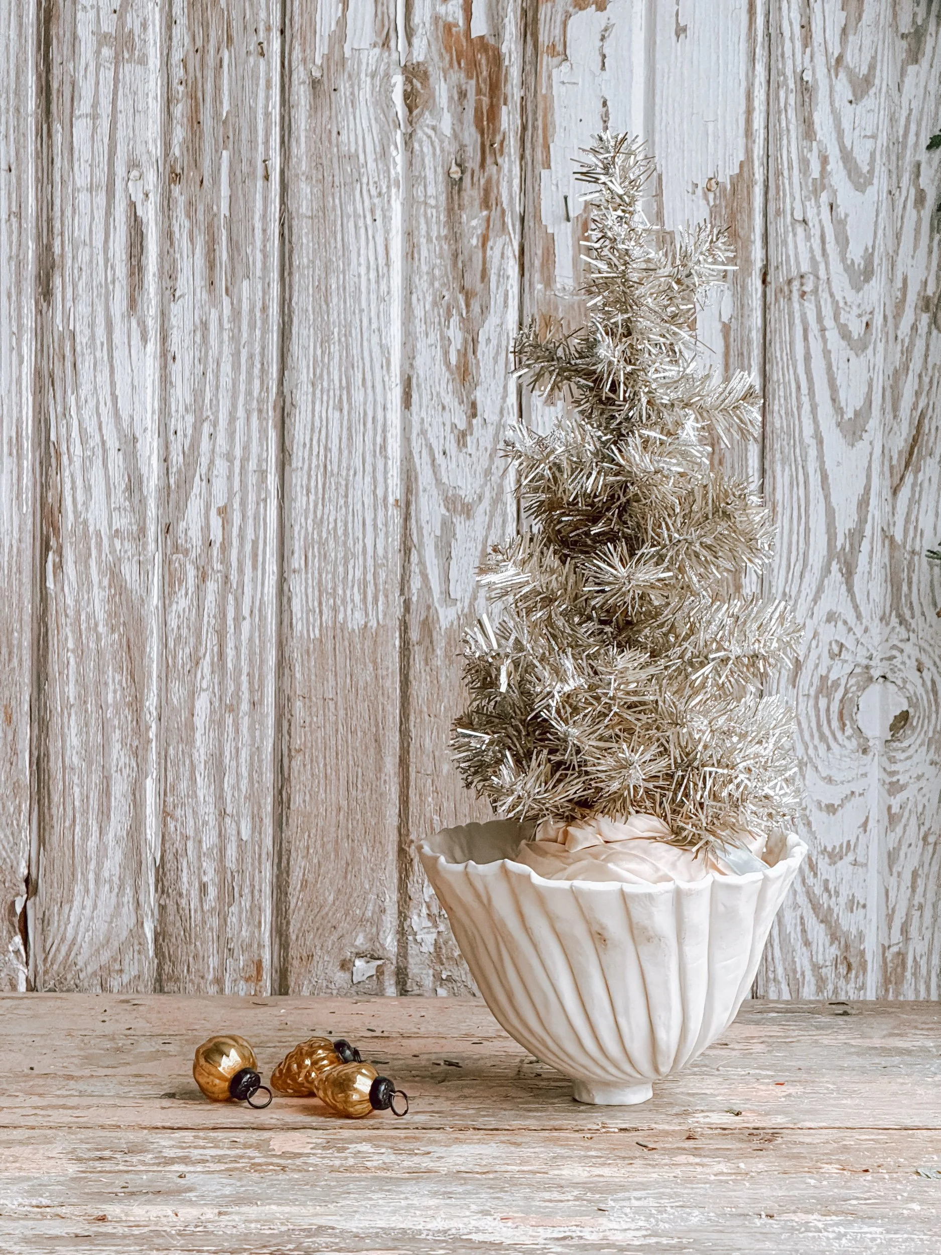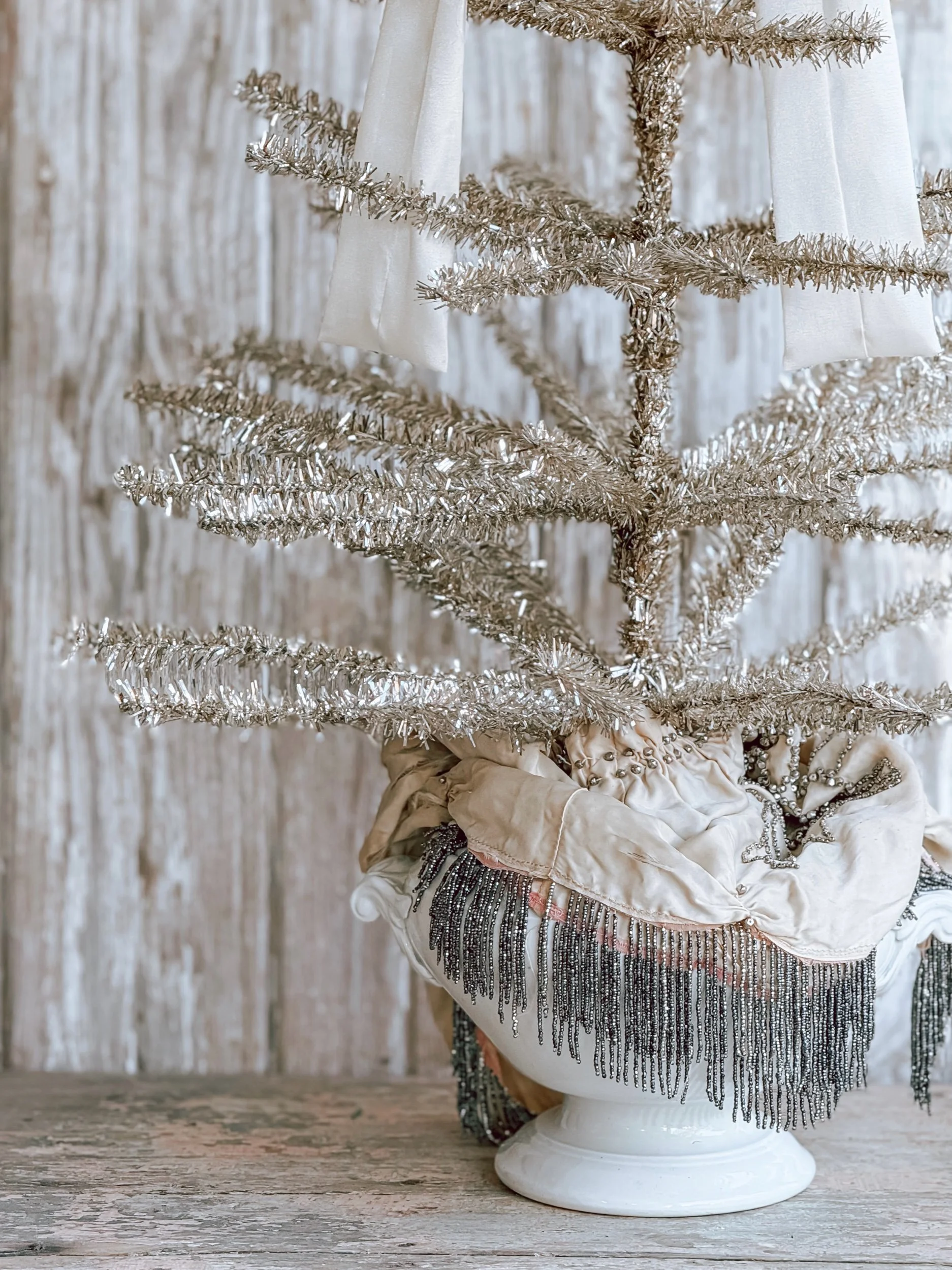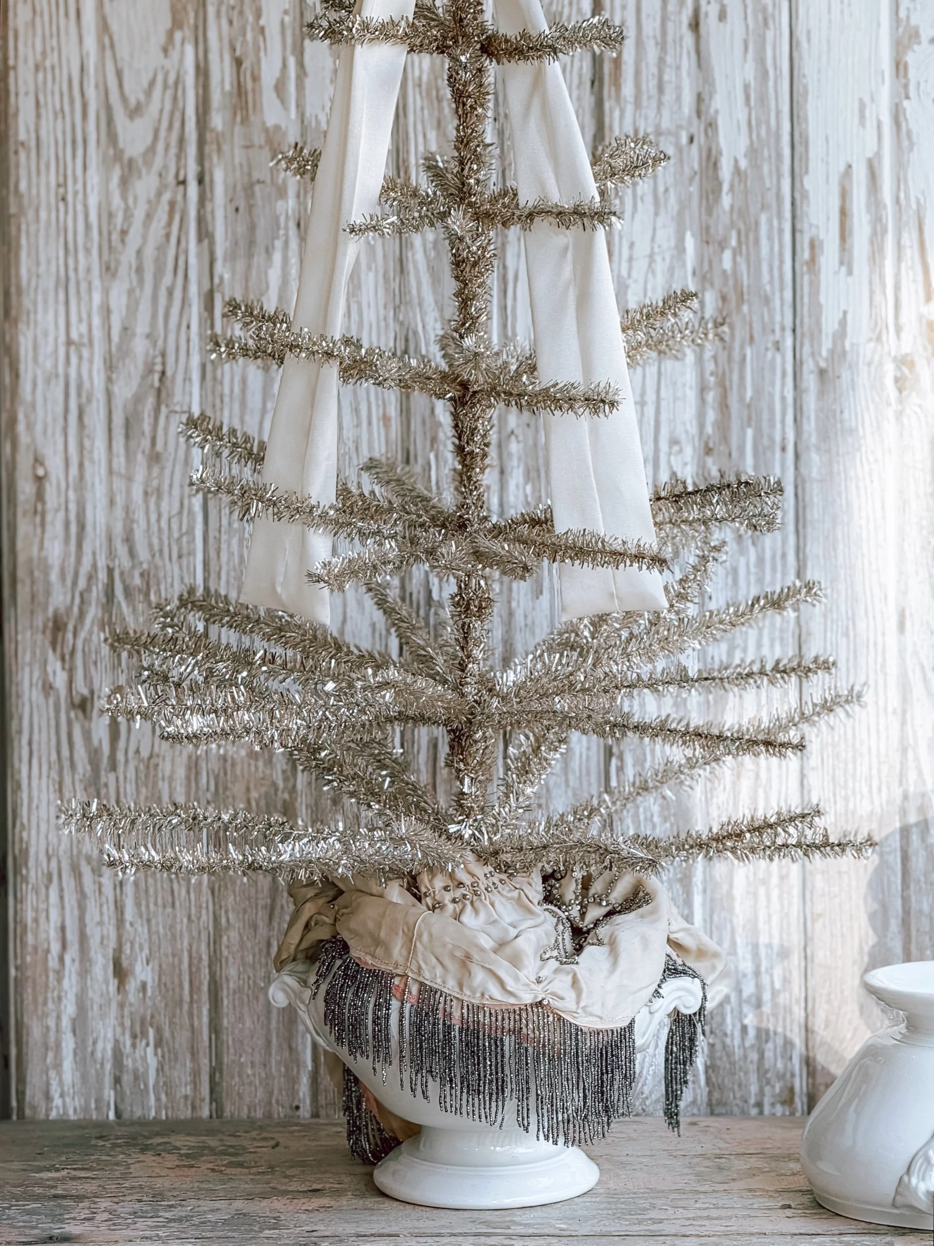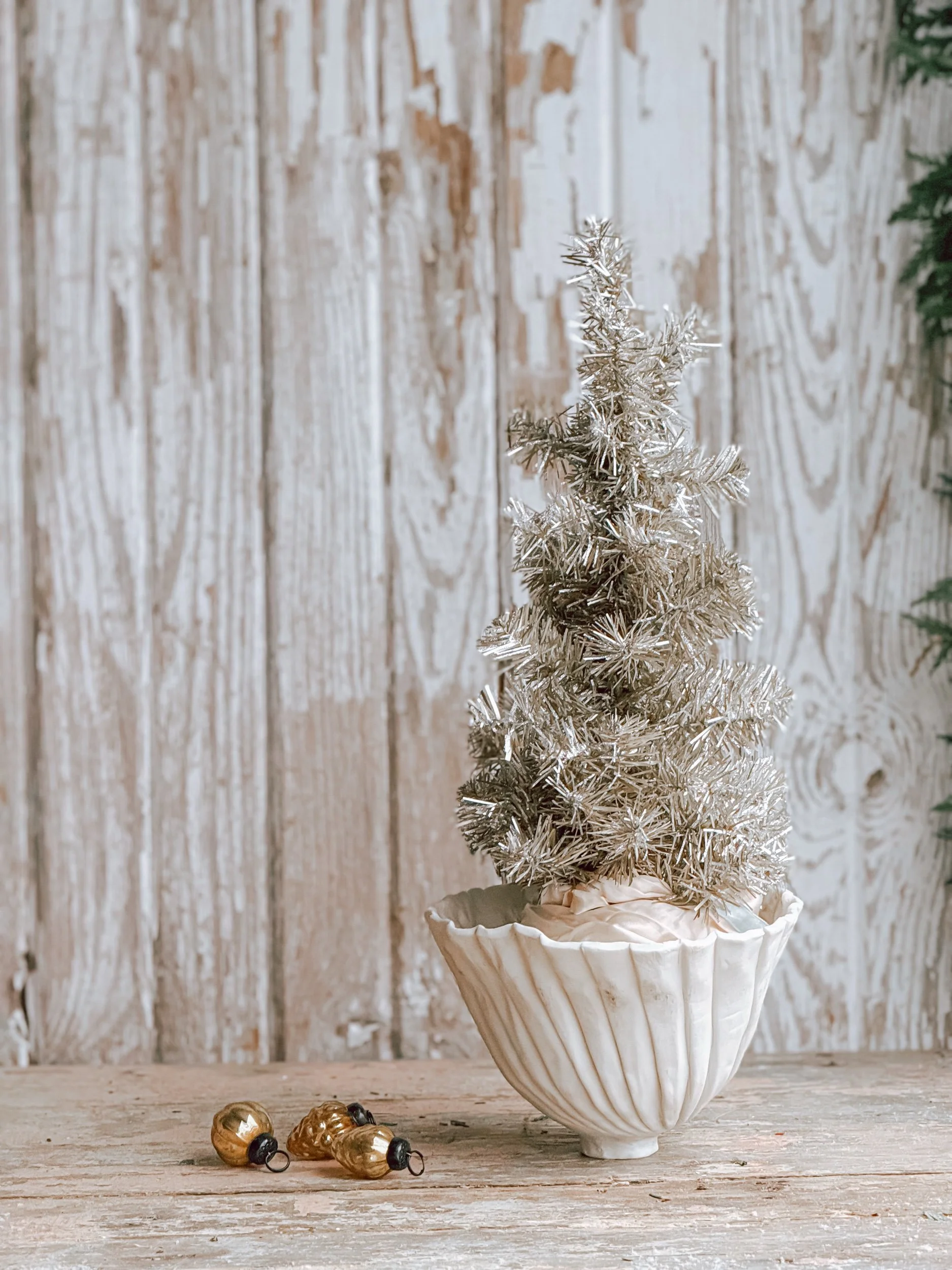 Vintage Tinsel Tree w/ Vintage European Pottery Base