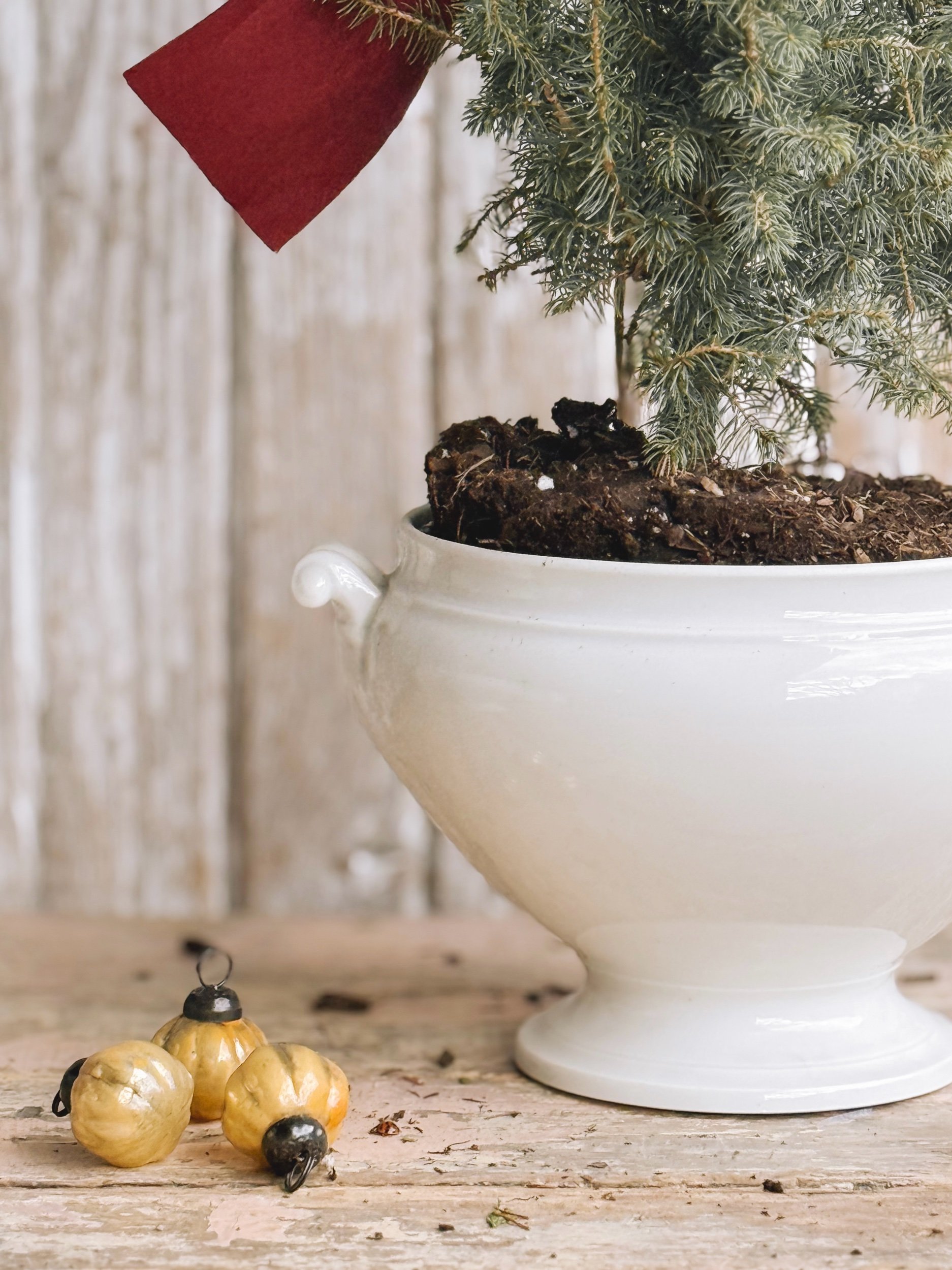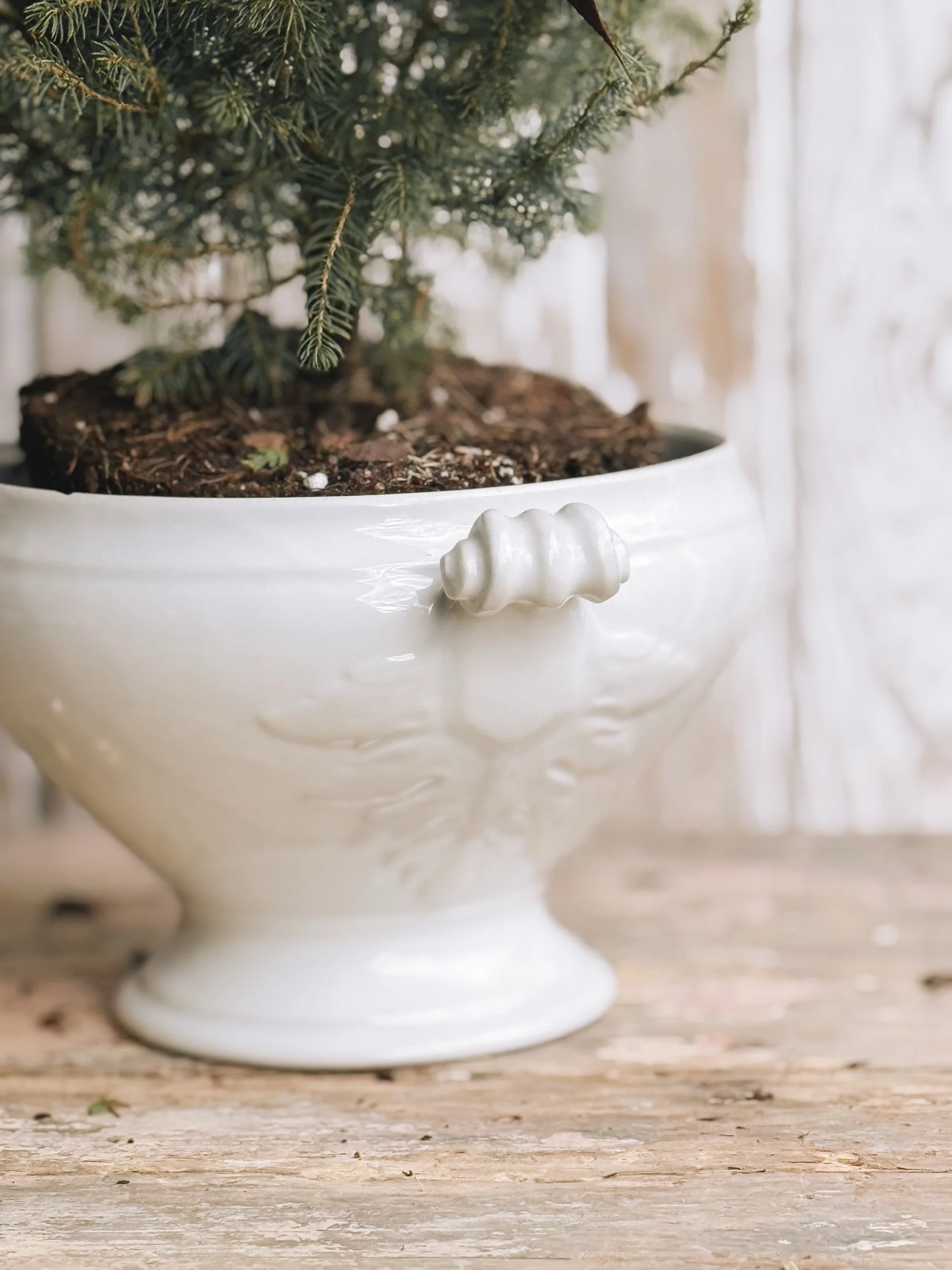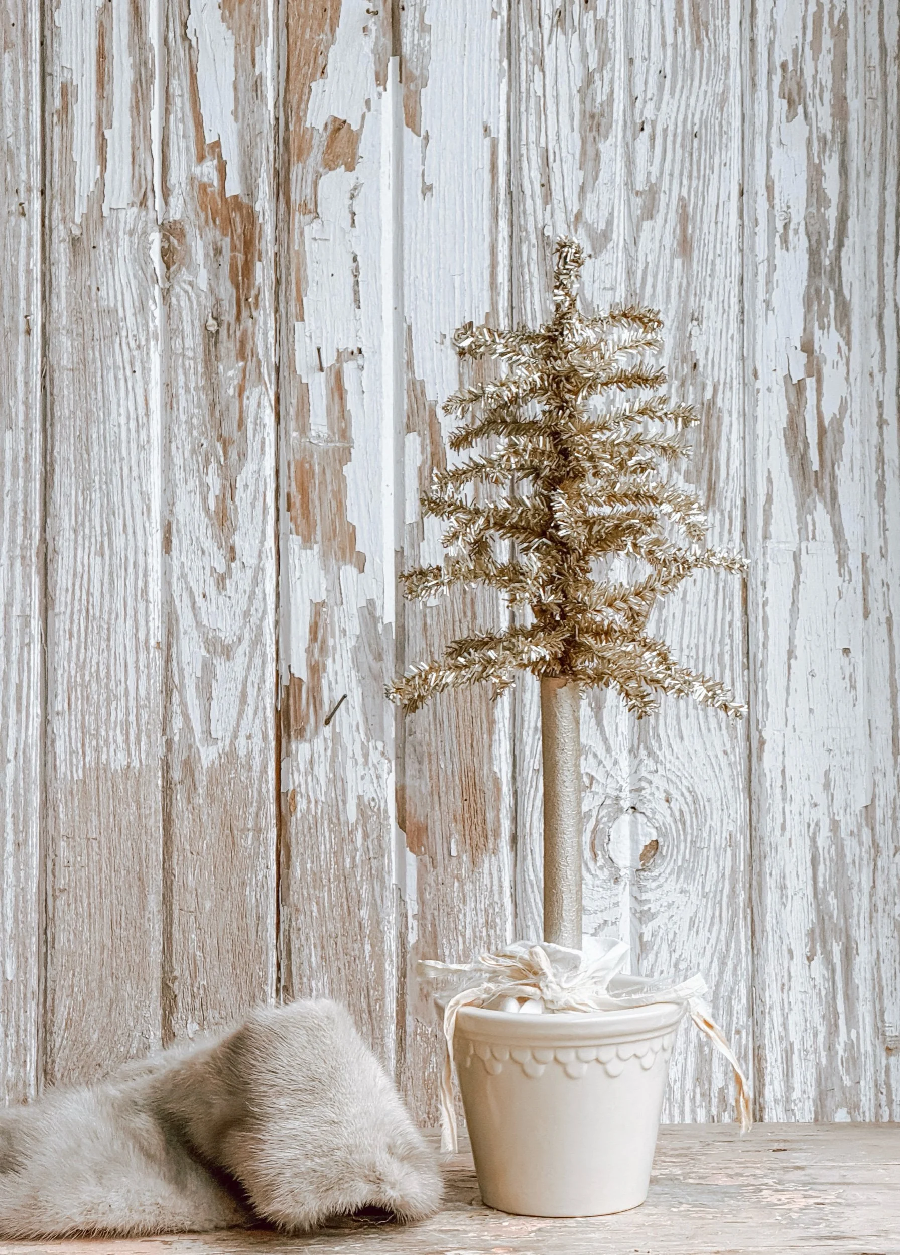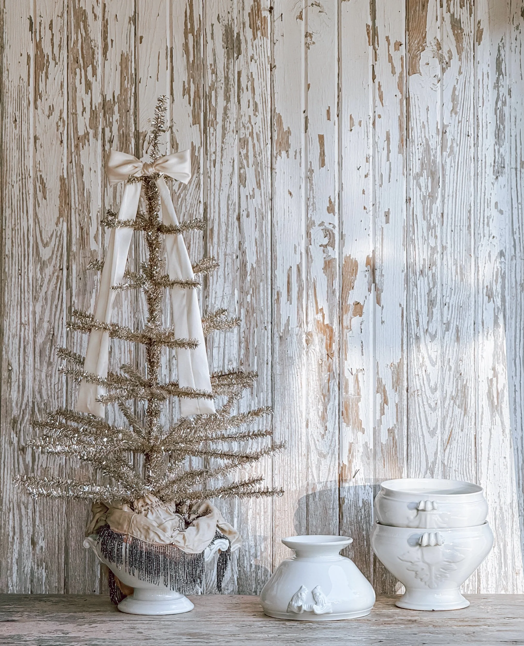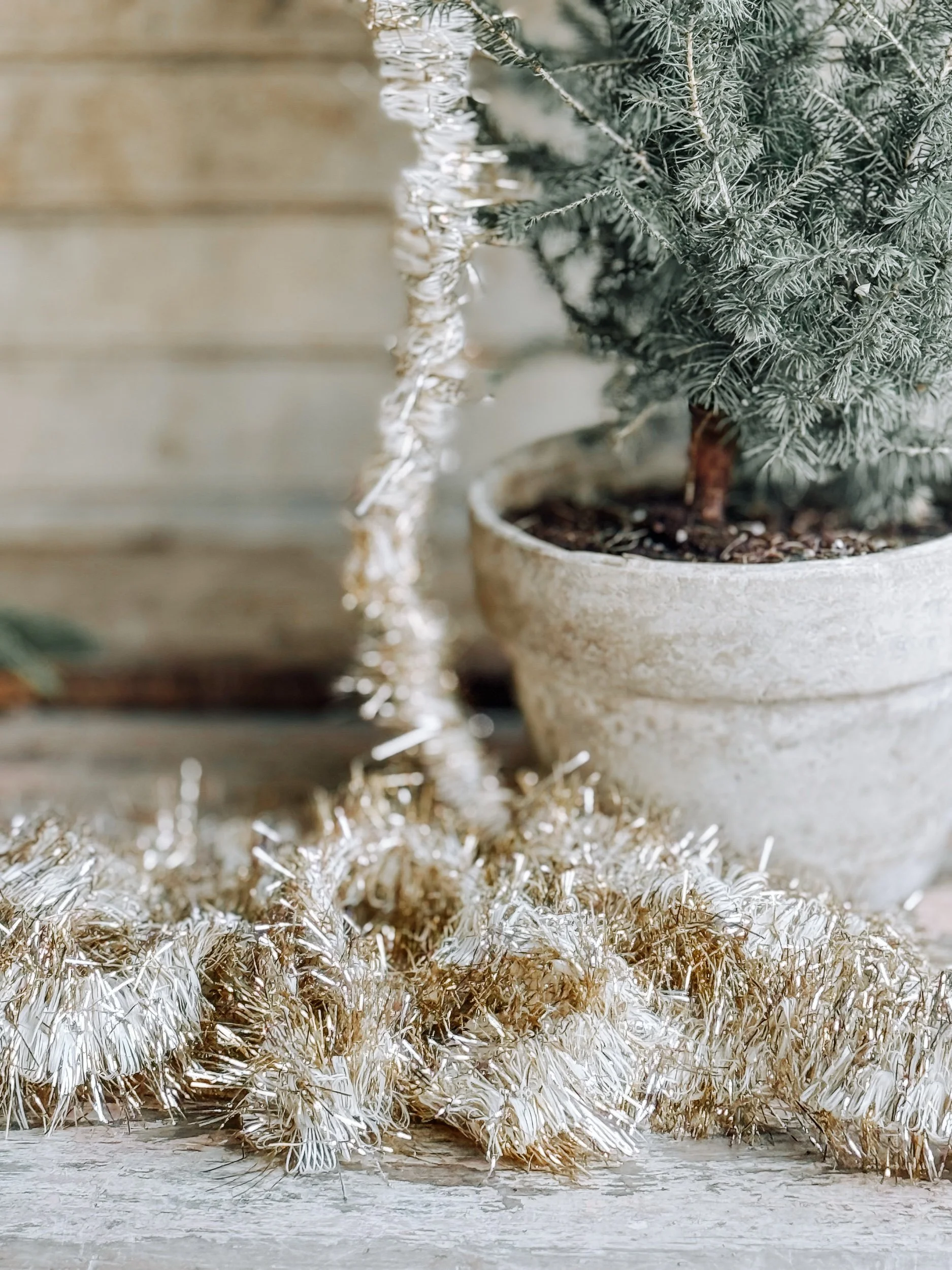 Vintage Tinsel Tree w/ Vintage European Pottery Base
