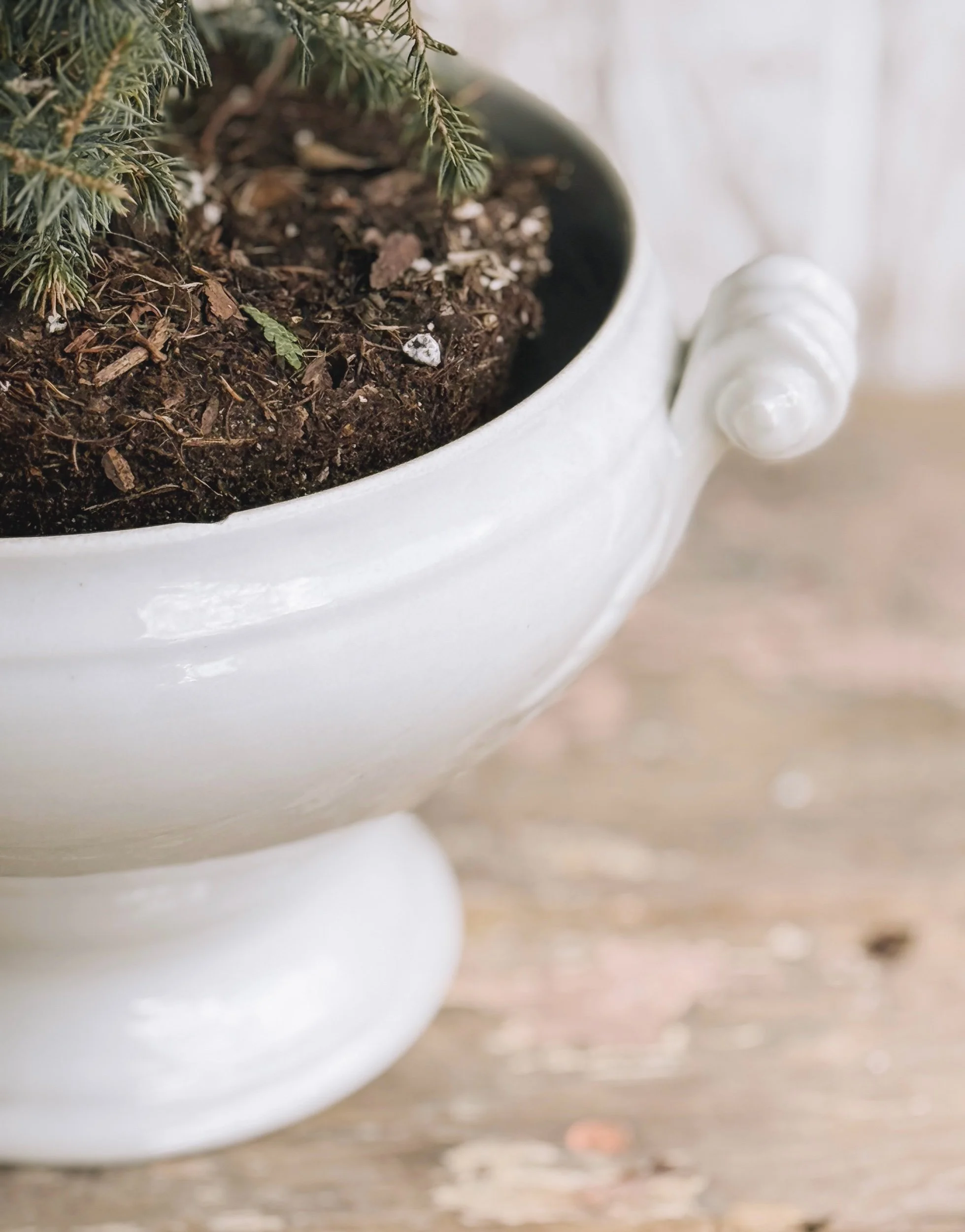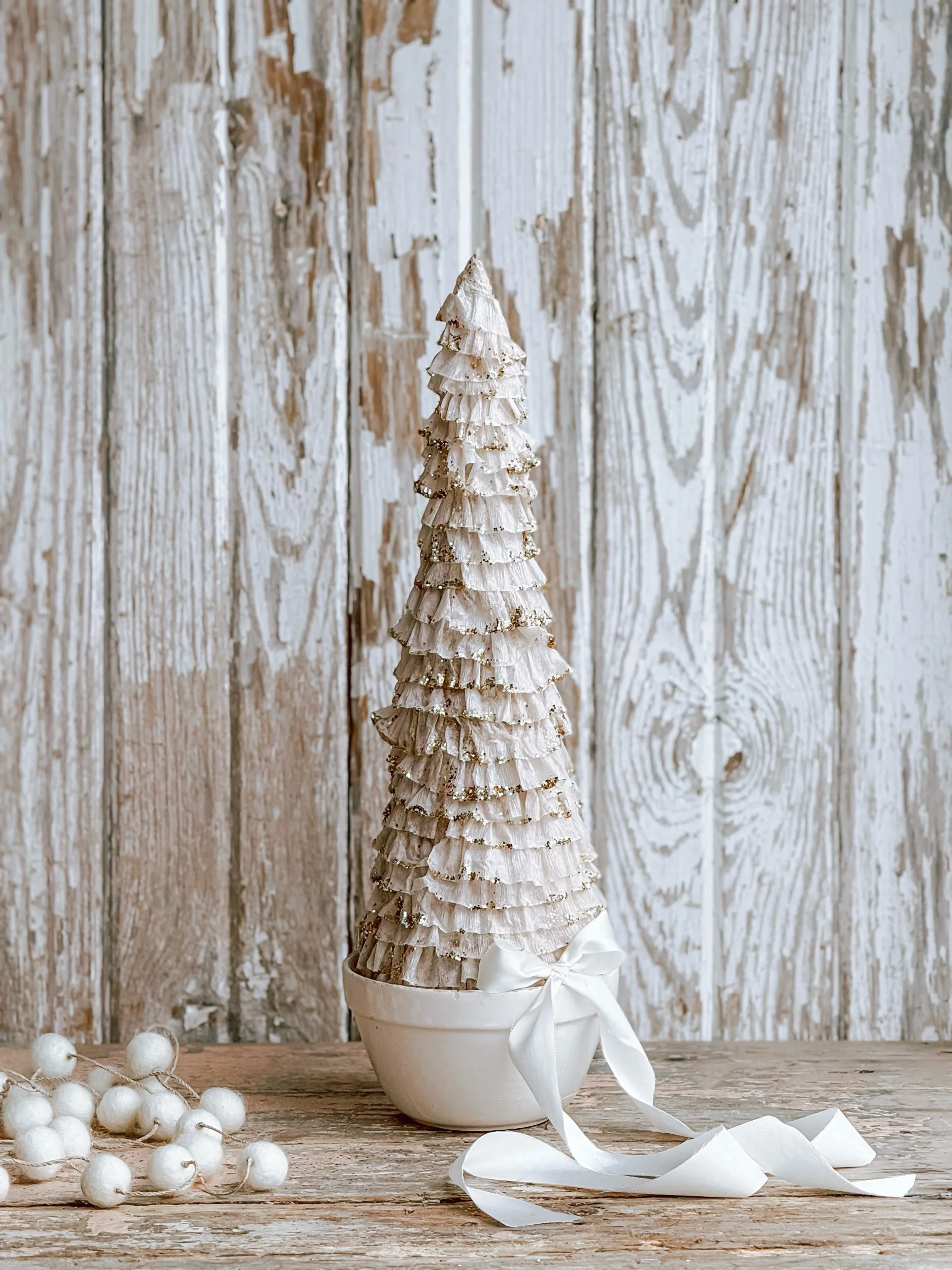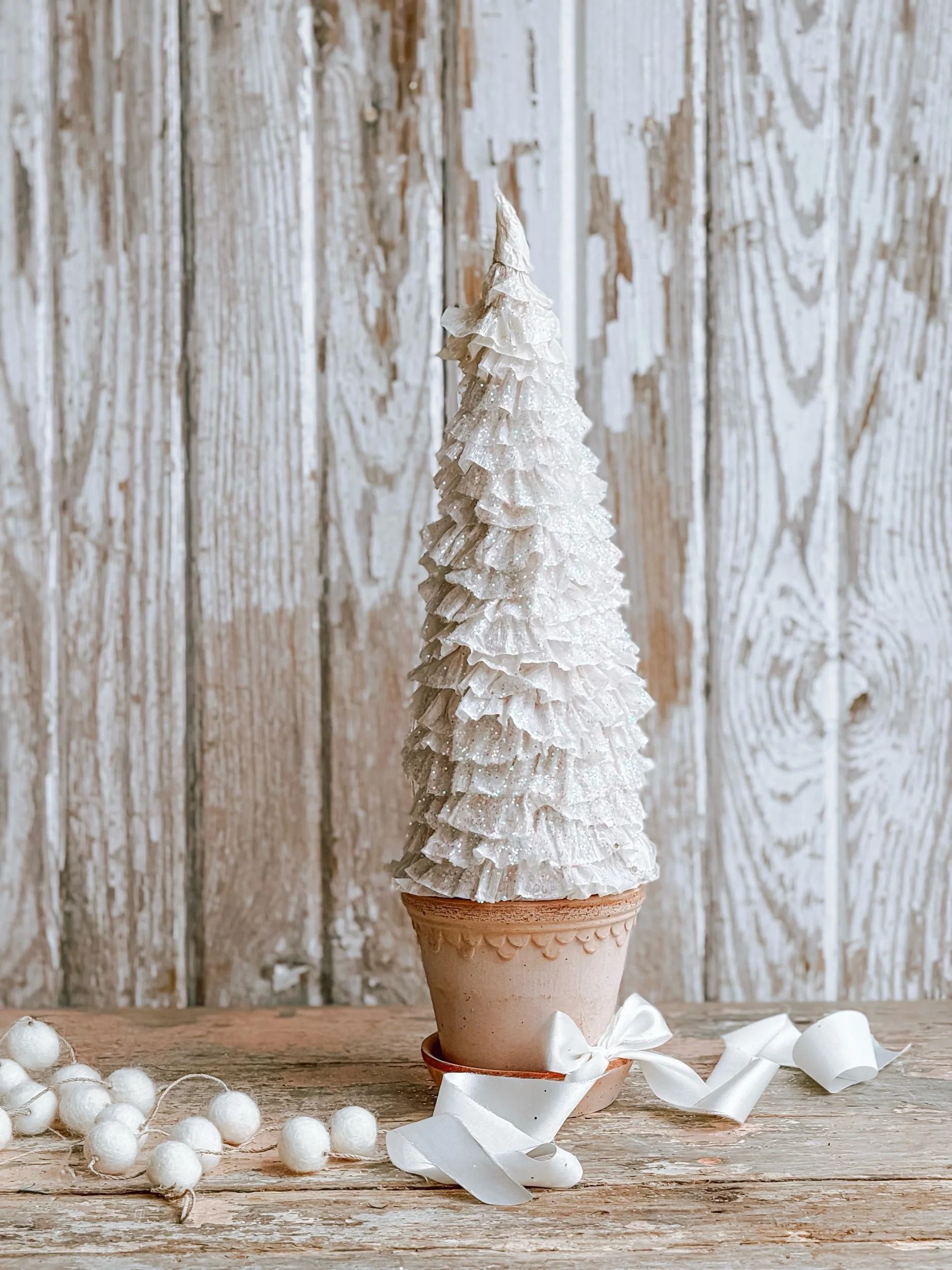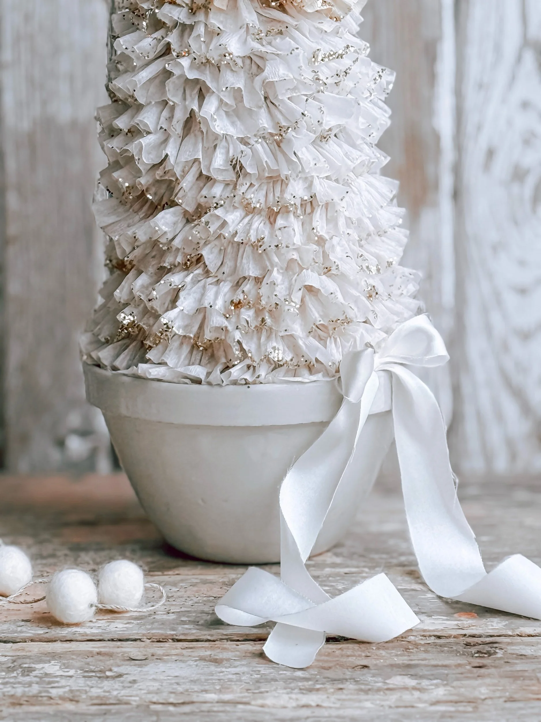 Artisan Handmade Winter Ruffle Tree w/ Bergs Potter Planter