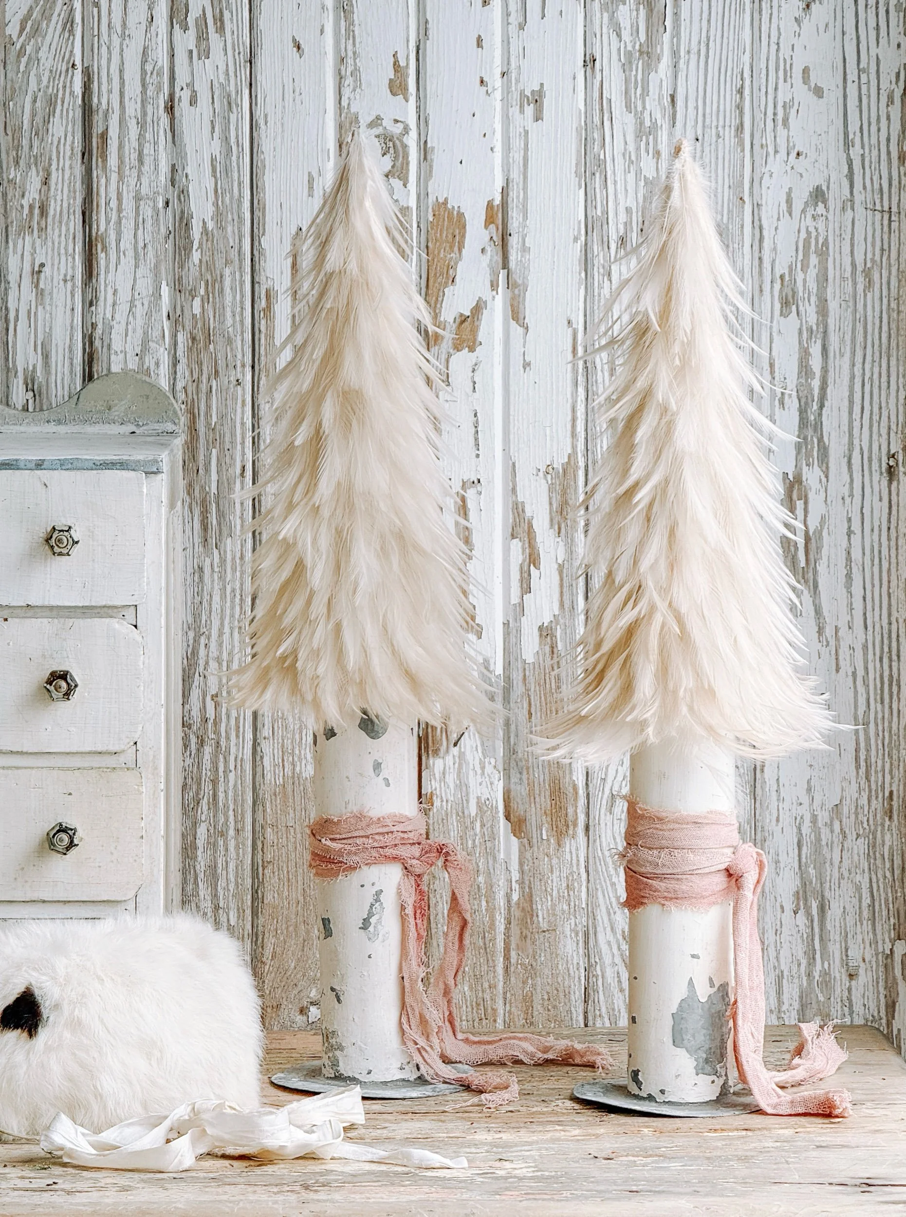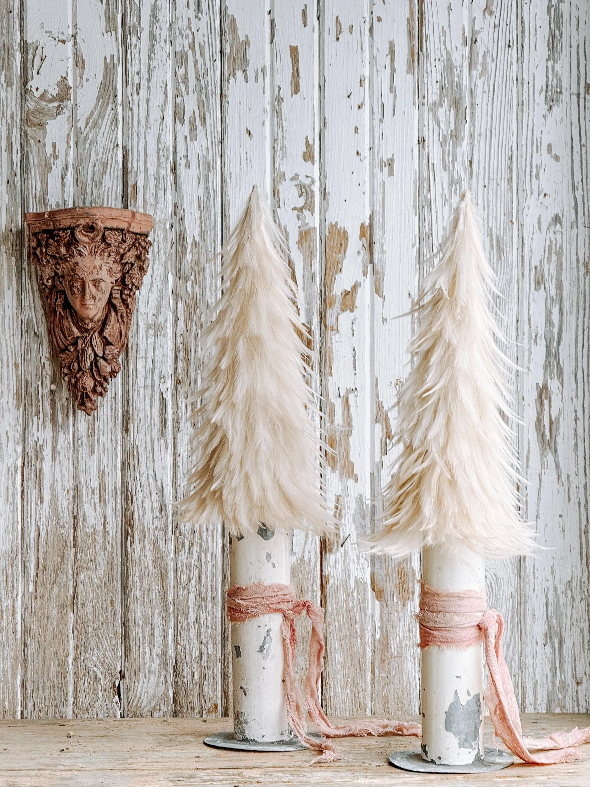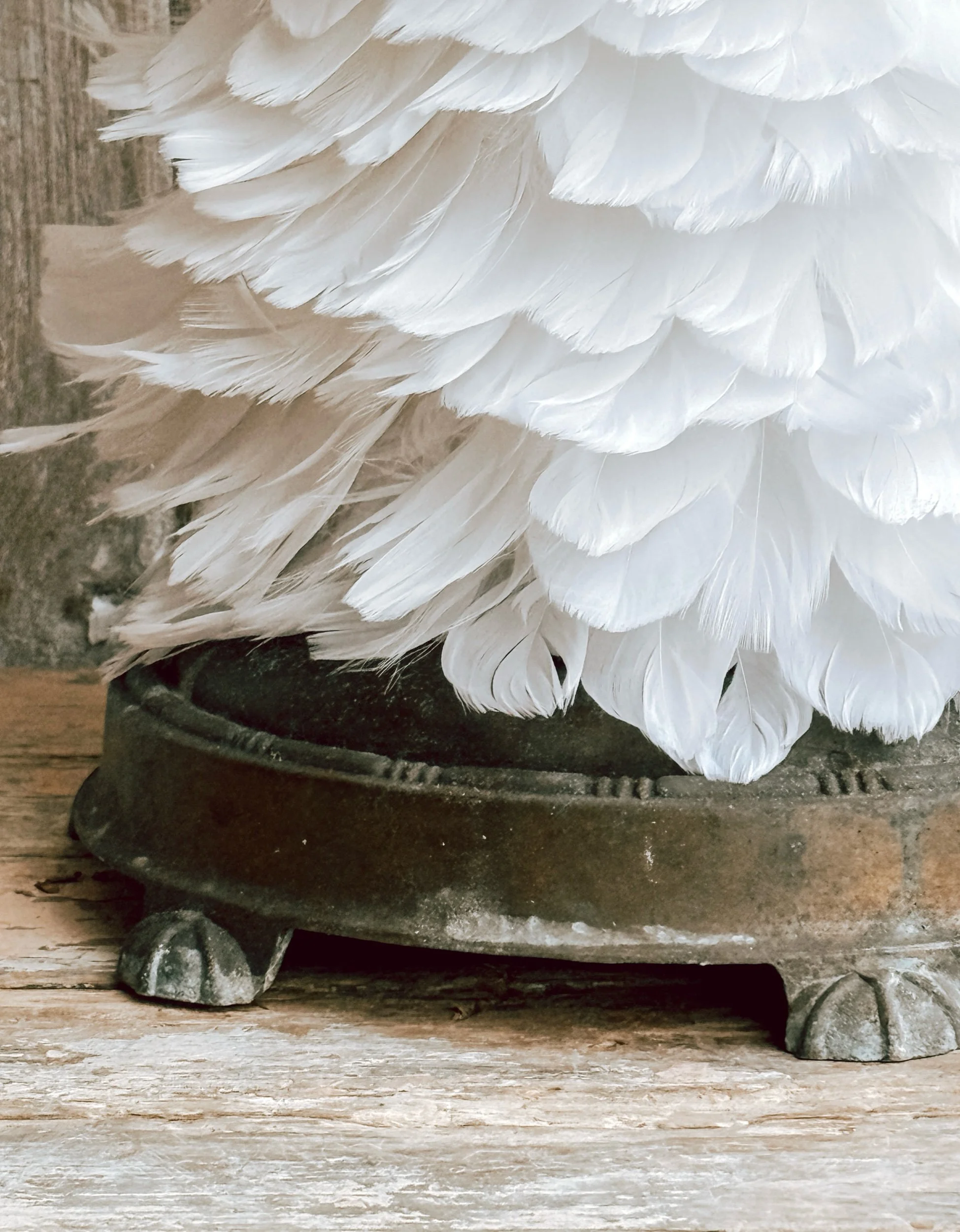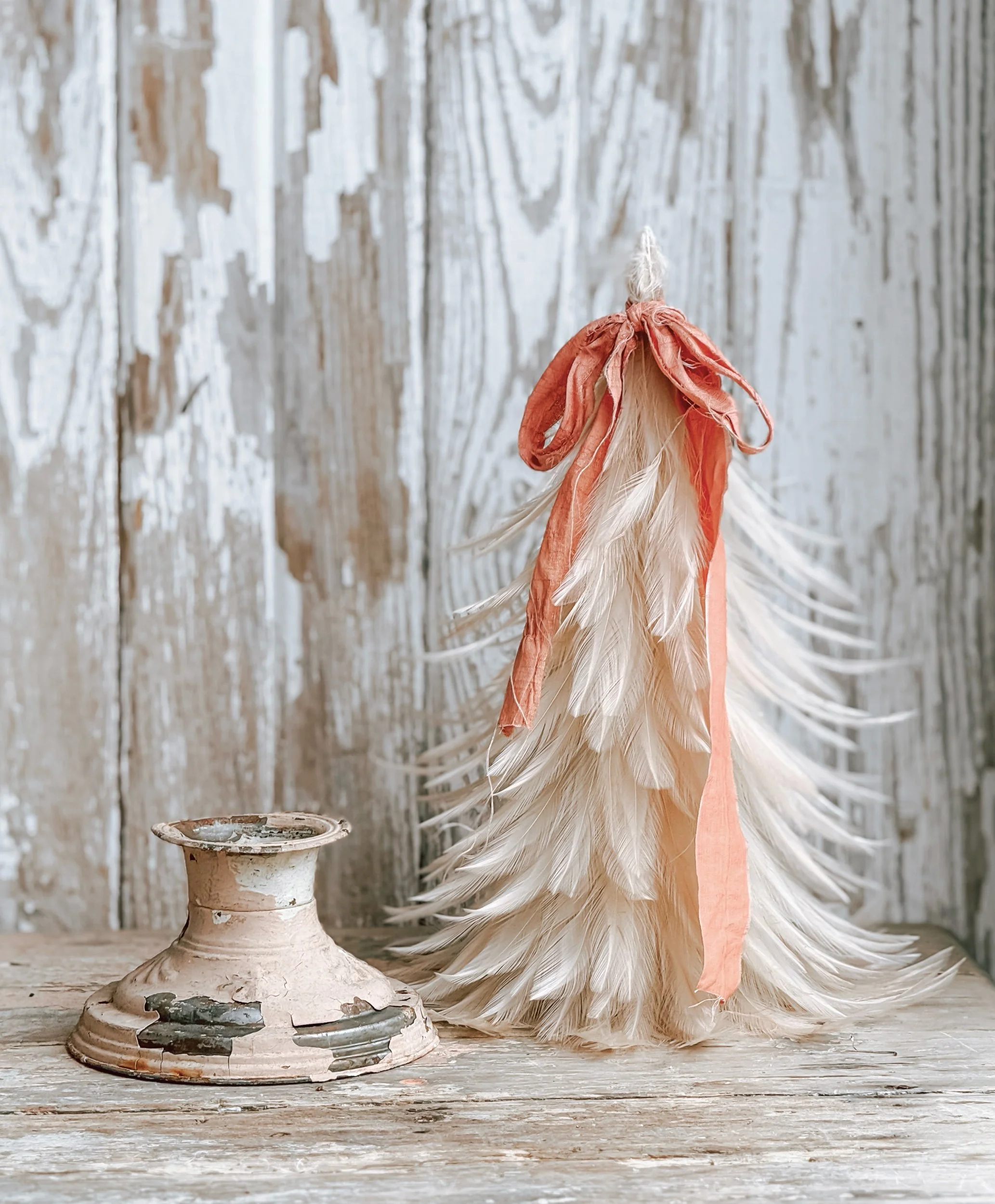 Pale Pink Feather Tree w/ Salvaged Cast Iron Base