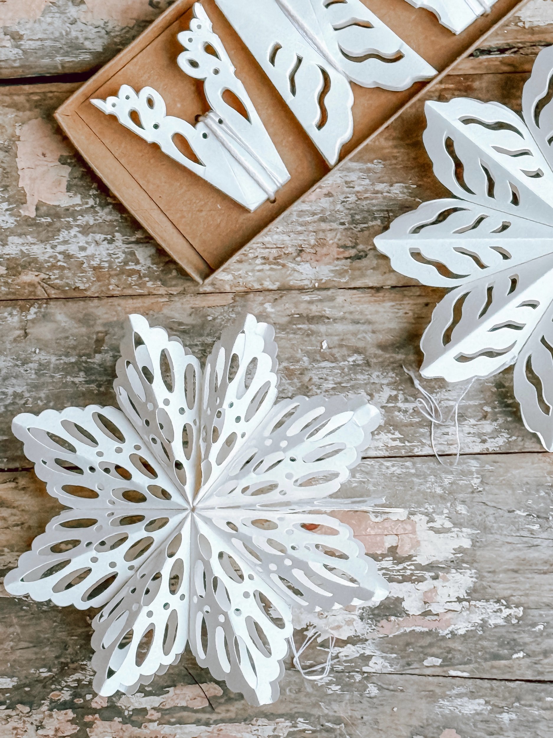Paper Snowflake Collection (set of four) w/ Creamy Ribbon