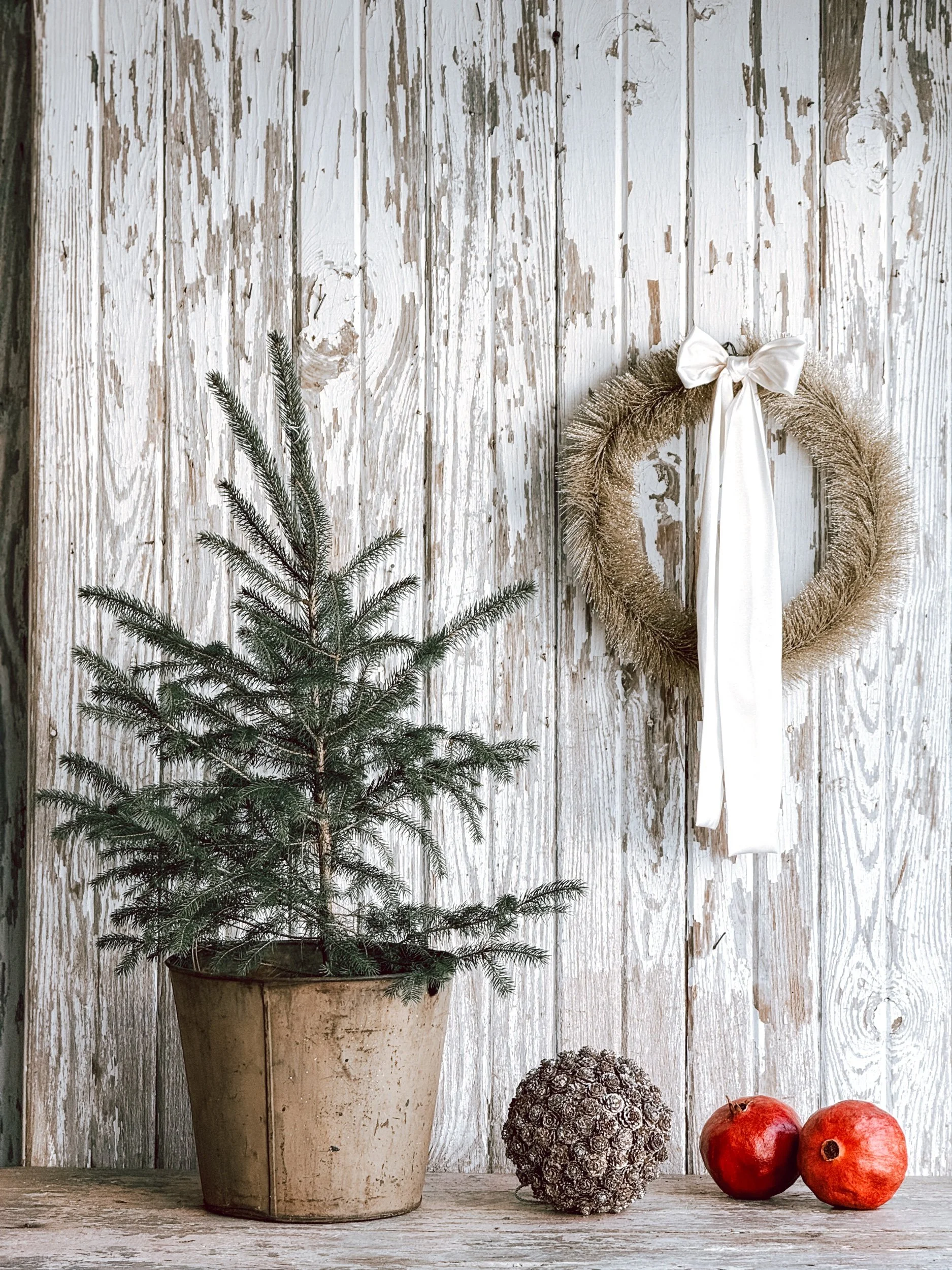 Antique Sap Bucket w/ Artisan Handmade Bow