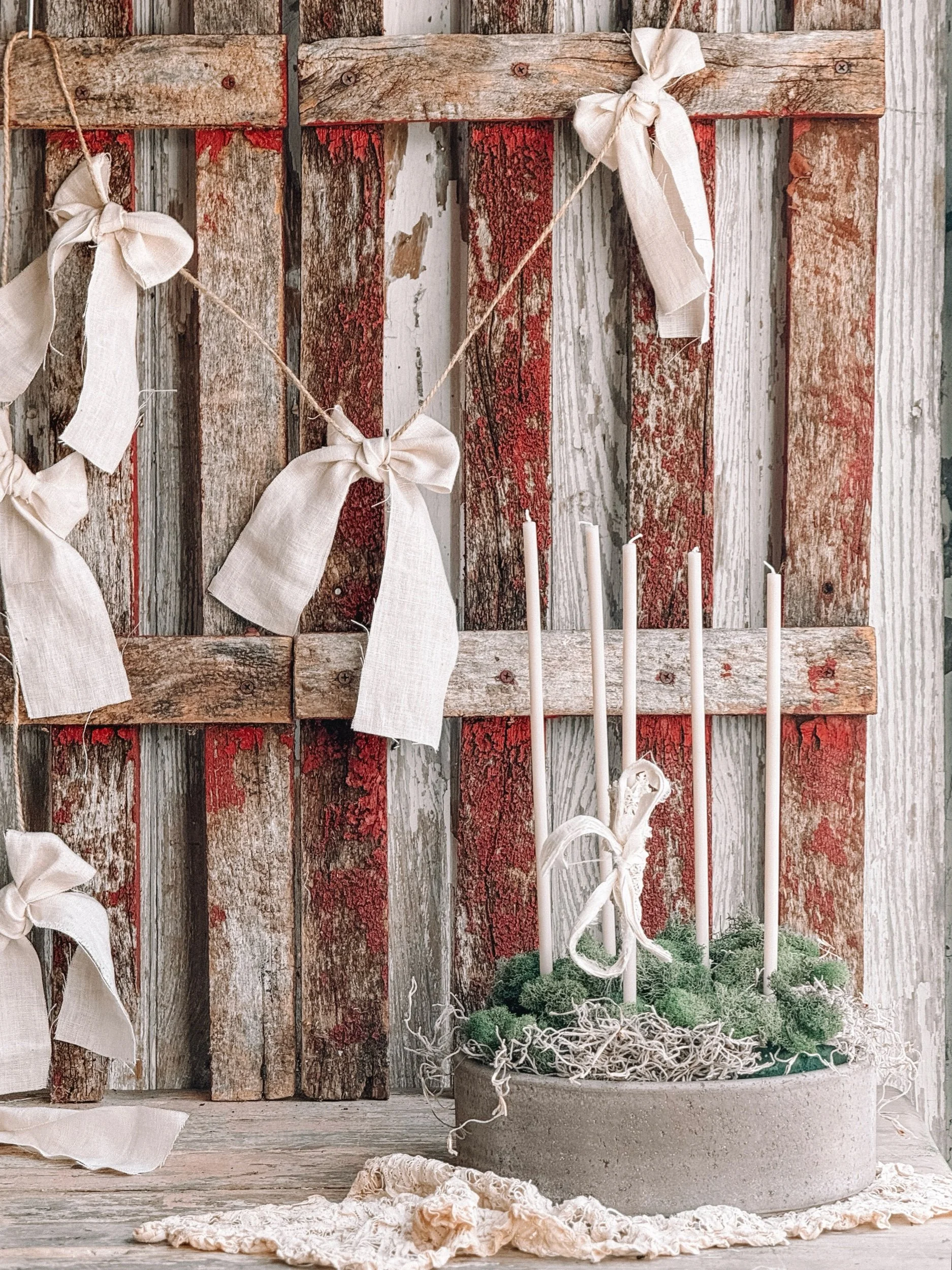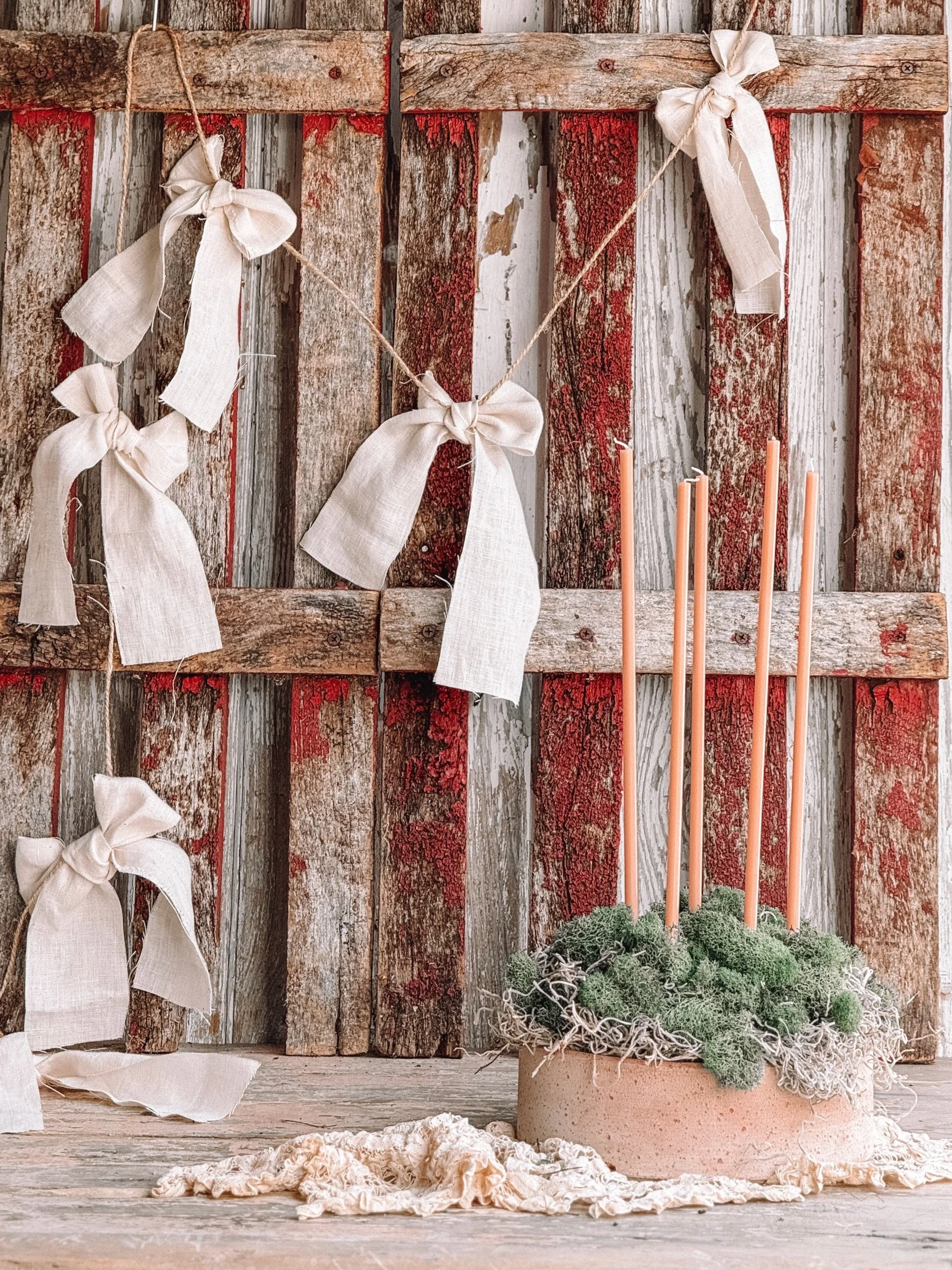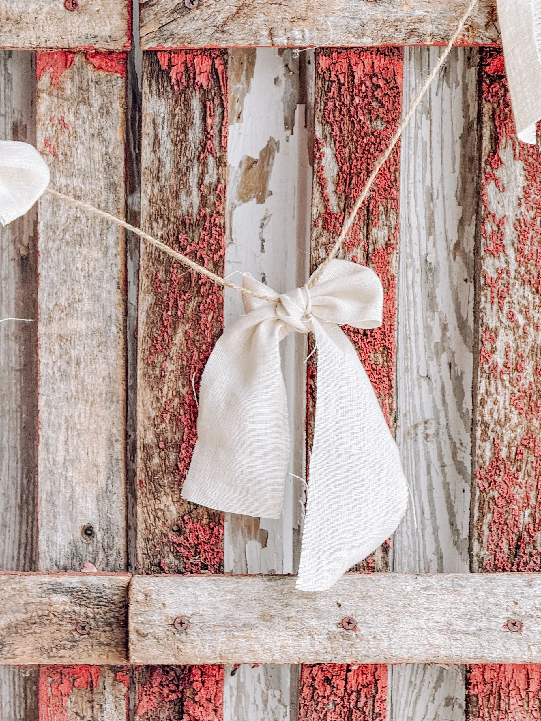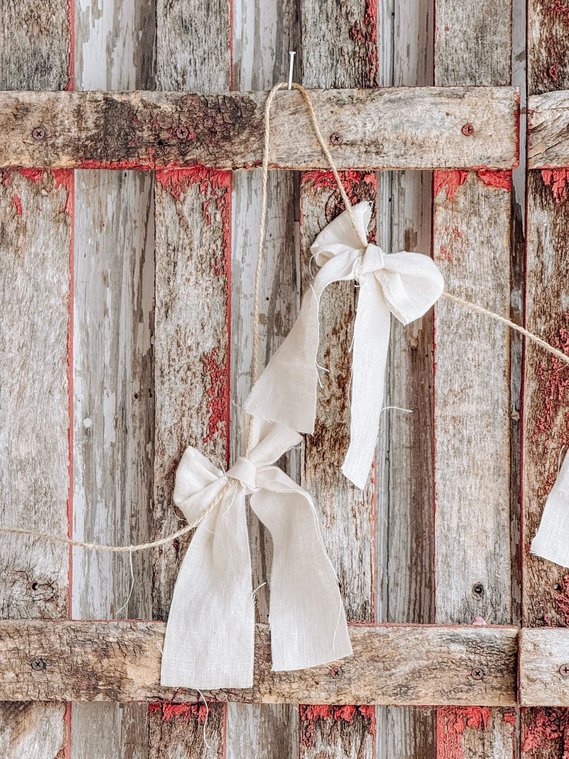 Artisan Handmade Creamy White French Linen Bow Garland