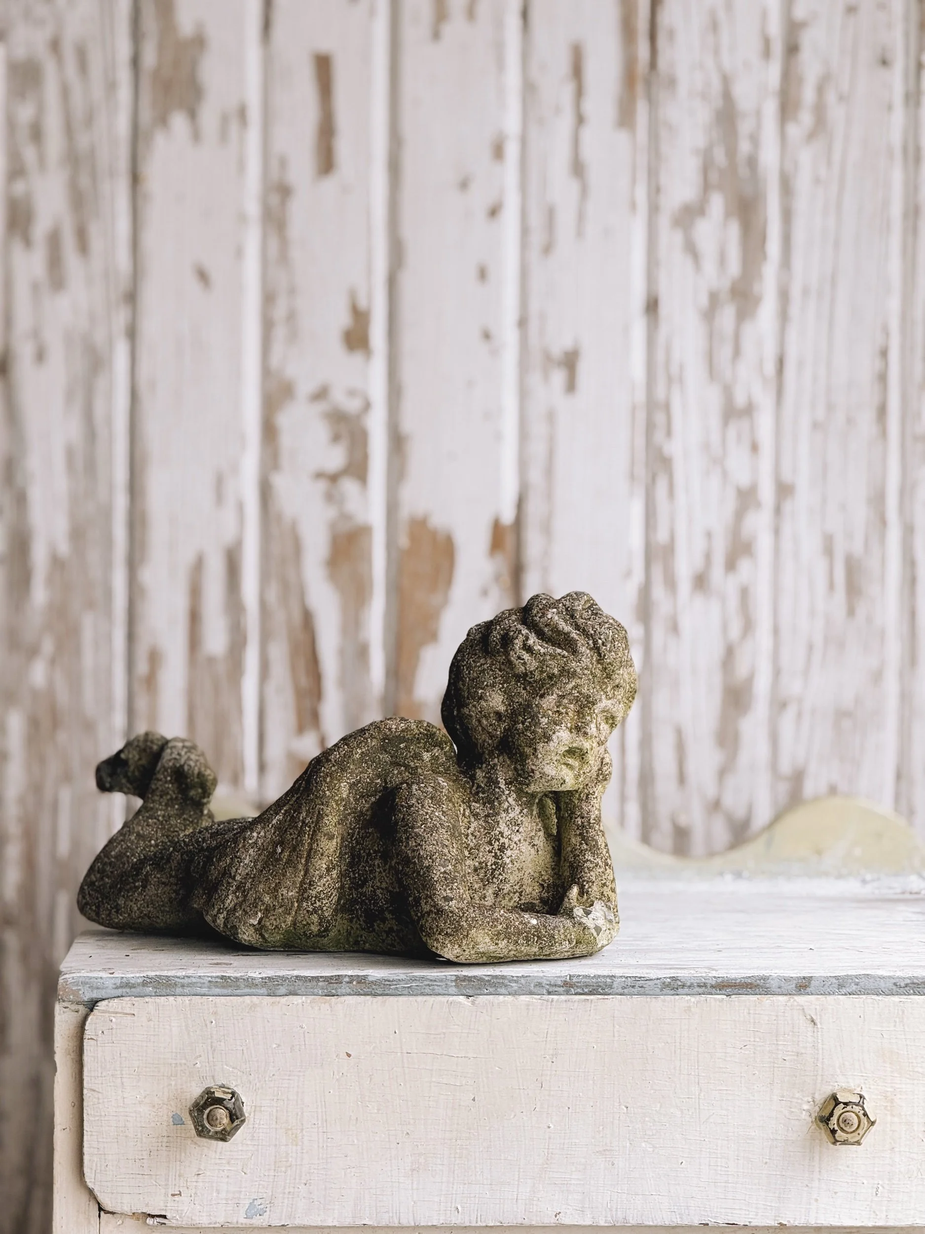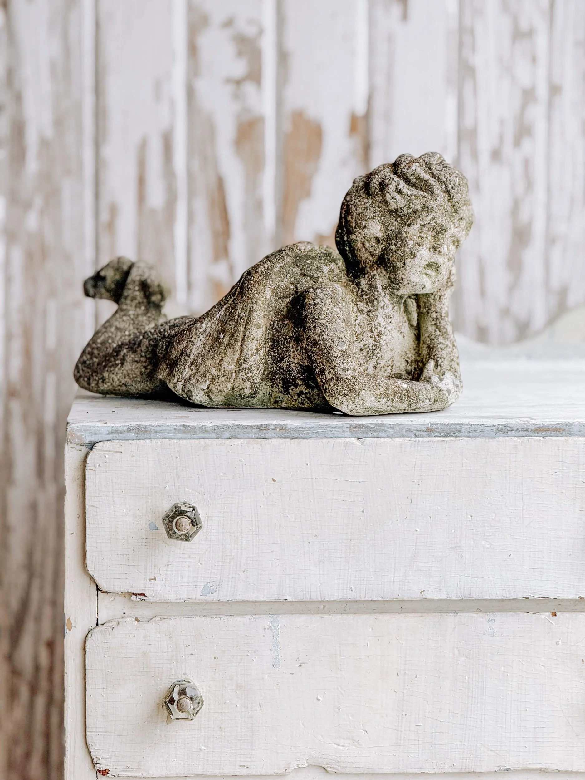 Vintage Mossy Garden Cherub