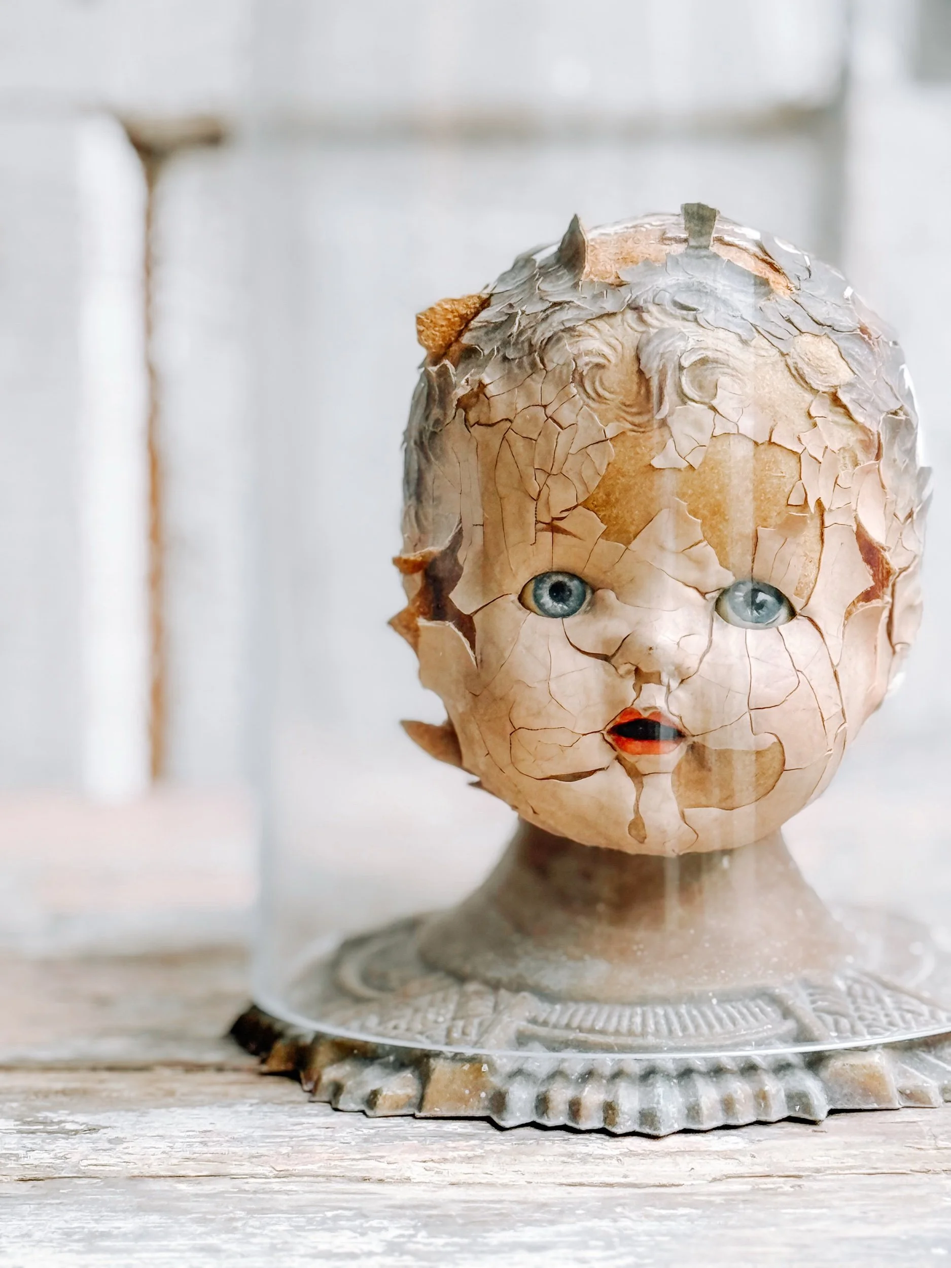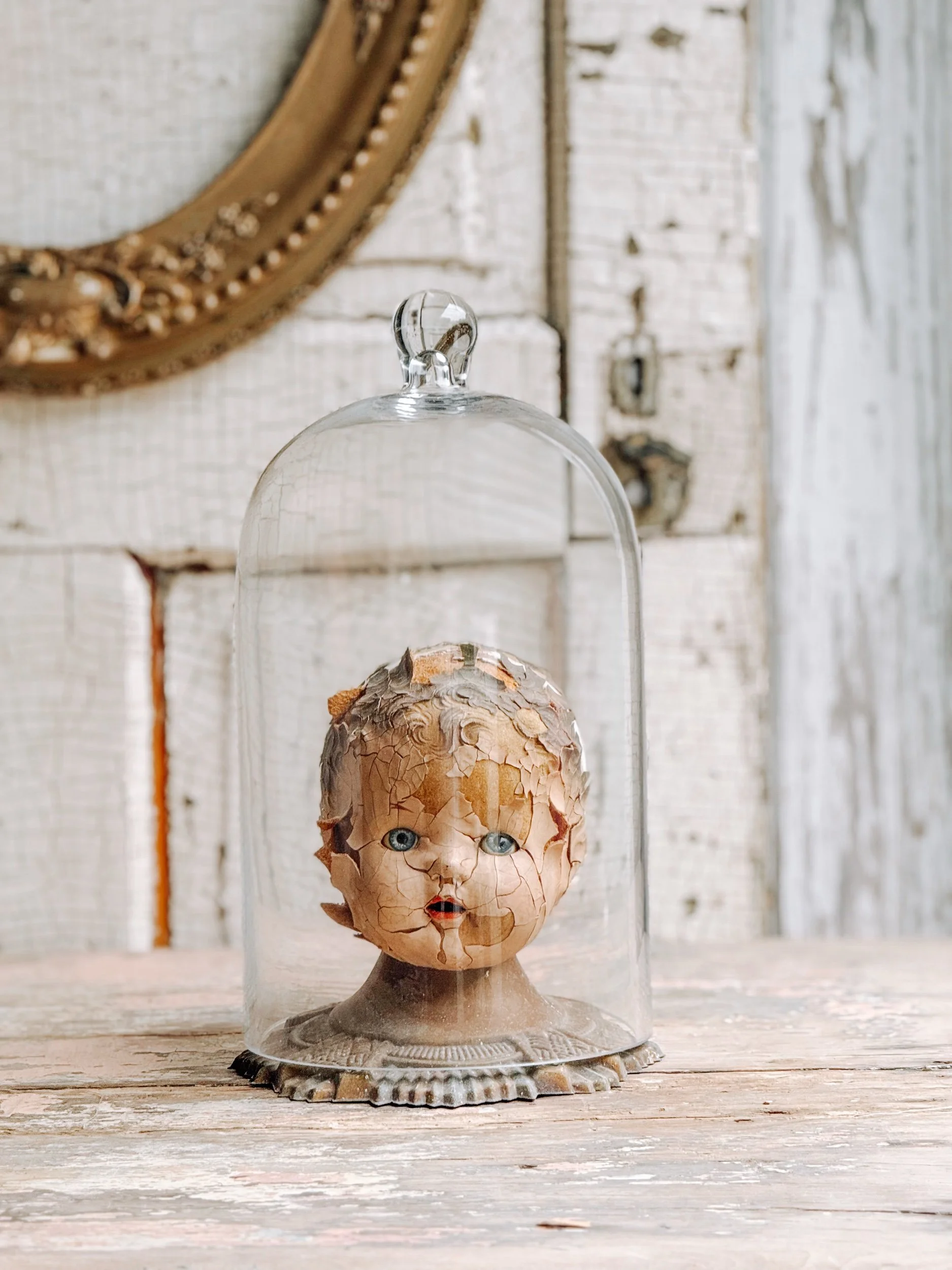 Antique Salvaged Industrial Riser w/ Glass Cloche