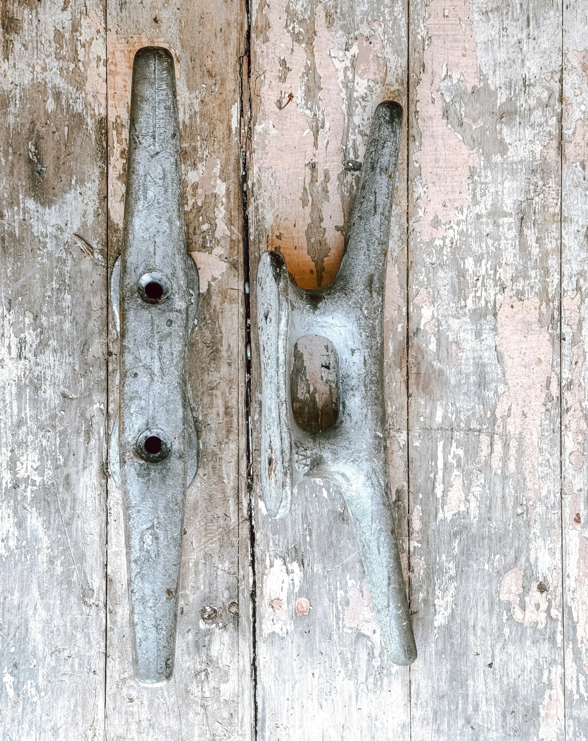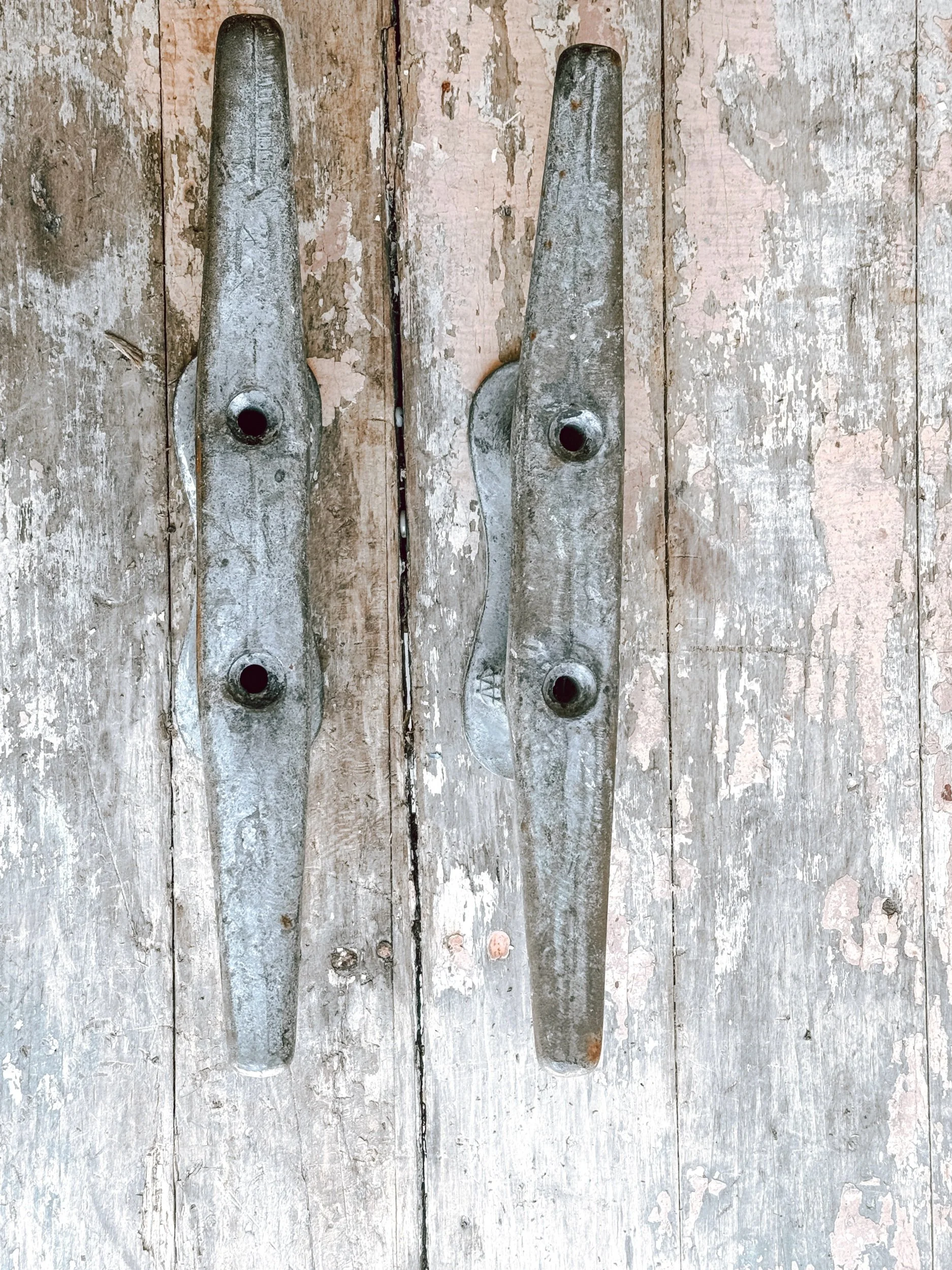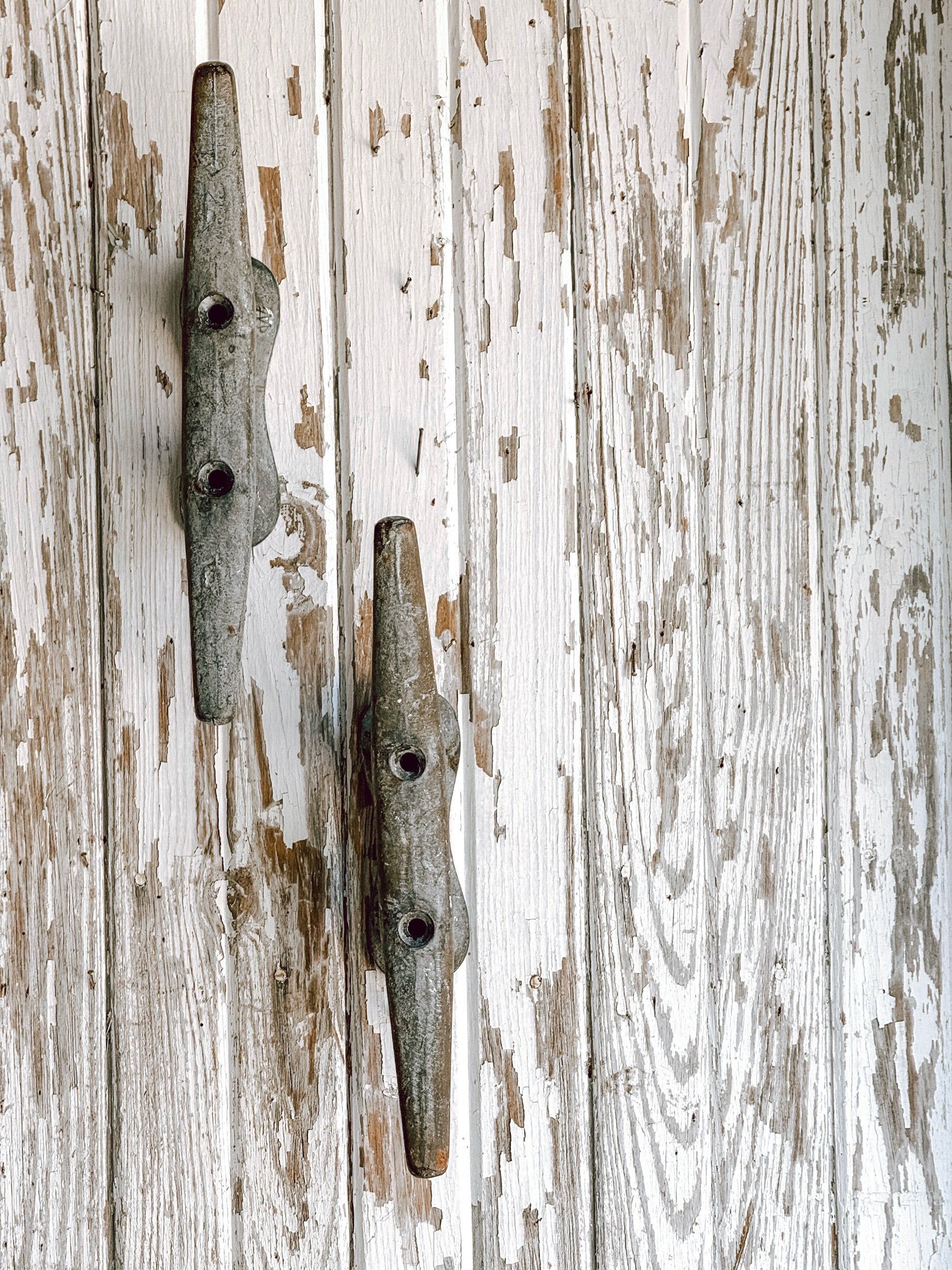 Antique Salvaged Candle Holders w/ Bees Wax Tapers (set of two)