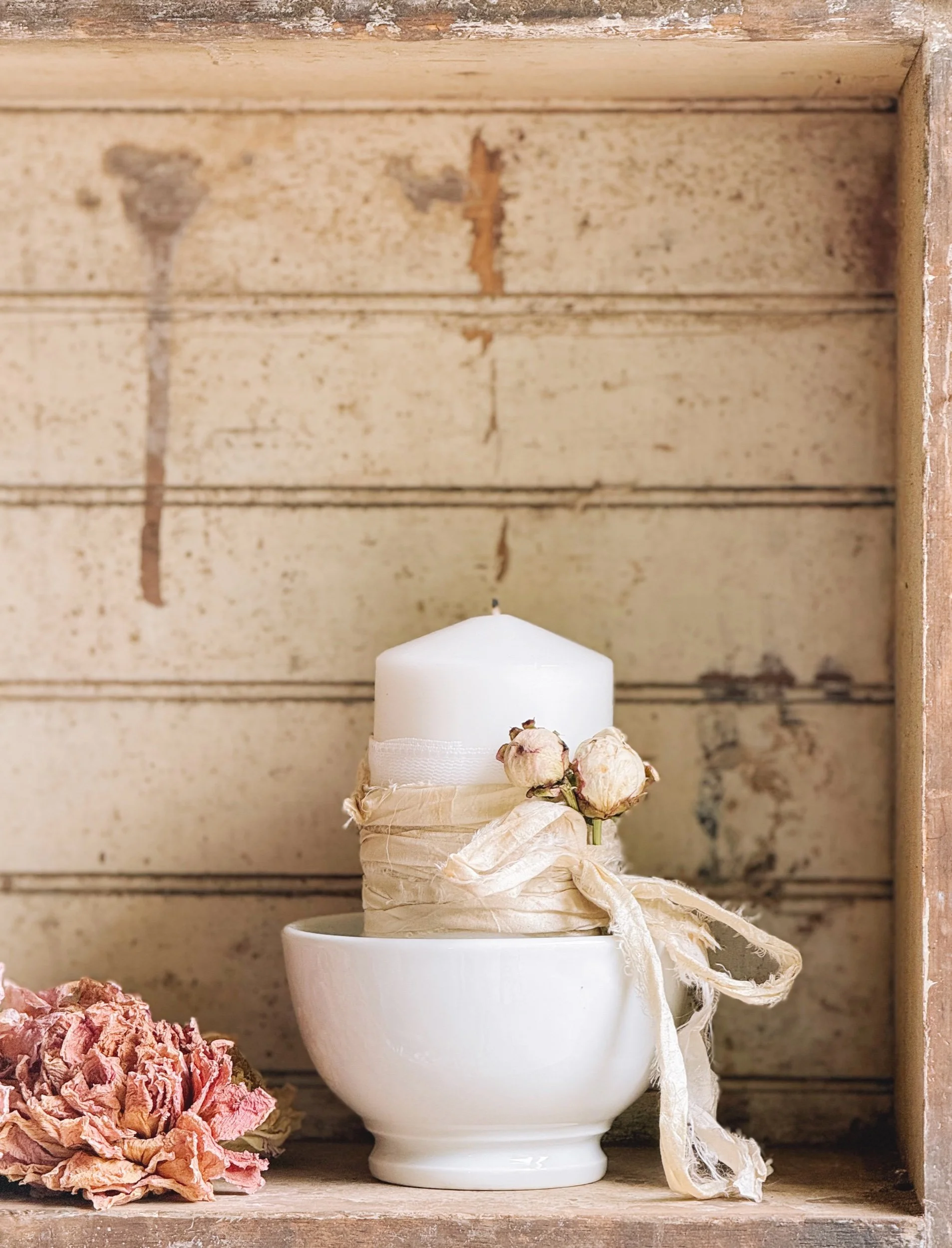 Scandinavian Advent Candle w/ French Enamel Candle Holder