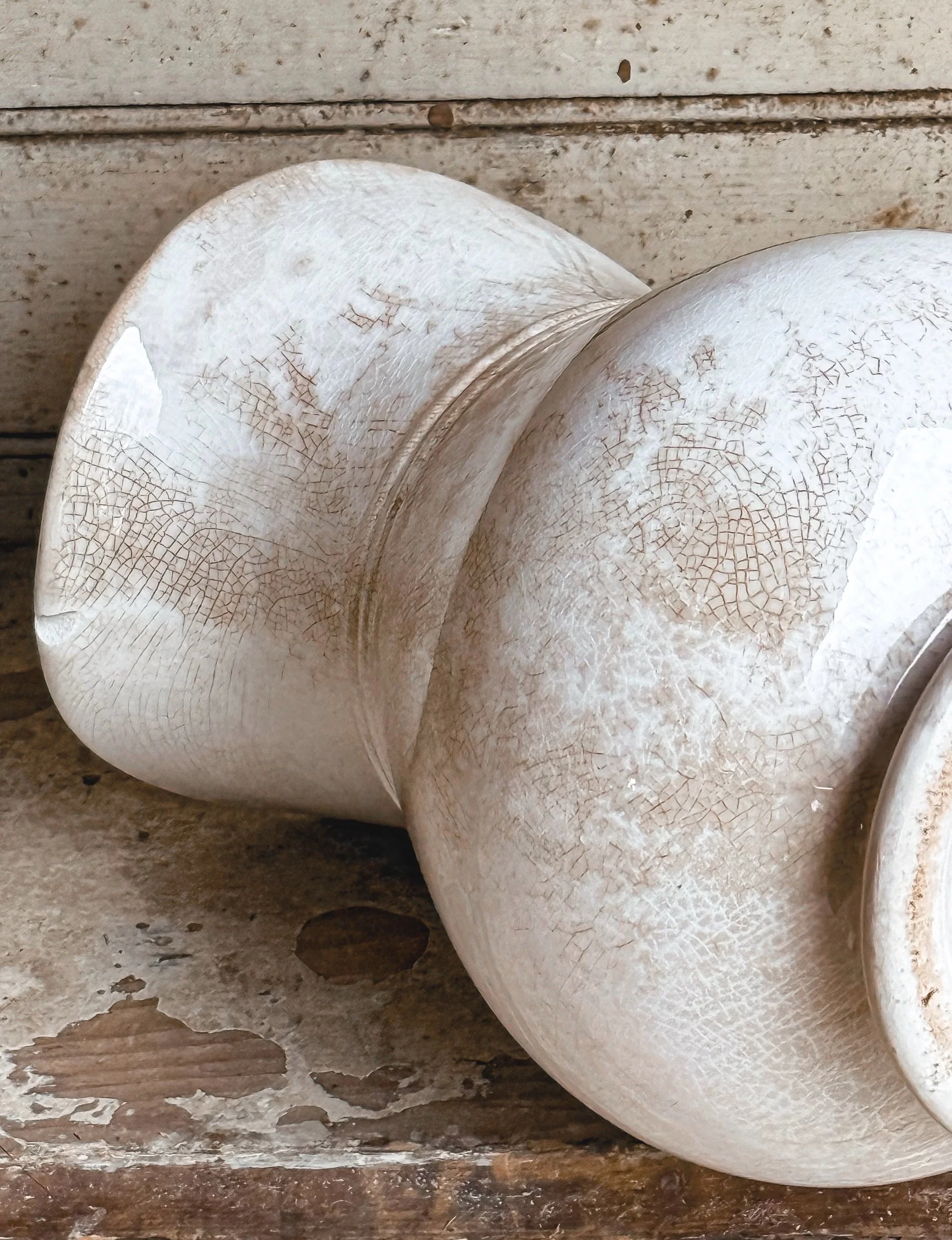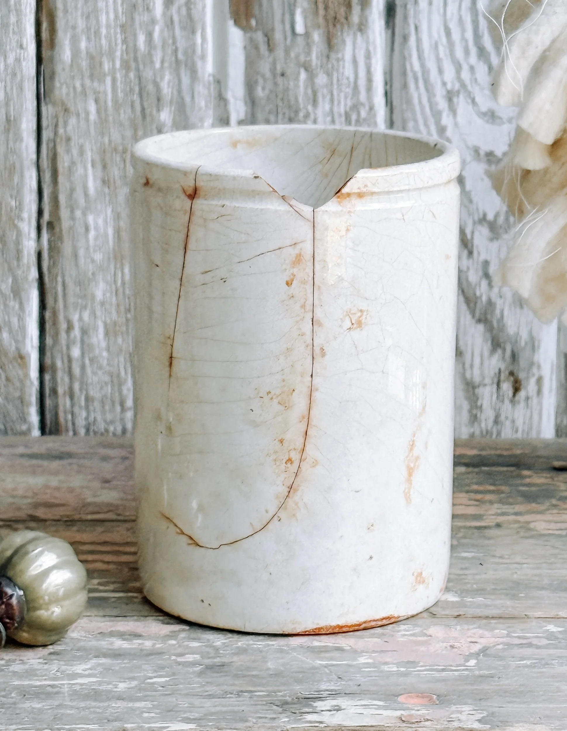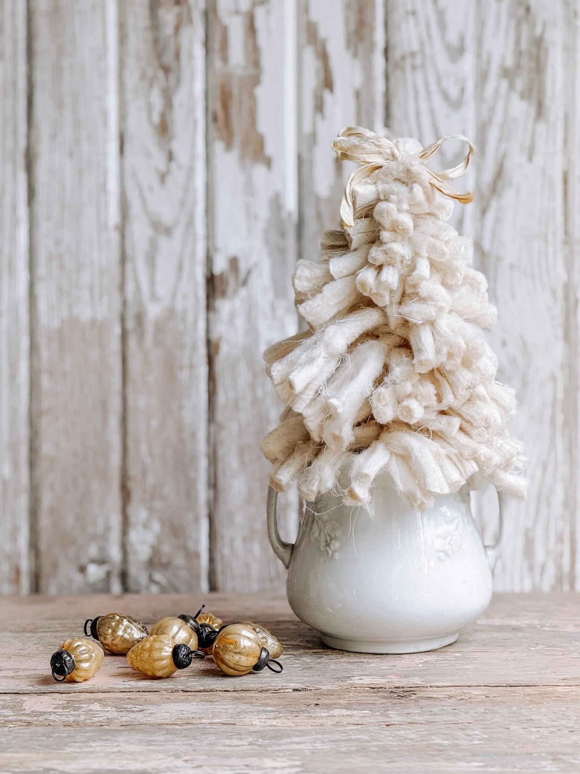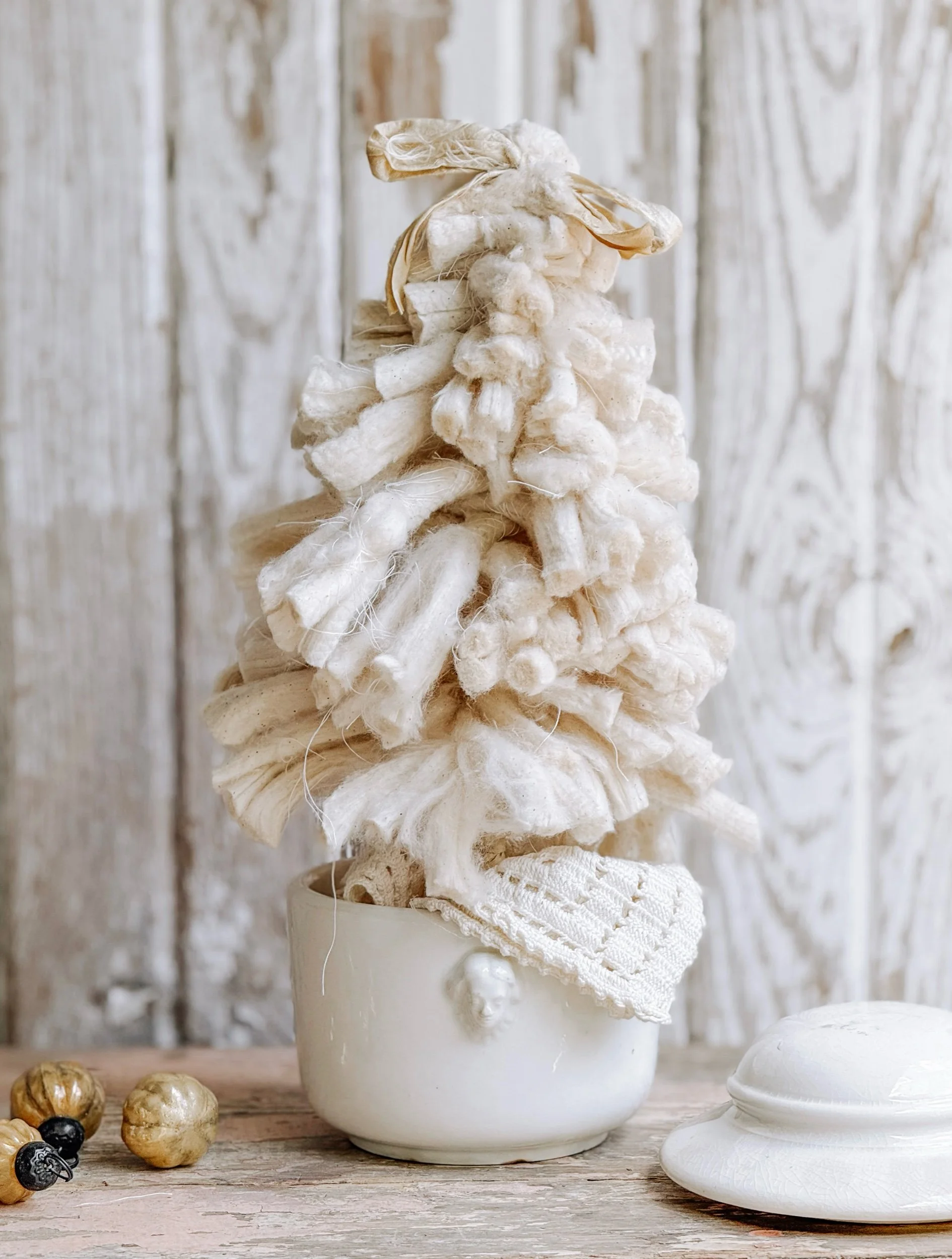 Antique English Ironstone Crock w/ Handmade Creamy Yarn Tree