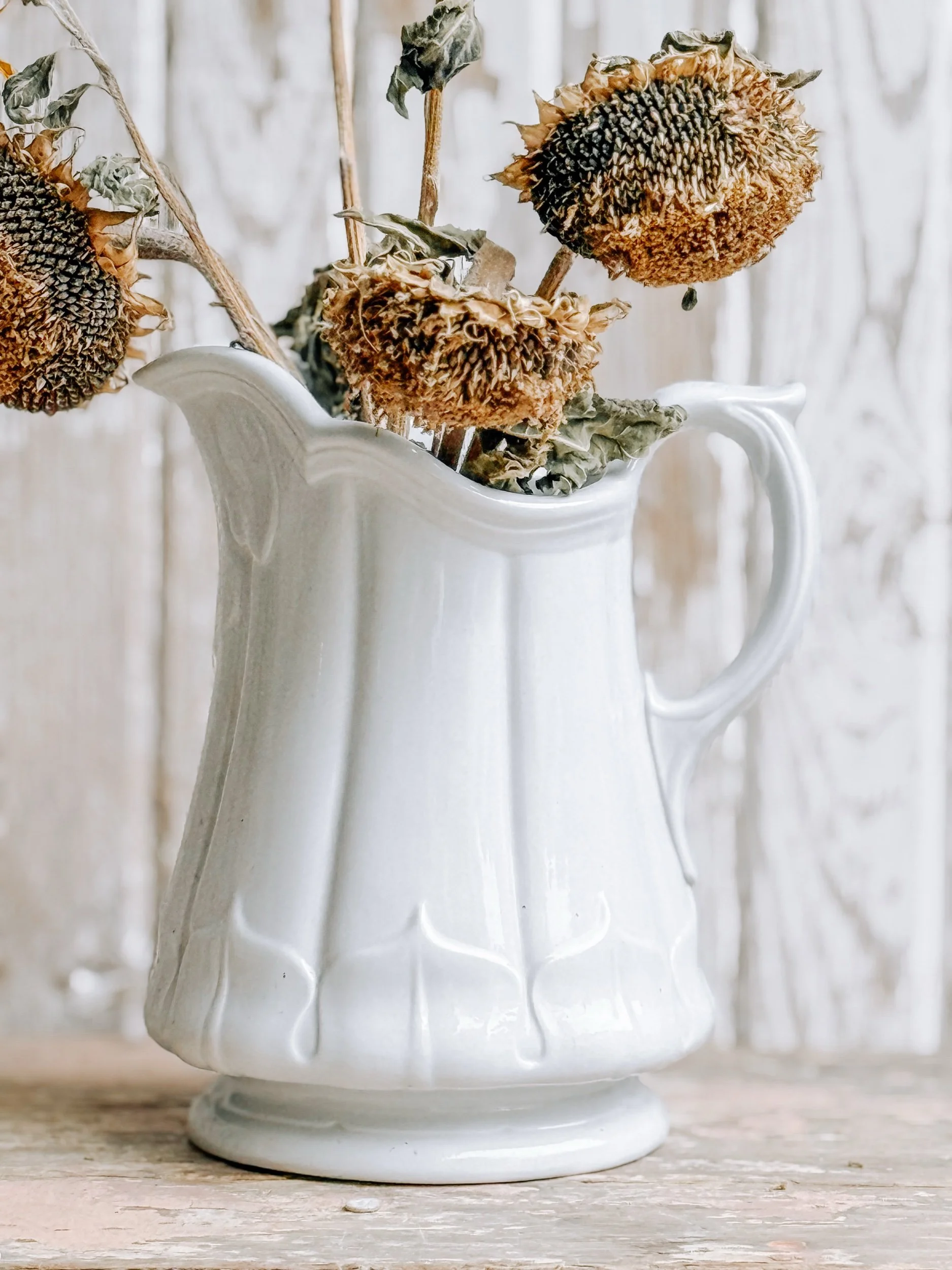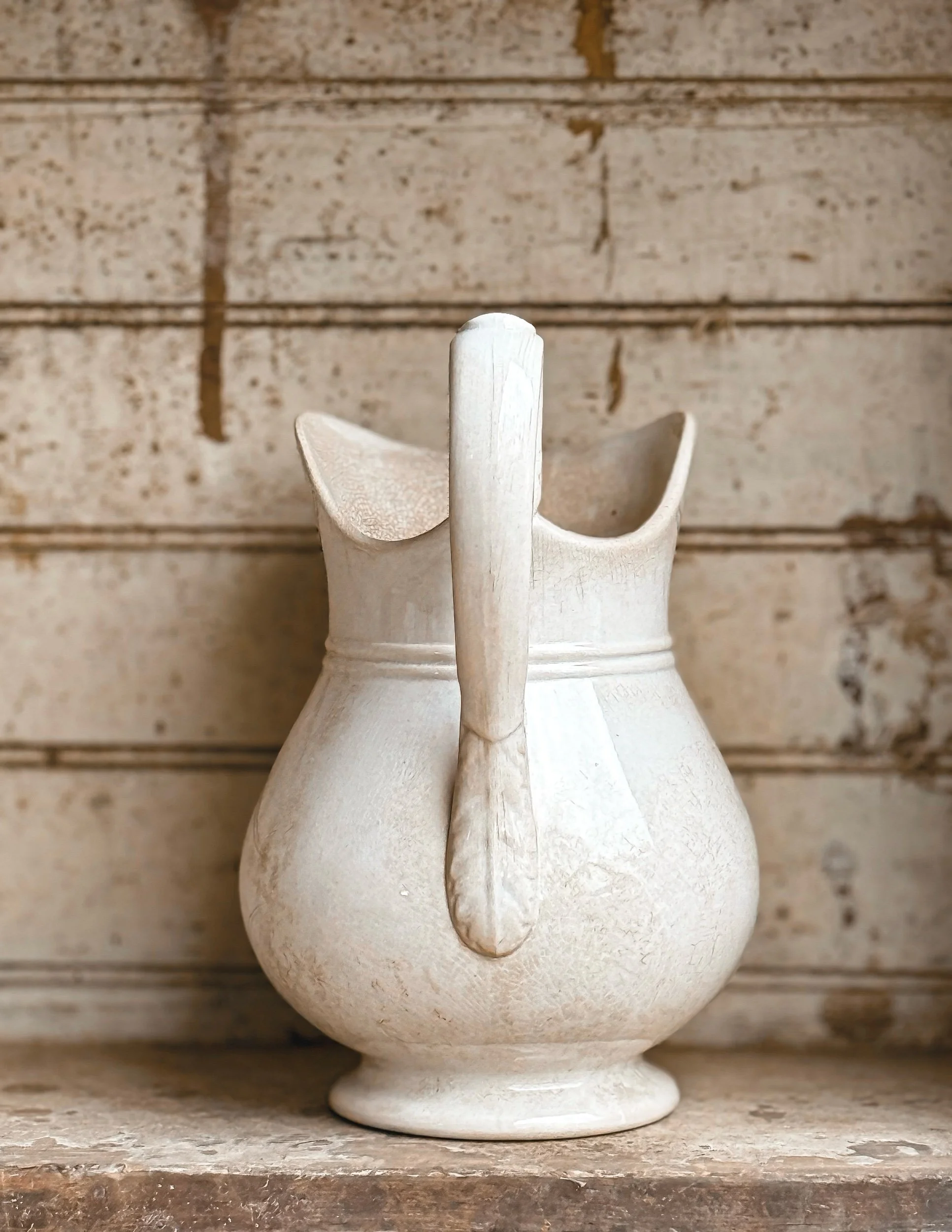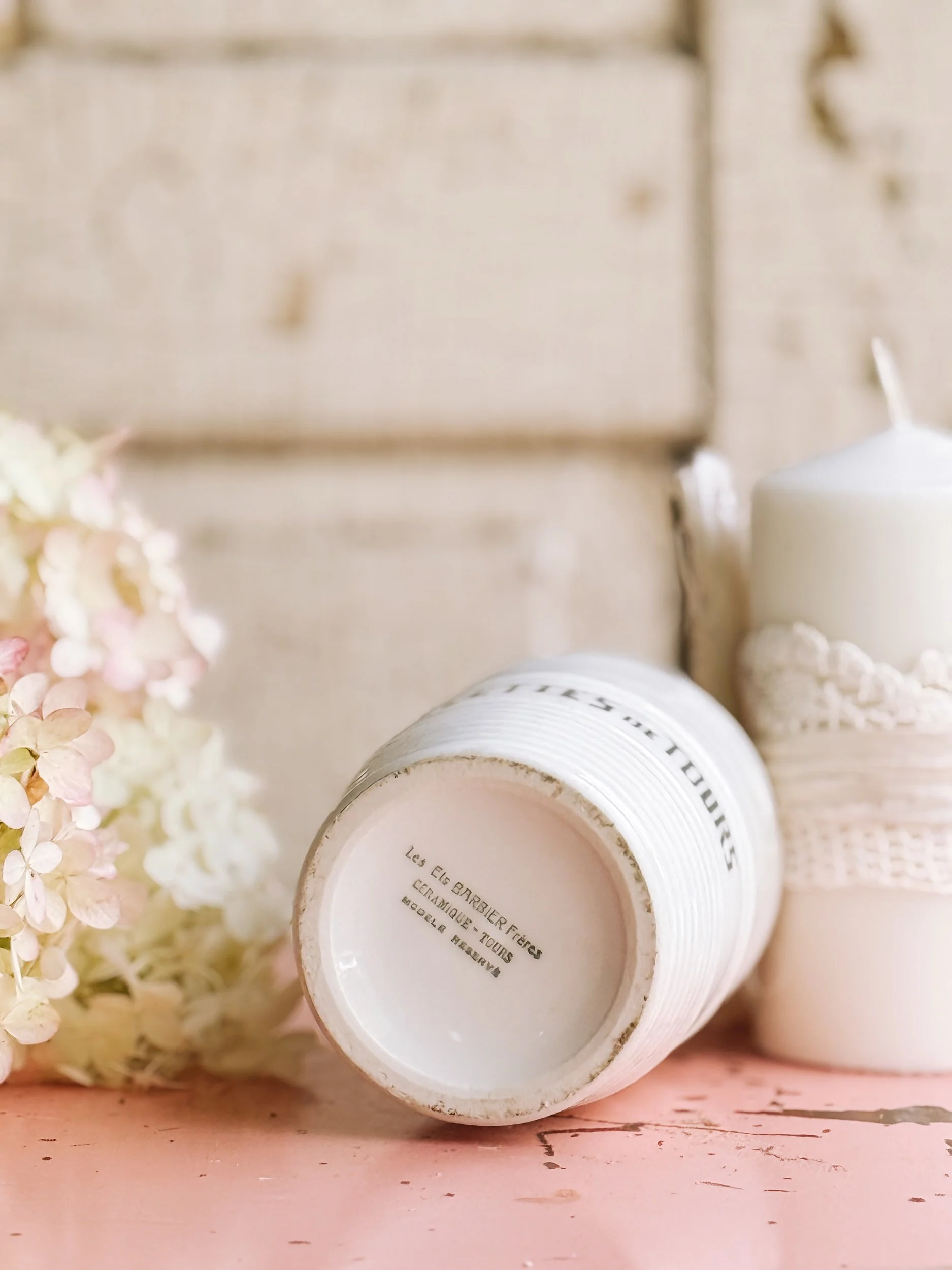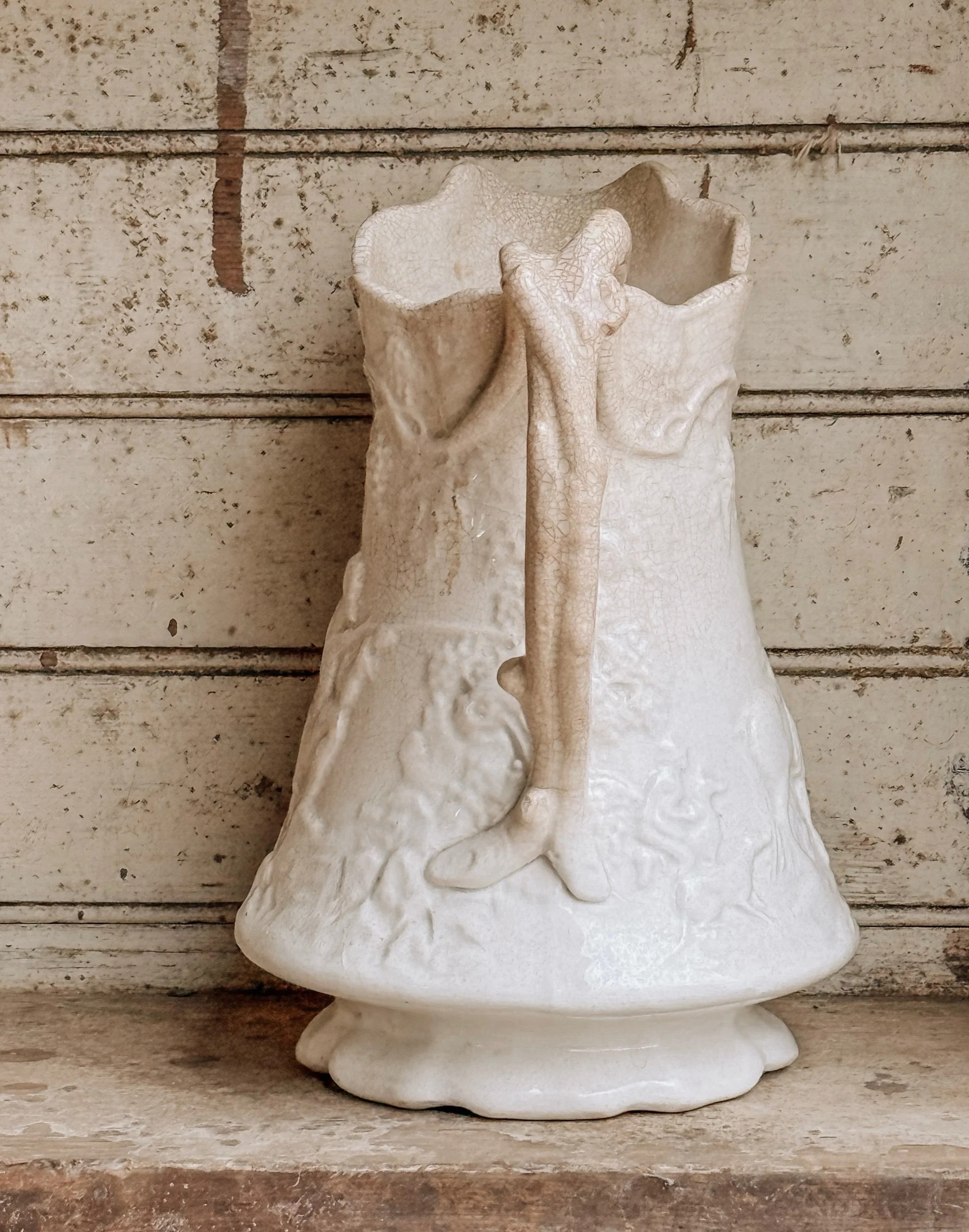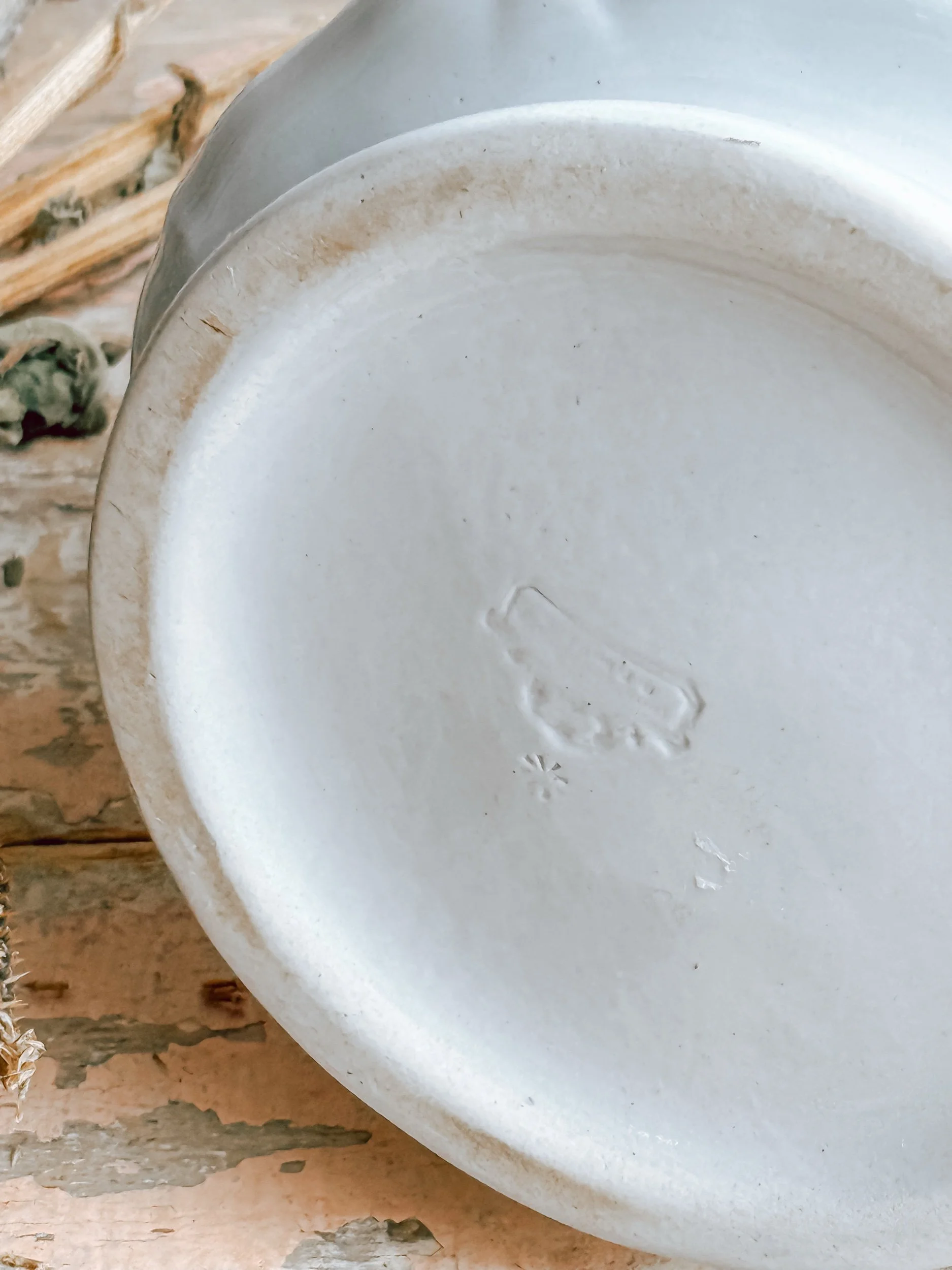 Antique English Ironstone Crock w/ Handmade Creamy Yarn Tree