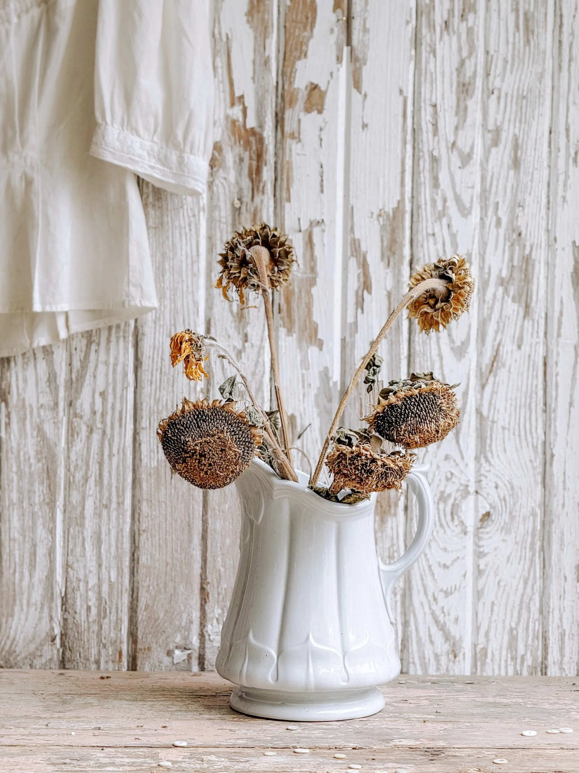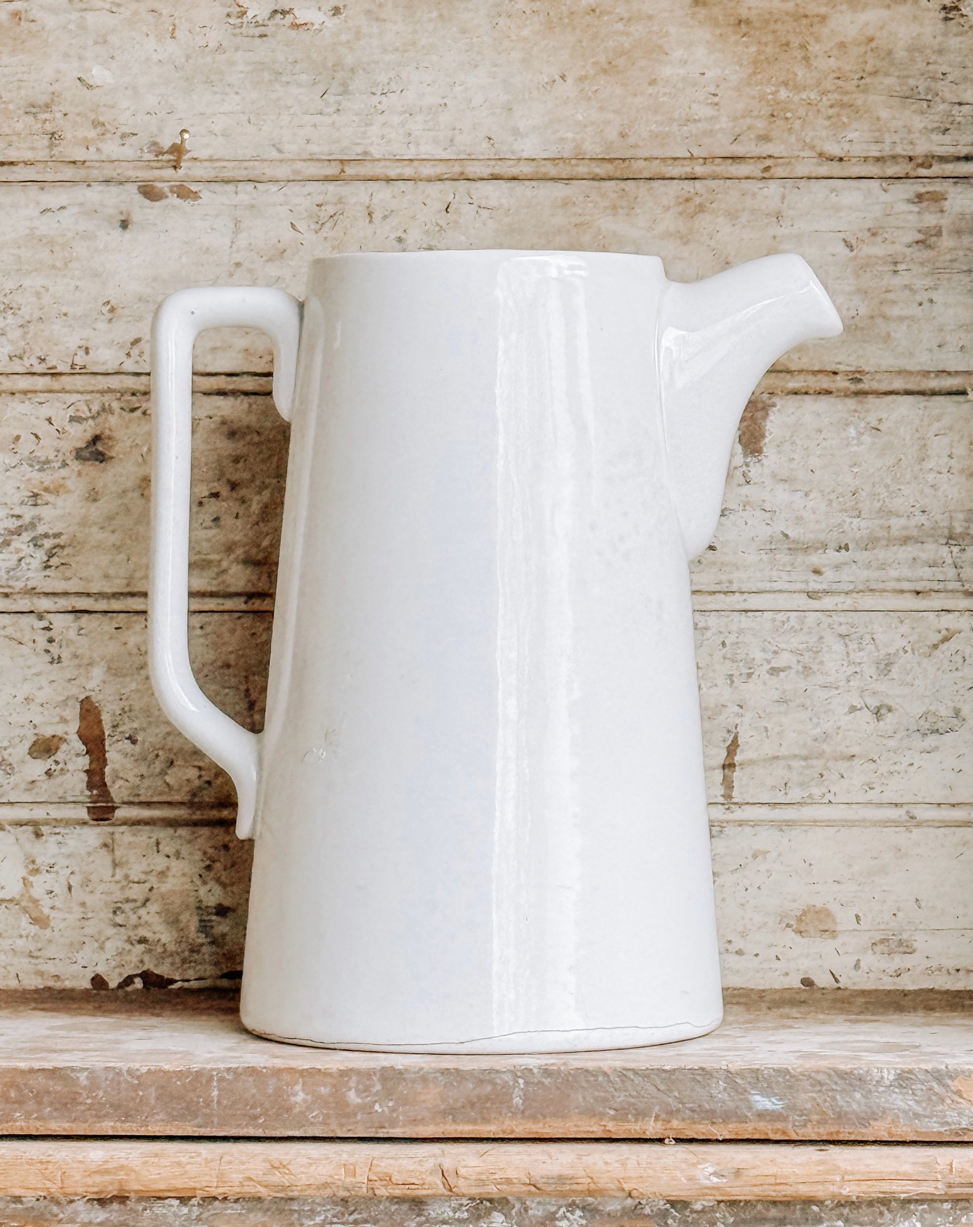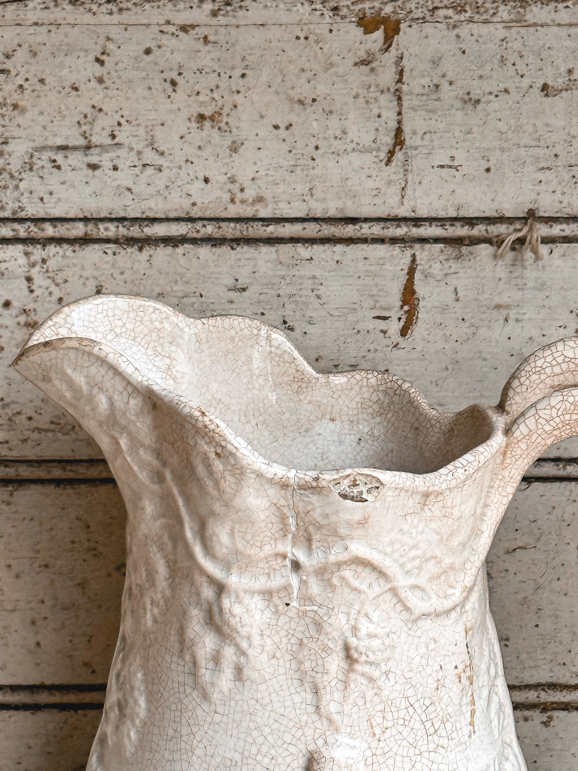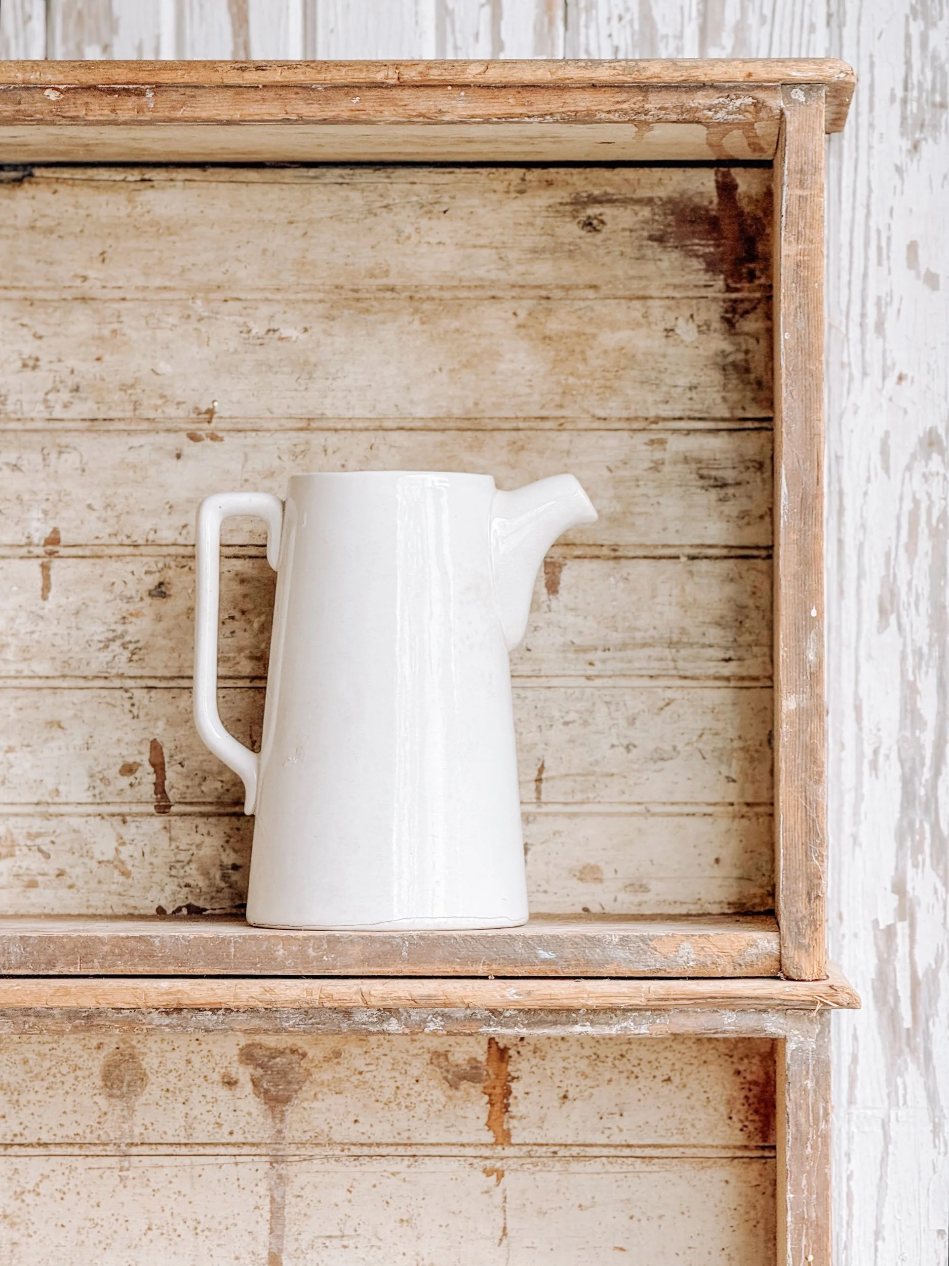 Antique English Ironstone Crock w/ Handmade Creamy Yarn Tree