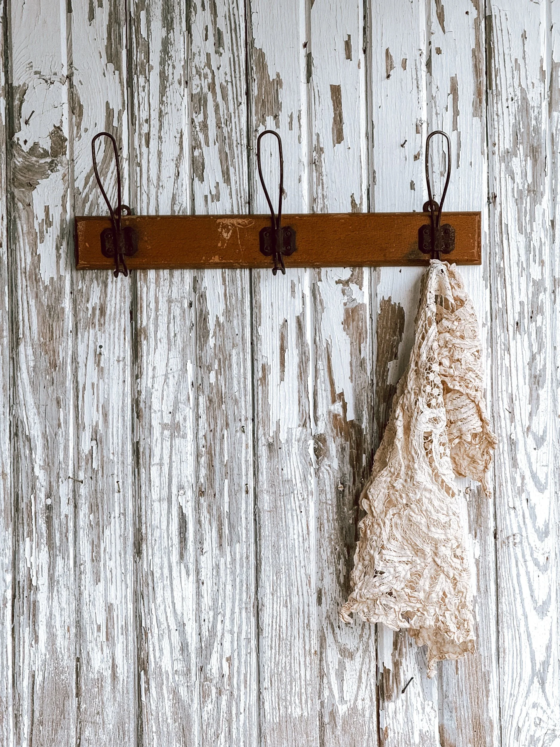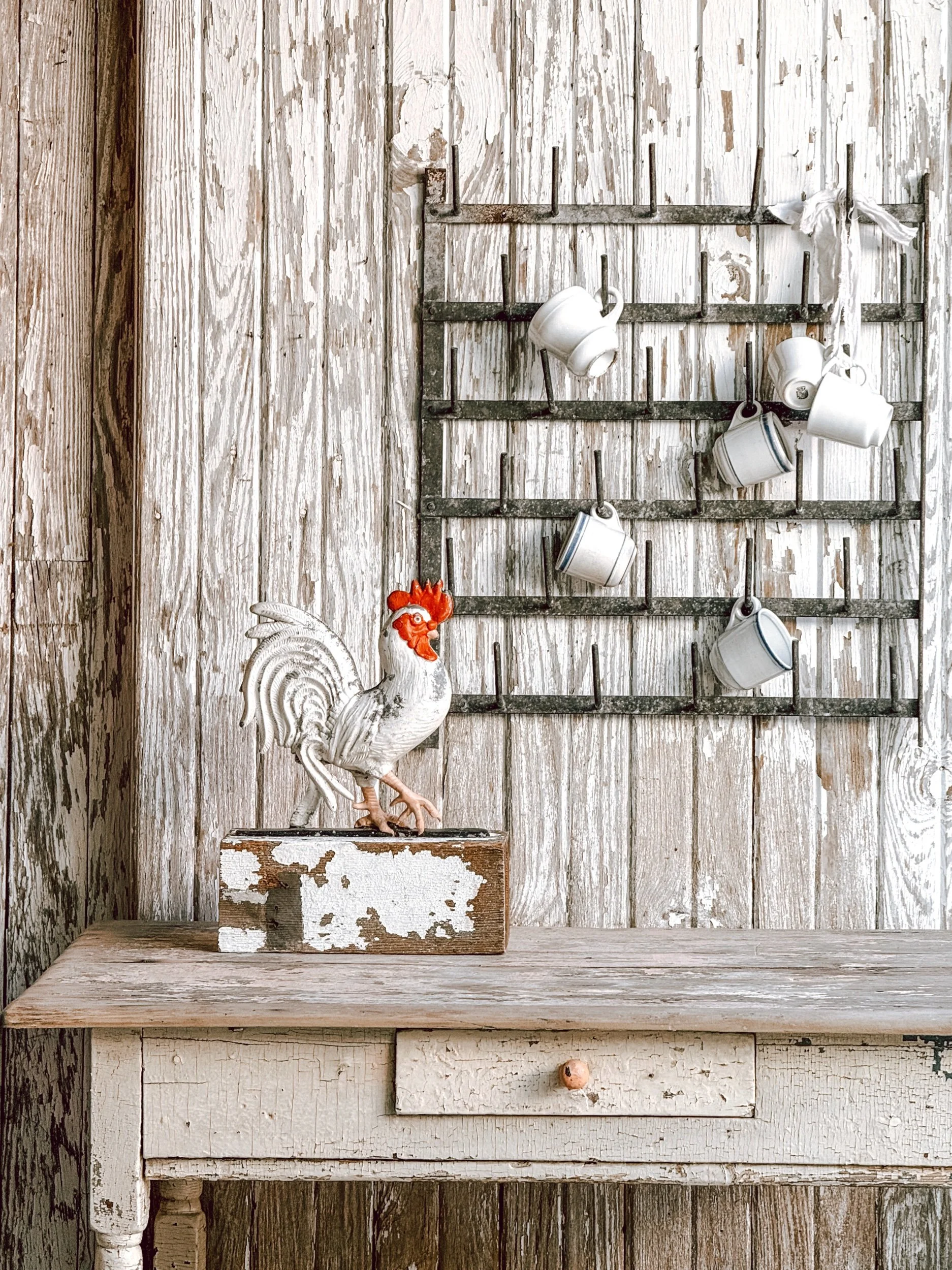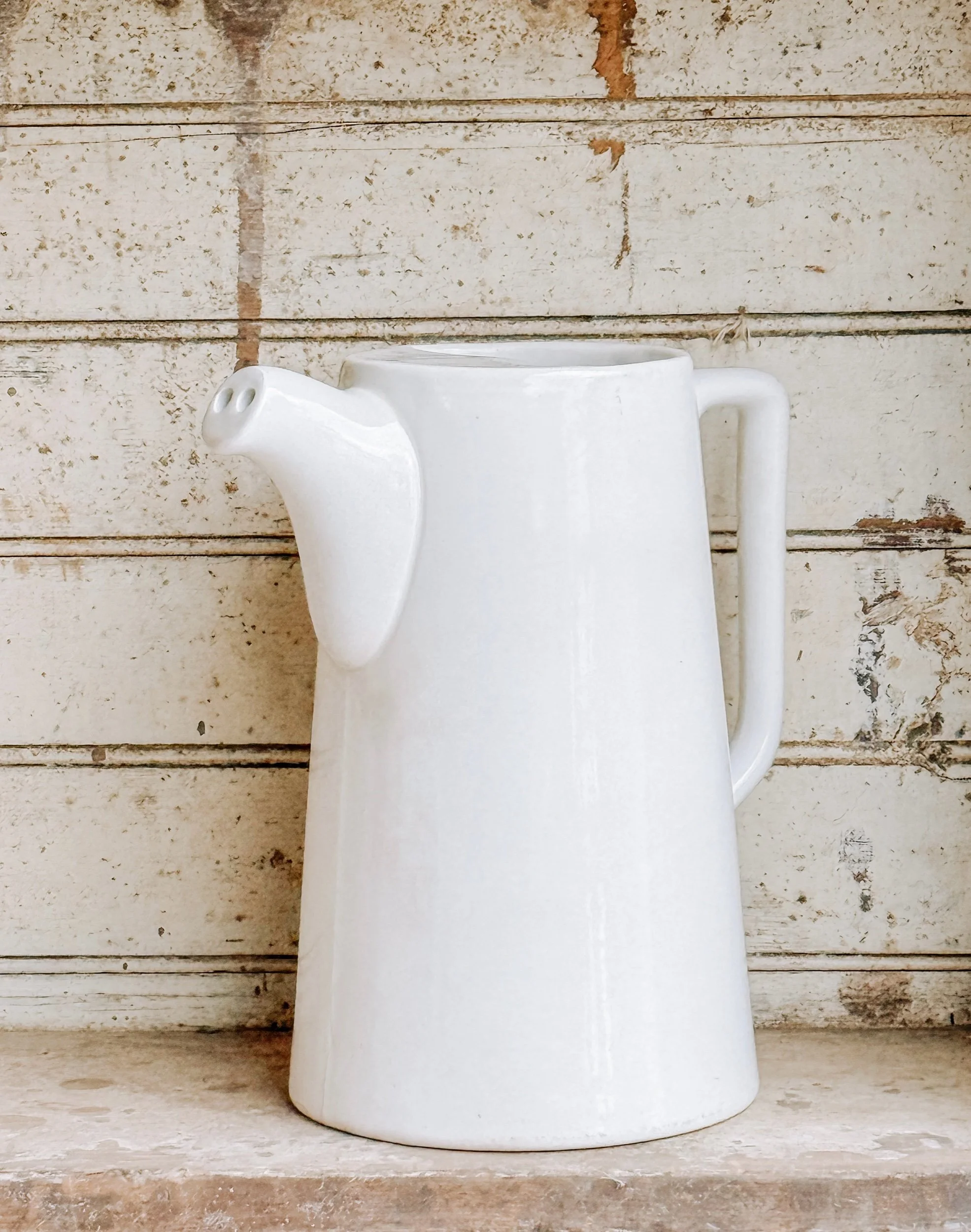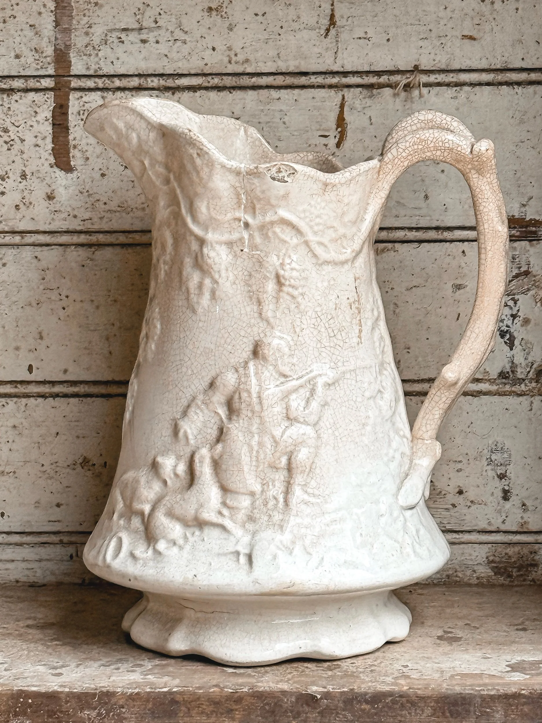 Antique English Ironstone Crock w/ Handmade Creamy Yarn Tree
