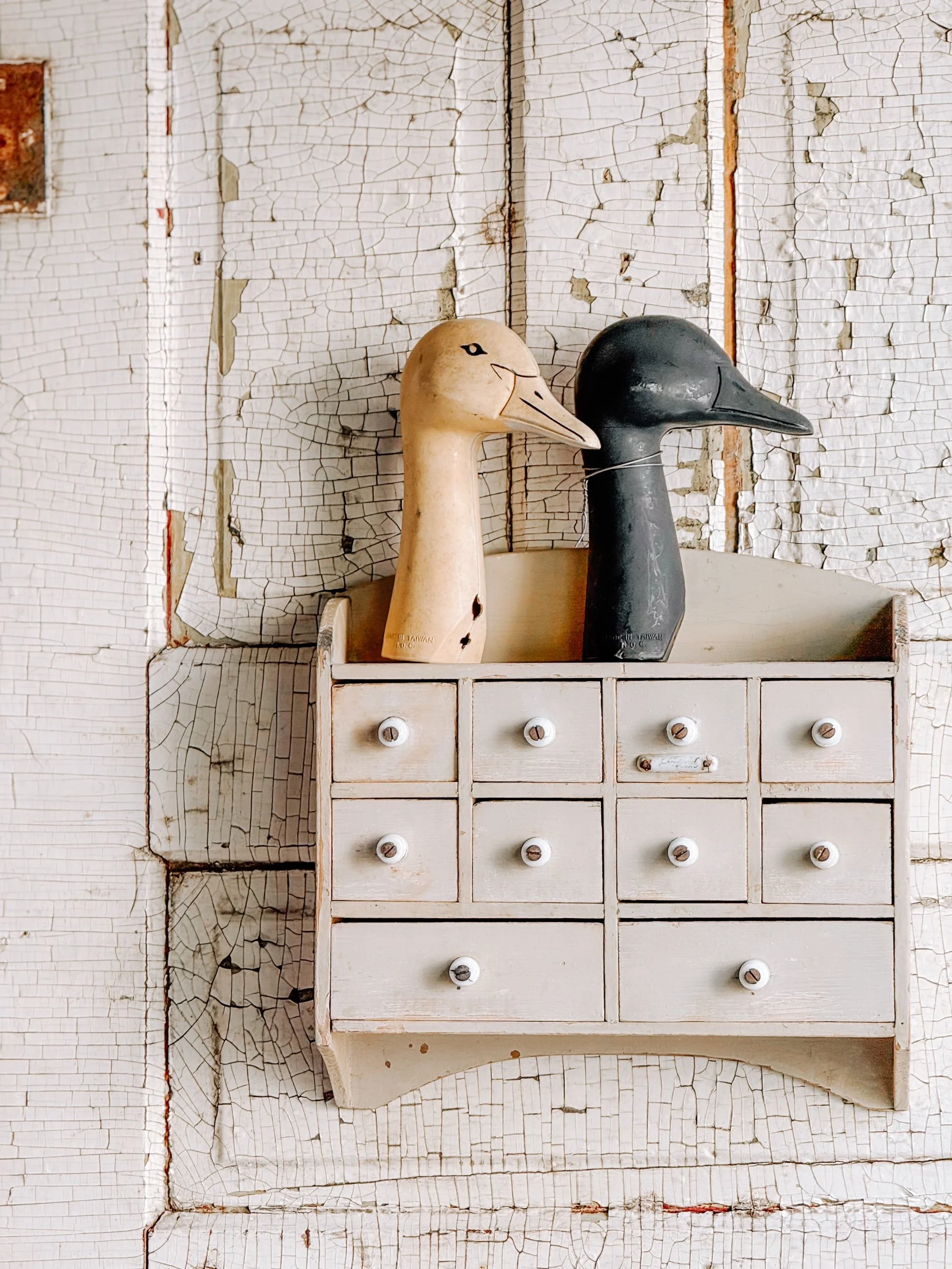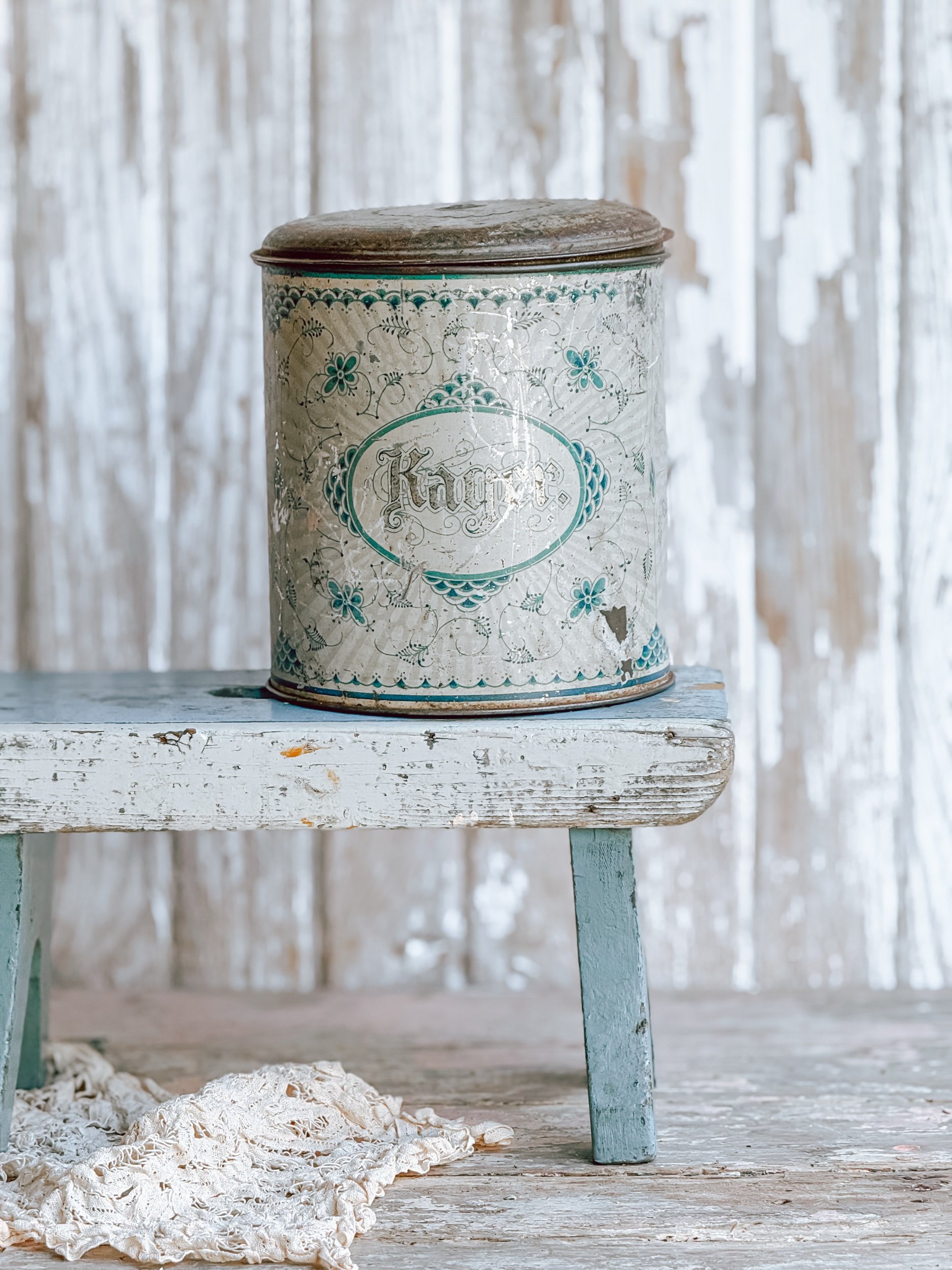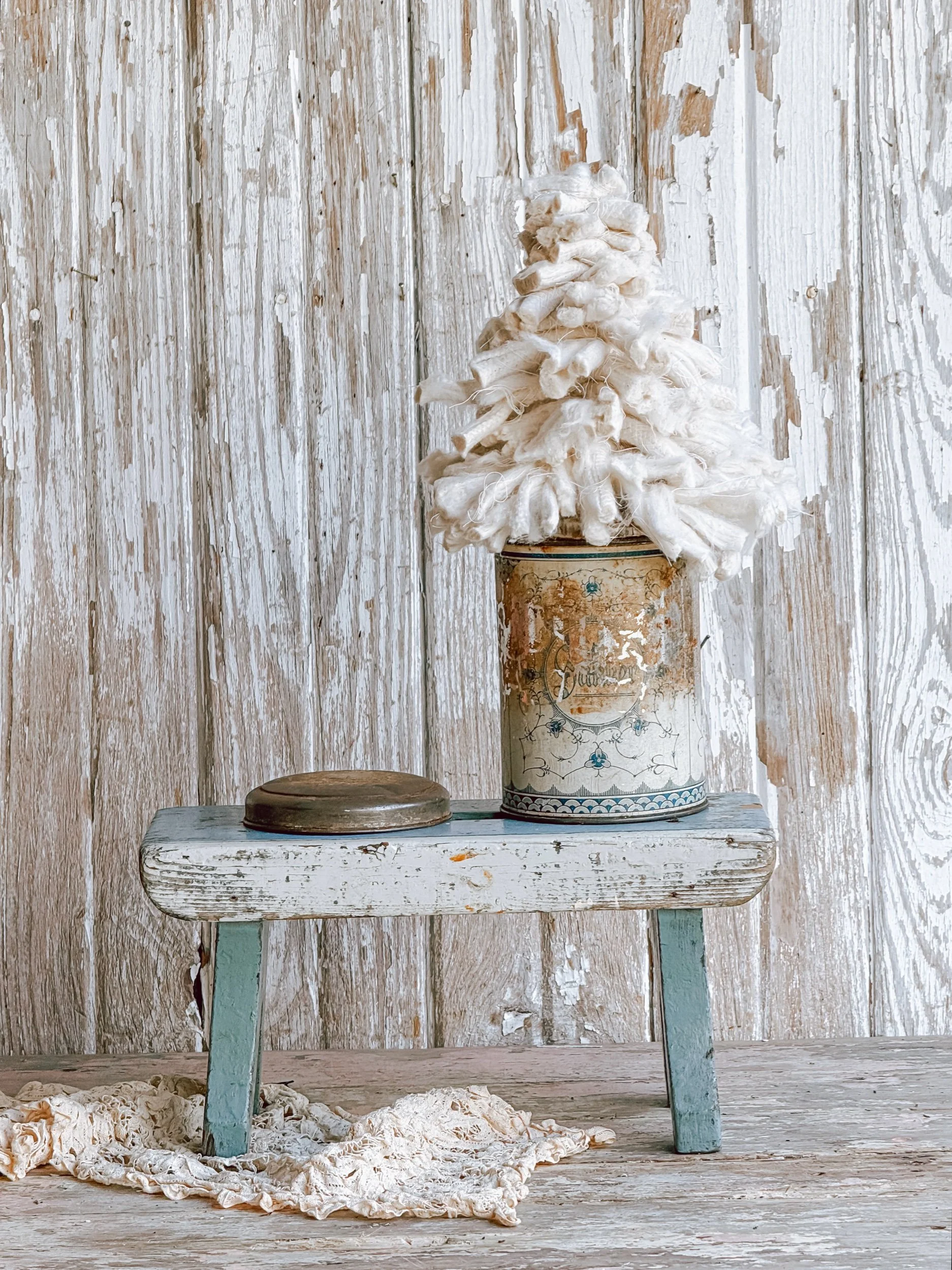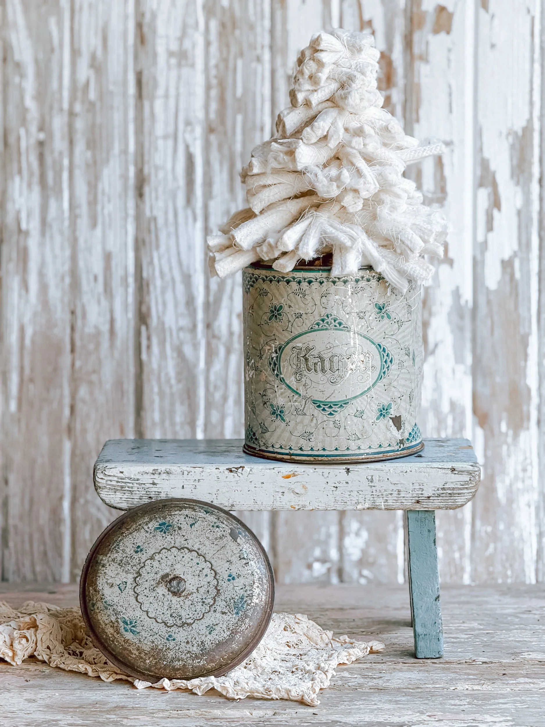 Antique Danish Spice Tin w/ Handmade Yarn Tree