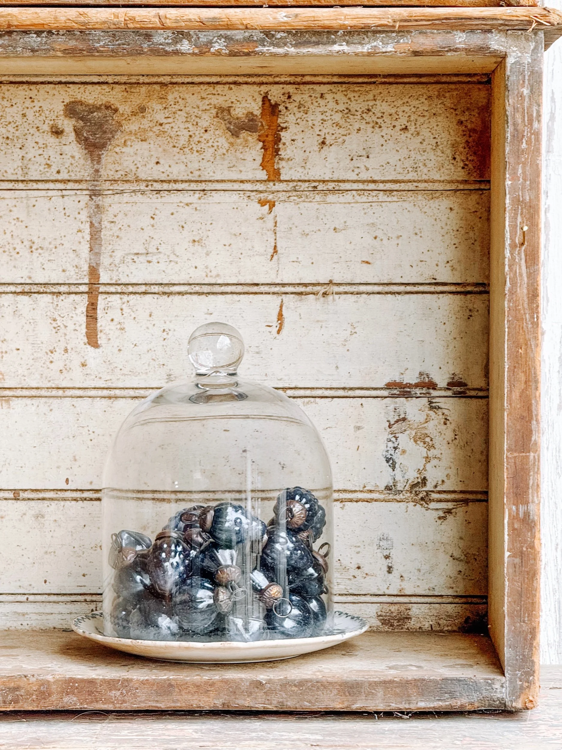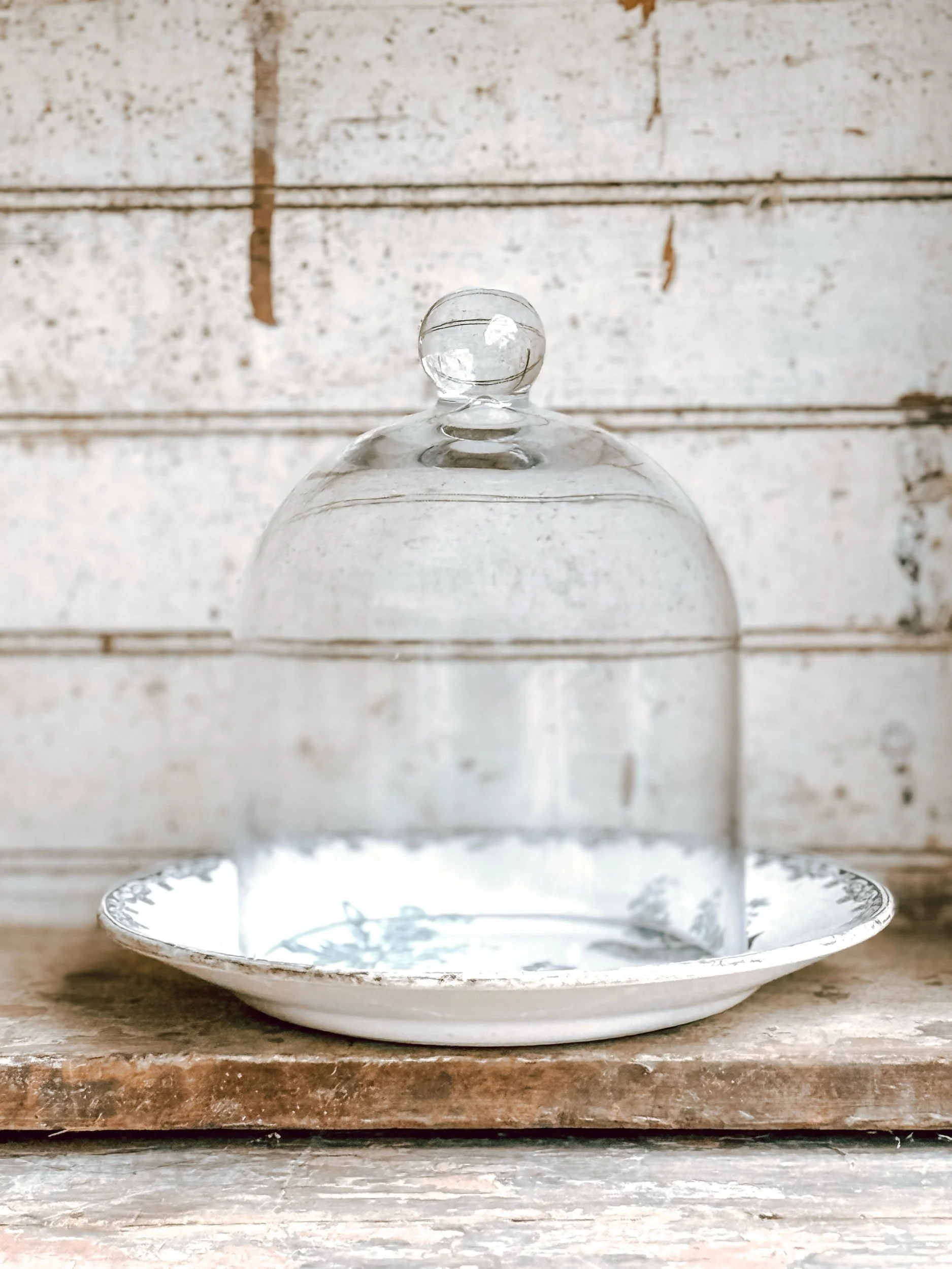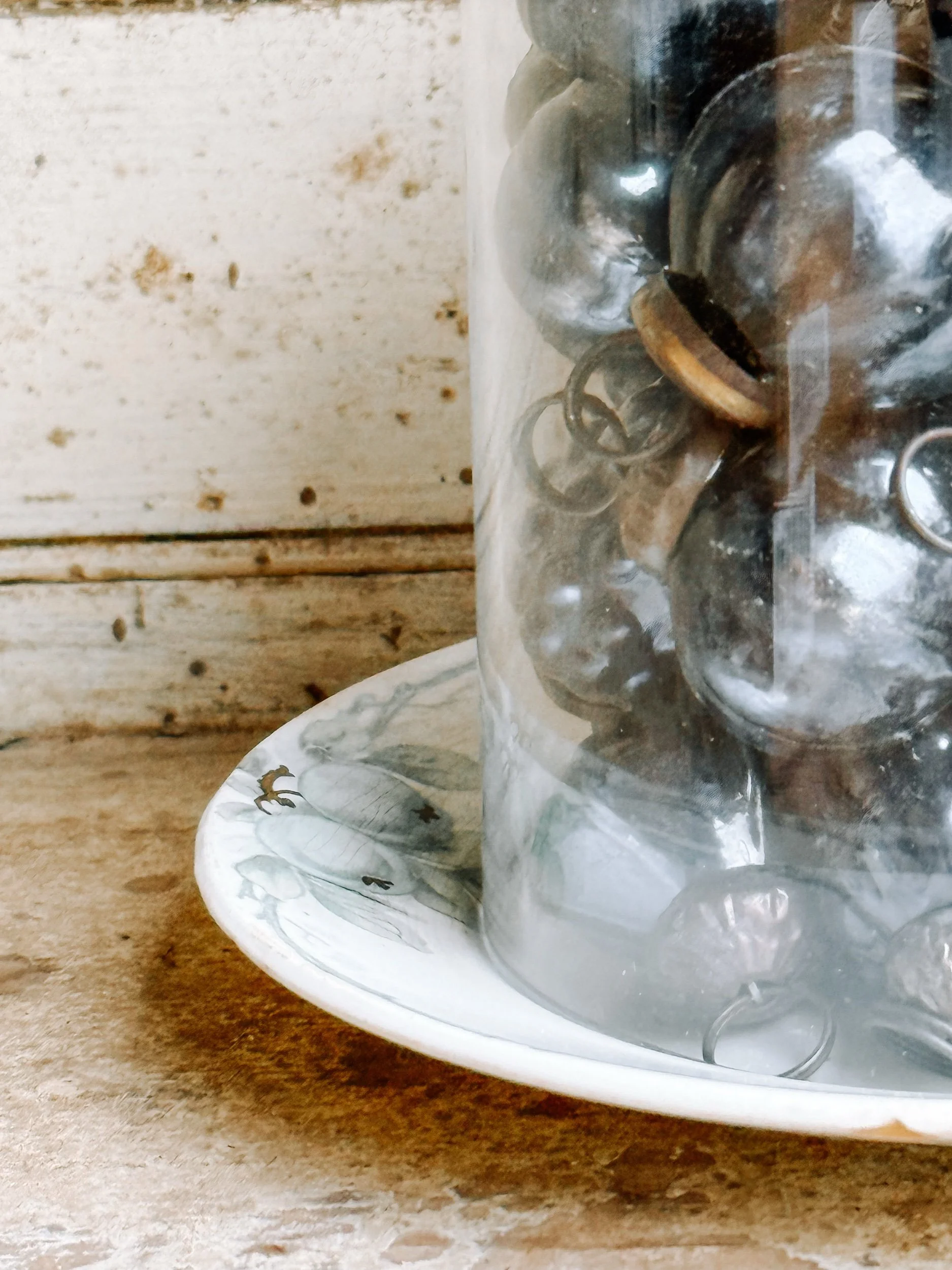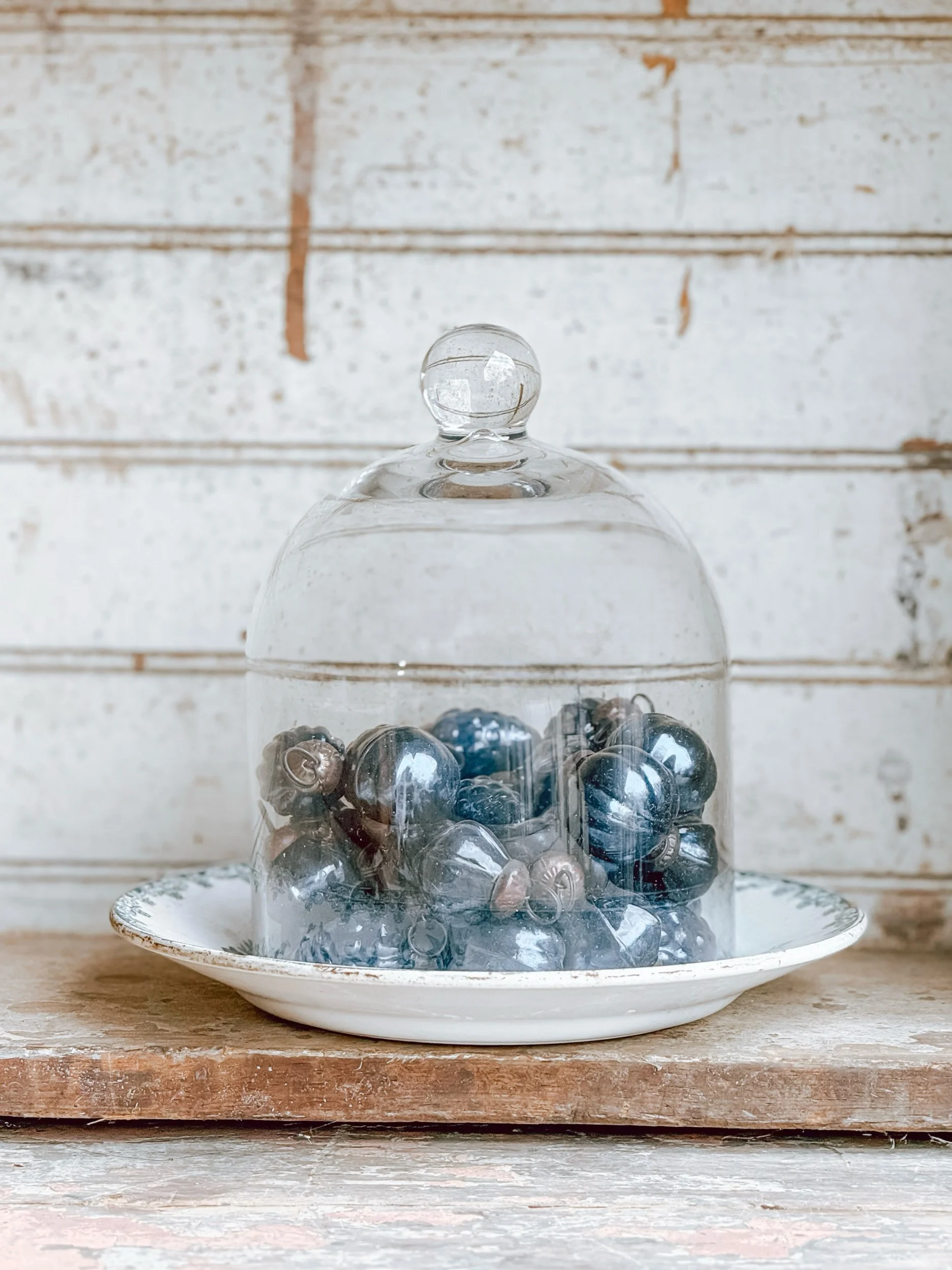 French Antique Ironstone Cloche w/ Blue Mercury Glass