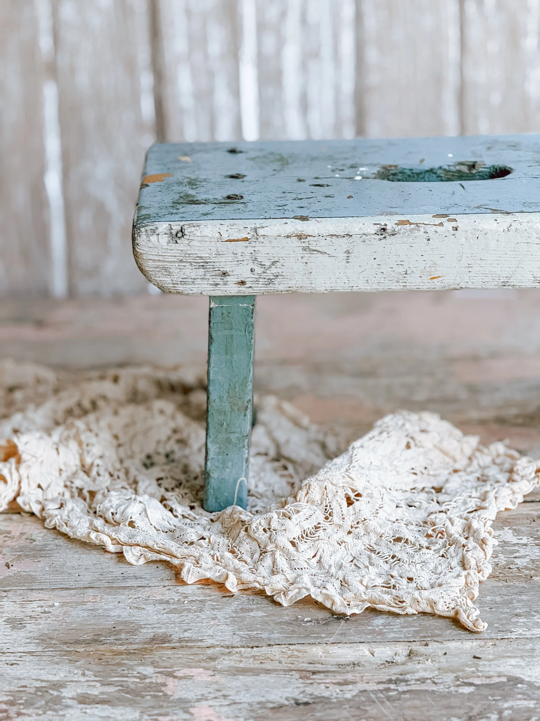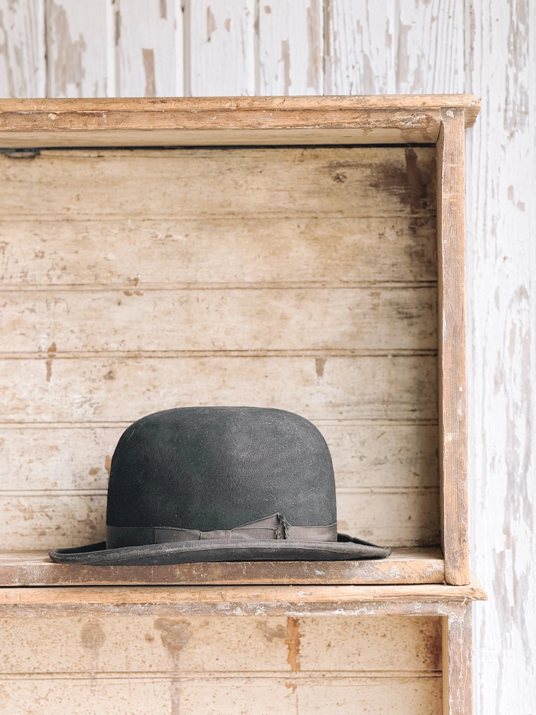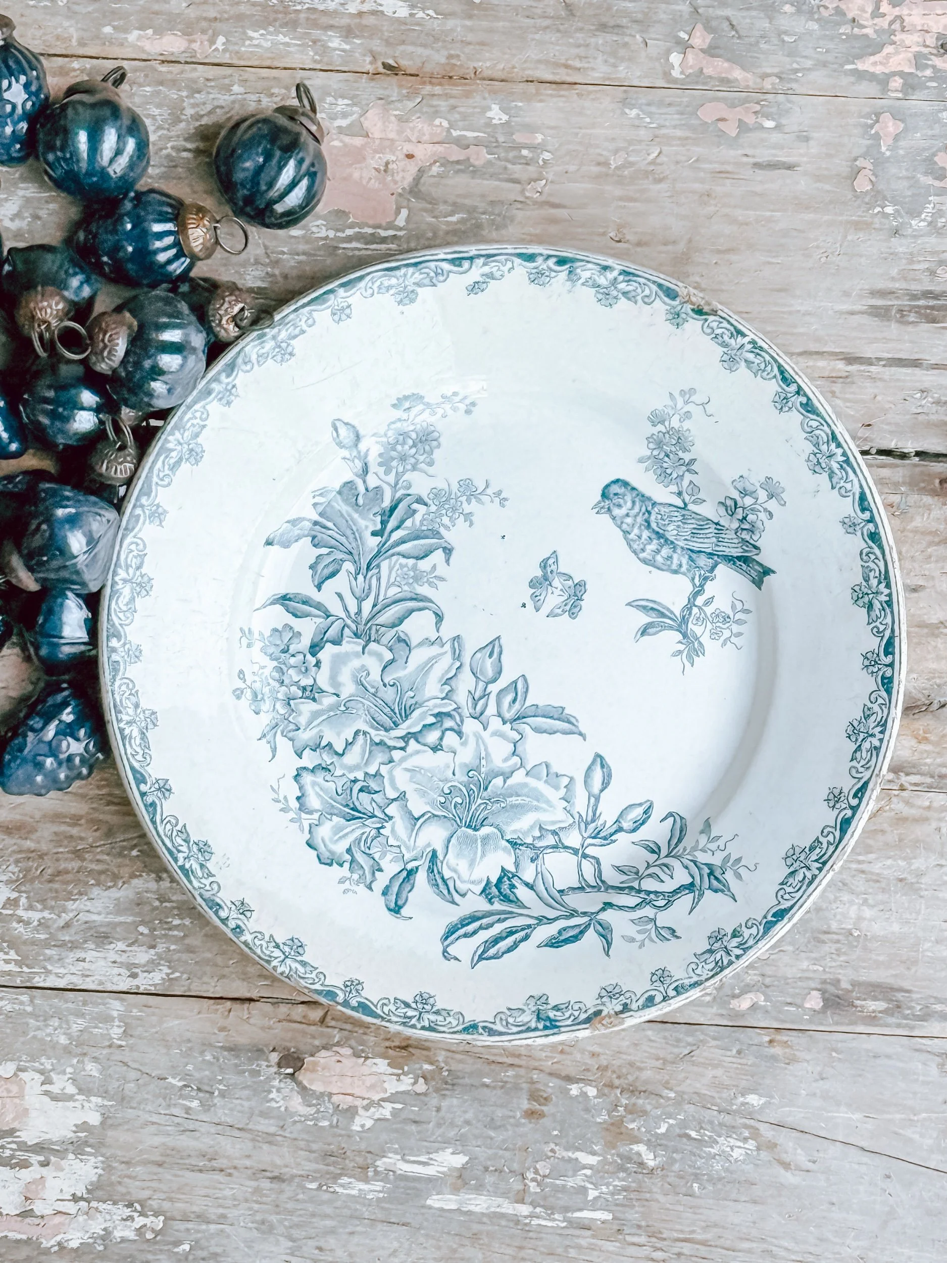 French Antique Ironstone Cloche w/ Blue Mercury Glass